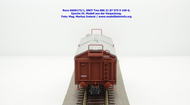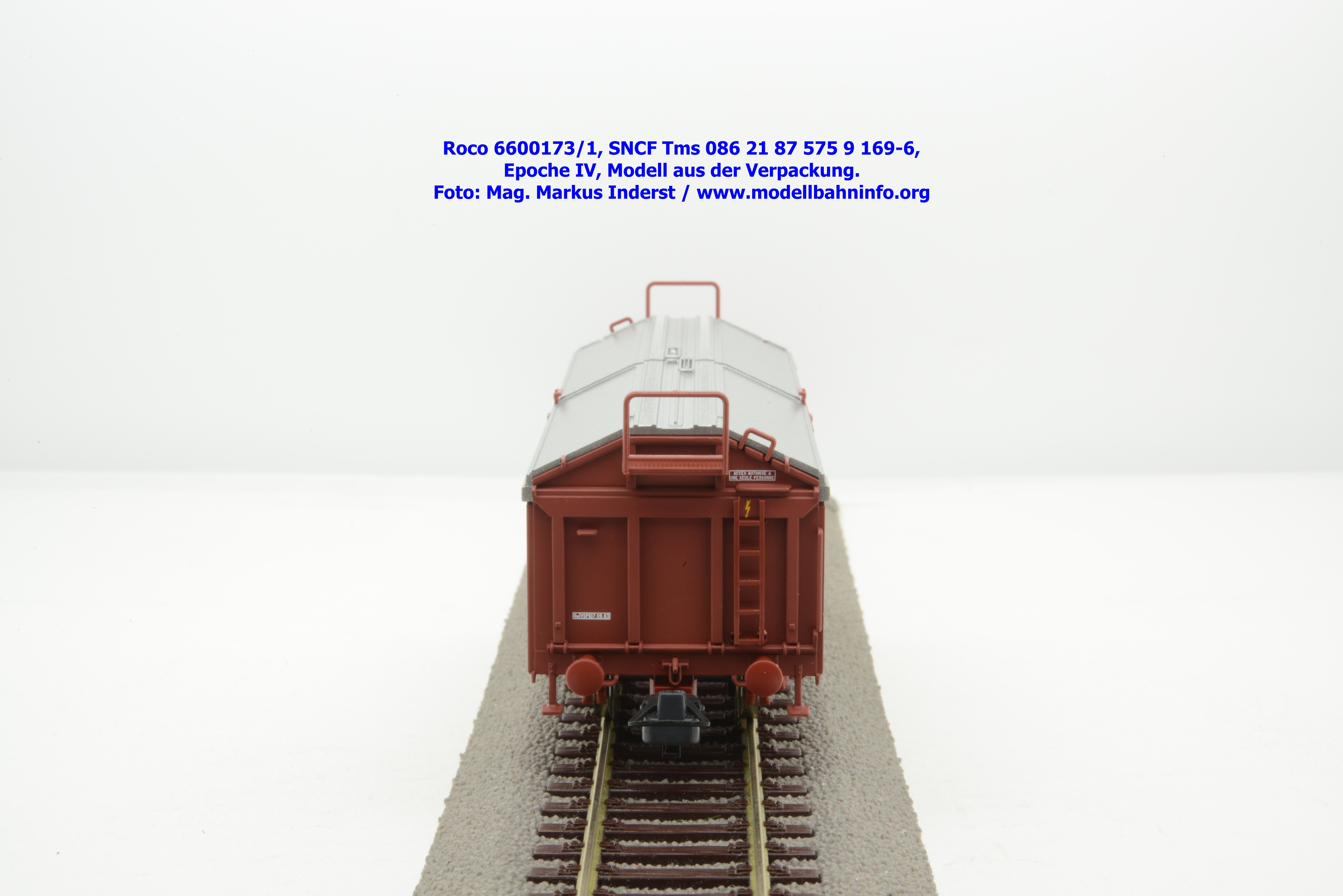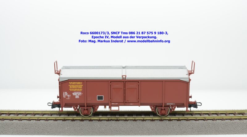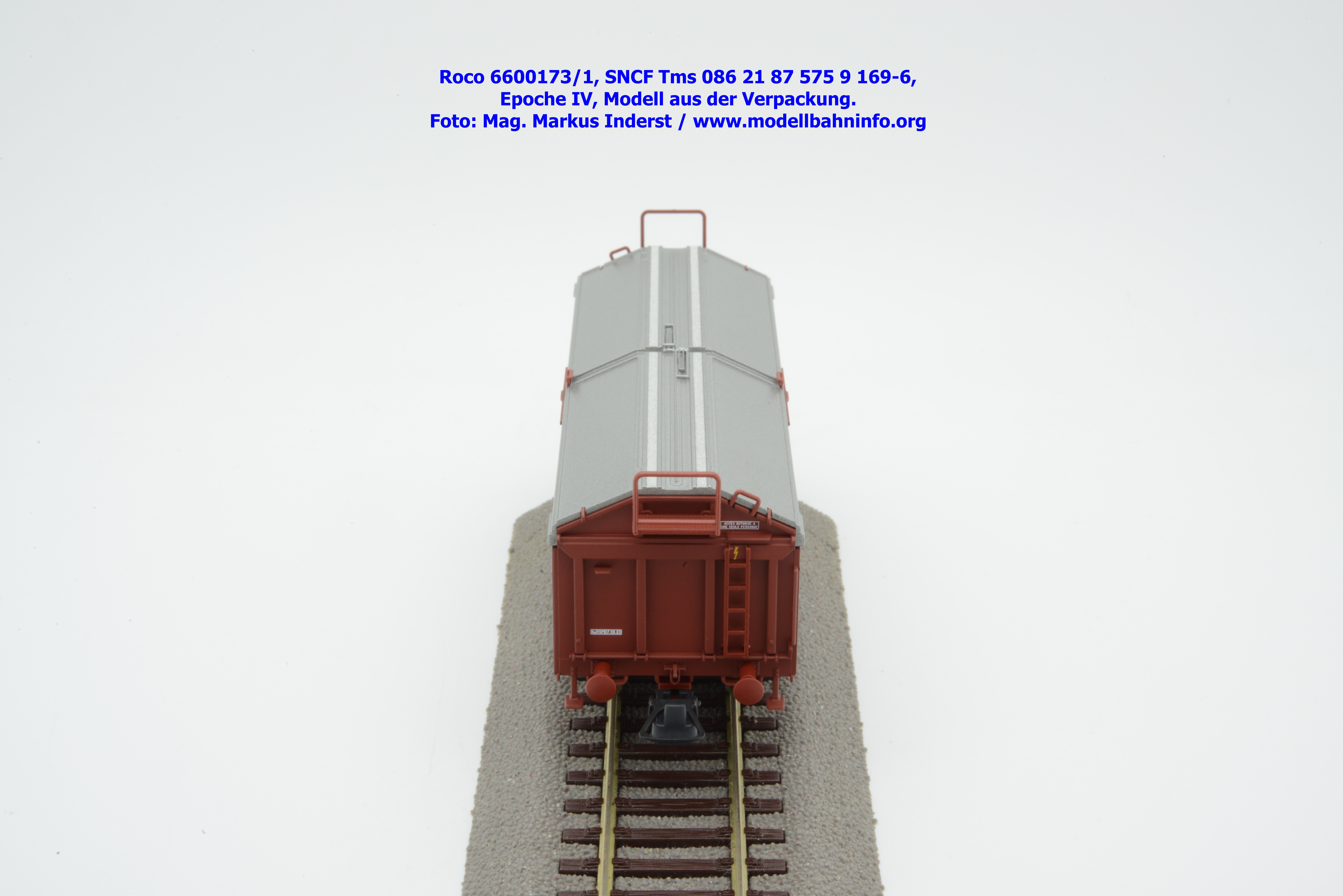 Roco liefert das gegenständliche Modell in der bekannten Fleischmann-Blisterbox aus. Der Wagen trägt die vollständige Wagennummer: 01 82 075 7 116-9, als Wagengattung ist Tms angeschrieben. Das Revisionsdatum stammt vom 12.04.74. Dem Modell liegen keine Zurüstteile bei.