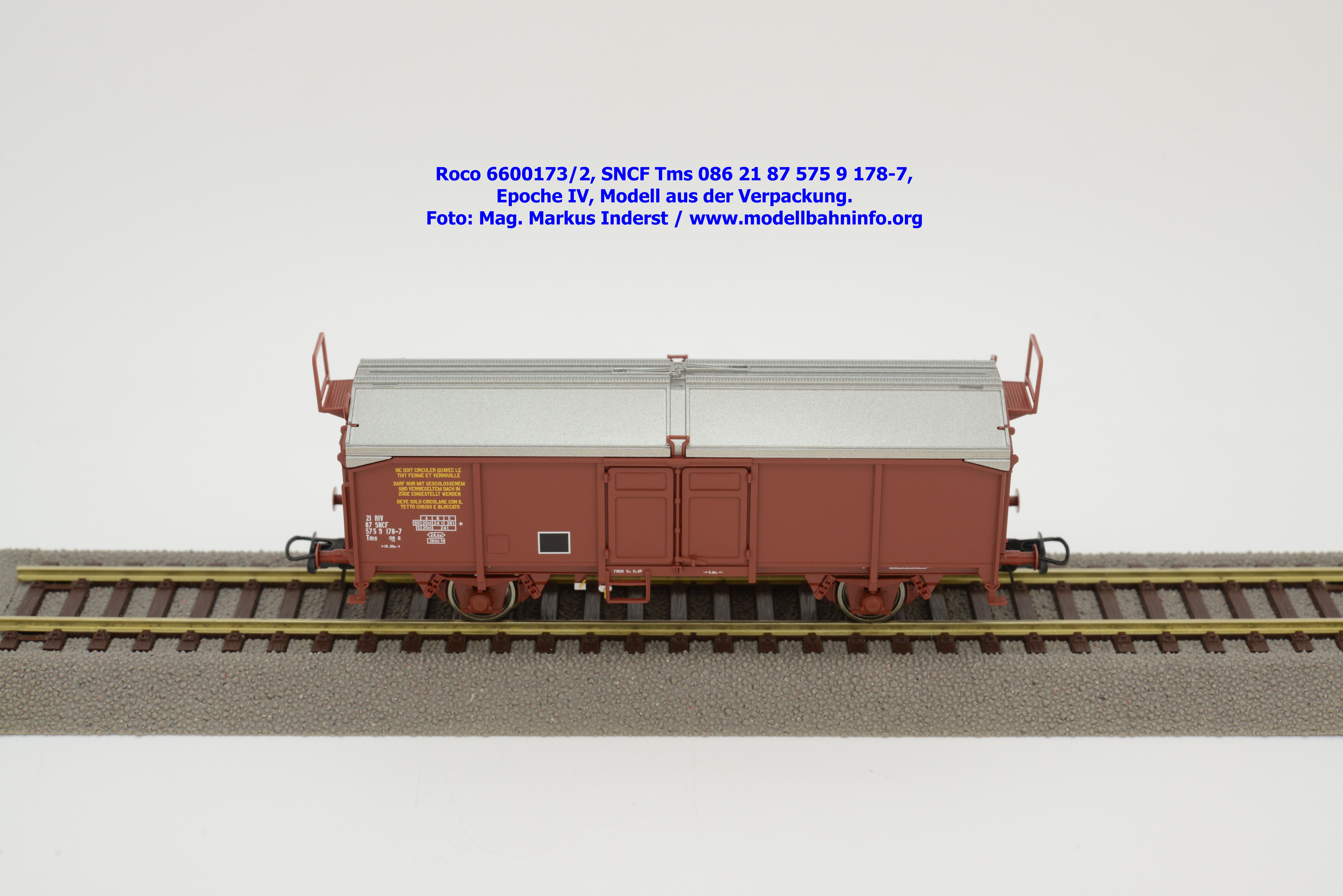 Das erste Modell mit den silbernen Schiebedächern ist ein RIC-fähiger Güterwagen, der auch dementsprechend angeschrieben ist. Dieser ist mit der Wagennummer 21 54 572 7 949-9 und den Untersuchungsanschriften 4 REV CL 02.04.73 bedruckt. In dieser Ausführung ist der Wagen auch auslandsfähig und für den Markt außerhalb Tschechiens von Interesse.