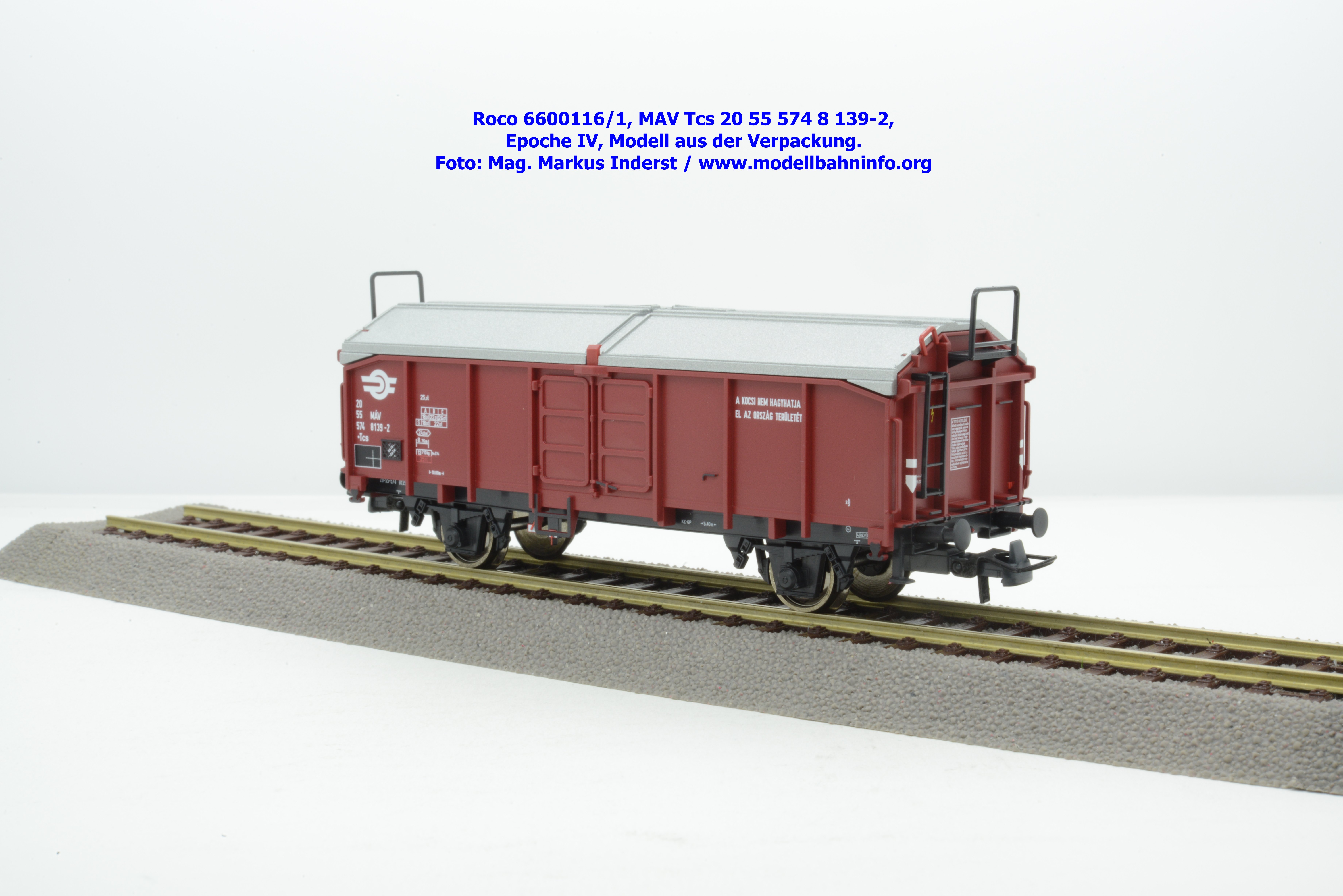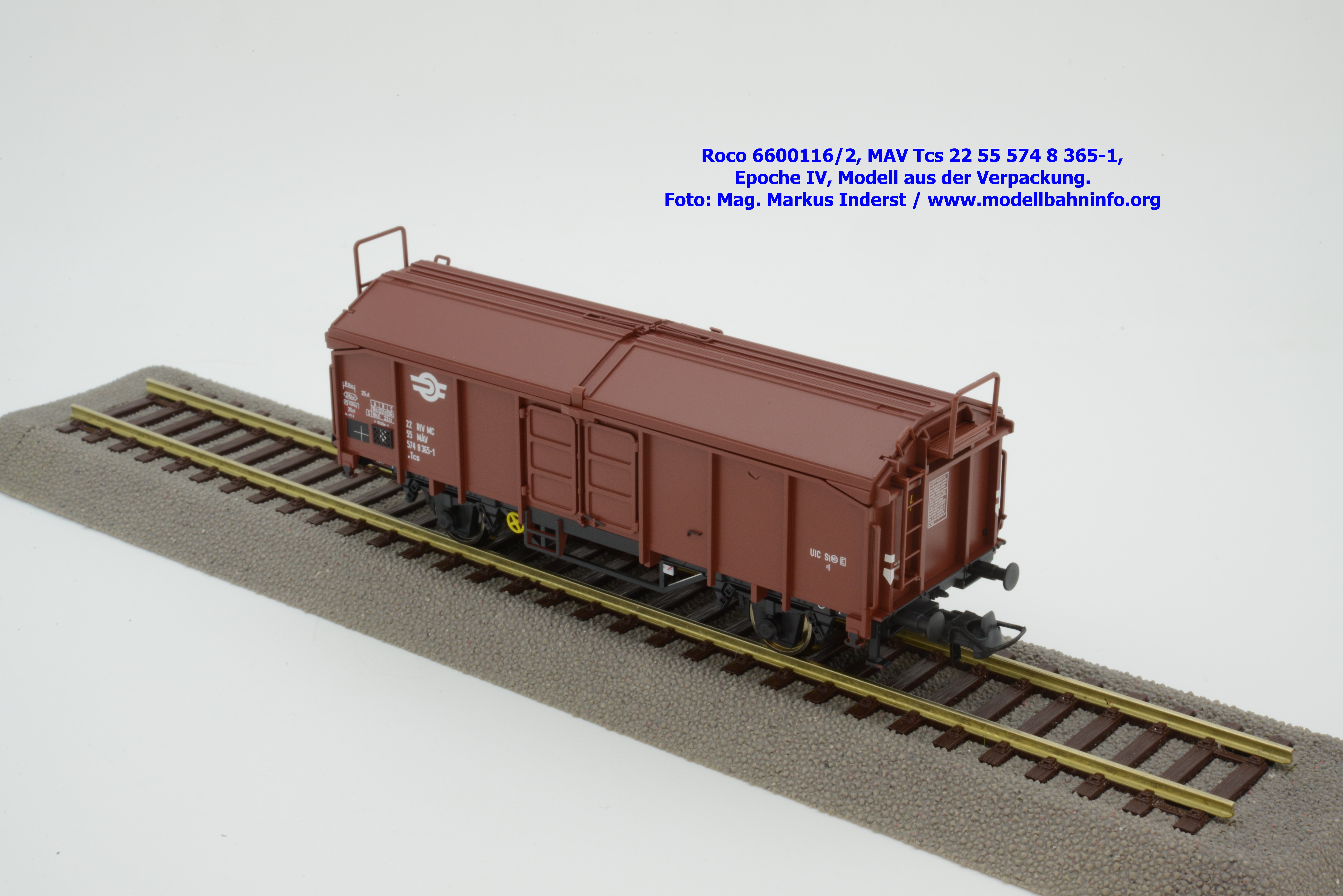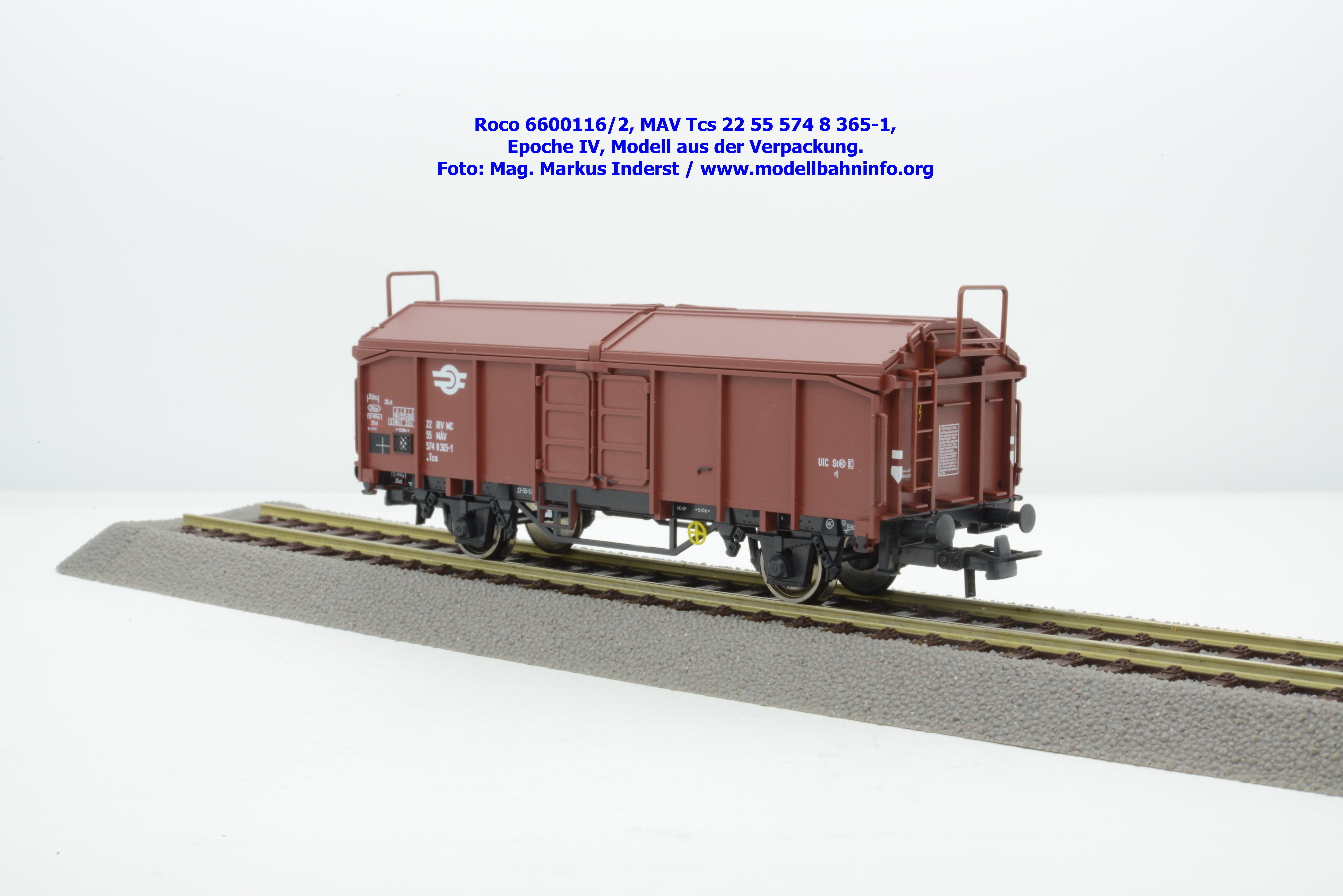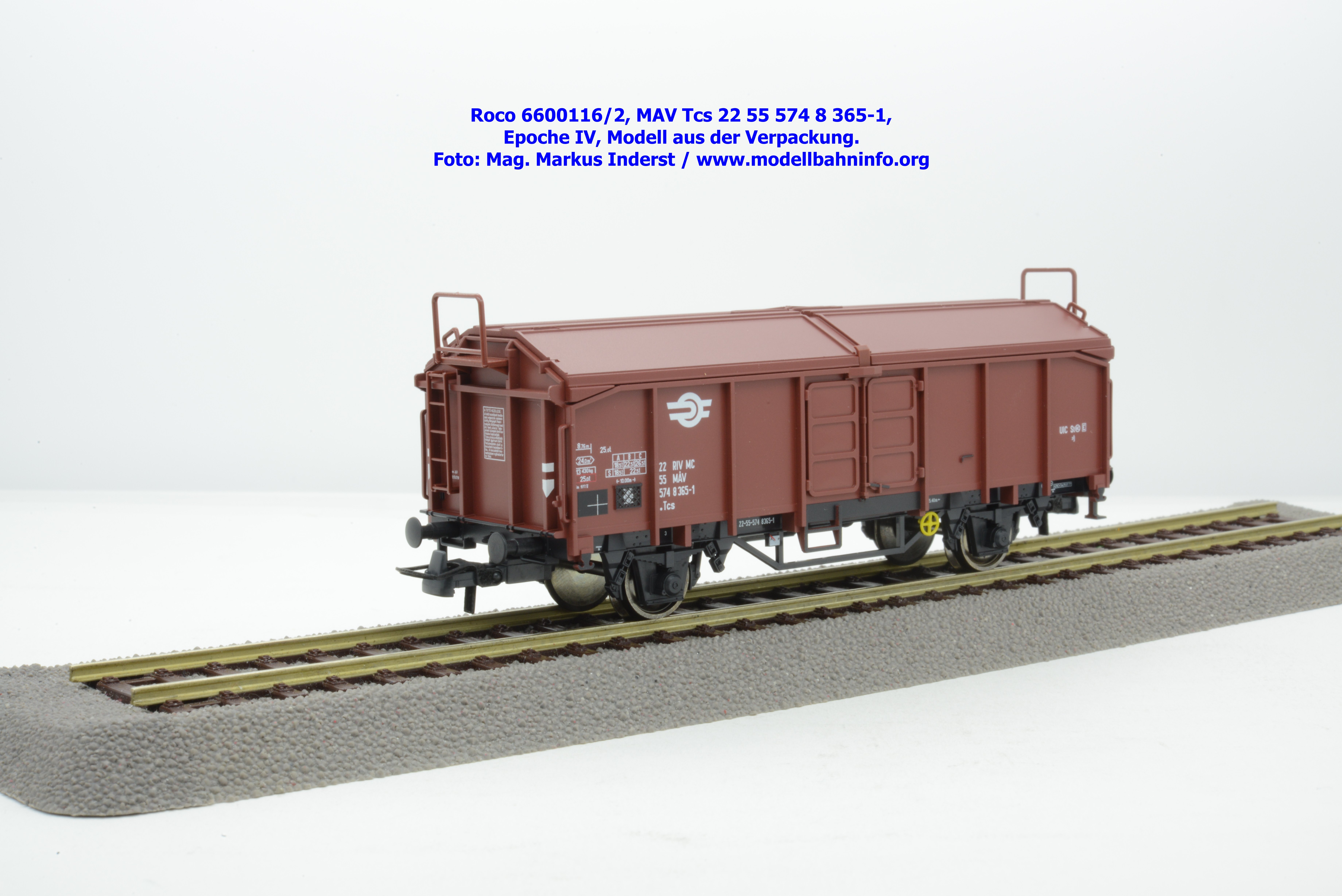 Dieser Wagentyp ist in großen Stückzahlen bei der MAV eingestellt und kam früher in Ganzzügen von Ungarn durch Österreich nach Deutschland vor Lokomotiven der DB bzw. der ÖBB zum Einsatz. Roco hat diese Wagentyp erstmals als MAV-Modelle realisiert, wobei als Einsatzzeitraum die Epoche IV vorgegeben ist. Die beiden Modelle im Wagenset sind wie gewohnt einzeln verpackt und unterscheiden sich auch optisch. Die genauen Einzelzeiten werden beim jeweiligen Modell angeführt. Die als Neuheit 2026 ausgewiesene Artikelnummer ist zum UVP von € 79,90 erhältlich.