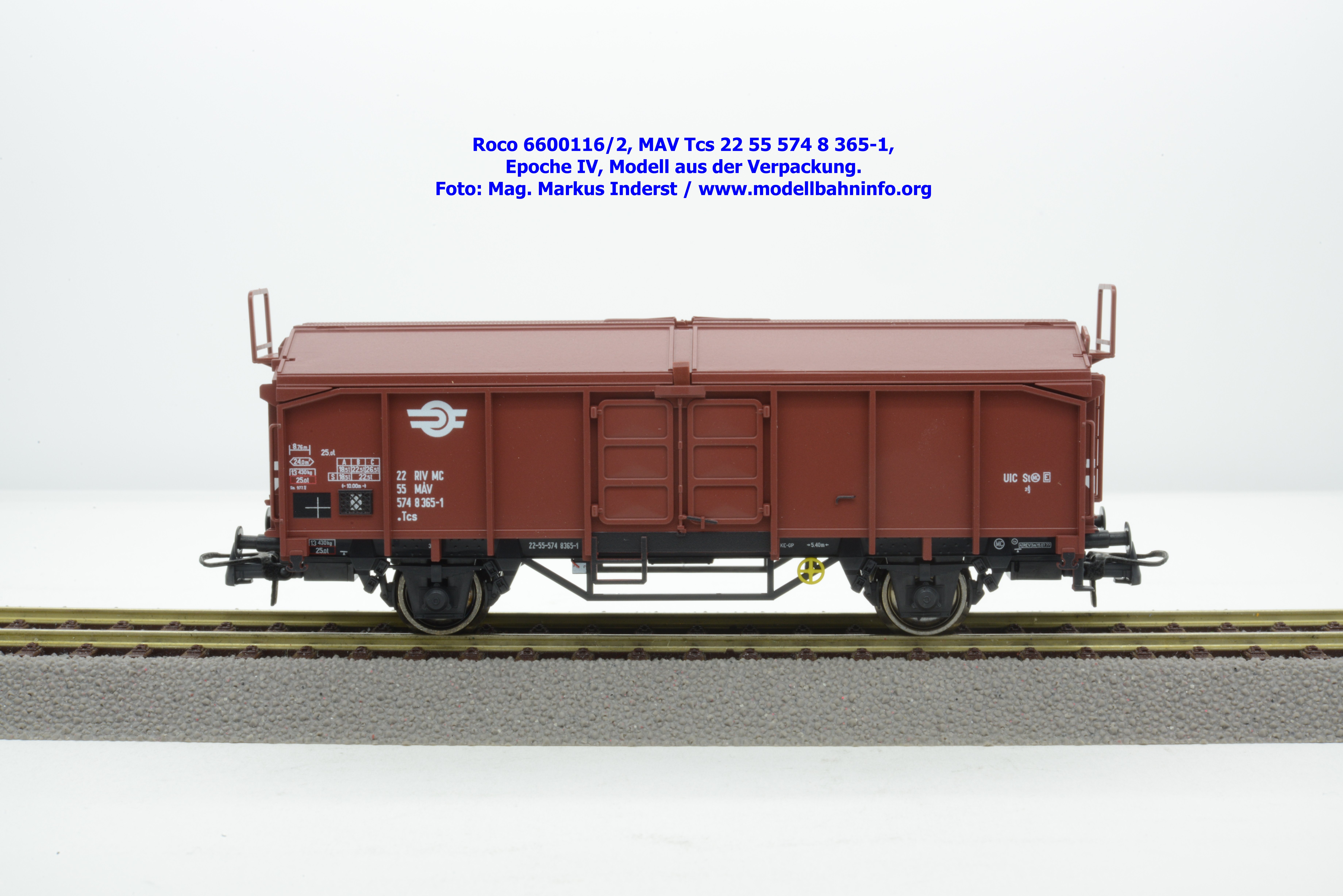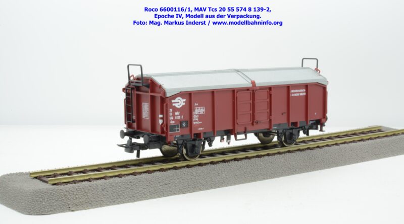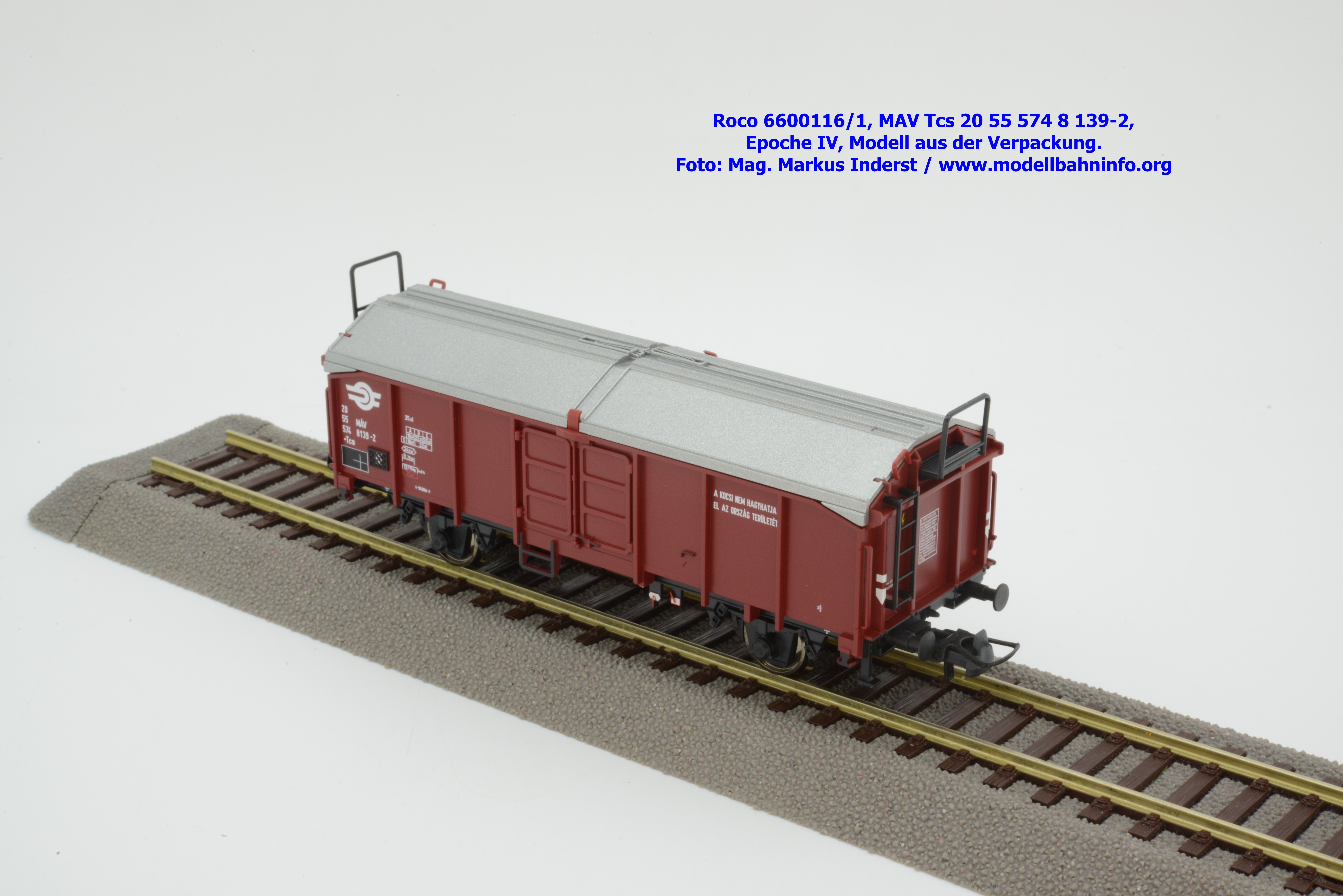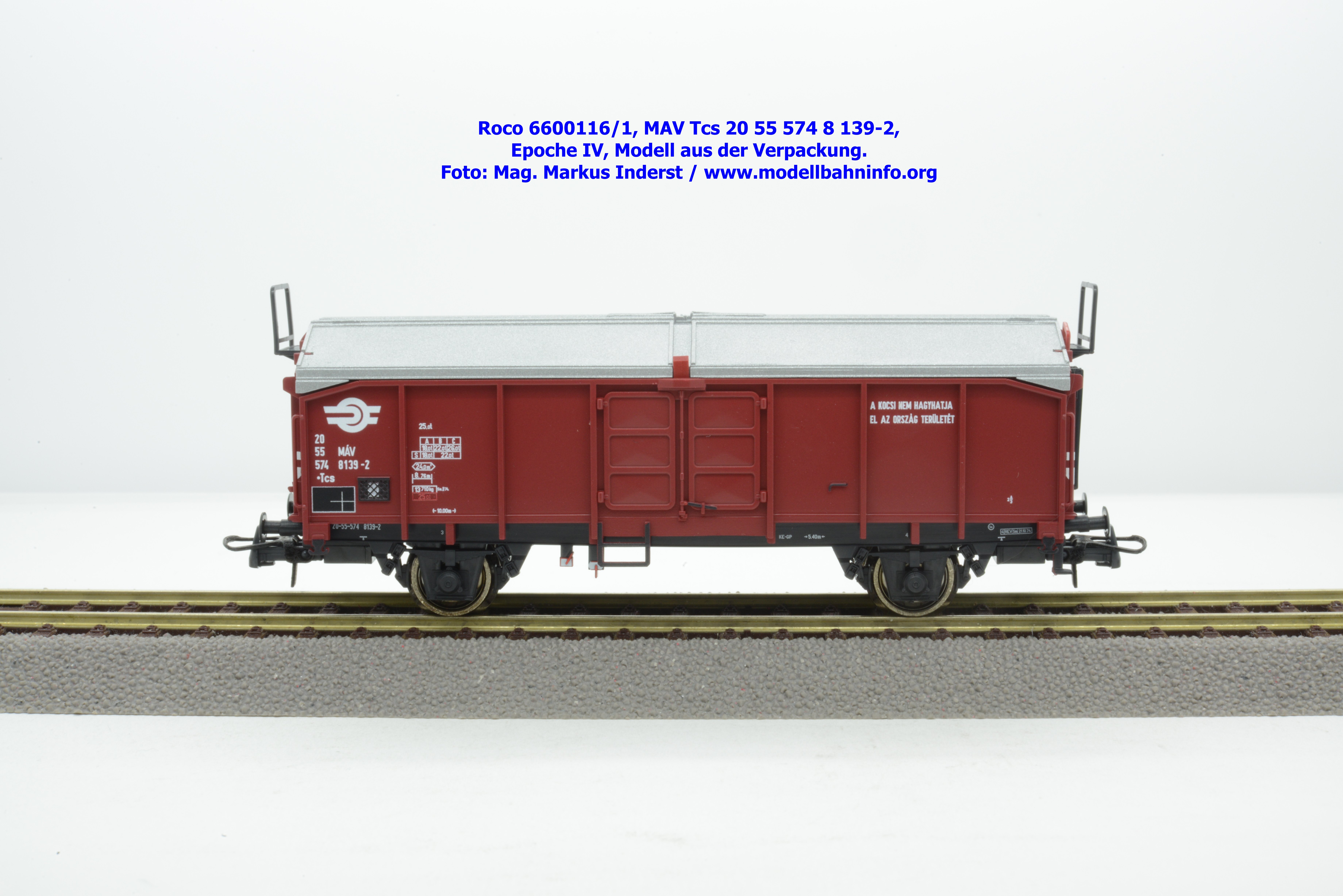 Dieser Wagentyp ist in großen Stückzahlen bei der MAV eingestellt und kam früher in Ganzzügen von Ungarn durch Österreich nach Deutschland vor Lokomotiven der DB bzw. der ÖBB zum Einsatz. Roco hat diese Wagentyp erstmals als MAV-Modelle realisiert, wobei als Einsatzzeitraum die Epoche IV vorgegeben ist. Die beiden Modelle im Wagenset sind wie gewohnt einzeln verpackt und unterscheiden sich auch optisch. Die genauen Einzelzeiten werden beim jeweiligen Modell angeführt. Die als Neuheit 2026 ausgewiesene Artikelnummer ist zum UVP von € 79,90 erhältlich.