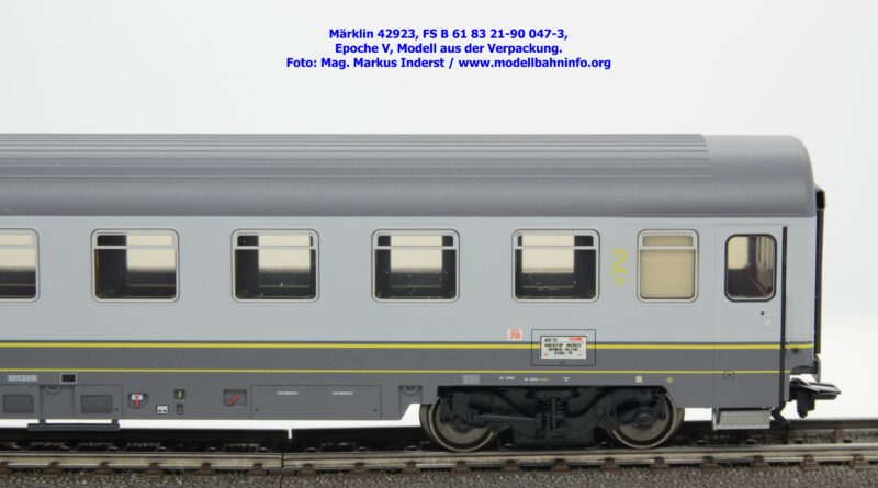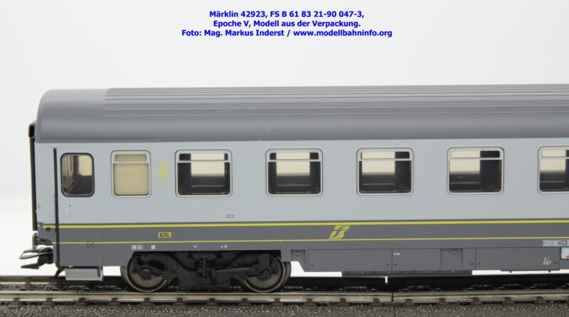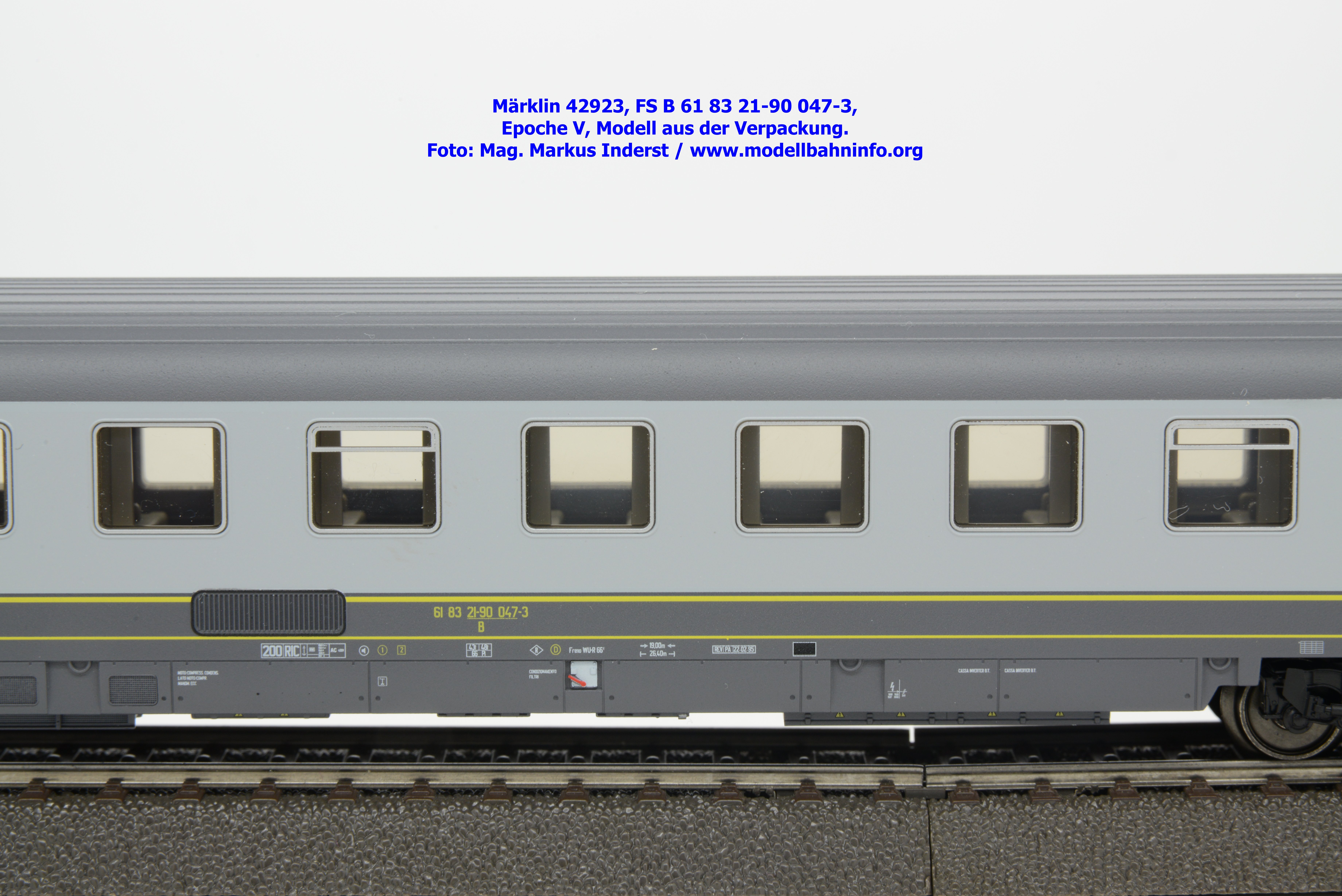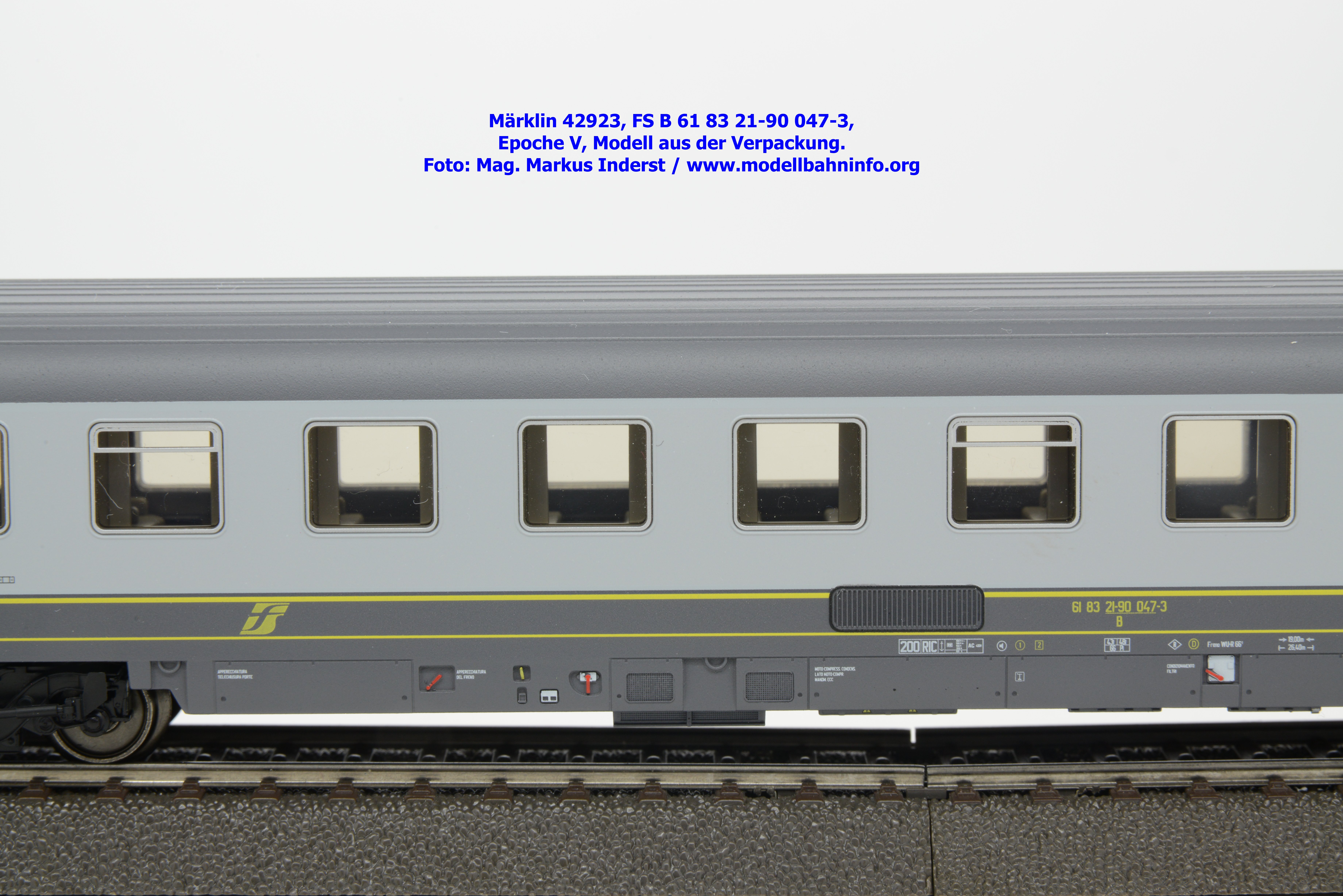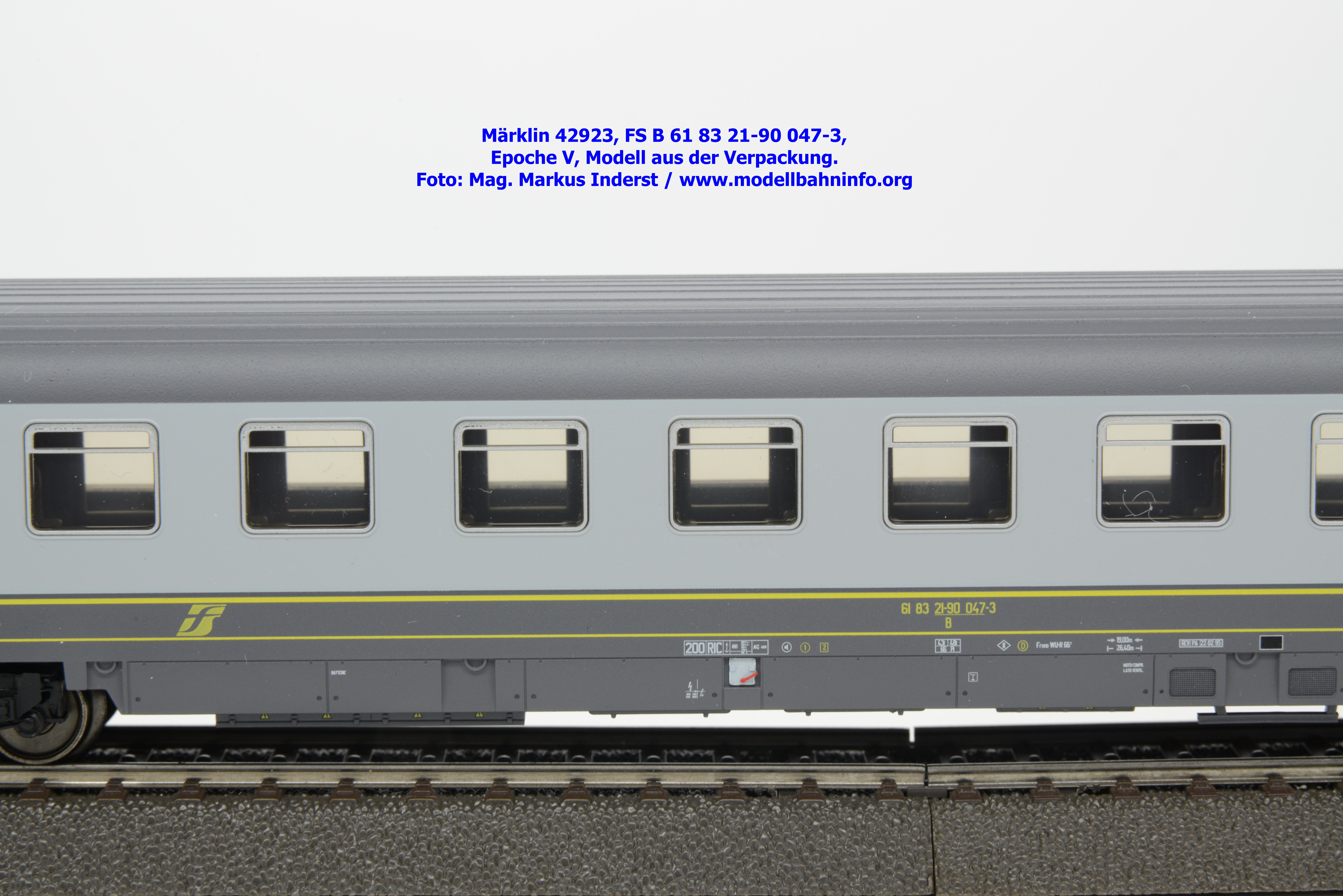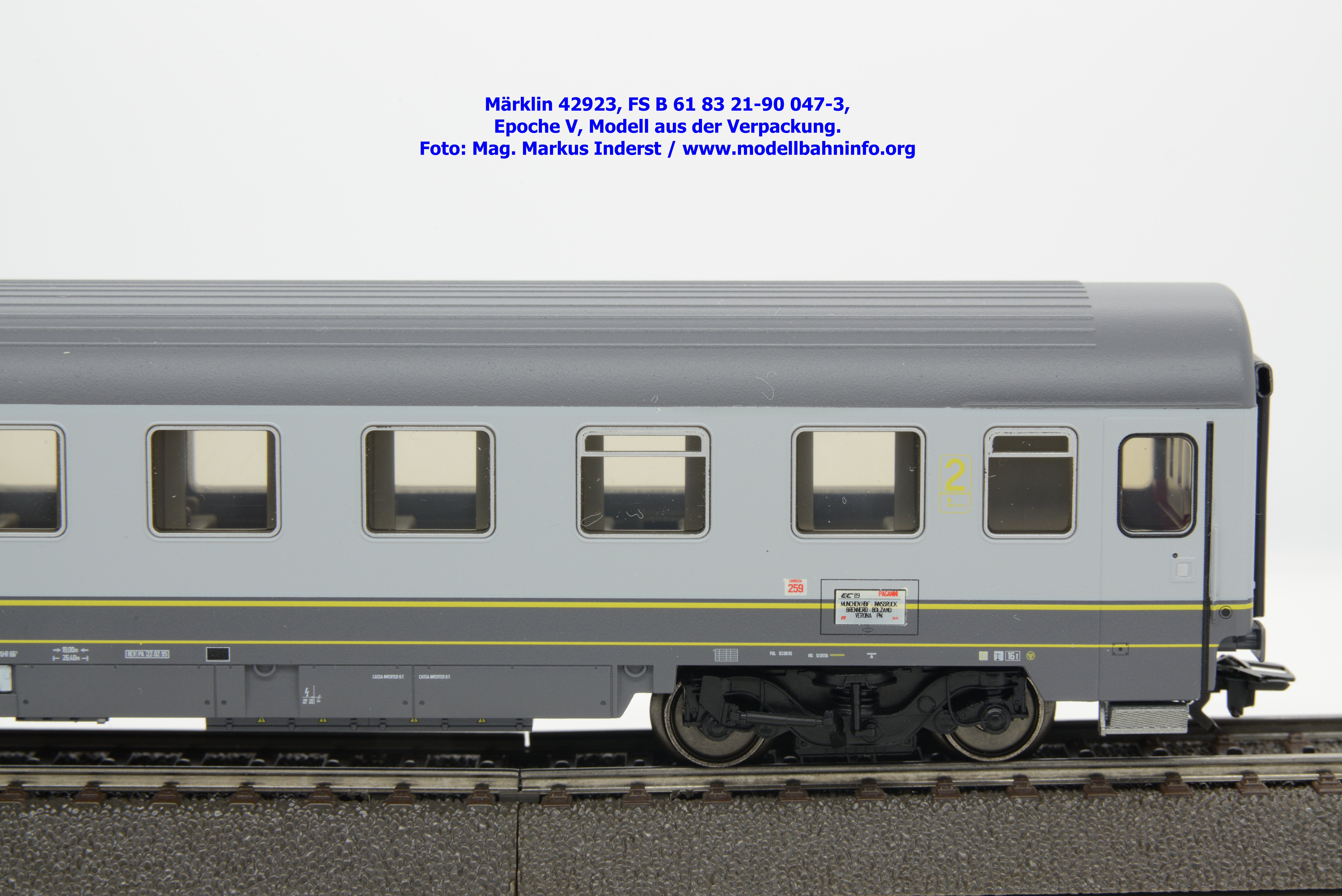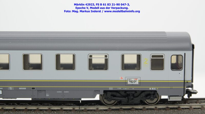 Im Rahmen dieser Neuheitenankündigung ist einer der beiden 2. Klasse Eurofima-Wagen schon ausgeliefert worden. Der 2. Klasse Eurofima-Wagen wurde mit der Gattungsbezeichnung B und der Wagennummer 61 83 21-90 047-3 bedruckt. Im Revisionsraster stehen die Angaben REV PA 22-02-95. Auch bei diesem Modell wurde das Zuglaufschild des EC 85 am Wagenkasten berücksichtigt. Das Modell ist mit der Ordnungsnummer 259 bedruckt. Der UVP beträgt € 69,99.