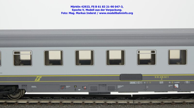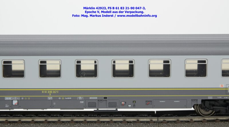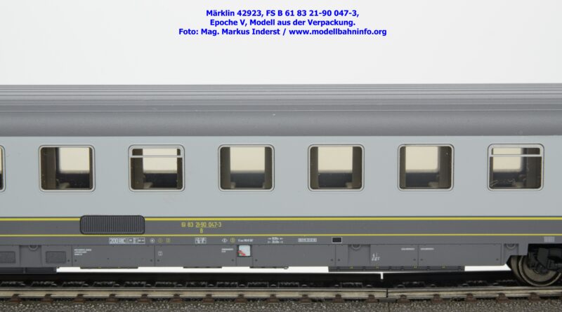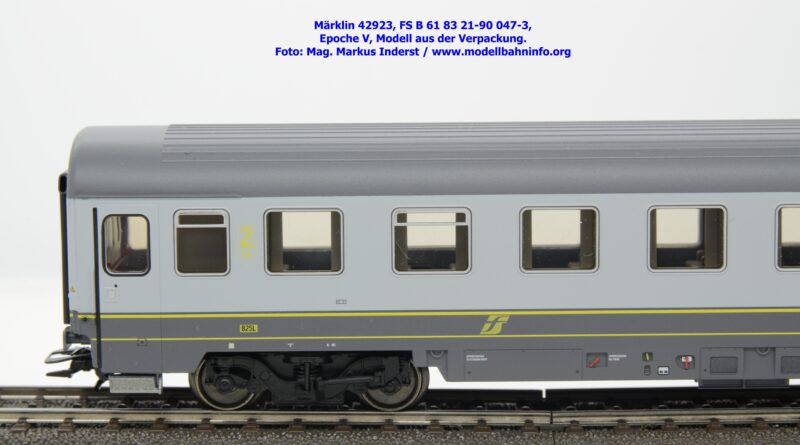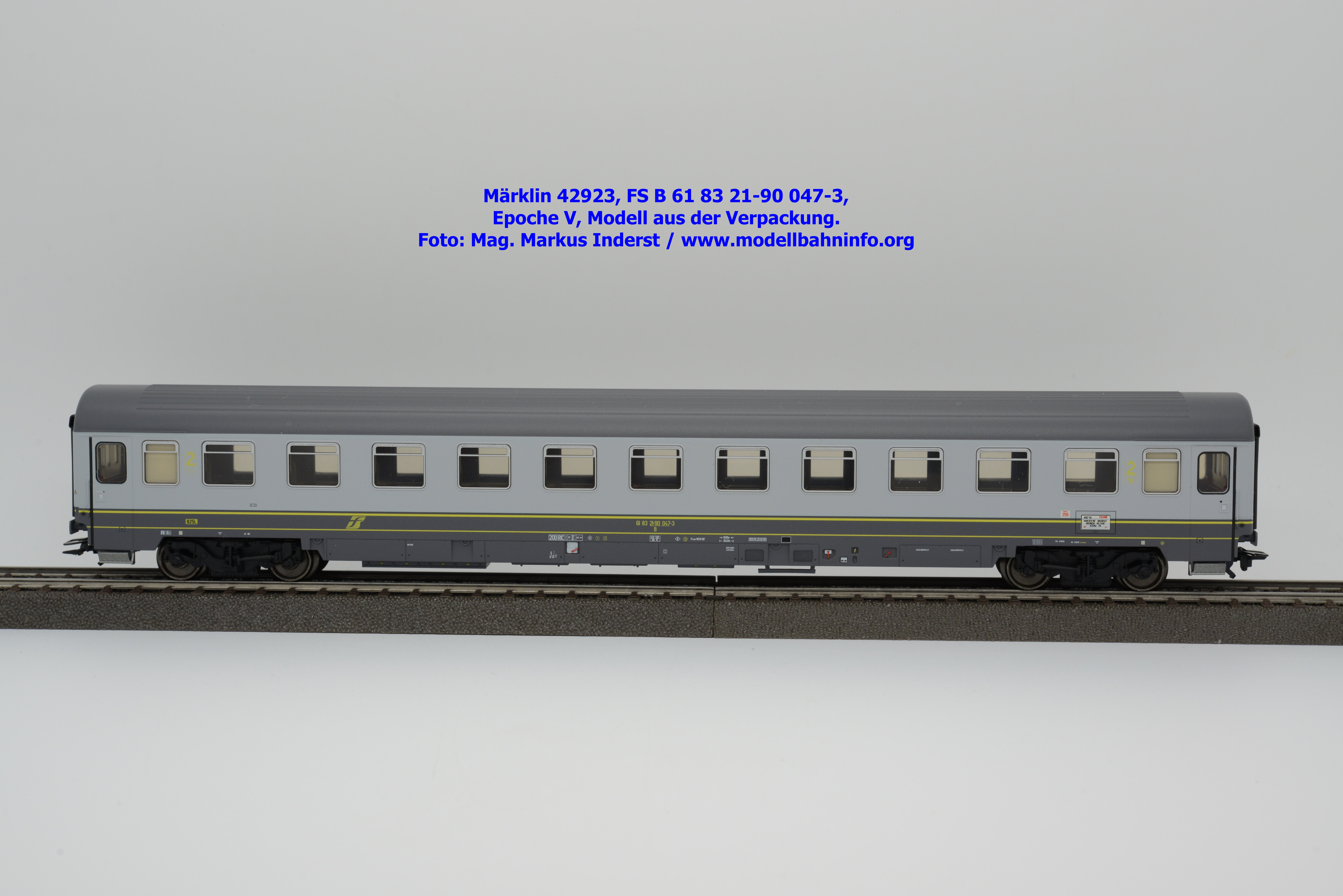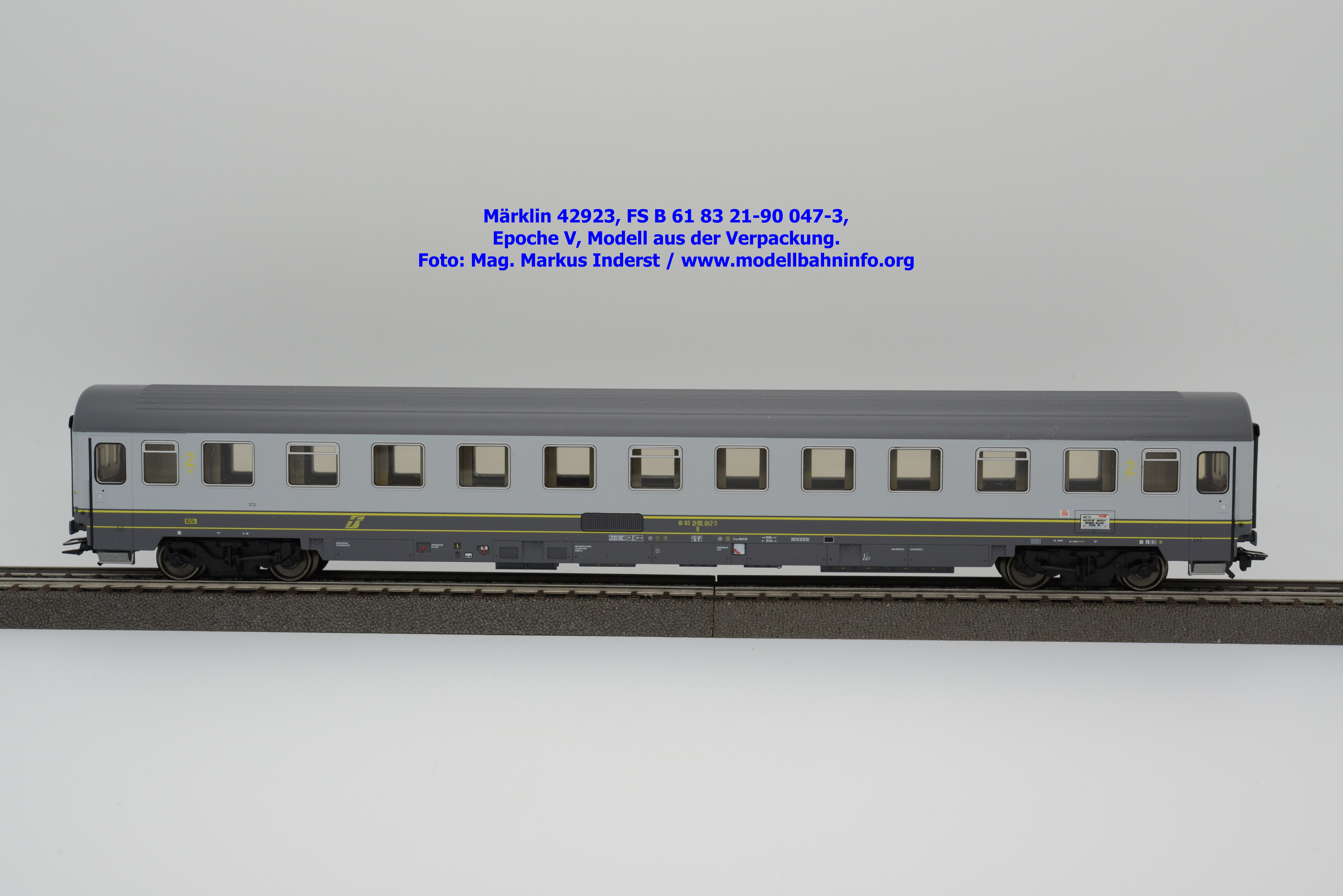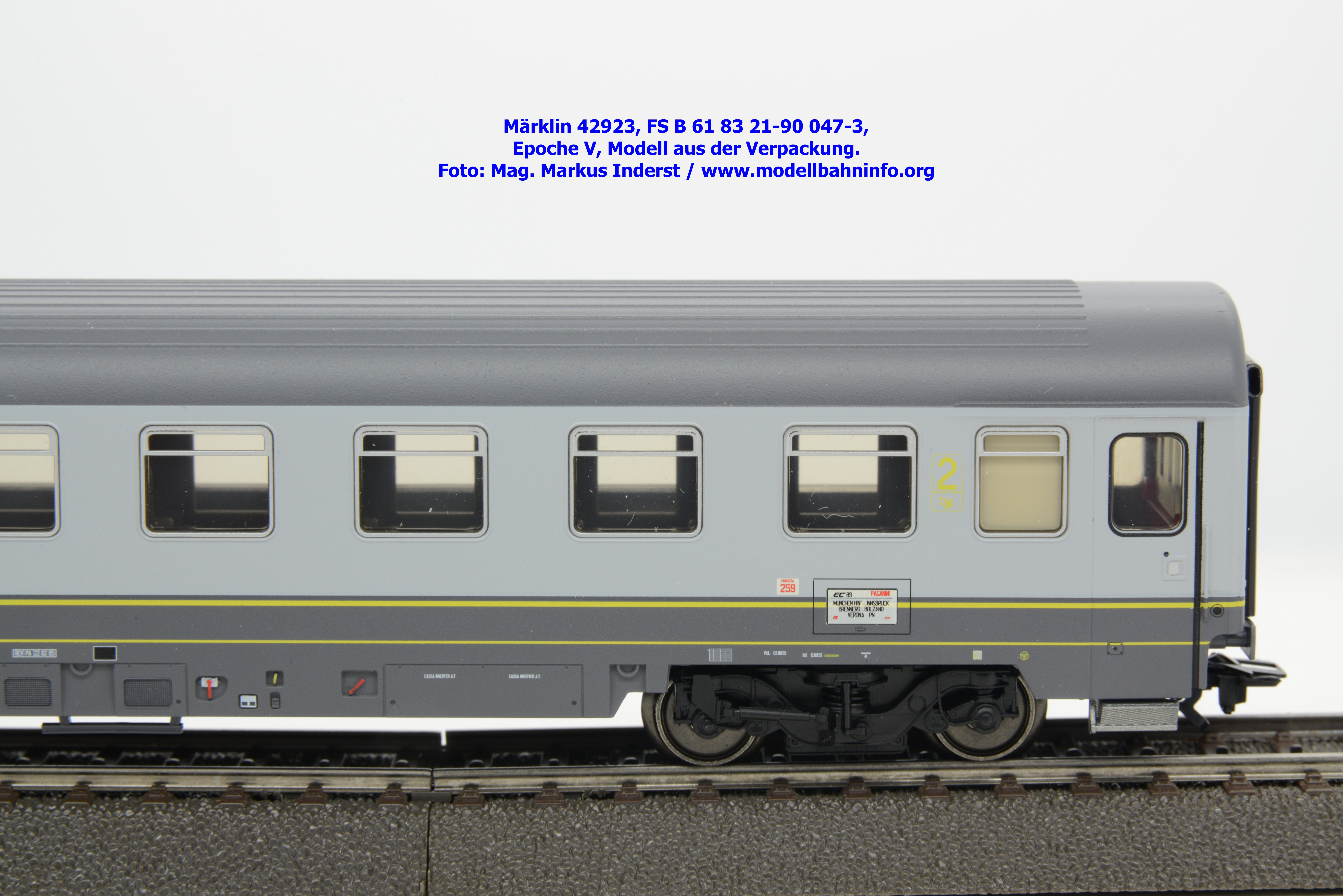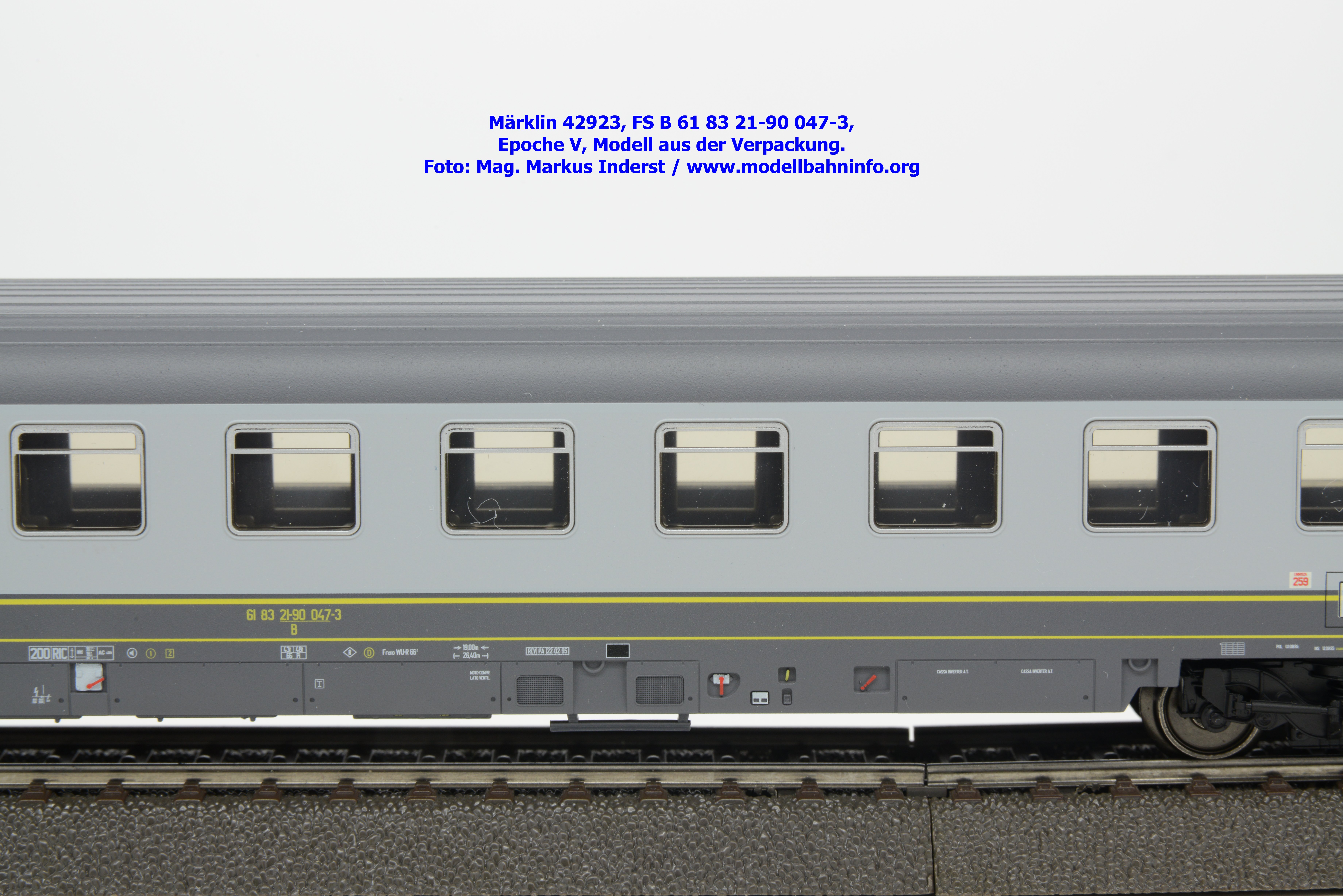 Im Rahmen dieser Neuheitenankündigung ist einer der beiden 2. Klasse Eurofima-Wagen schon ausgeliefert worden. Der 2. Klasse Eurofima-Wagen wurde mit der Gattungsbezeichnung B und der Wagennummer 61 83 21-90 047-3 bedruckt. Im Revisionsraster stehen die Angaben REV PA 22-02-95. Auch bei diesem Modell wurde das Zuglaufschild des EC 85 am Wagenkasten berücksichtigt. Das Modell ist mit der Ordnungsnummer 259 bedruckt. Der UVP beträgt € 69,99.