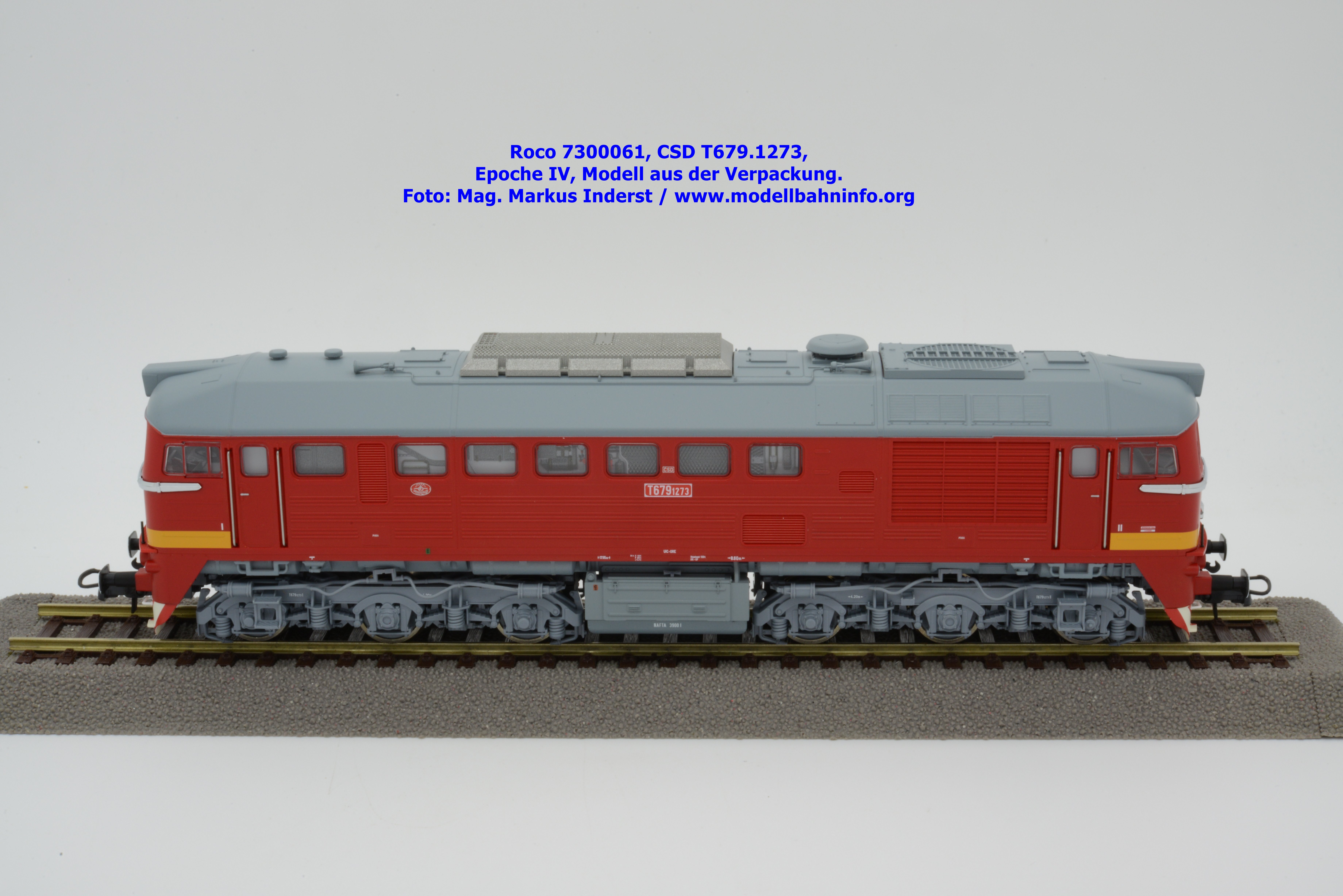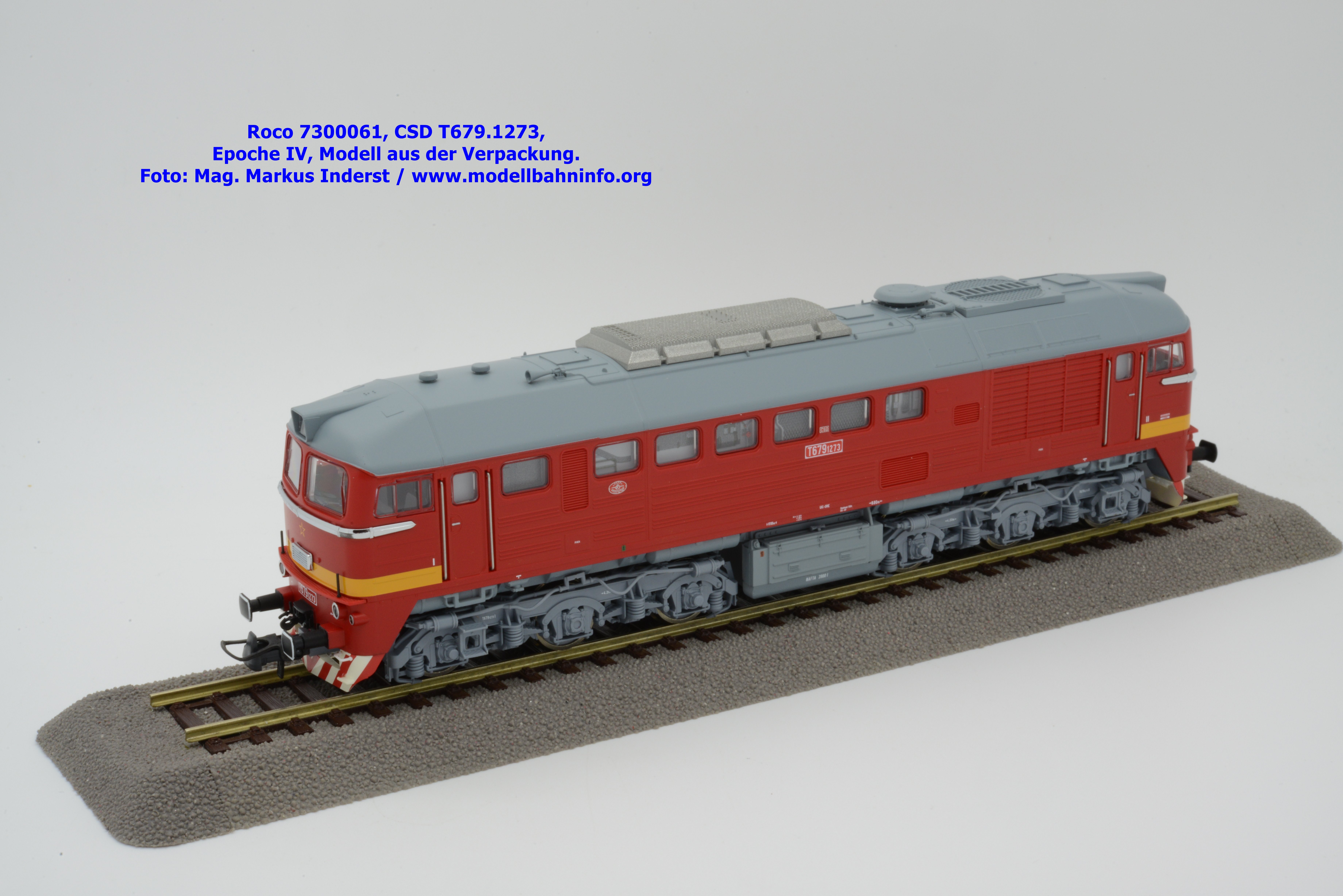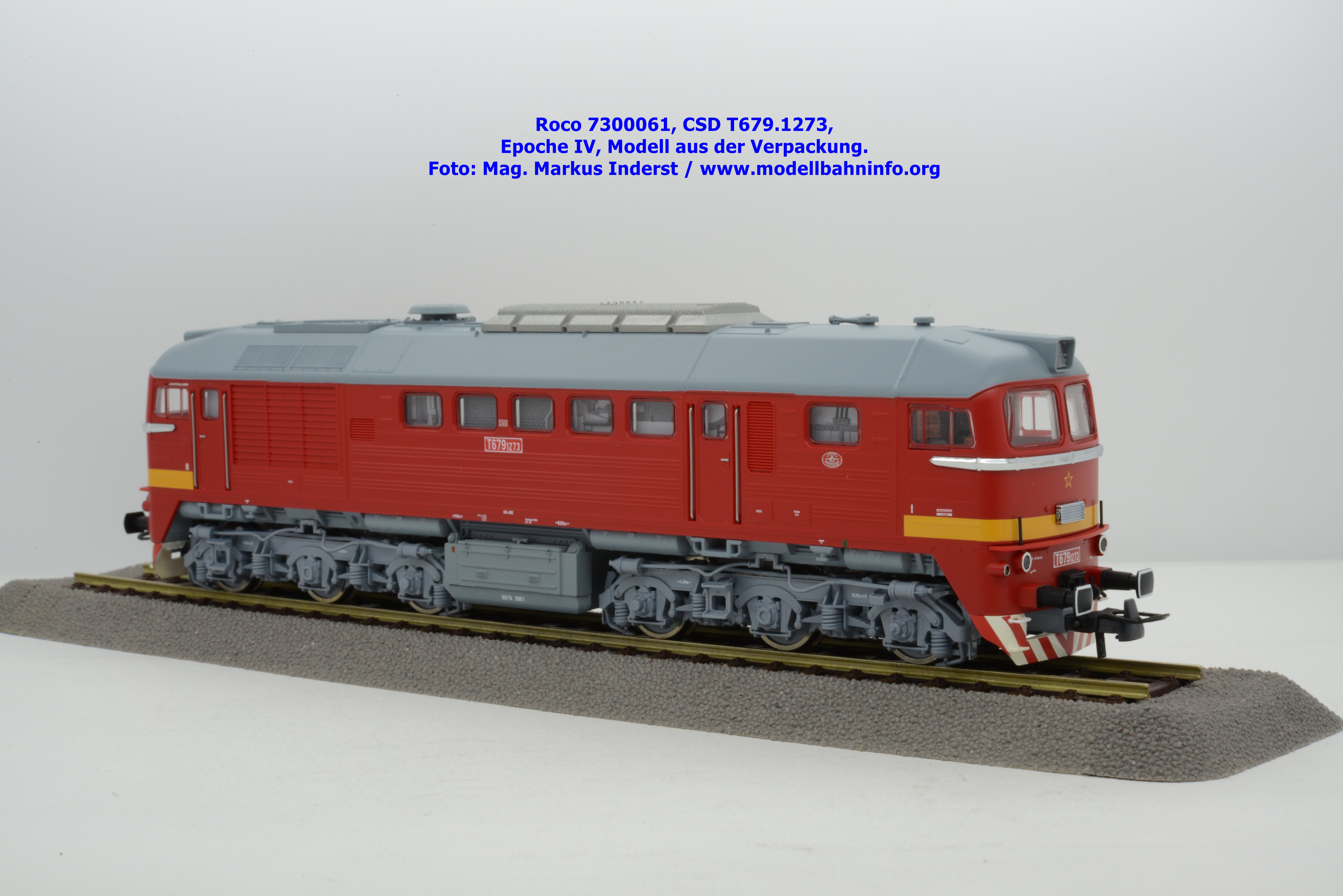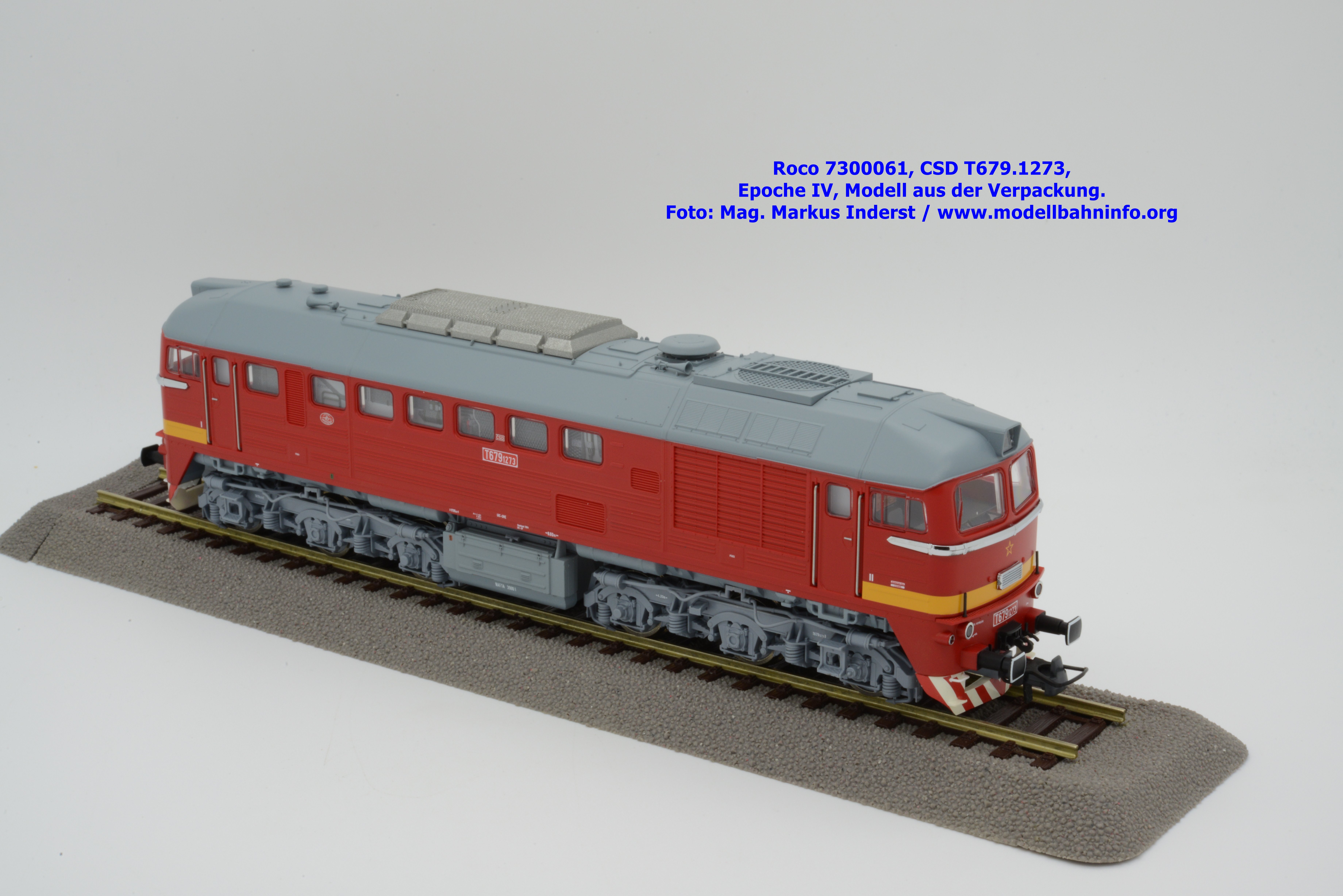 Die vielen Farbdesigns bei der CSD fördert eine weitere Farbvariante der T679 hervor. Das neue Modell der T 679.1273 ist mit schmalen gelb lackierten Balken an der Lokfront versehen. Am Modell ist als Depot Nymburk angeschrieben, Revisionsdaten finden sich keine. Die Modellausführung der als T 679.1273 ausgeführten Lokomotive ist nur für das Zweileiter-Gleichstrom-System erhältlich. Die analoge Modellausführung ist unter der besagten Artikelnummer zum UVP von € 254,90 verfügbar, die Digitalausführung weist die Artikelnummer 7310061 und den UVP von € 354,90 auf.