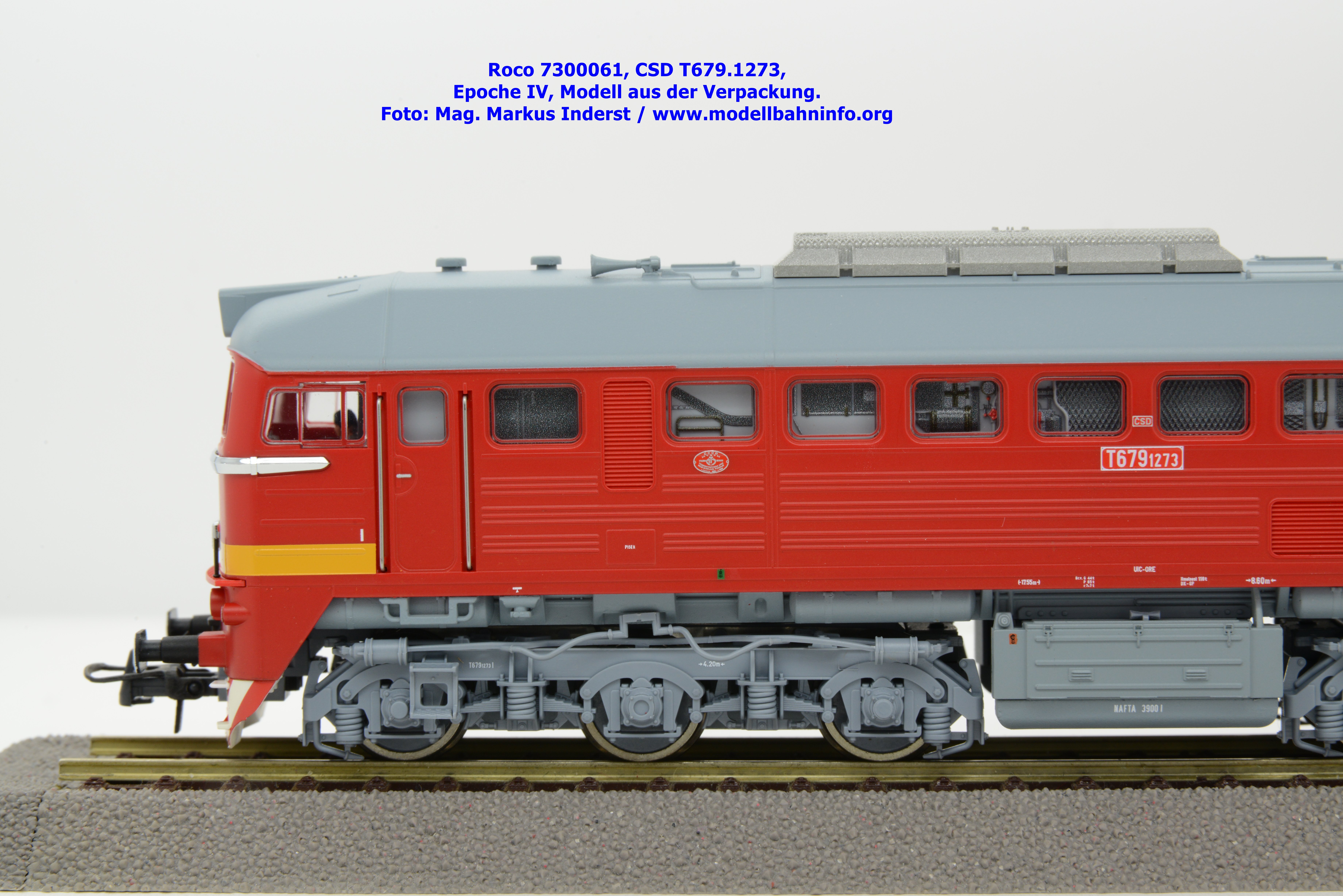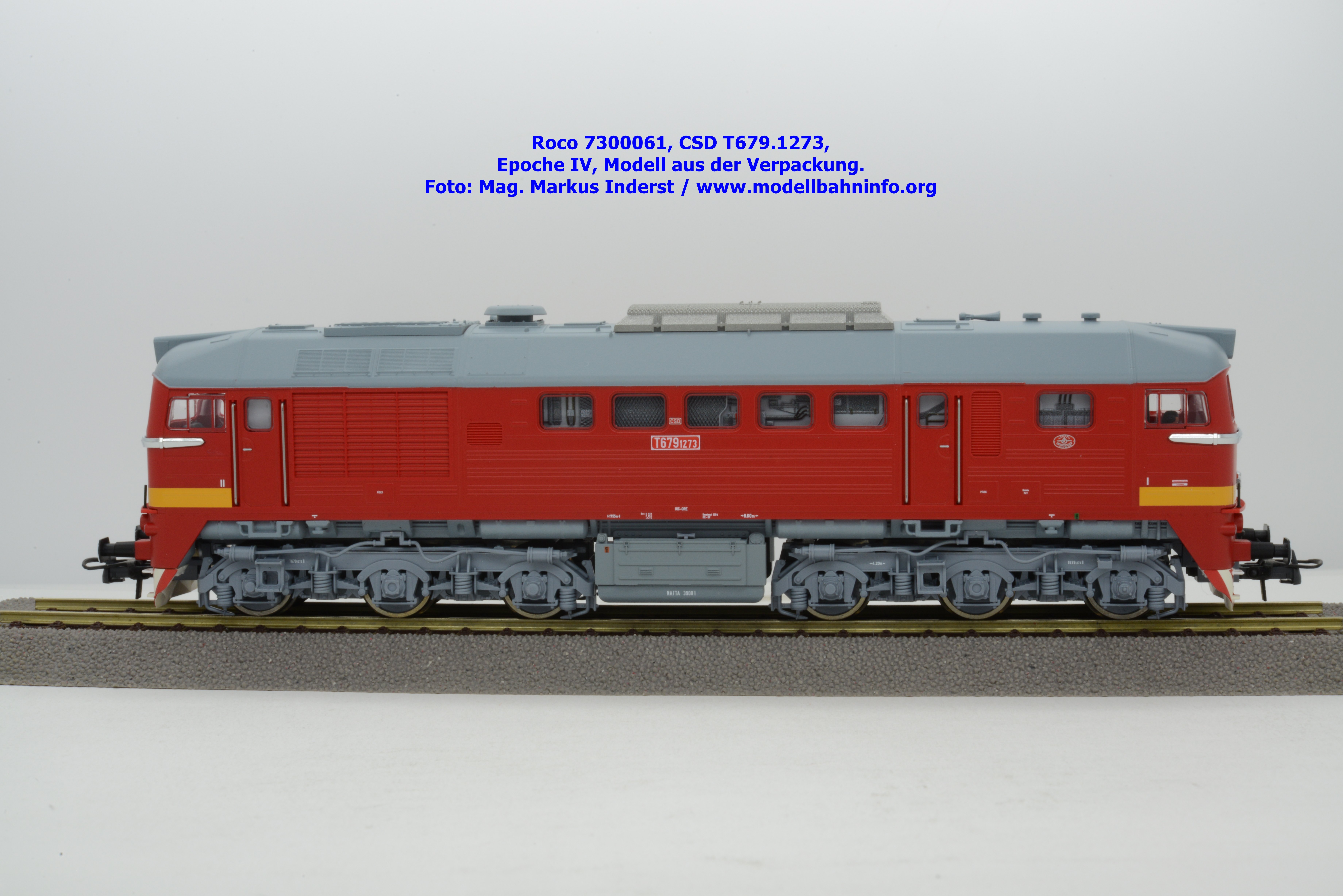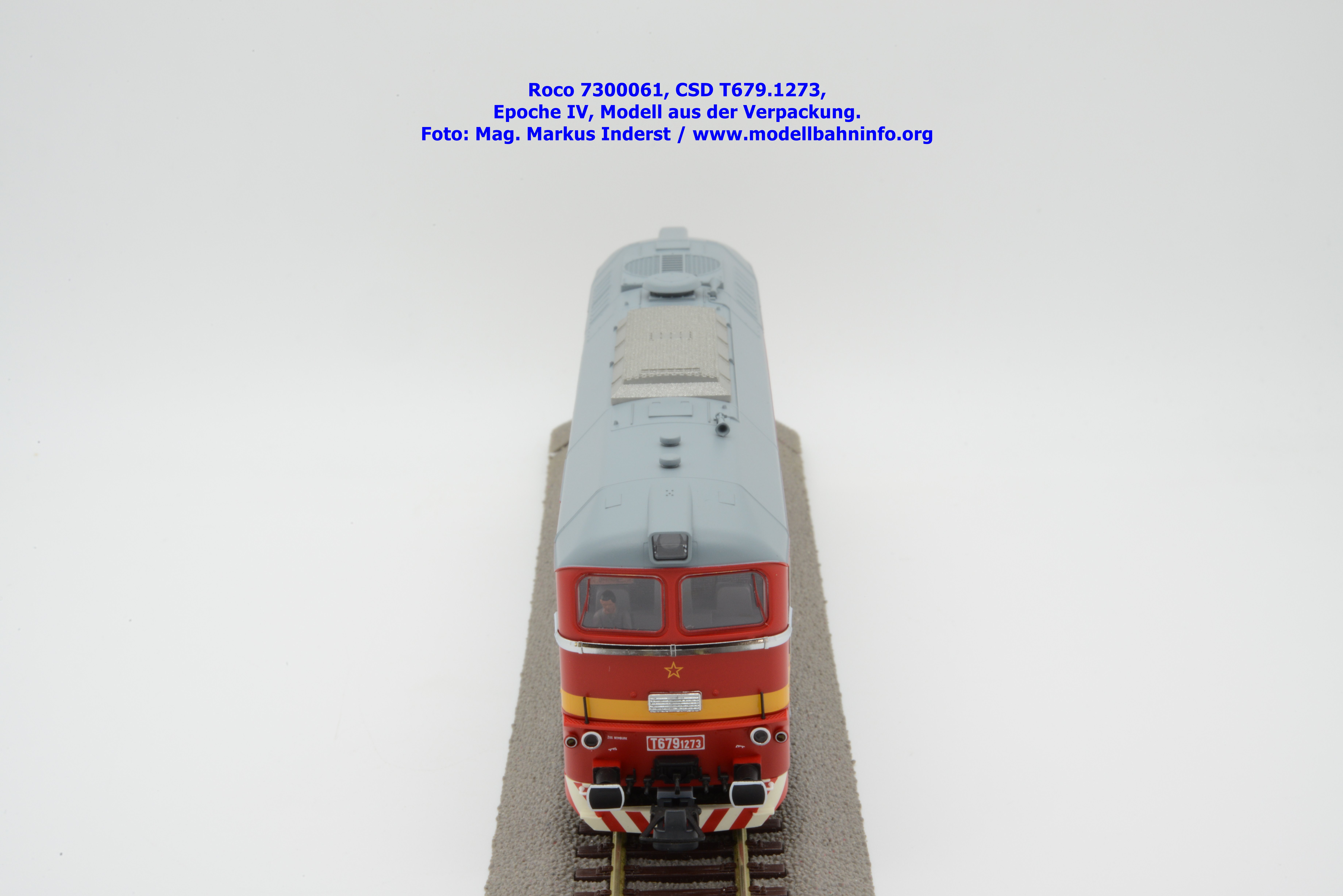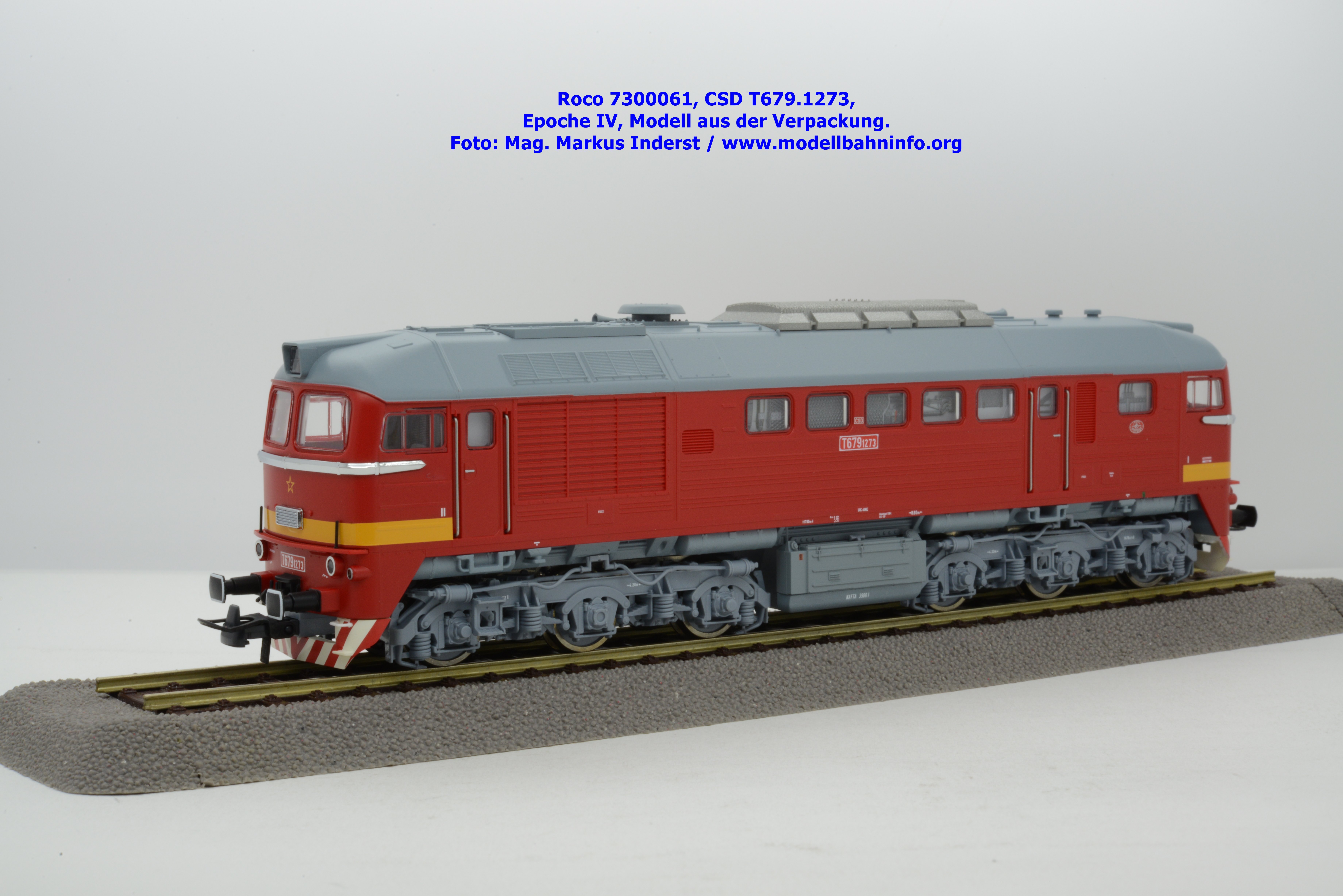 Die vielen Farbdesigns bei der CSD fördert eine weitere Farbvariante der T679 hervor. Das neue Modell der T 679.1273 ist mit schmalen gelb lackierten Balken an der Lokfront versehen. Am Modell ist als Depot Nymburk angeschrieben, Revisionsdaten finden sich keine. Die Modellausführung der als T 679.1273 ausgeführten Lokomotive ist nur für das Zweileiter-Gleichstrom-System erhältlich. Die analoge Modellausführung ist unter der besagten Artikelnummer zum UVP von € 254,90 verfügbar, die Digitalausführung weist die Artikelnummer 7310061 und den UVP von € 354,90 auf.