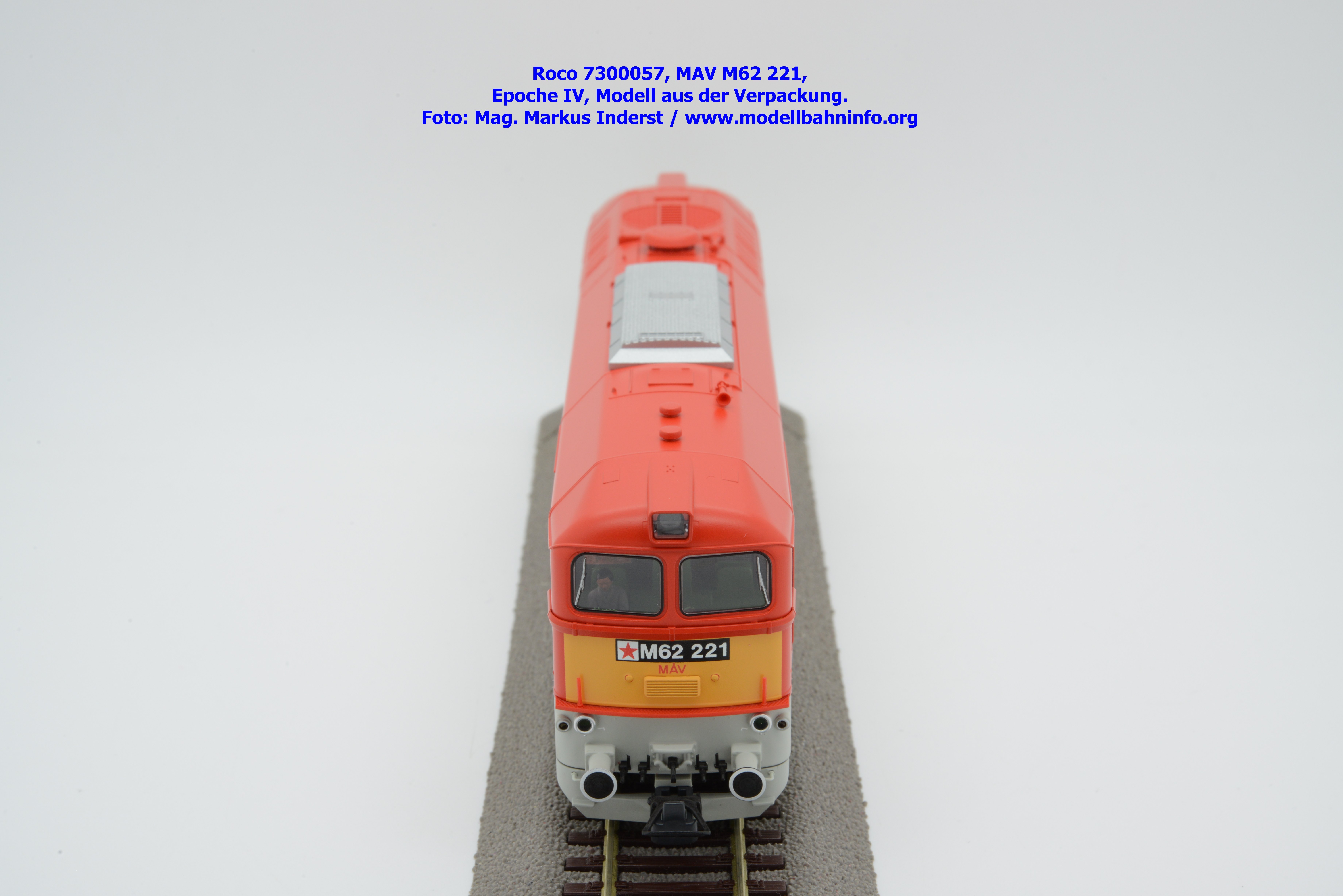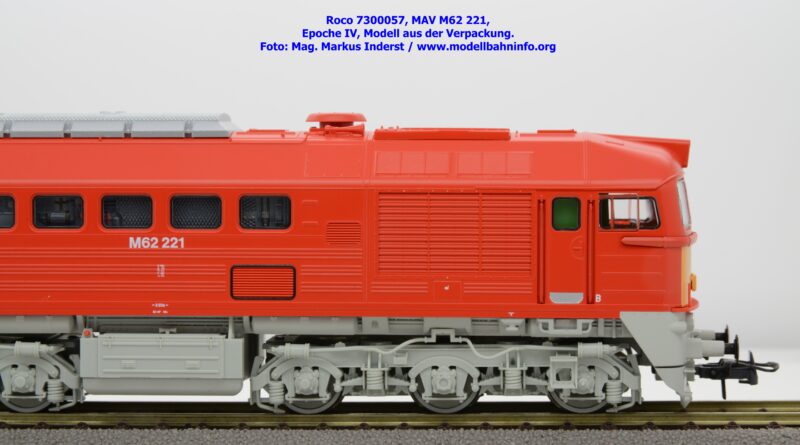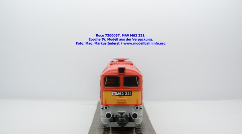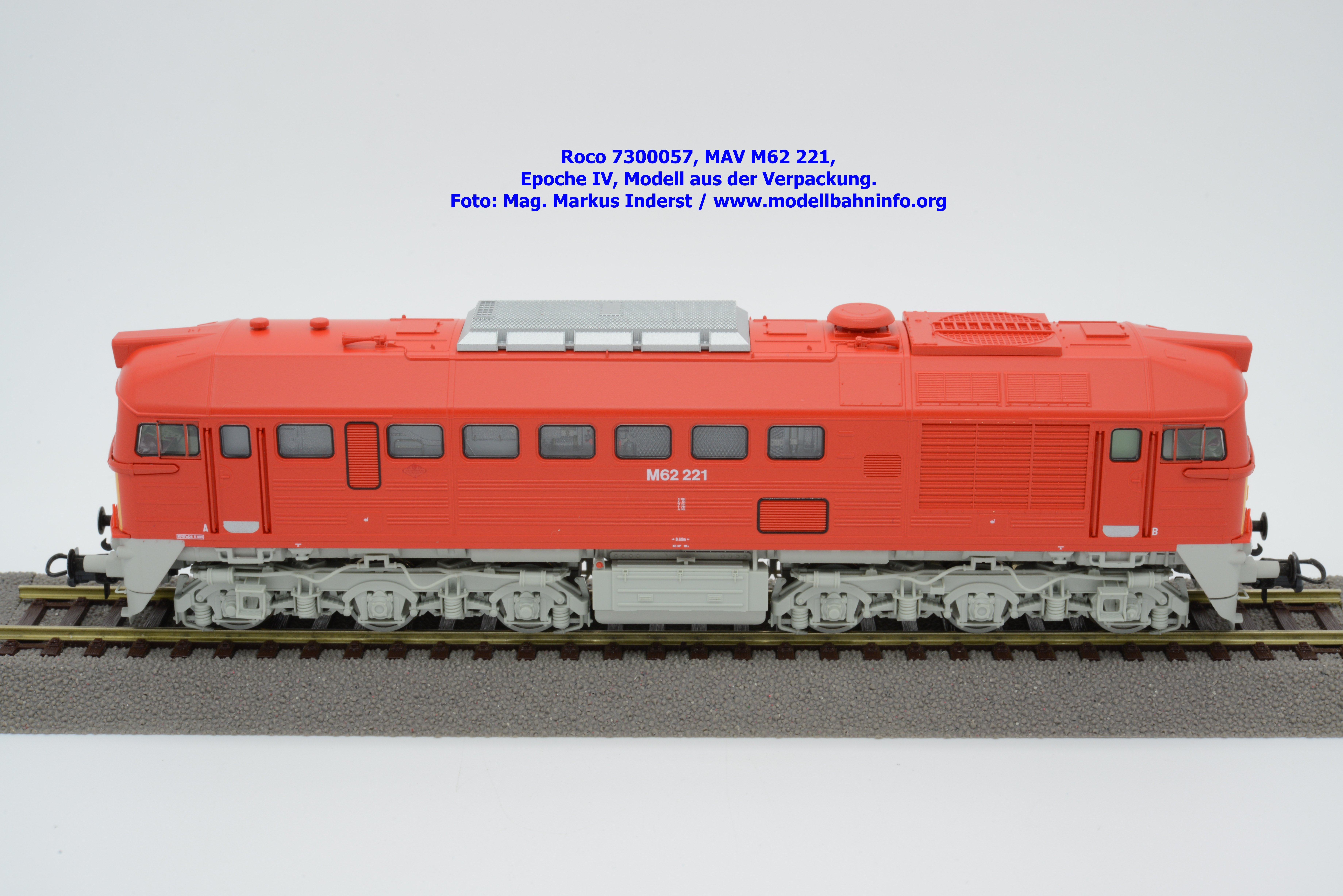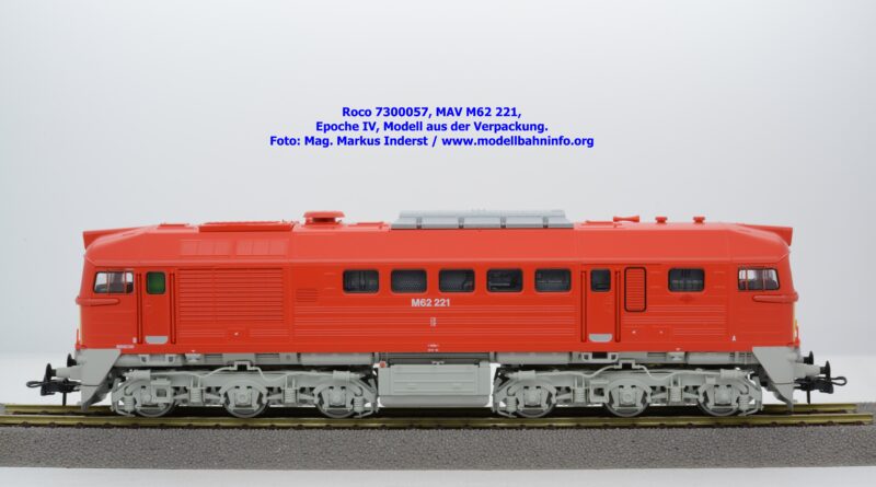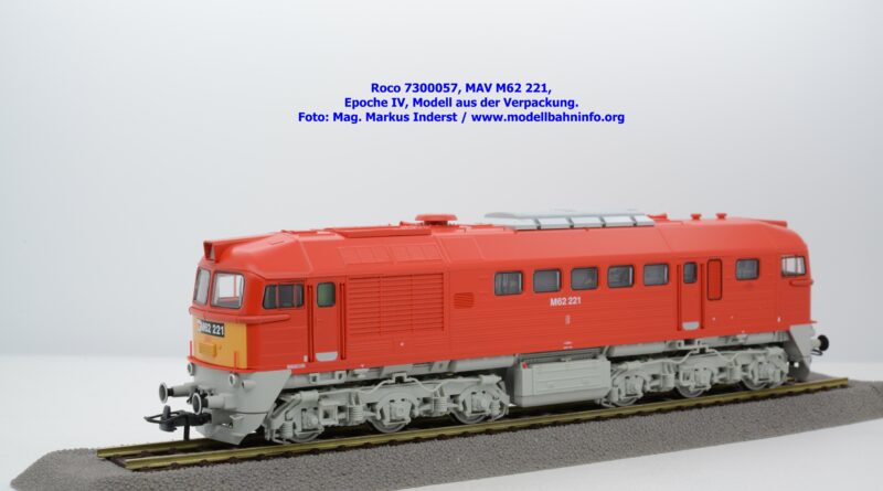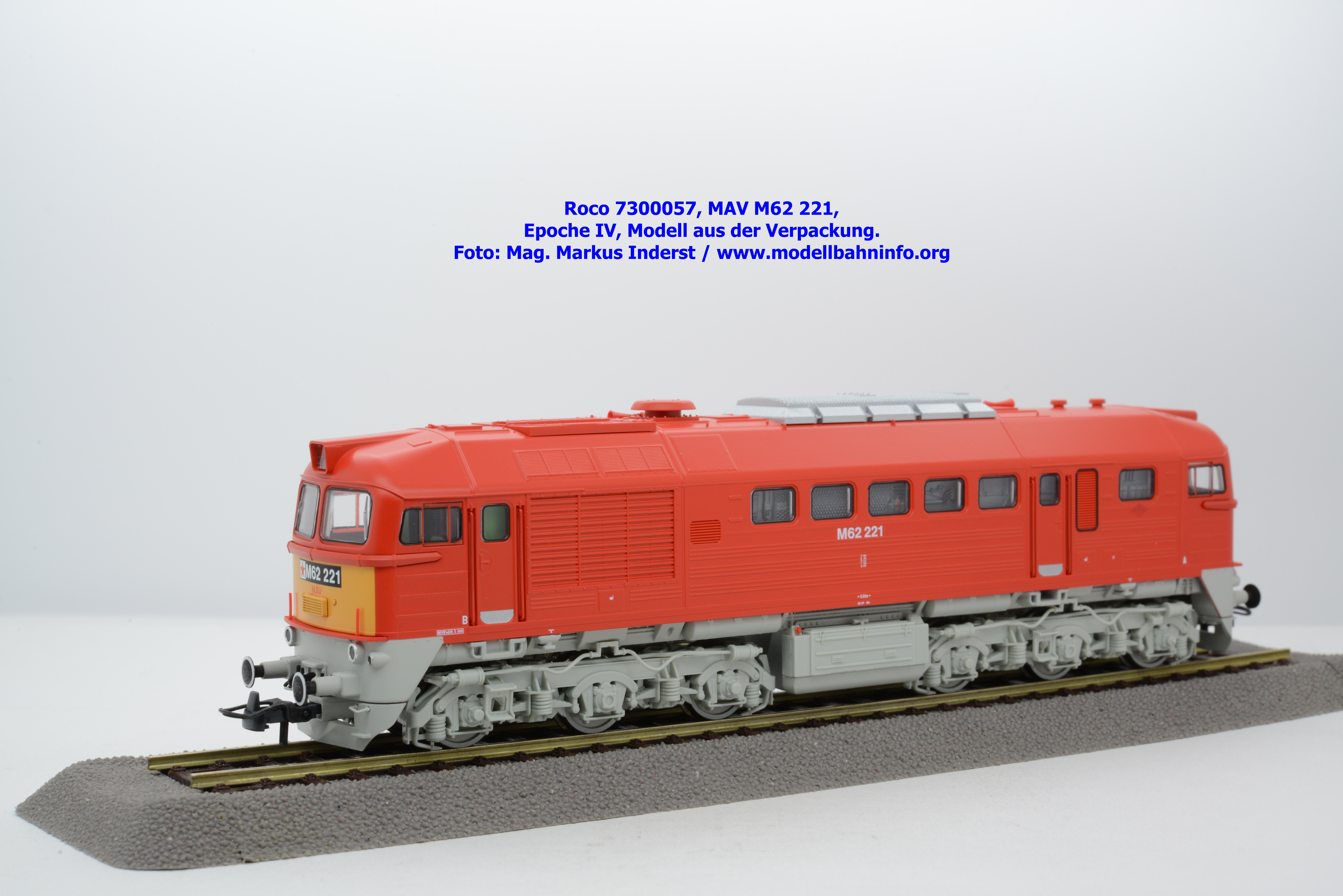 Die Ungarischen Staatsbahnen MAV haben ab dem Jahr 1965 insgesamt 289 Lokomotiven aus Lugansk übernommen und als Baureihe M62 eingereiht. 15 Lokomotiven sind in der Breitspurausführung im Betrieb genommen worden. Die in Ungarn als „Szergej“ bekannten Loks, welche im Jahr der Modellankündigung den 60. Geburtstag in Ungarn feierten, wurden im schweren Güterverkehr eingesetzt und ersetzten somit viele ältere Dampflokbauarten. Die Loks sind heute noch im Betriebseinsatz zu finden und dienten Roco als Vorbild für die aktuelle Modellnachbildung des als M62.221 ausgeführten Modells. Am Modell sind die Untersuchungsdaten mit REV Fm 26. 5.980 angeschrieben. Die Angabe einer Heimatdienststelle fehlt. Roco hat die Szergej nur für das Zweileiter-Gleichstrom-System gefertigt. Die analoge Modellausführung ist zum UVP von € 254,90 erhältlich, wiewohl die digitale Gleichstrom-Lok mit Loksound unter der Artikelnummer 7310057 zum UVP von € 354,90 lieferbar ist. Roco hat hierfür auch ein günstiges Wagenset mit fünf MAV-Güterwagen aus unterschiedlichen Wagentypen (Artikelnummer 6600126, UVP € 149,90) ins Sortiment genommen.