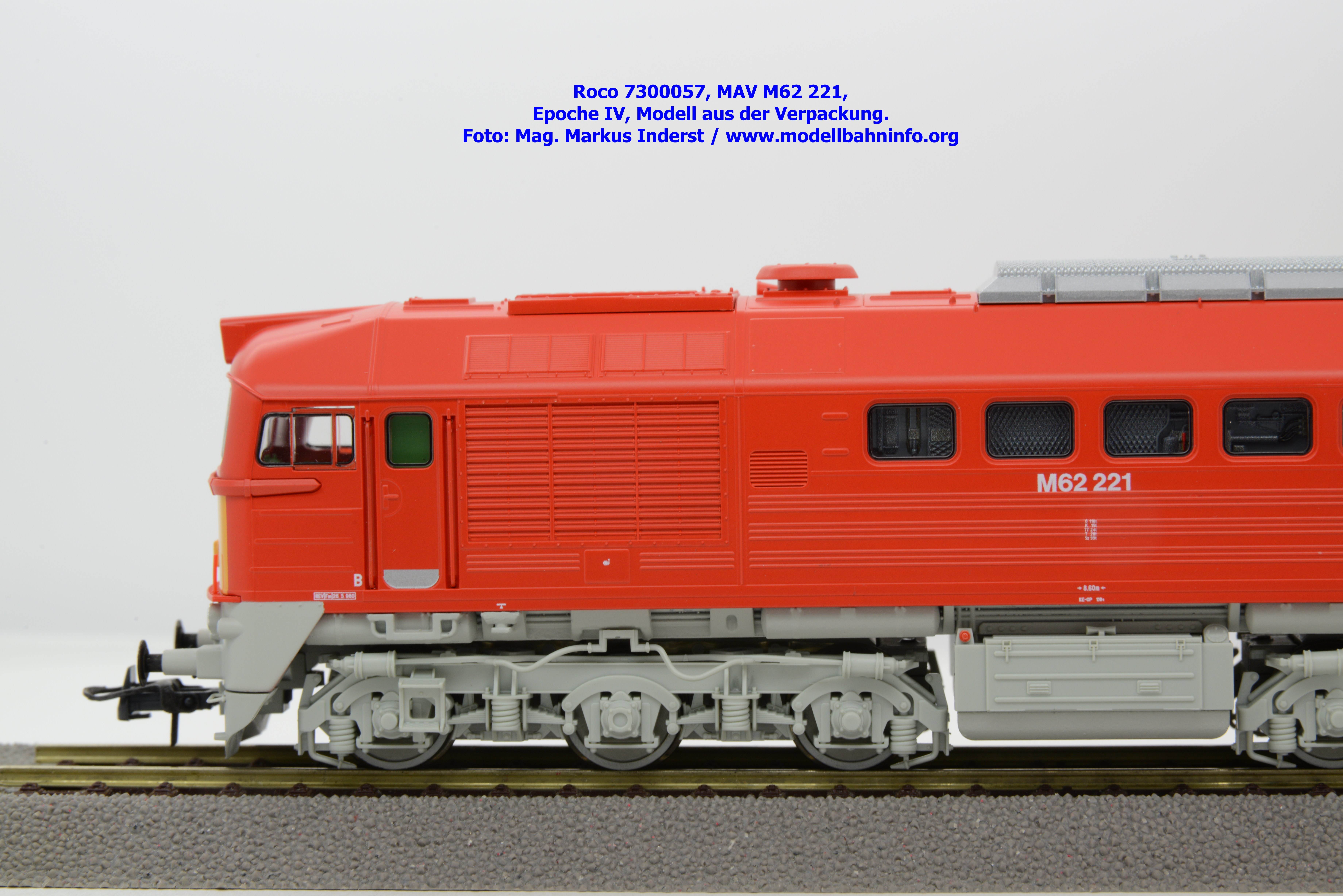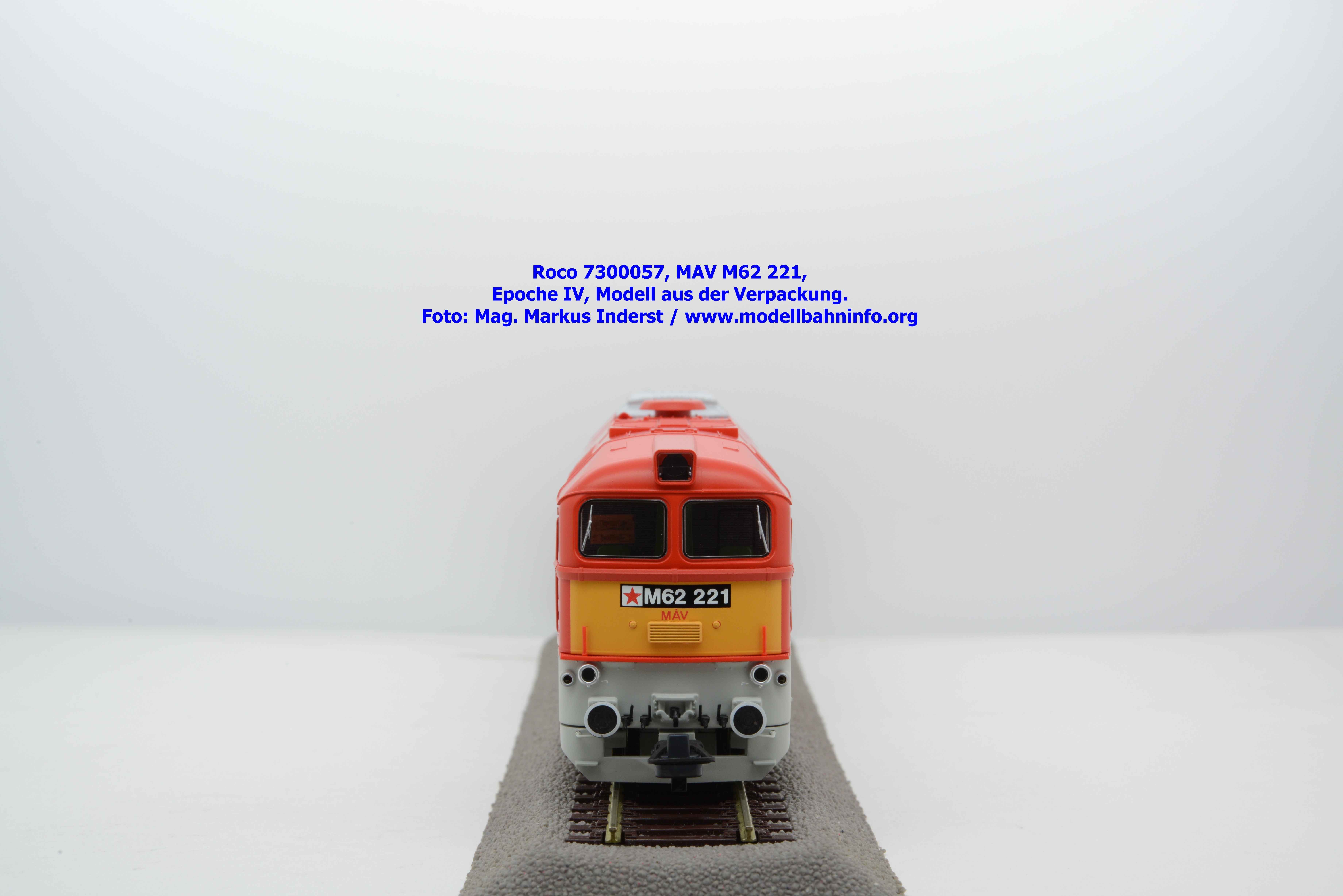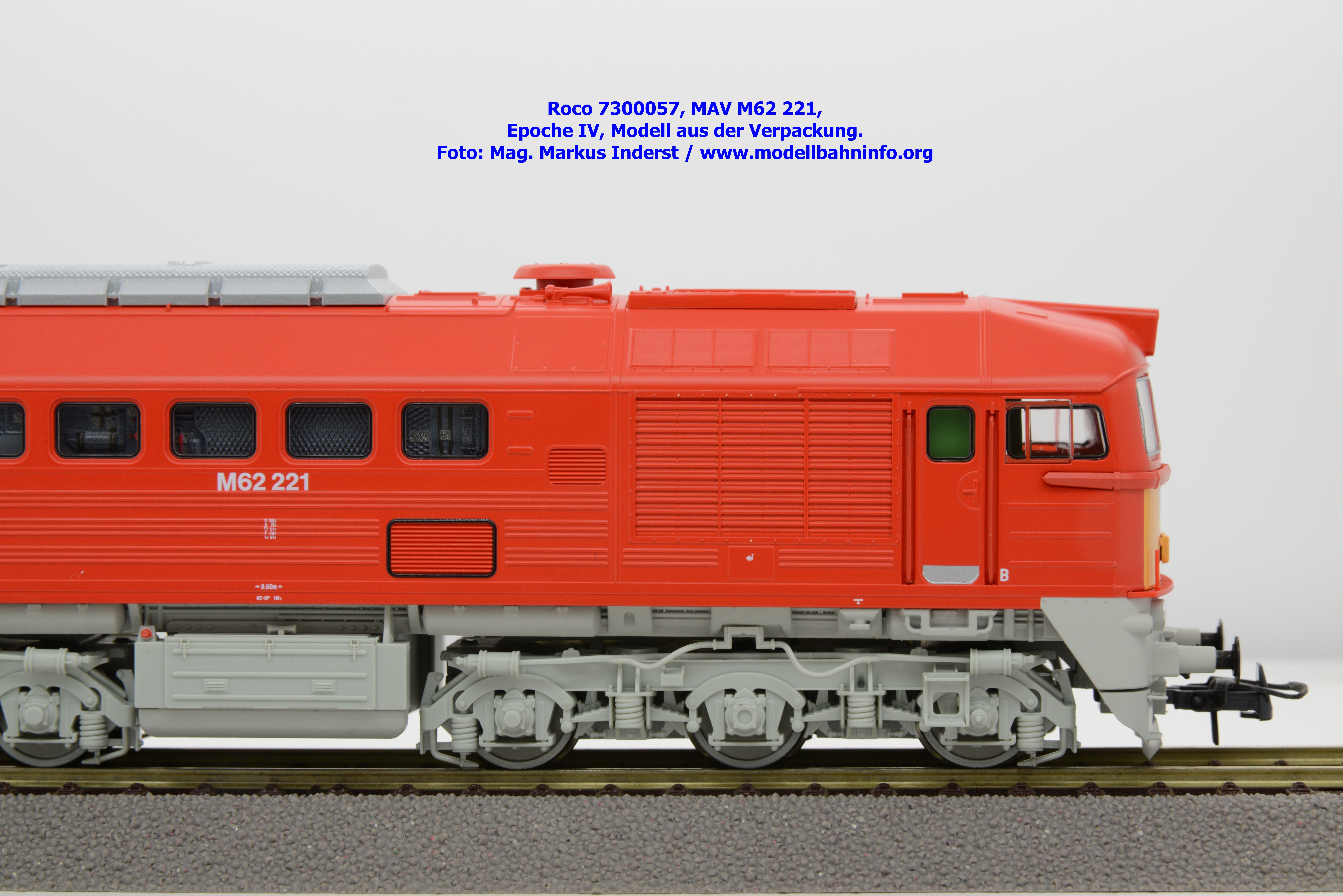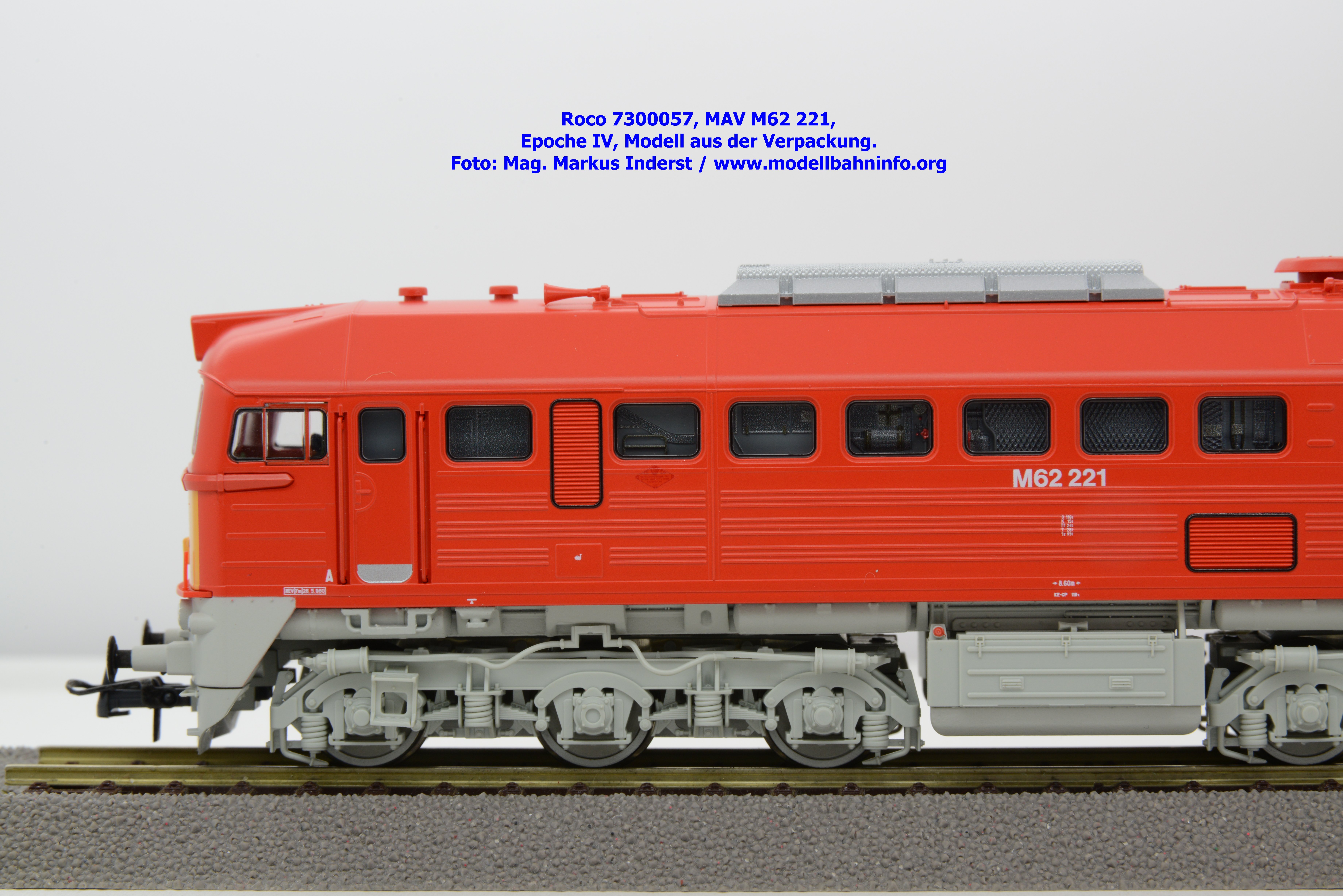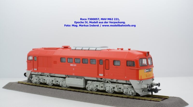 Die Ungarischen Staatsbahnen MAV haben ab dem Jahr 1965 insgesamt 289 Lokomotiven aus Lugansk übernommen und als Baureihe M62 eingereiht. 15 Lokomotiven sind in der Breitspurausführung im Betrieb genommen worden. Die in Ungarn als „Szergej“ bekannten Loks, welche im Jahr der Modellankündigung den 60. Geburtstag in Ungarn feierten, wurden im schweren Güterverkehr eingesetzt und ersetzten somit viele ältere Dampflokbauarten. Die Loks sind heute noch im Betriebseinsatz zu finden und dienten Roco als Vorbild für die aktuelle Modellnachbildung des als M62.221 ausgeführten Modells. Am Modell sind die Untersuchungsdaten mit REV Fm 26. 5.980 angeschrieben. Die Angabe einer Heimatdienststelle fehlt. Roco hat die Szergej nur für das Zweileiter-Gleichstrom-System gefertigt. Die analoge Modellausführung ist zum UVP von € 254,90 erhältlich, wiewohl die digitale Gleichstrom-Lok mit Loksound unter der Artikelnummer 7310057 zum UVP von € 354,90 lieferbar ist. Roco hat hierfür auch ein günstiges Wagenset mit fünf MAV-Güterwagen aus unterschiedlichen Wagentypen (Artikelnummer 6600126, UVP € 149,90) ins Sortiment genommen.