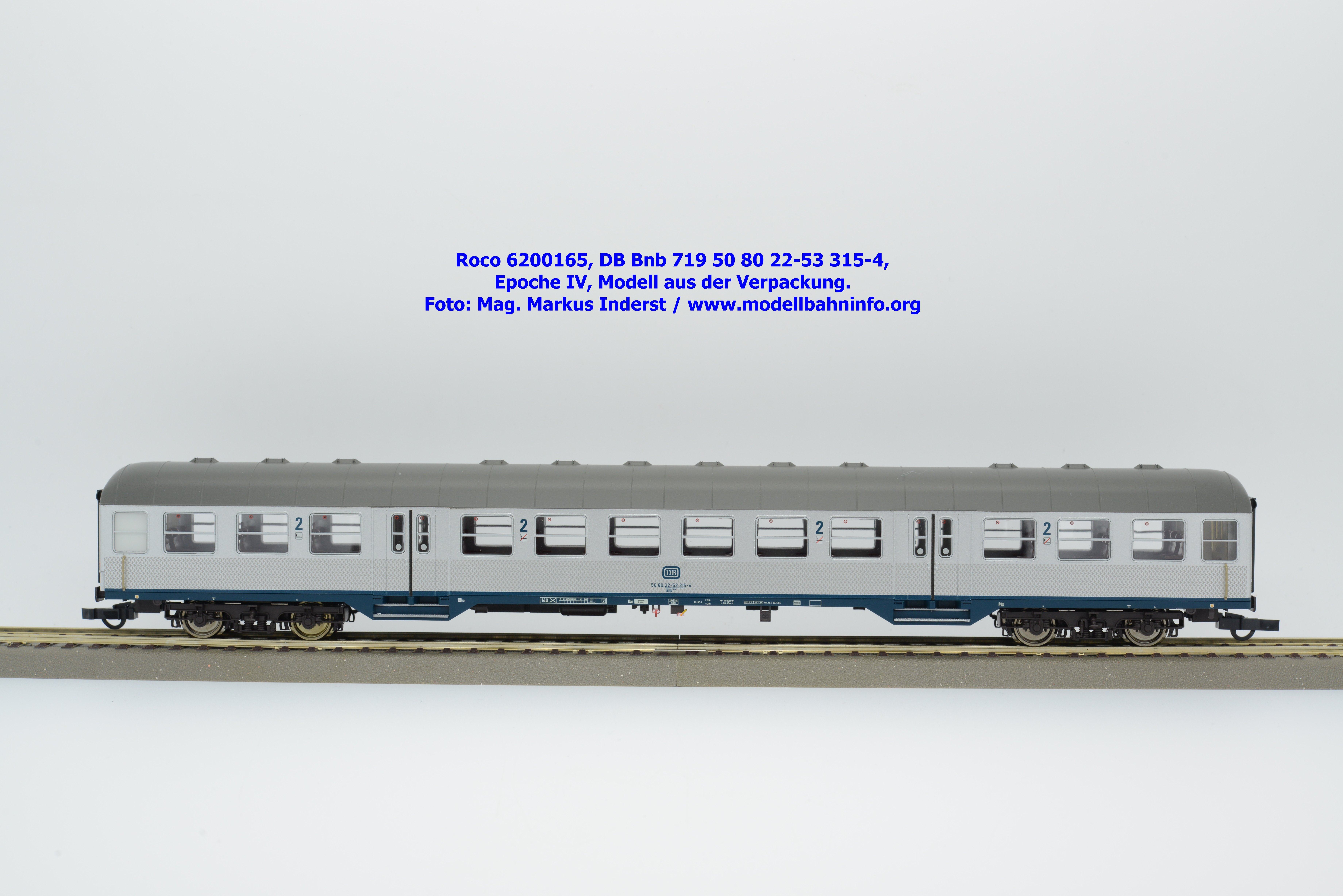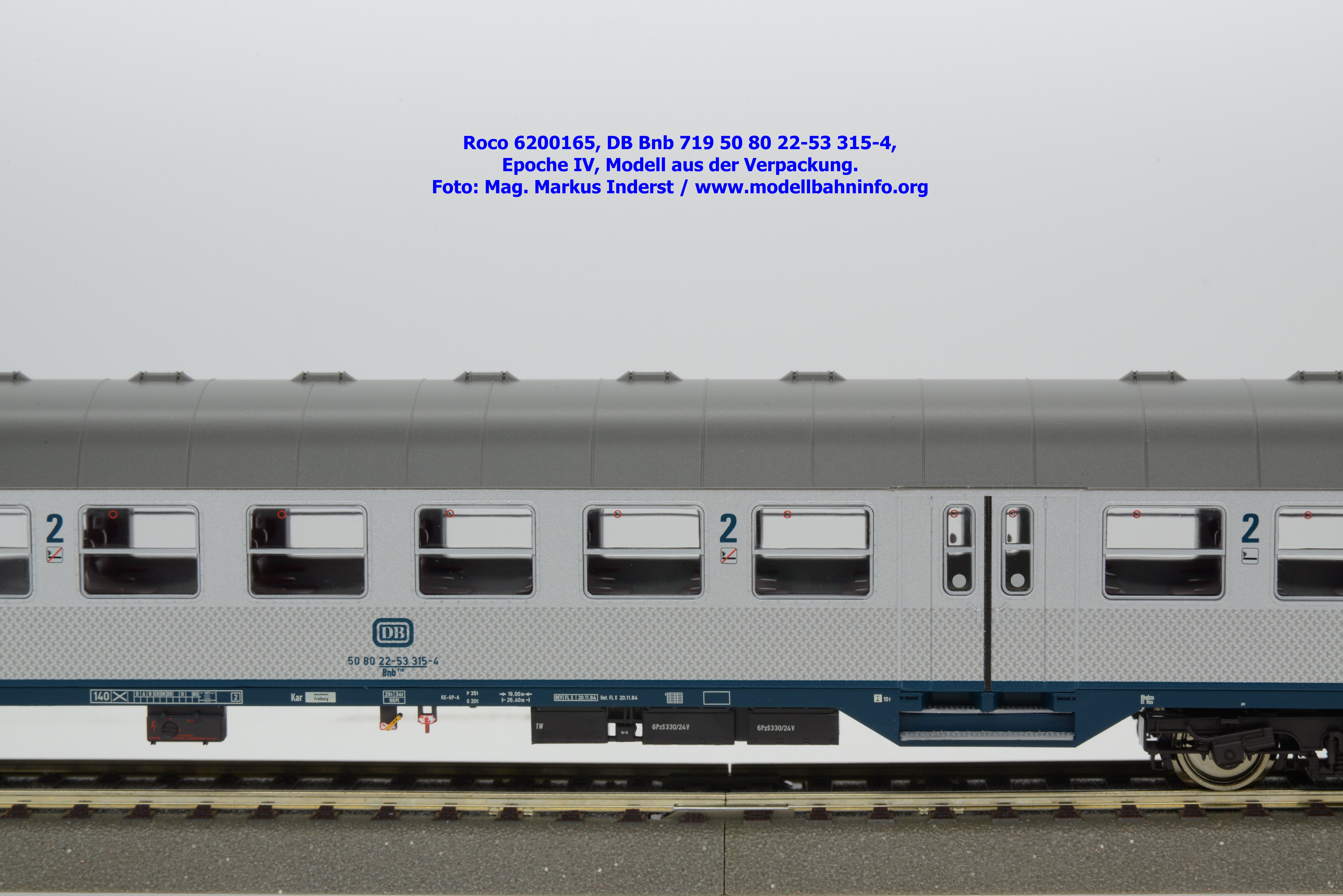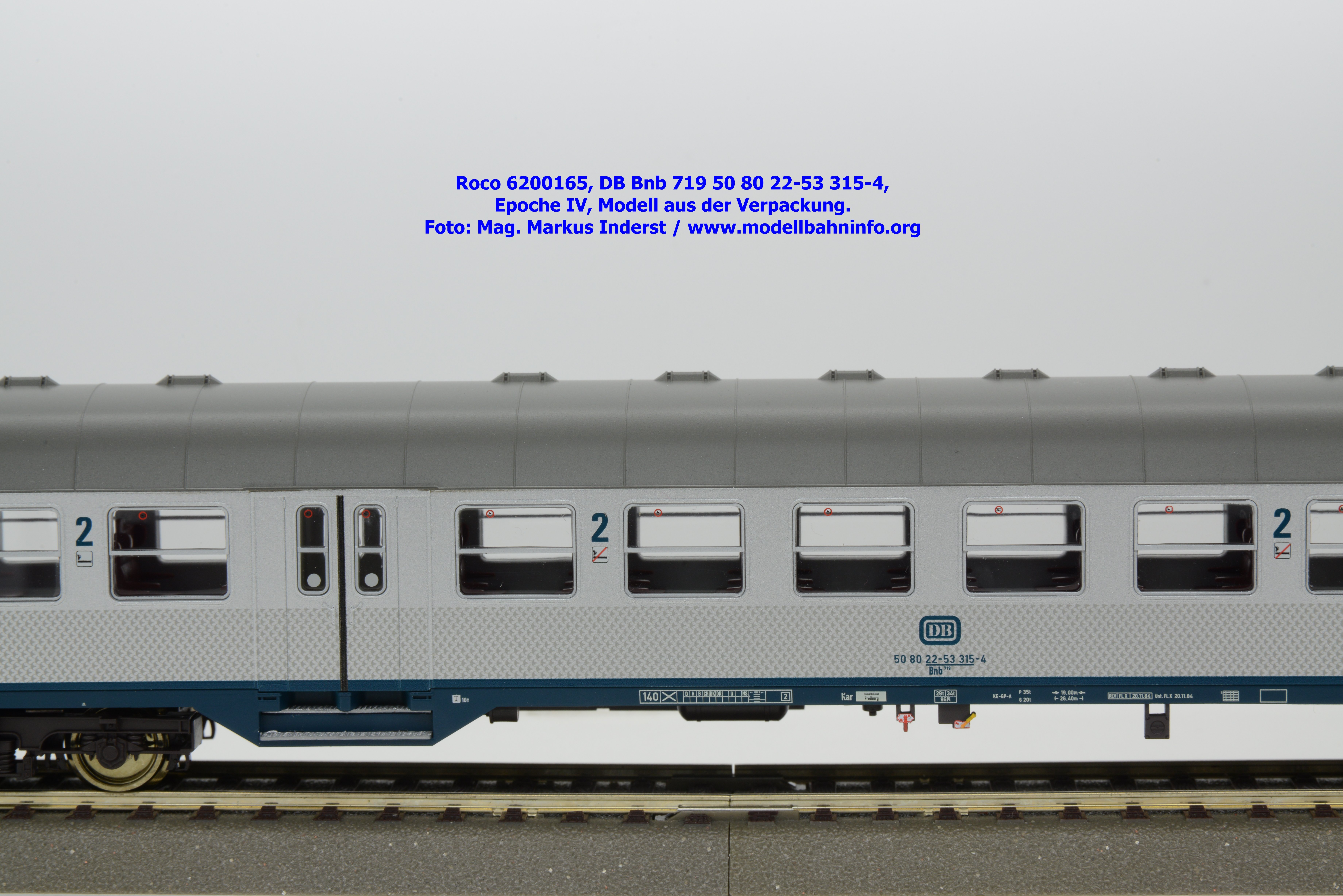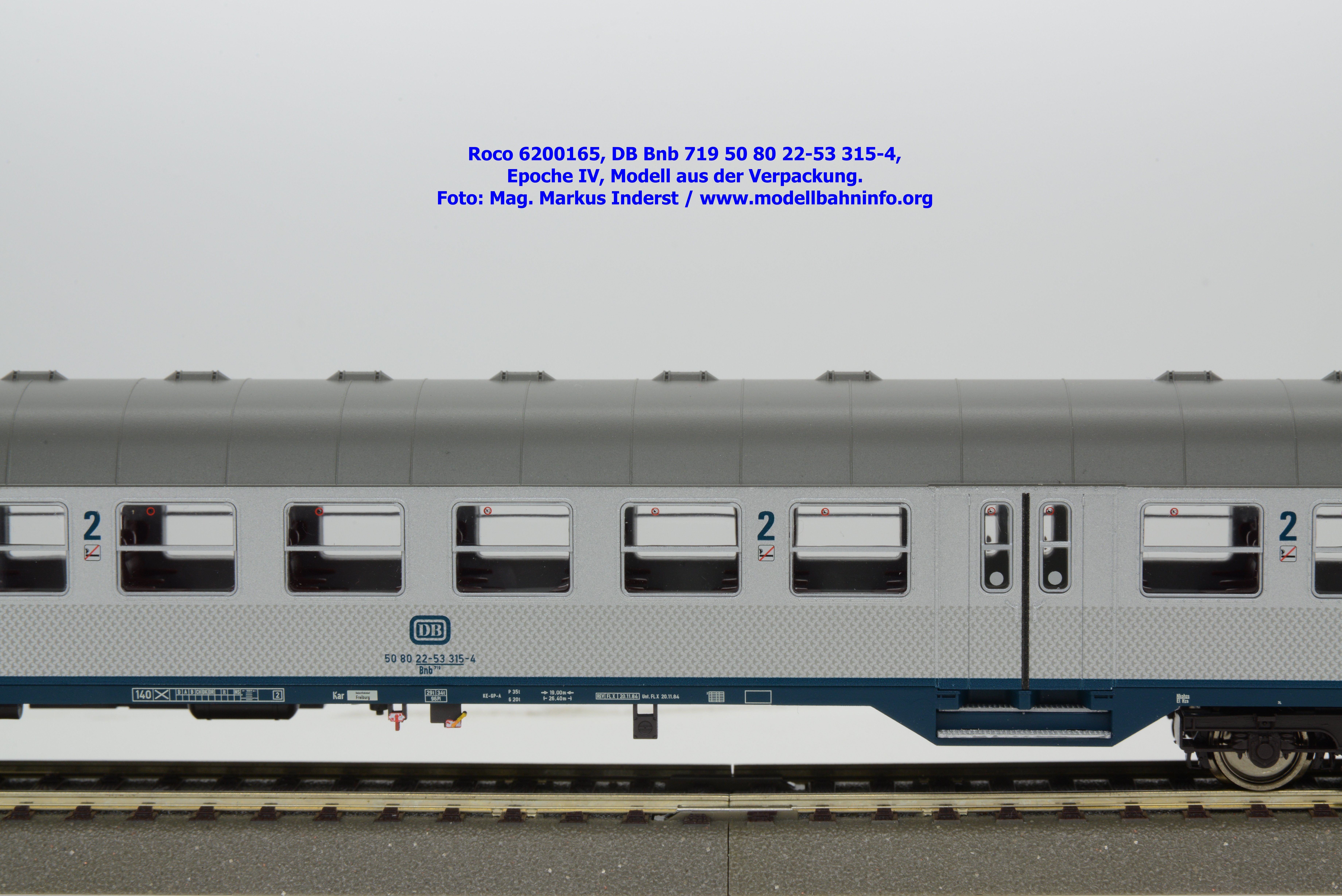 Roco hat für 2026 mehrere Modellausführungen der DB-Silberline angekündigt, wobei diese Modelle über einen ozeanblauen Rahmen verfügen. Das erste lieferbare Modell ist ein 2. Klasse Nahverkehrswagen mit der Gattungsbezeichnung Bnb 719. Der Nahverkehrswagen ist mit der Wagennummer 50 80 22-53 315-4 bedruckt. Als Heimatbahnhof wird Freiburg angegeben. Die Untersuchungsdaten werden mit der Angabe REV FL X 20.11.84 bzw. Unt. FL X 20.11.84 angegeben. Dem Modell liegen drei Zurüstbeutel bei. Im ersten Beutel sind zwei Standardkupplungen abgelegt. Die Heizkabel sind im zweiten Zurüstbeutel enthalten. Das dritte Sackerl umfaßt die lackierten Blechschilder mit den Zuglaufschildern, auf denen der Laufweg „Karlsruhe – Offenburg – Freiburg“ angegeben ist. Das Modell des 2. Klasse Silberling ist zum UVP von € 74,90 erhältlich.