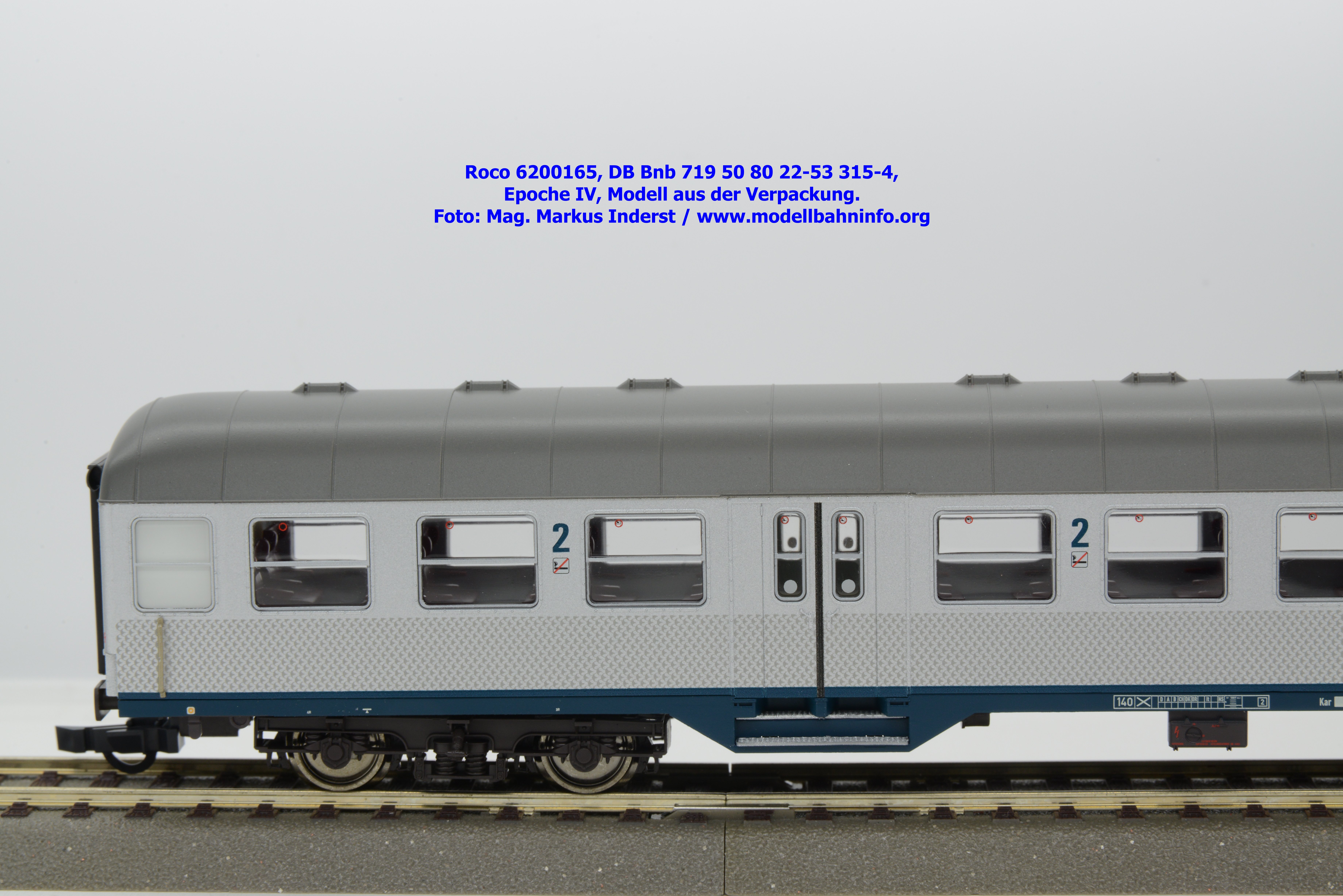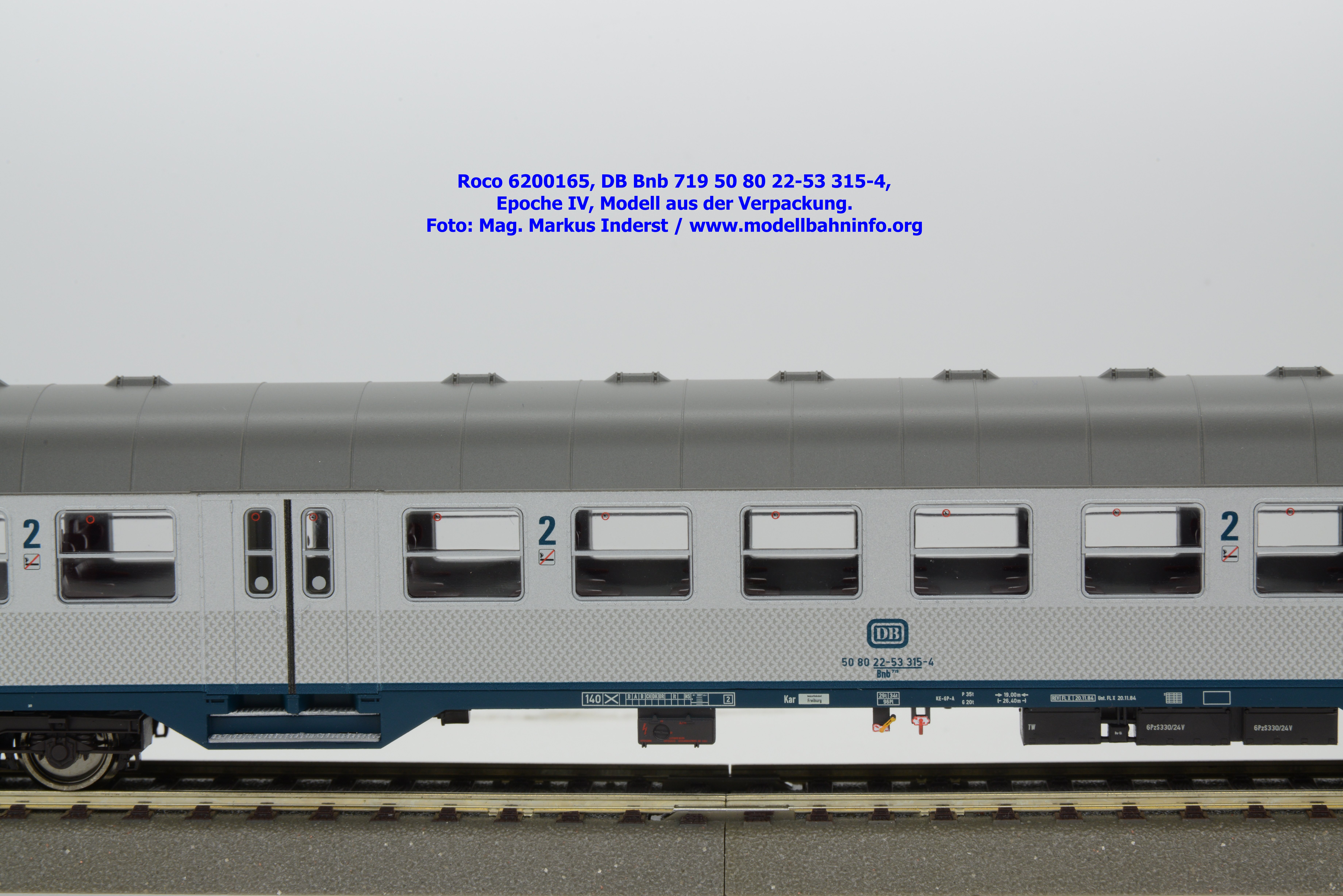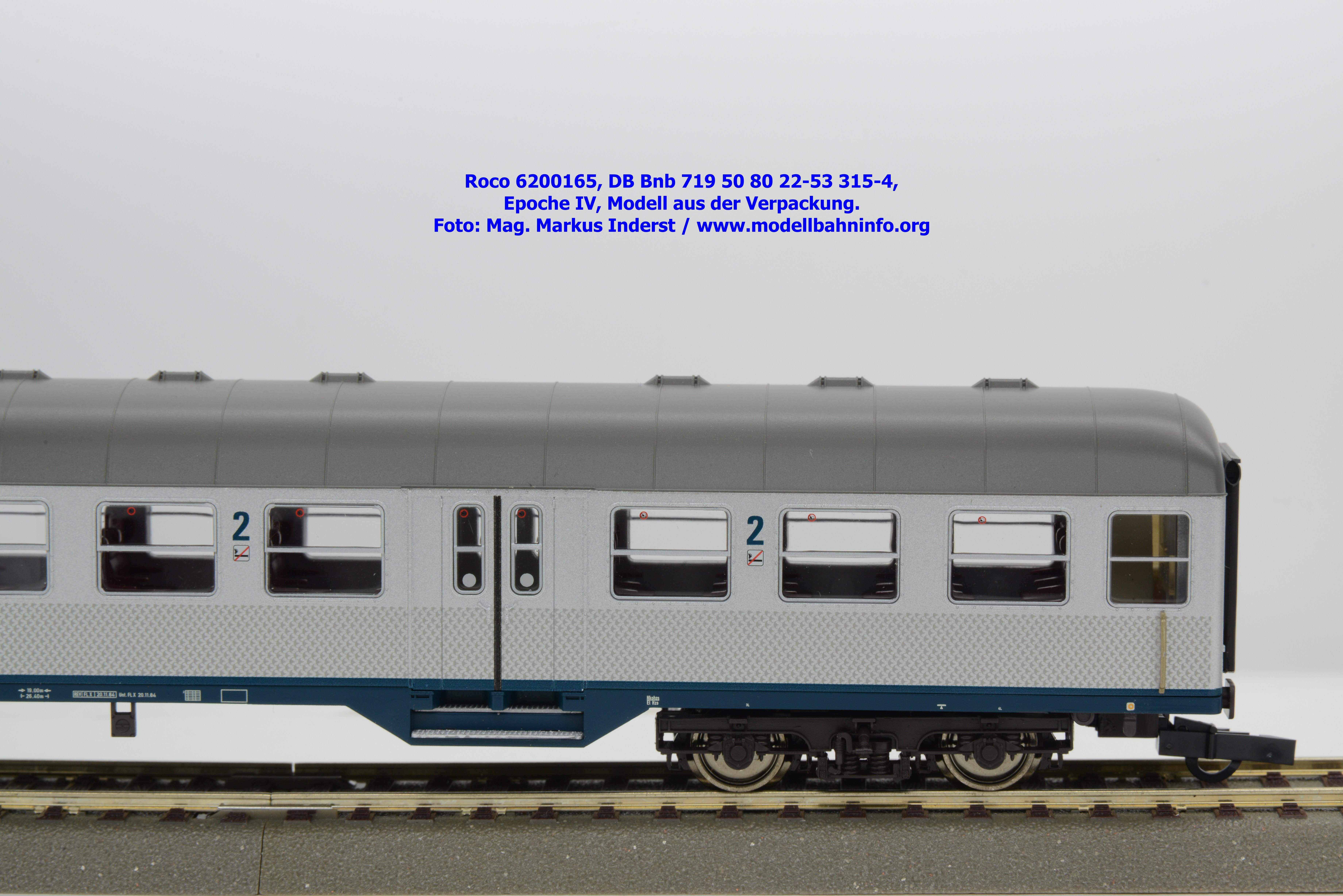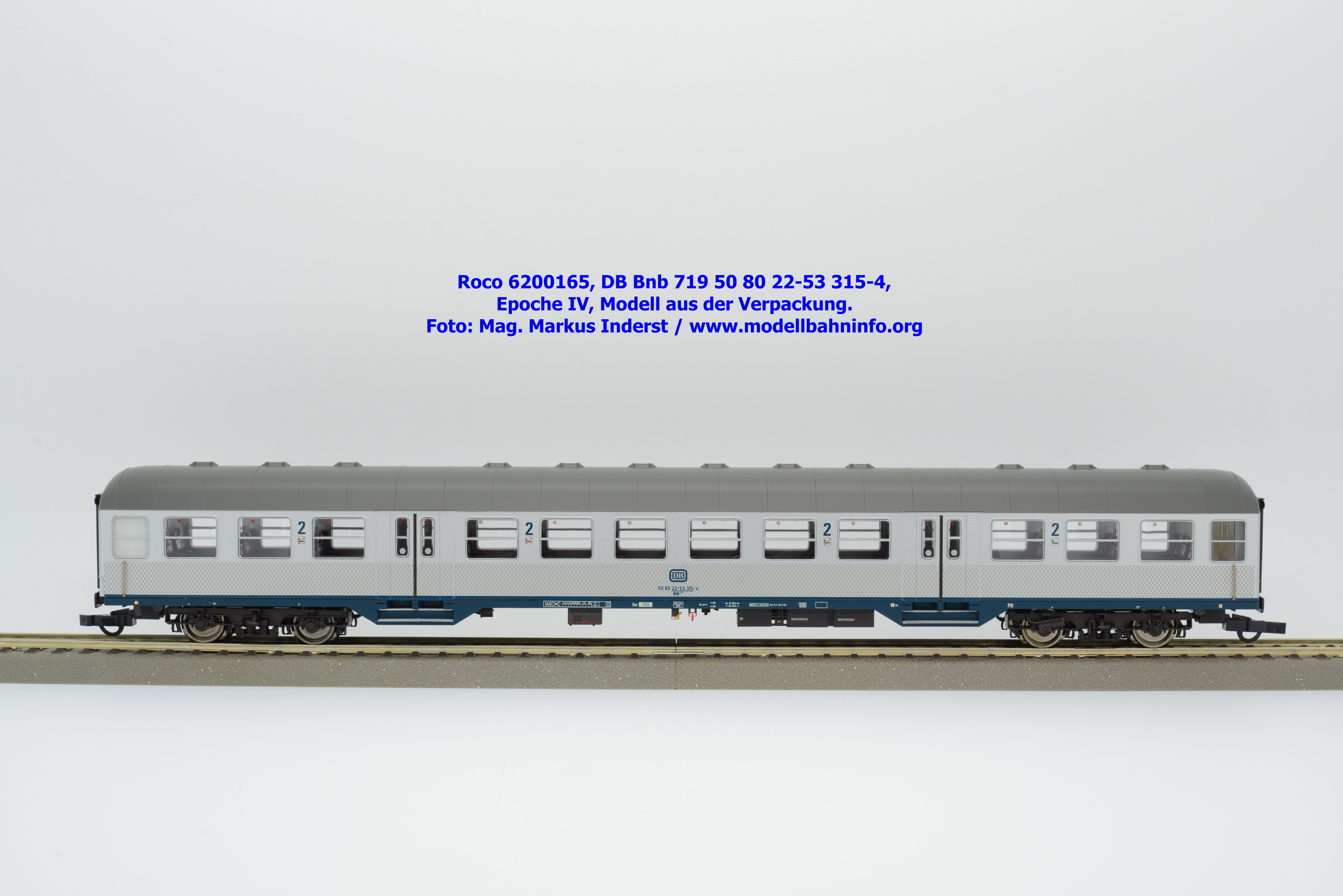 Roco hat für 2026 mehrere Modellausführungen der DB-Silberline angekündigt, wobei diese Modelle über einen ozeanblauen Rahmen verfügen. Das erste lieferbare Modell ist ein 2. Klasse Nahverkehrswagen mit der Gattungsbezeichnung Bnb 719. Der Nahverkehrswagen ist mit der Wagennummer 50 80 22-53 315-4 bedruckt. Als Heimatbahnhof wird Freiburg angegeben. Die Untersuchungsdaten werden mit der Angabe REV FL X 20.11.84 bzw. Unt. FL X 20.11.84 angegeben. Dem Modell liegen drei Zurüstbeutel bei. Im ersten Beutel sind zwei Standardkupplungen abgelegt. Die Heizkabel sind im zweiten Zurüstbeutel enthalten. Das dritte Sackerl umfaßt die lackierten Blechschilder mit den Zuglaufschildern, auf denen der Laufweg „Karlsruhe – Offenburg – Freiburg“ angegeben ist. Das Modell des 2. Klasse Silberling ist zum UVP von € 74,90 erhältlich.