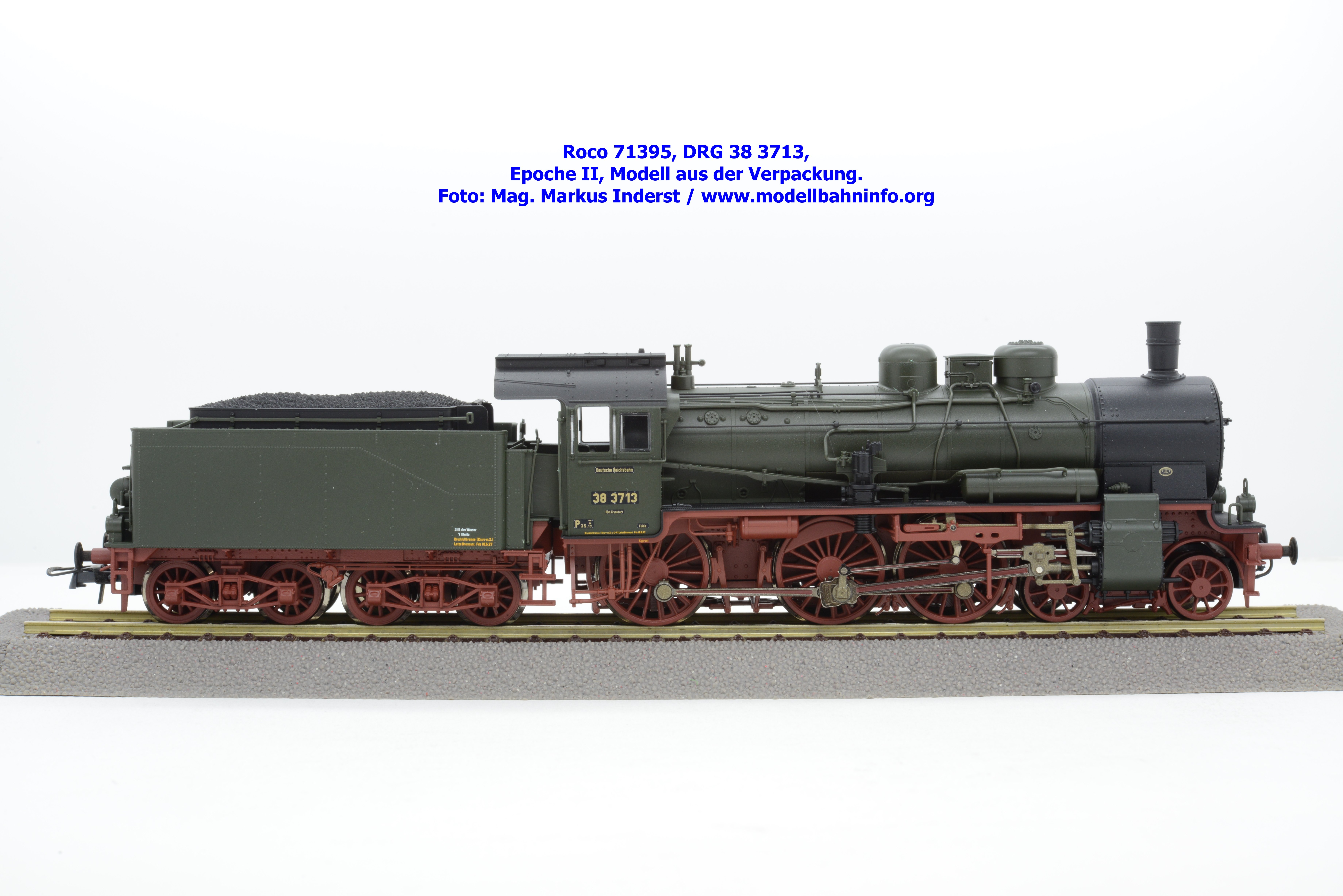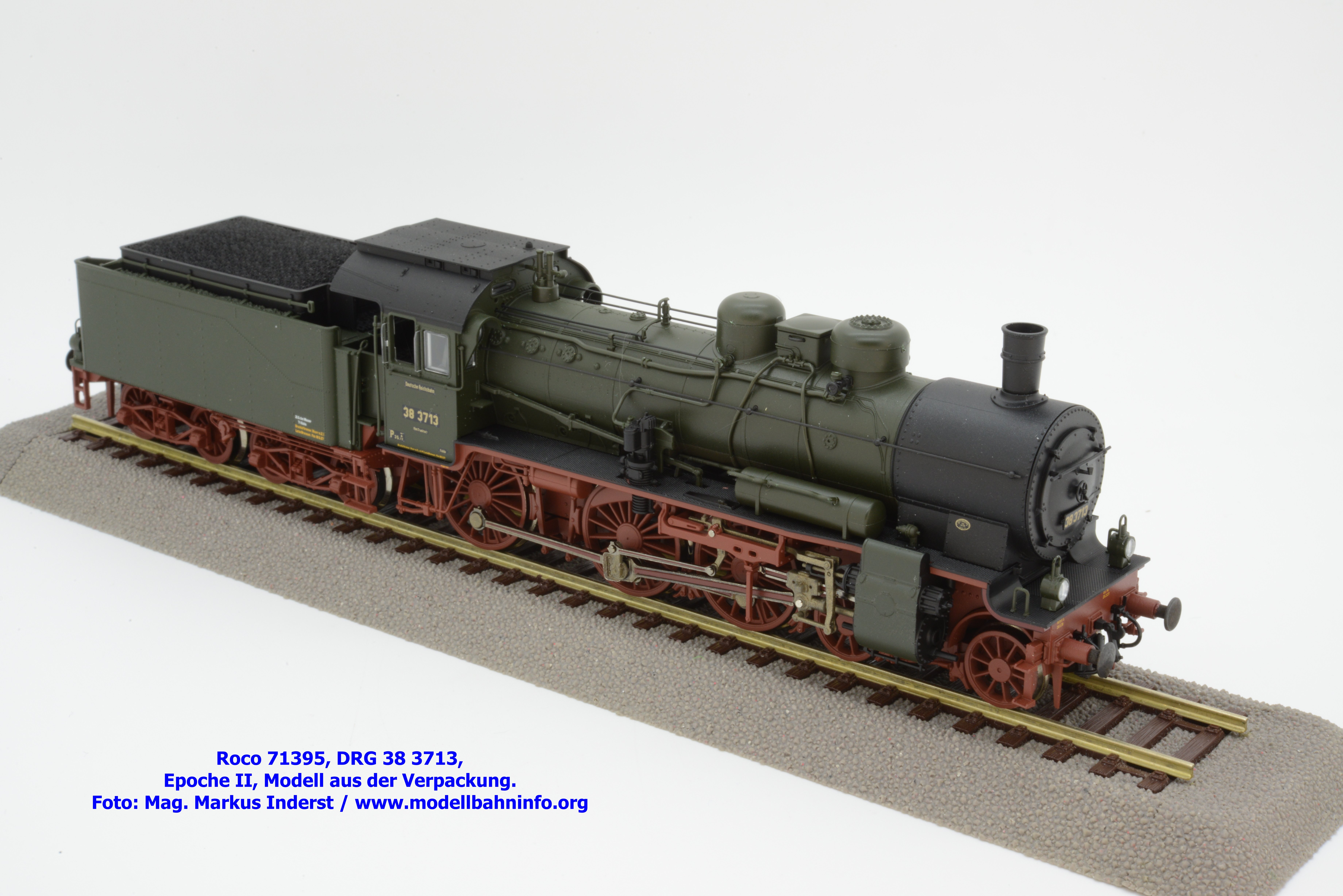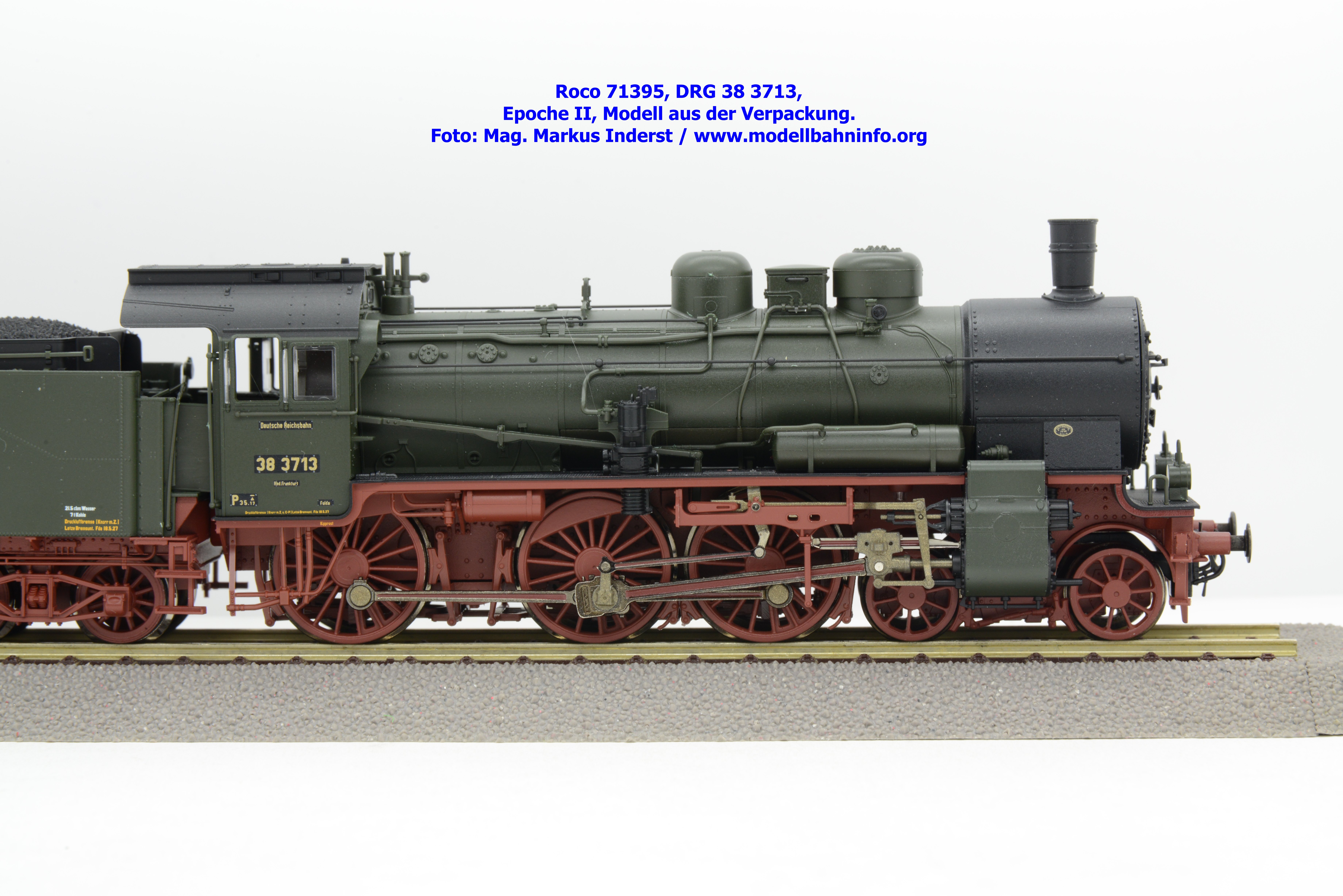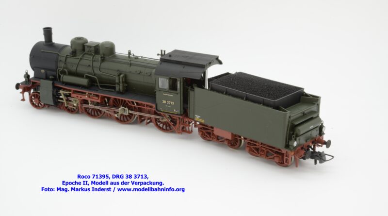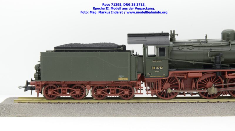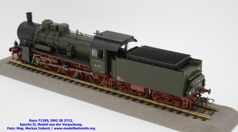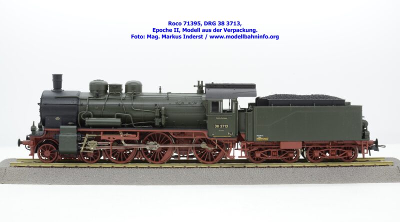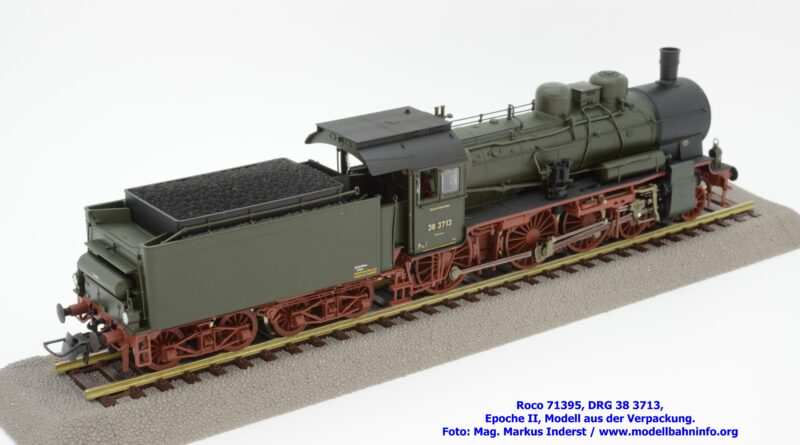 Unter dem Titel „Nebenbahnromantik“ in Deutschlang hat der Salzburger Hersteller eine in der Epoche III ausgeführten Schlepptenderlokomotive ins Sortiment genommen. Diese neue Ausführung wurde mit drei Dome (Speise-, Sand- und Dampfdom) ausgeführt, verfügt Witte-Windleitbleche und ist mit einem genieteten Tender gekuppelt. Die DB-Lok ist mit der Loknummer 38 3553 bedruckt, welche zum Bw Bestwig bzw. zur BD Wuppertal gehört. Die letzten Untersuchungsdaten werden mit „Letzte Br2 Tr 26. 1.62“ angegeben. Das Modell ist bereits mit einem Indusi-Magnet ausgestattet. Roco liefert das Modell im Segment Edition aus, wovon es drei verschiedene Modellausführungen gibt. Die analoge Modellausführung ohne Digitalausstattung ist zum UVP von € 449,90 erhältlich. Die digitale Zweileiter-Gleichstrom-Ausführung ist unter der Artikelnummer 71398 und zum UVP von € 599,90 erwerbbar, die Dreileiter-Wechselstrom-Ausführung wird unter der Artikelnummer 79388 geführt. Hierbei ist noch anzumerken, daß die Digitalmodelle mit dynamischen Sound und authentischen Soundfunktionen ausgestattet sind.