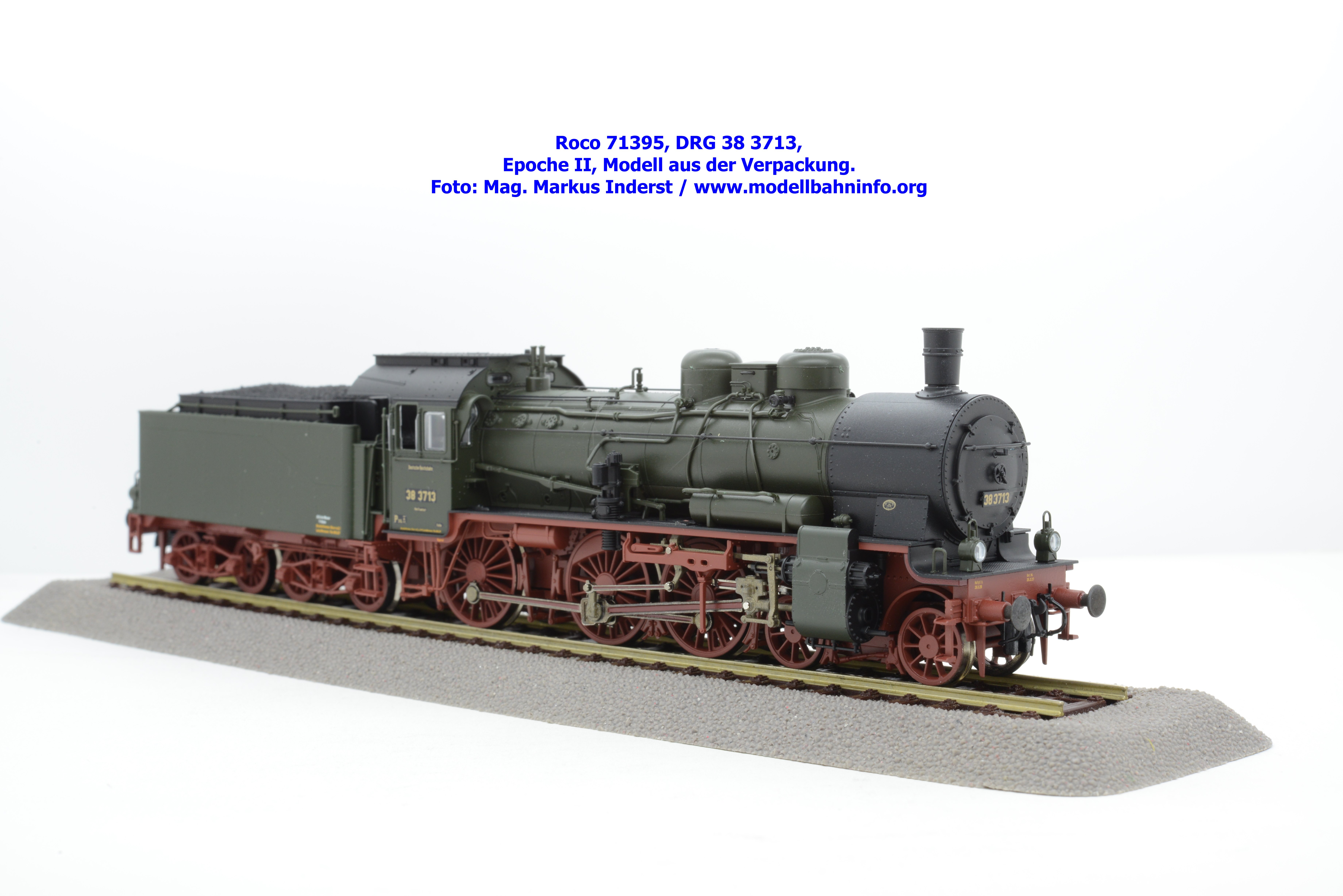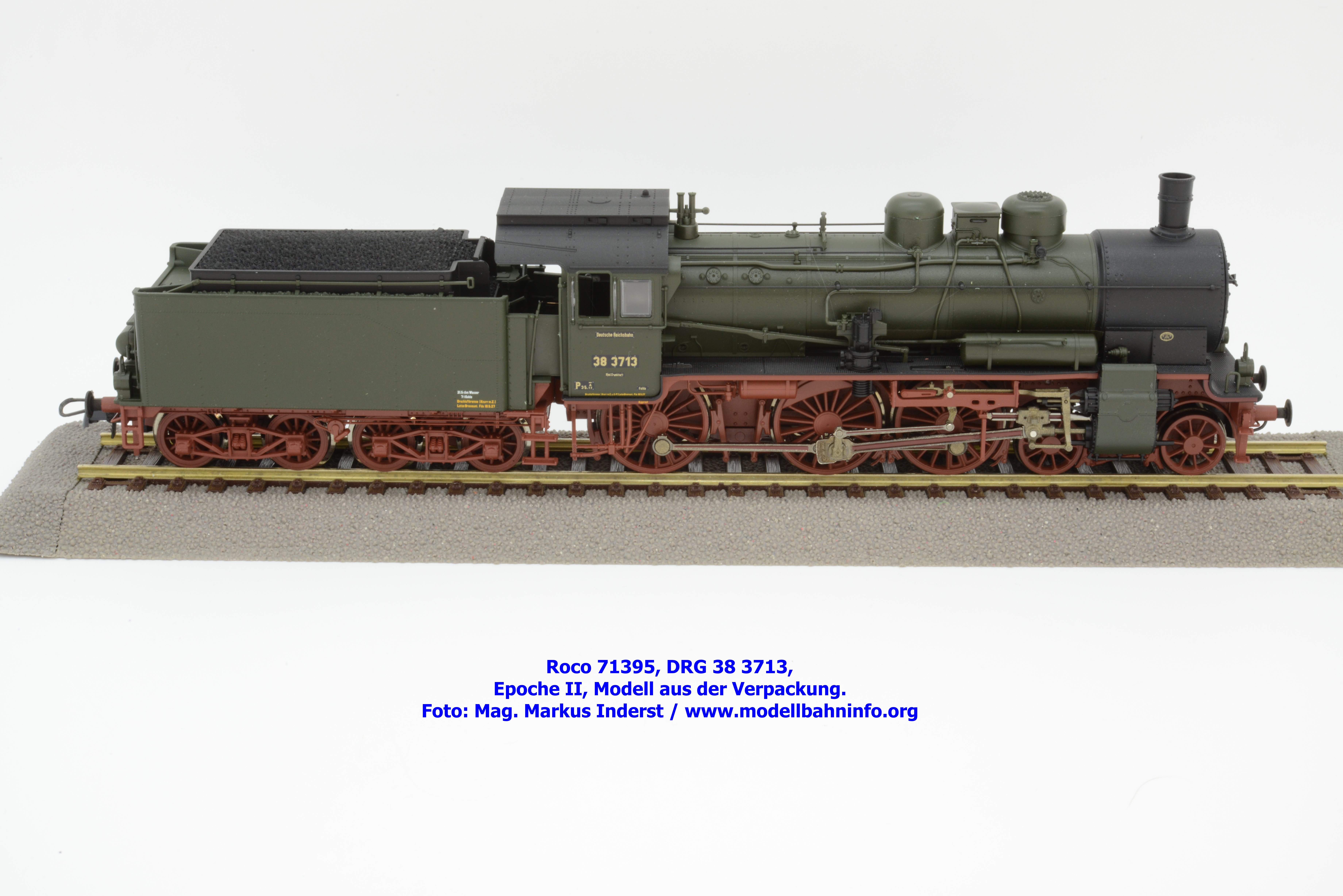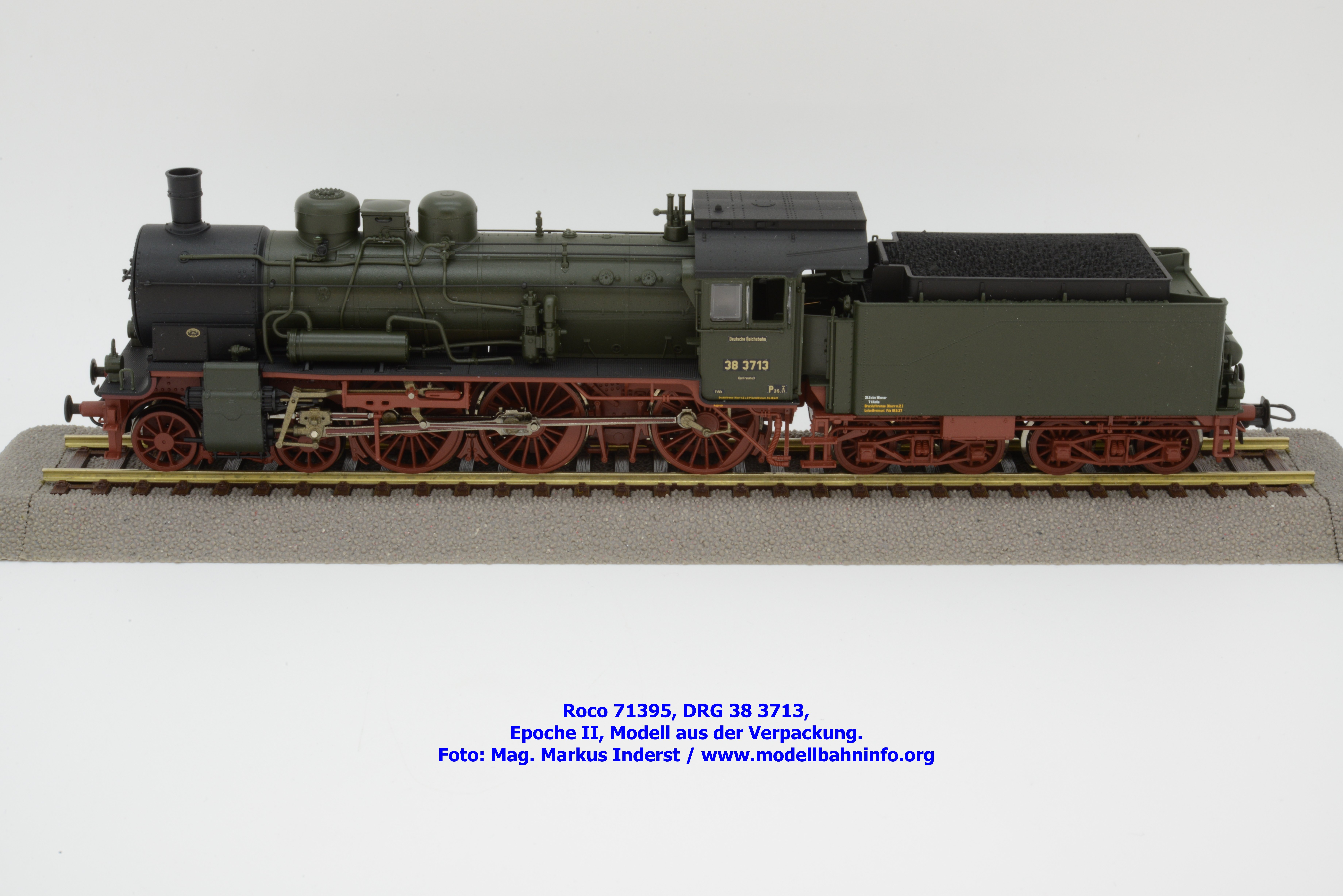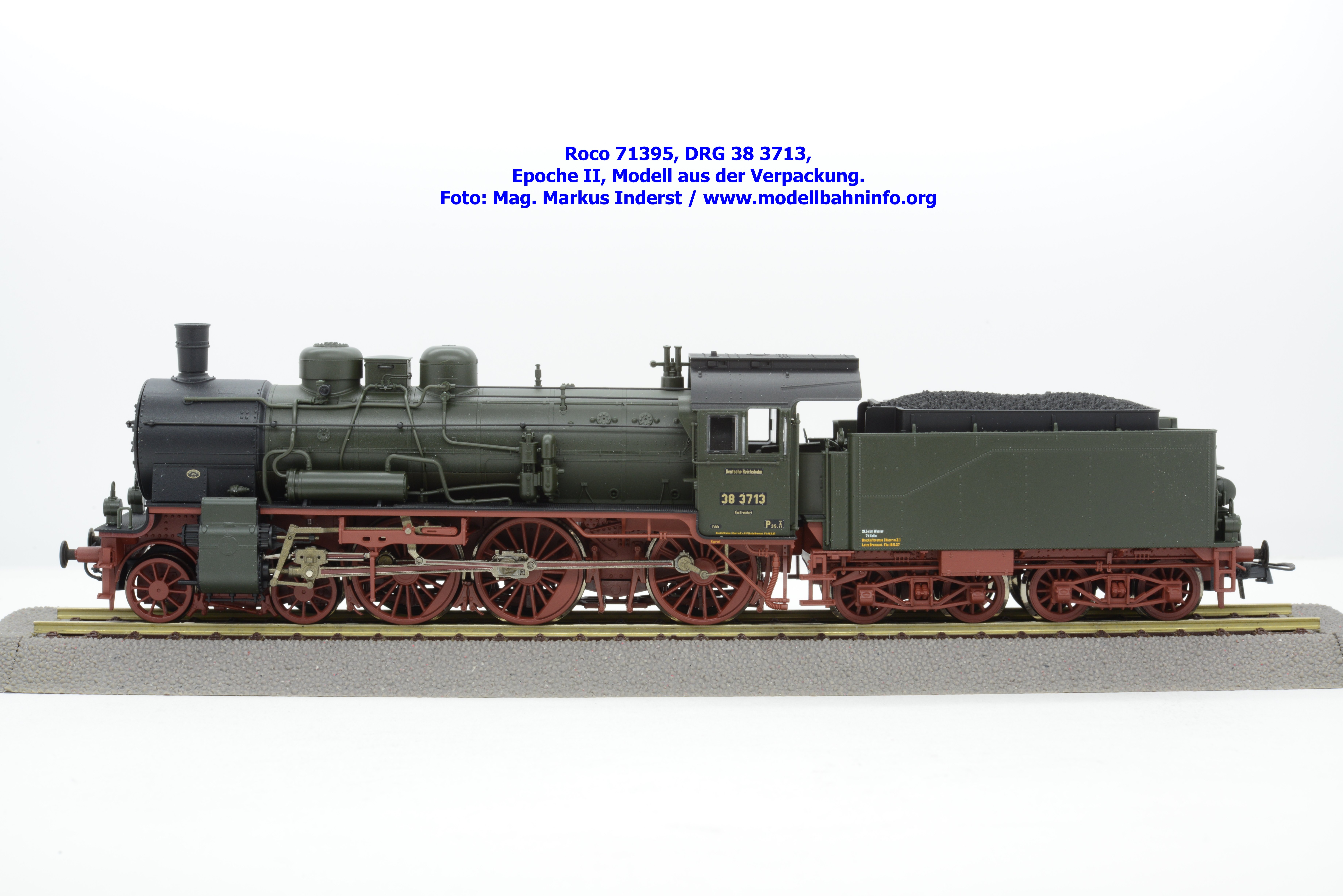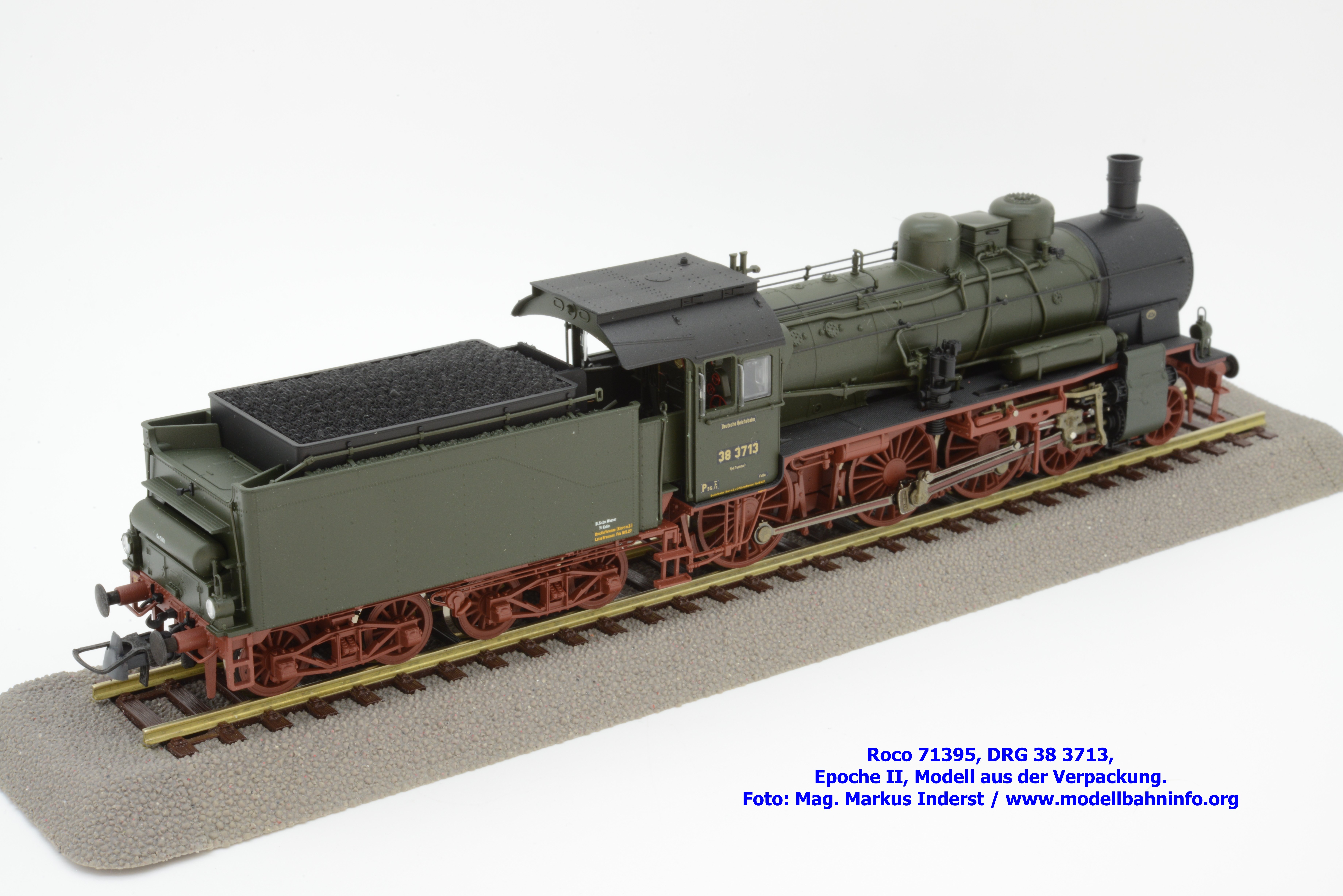 Unter dem Titel „Nebenbahnromantik“ in Deutschlang hat der Salzburger Hersteller eine in der Epoche III ausgeführten Schlepptenderlokomotive ins Sortiment genommen. Diese neue Ausführung wurde mit drei Dome (Speise-, Sand- und Dampfdom) ausgeführt, verfügt Witte-Windleitbleche und ist mit einem genieteten Tender gekuppelt. Die DB-Lok ist mit der Loknummer 38 3553 bedruckt, welche zum Bw Bestwig bzw. zur BD Wuppertal gehört. Die letzten Untersuchungsdaten werden mit „Letzte Br2 Tr 26. 1.62“ angegeben. Das Modell ist bereits mit einem Indusi-Magnet ausgestattet. Roco liefert das Modell im Segment Edition aus, wovon es drei verschiedene Modellausführungen gibt. Die analoge Modellausführung ohne Digitalausstattung ist zum UVP von € 449,90 erhältlich. Die digitale Zweileiter-Gleichstrom-Ausführung ist unter der Artikelnummer 71398 und zum UVP von € 599,90 erwerbbar, die Dreileiter-Wechselstrom-Ausführung wird unter der Artikelnummer 79388 geführt. Hierbei ist noch anzumerken, daß die Digitalmodelle mit dynamischen Sound und authentischen Soundfunktionen ausgestattet sind.