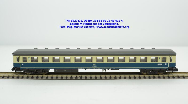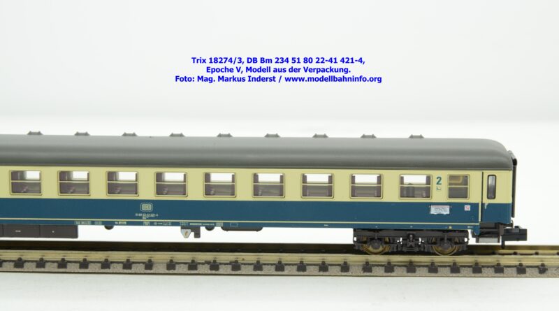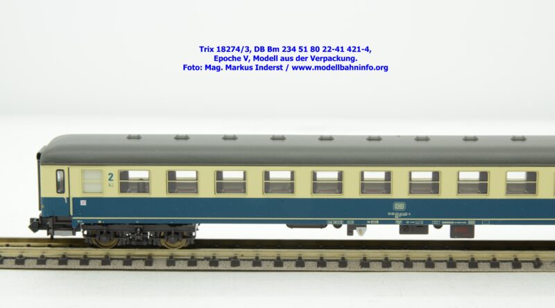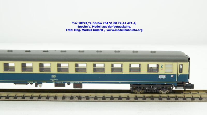 Das dritte Modell ist ein herkömmlicher Schnellzugwagen mit der Gattungsbezeichnung Bm 234 und der Wagennummer 51 80 22-41 421-4. Dieser Wagen ist in München Hbf beheimatet. Die Untersuchungsdaten lauten auf REV KKROX 11.01.88 bzw. Unt KKROX 11.01.88.