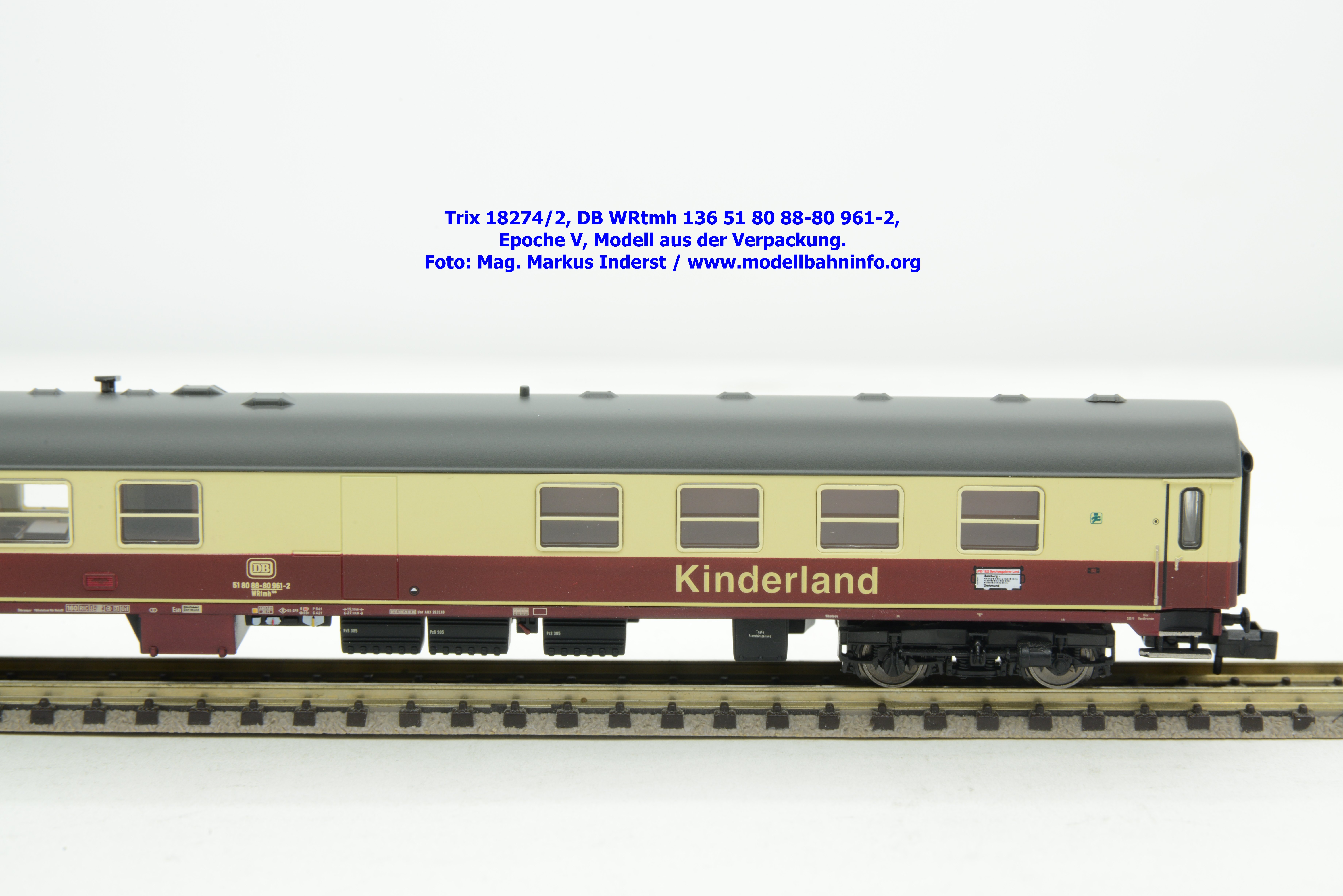 Minitrix hat dieses Wagenset unter dem Credo „100 Jahre Fernschnellzug“ bereits im Neuheitenprogramm 2023 vorgesehen und führt(e) den Artikel als Schnellzugwagen-Set 1 „FD 1922 Berchtesgadener Land“. Drei Jahre nach der Ankündigung, wenngleich der neukonstruierte Speisewagen WRtmh 136 schon seit gut drei Monaten lieferbar ist, wurde das besagte Wagenset an den Fachhandel ausgeliefert. Das Wagenset beinhaltet drei verschiedene Wagentypen, das sind ein 1. Klasse Abteilwagen mit der Gattungsbezeichnung Avmz 111.1 in TEE-Farben, der neukonstruierte Kinderlandwagen Cafeteria mit der Gattungsbezeichnung WRtmh 136 – ebenfalls in TEE-Farben – und der in ozeanblau/beige ausgeführte 2. Klasse Schnellzugwagen mit der Gattungsbezeichnung Bm 234. Alle Modelle sind für eine Innenbeleuchtung vorbereitet und werden in der üblichen Blisterverpackung des Herstellers ausgeliefert. Trix hat das Set vor drei Jahren zum UVP von € 179,– angekündigt und liefert es auch zu diesem Preis aus, obwohl zwischenzeitlich massive Preissteigerungen eingetreten sind!
