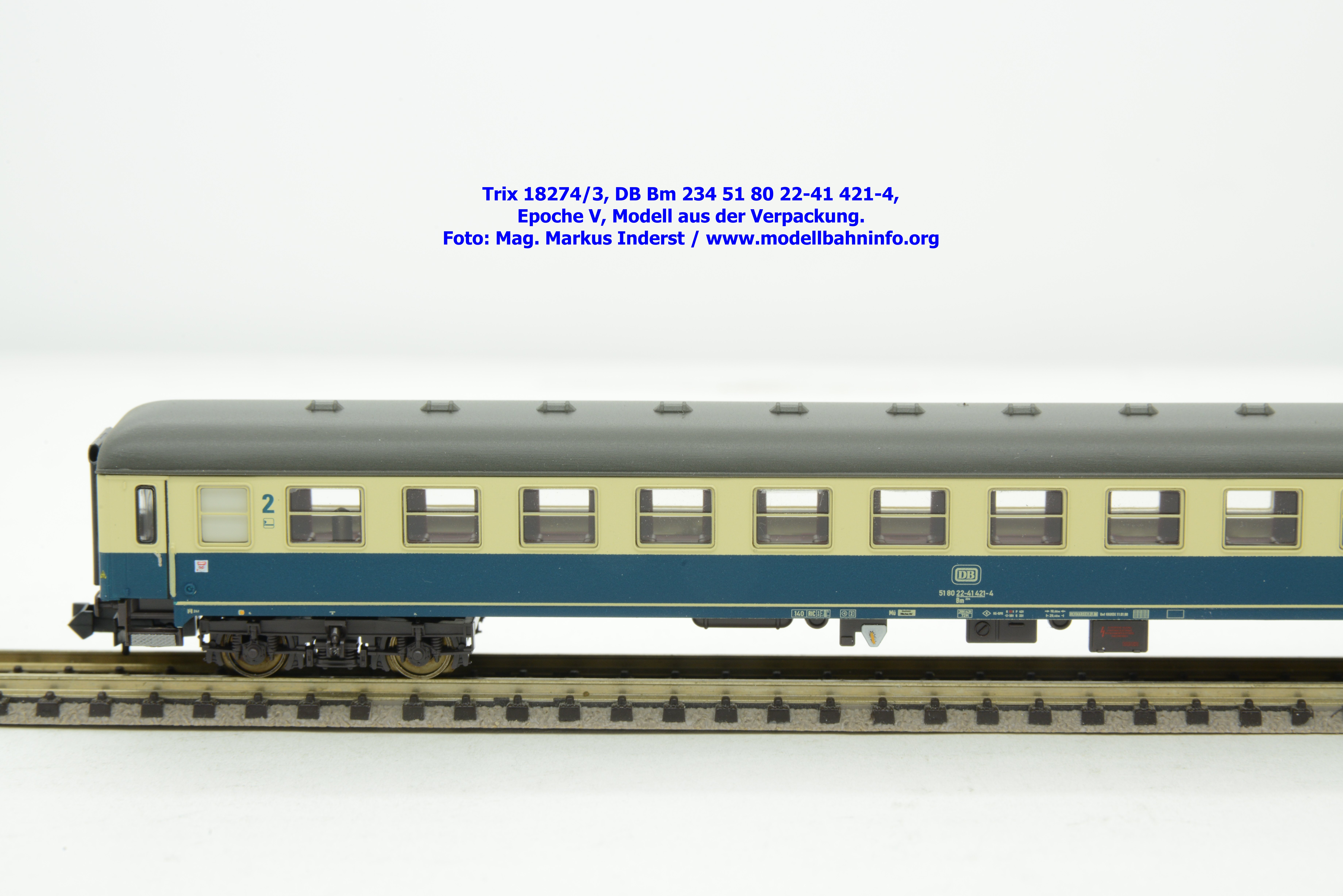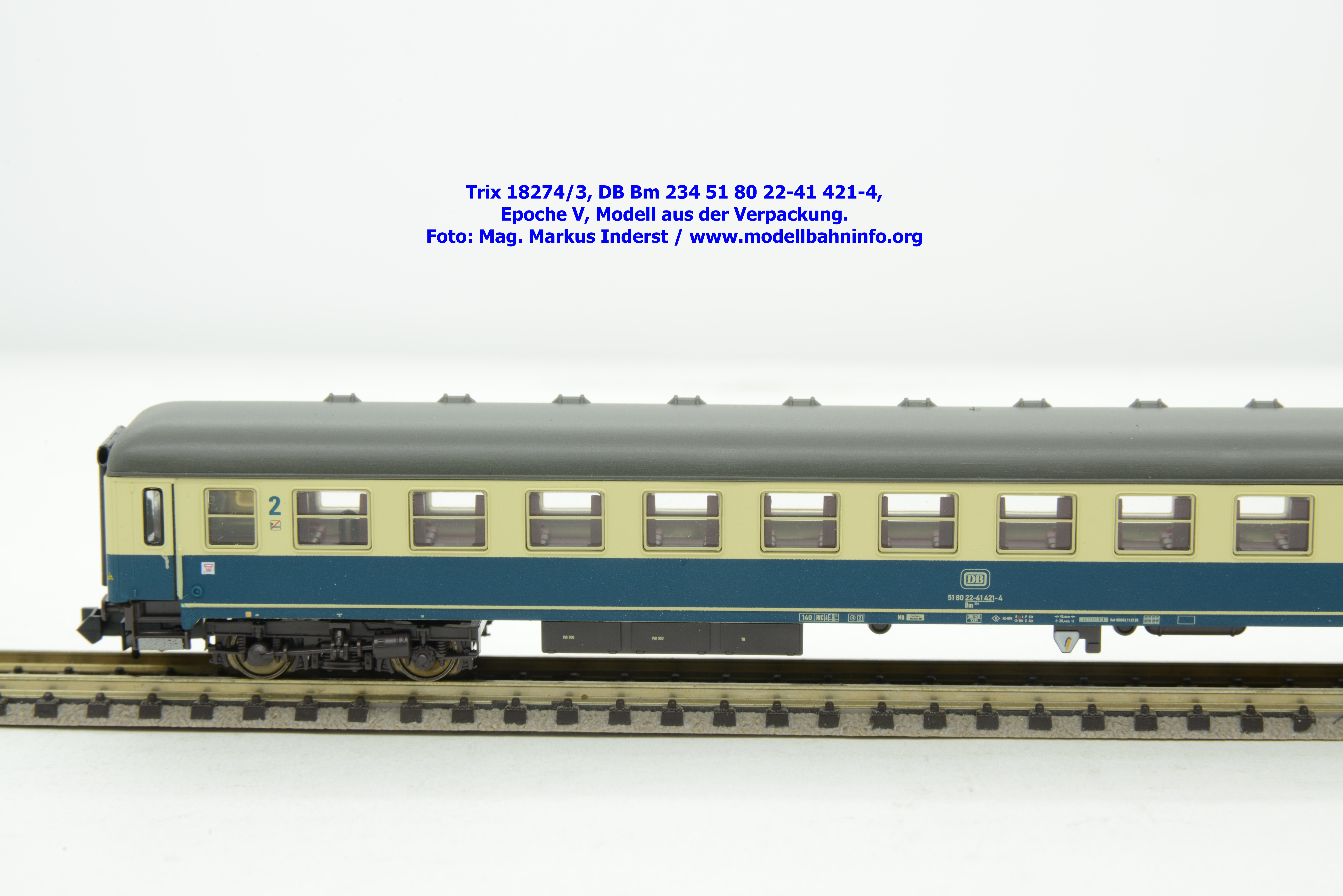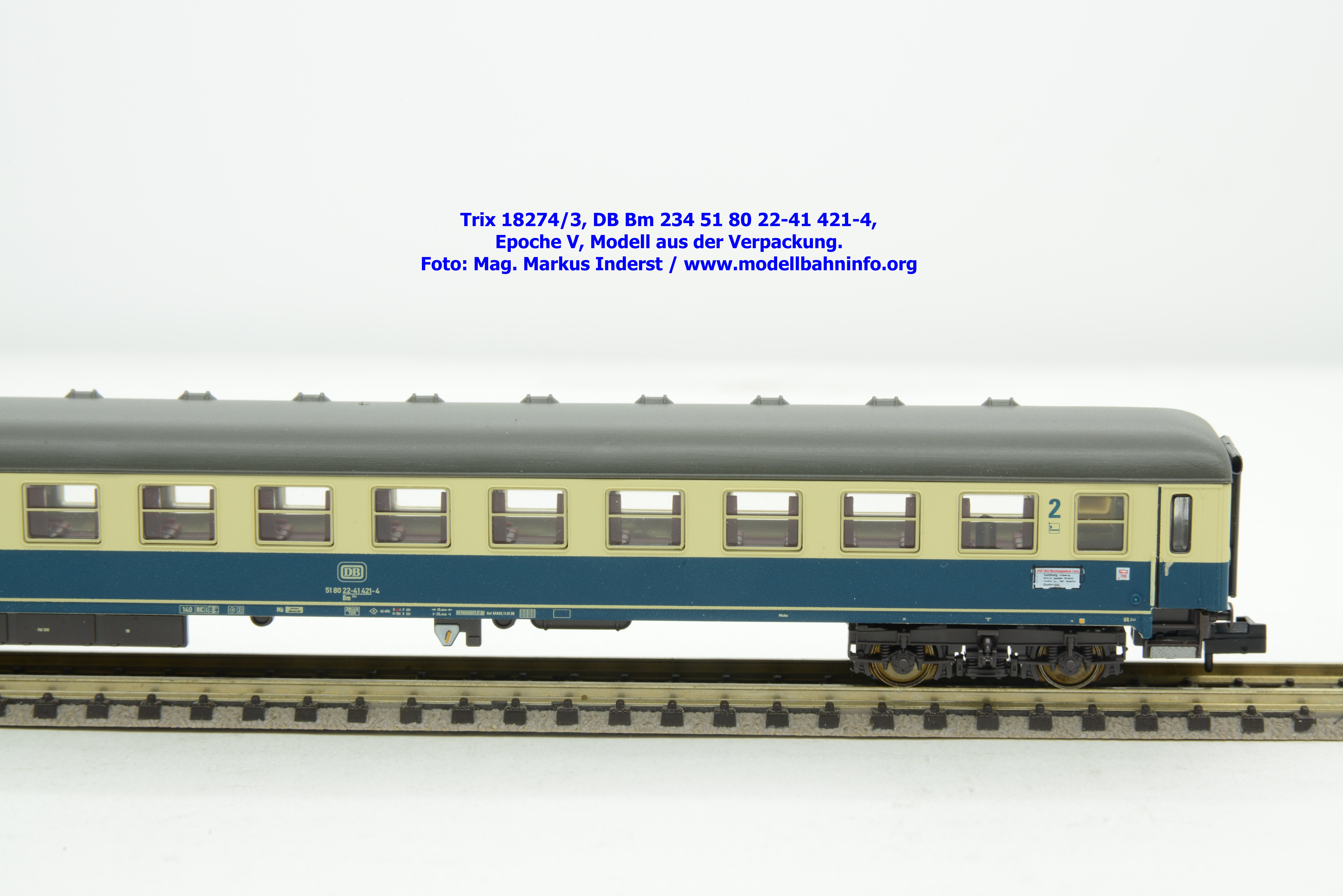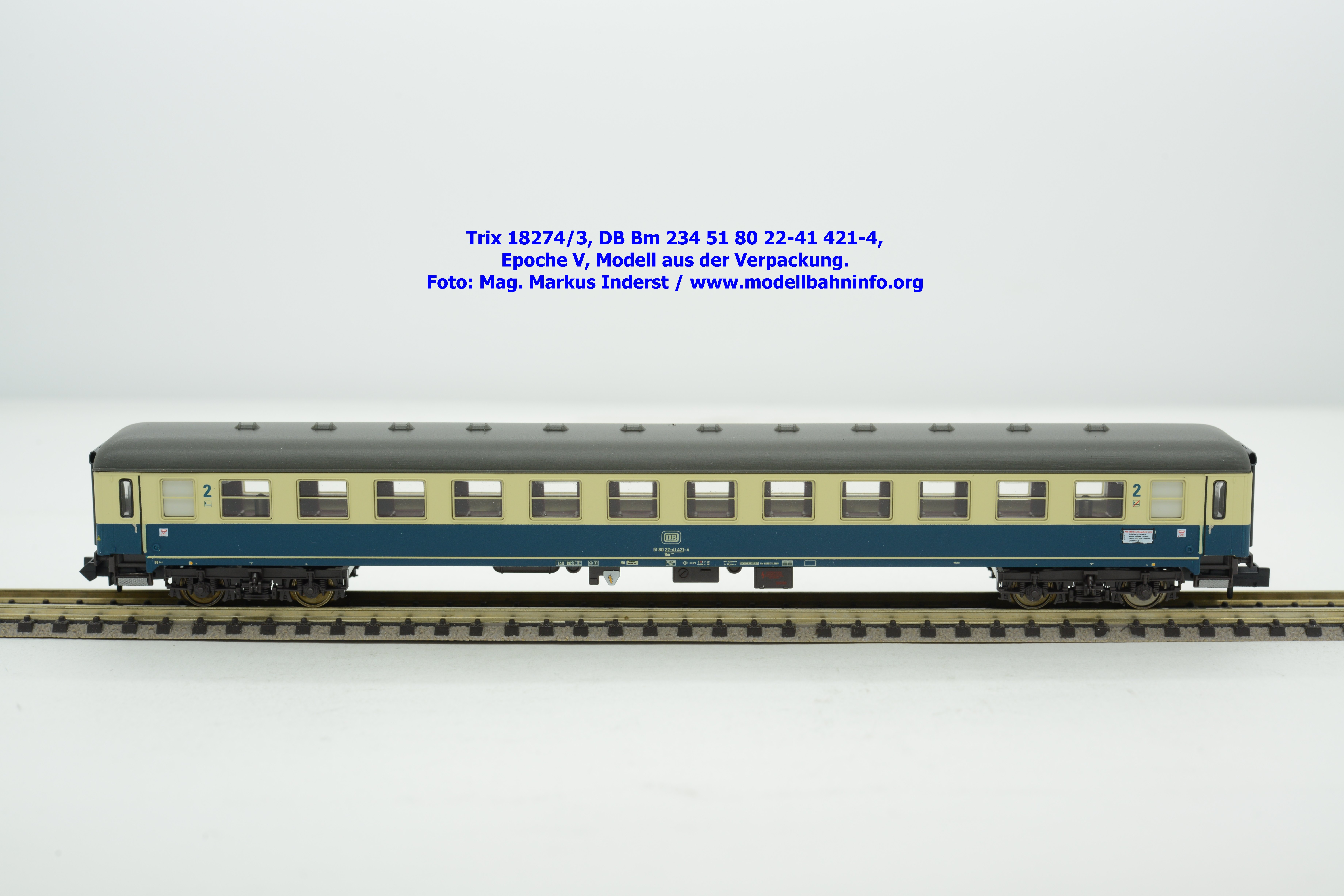 Das dritte Modell ist ein herkömmlicher Schnellzugwagen mit der Gattungsbezeichnung Bm 234 und der Wagennummer 51 80 22-41 421-4. Dieser Wagen ist in München Hbf beheimatet. Die Untersuchungsdaten lauten auf REV KKROX 11.01.88 bzw. Unt KKROX 11.01.88.
