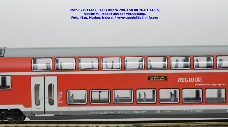 Alle Wagen sind je nach Ausführung einzeln verpackt und als solche als „München – Salzburg – Express“ ausgeführt. Roco hat die Modelle bereits serienmäßig mit einer LED-Innenbeleuchtung ausgestattet und gleichzeitig auf eine optimale Lichtausstrahlung im Innenraum geachtet. Die Zugzielanzeigen weisen den Zuglauf nach Salzburg Hbf via Rosenheim auf.