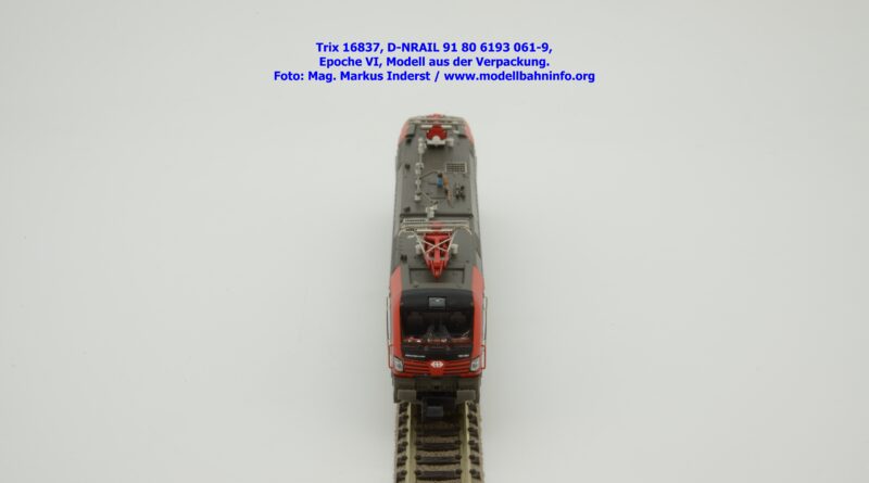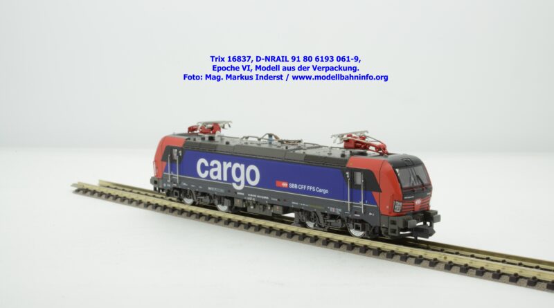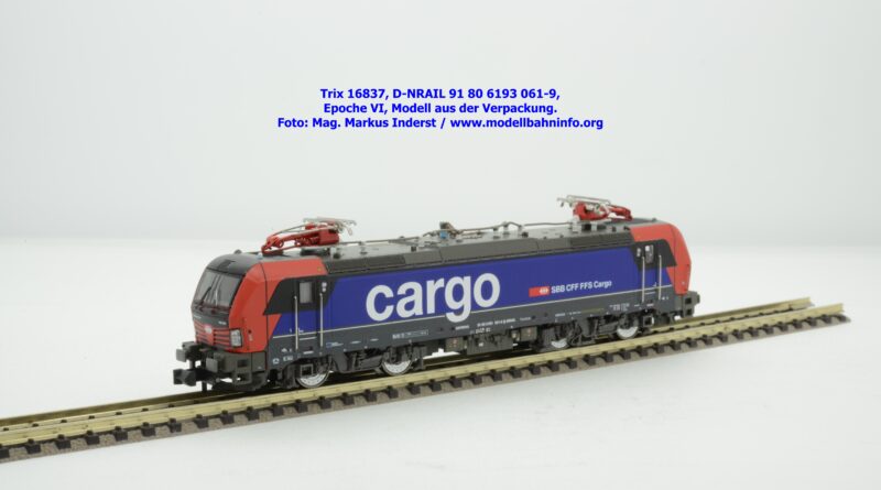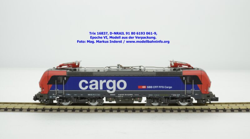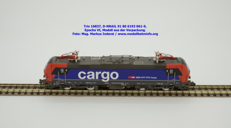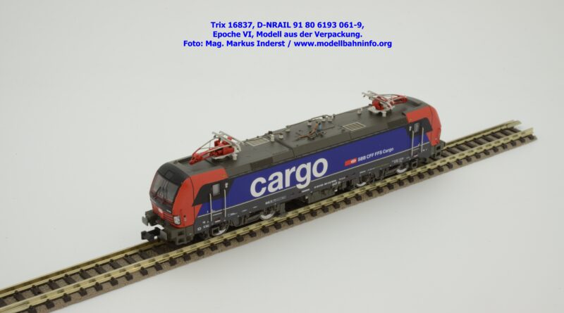 Minitrix hat im Rahmen seiner Herbstneuheiten des Jahres 2024 das Vorbild der neuen Vectron-Lokomotiven für SBB Cargo entdeckt. Das neuen Modell ist in derselben Aufmachung erschienen wie das zuvor ausgelieferte H0-Modell aus gleichem Hause. Das Modell ist mit den Lokanschriften 91 80 6193 061-9 D-NRAIL bedruckt. Im Revisionsraster ist das Abnahmedatum mit REV MMAL 12.09.24 zu lesen. Gegenüber dem H0-Modell wurden aber keine Formänderungen vollzogen, die die geschwungenen Türgriffe betroffen hätten. Das Modell mit den beiden Stromabnehmern wird als voll digitalisiertes Modell zum UVP von € 339,– angeboten. Der eingebaute Digitaldecoder ist RailCom-fähig und verarbeitet die Datenformate DCC und mfx.