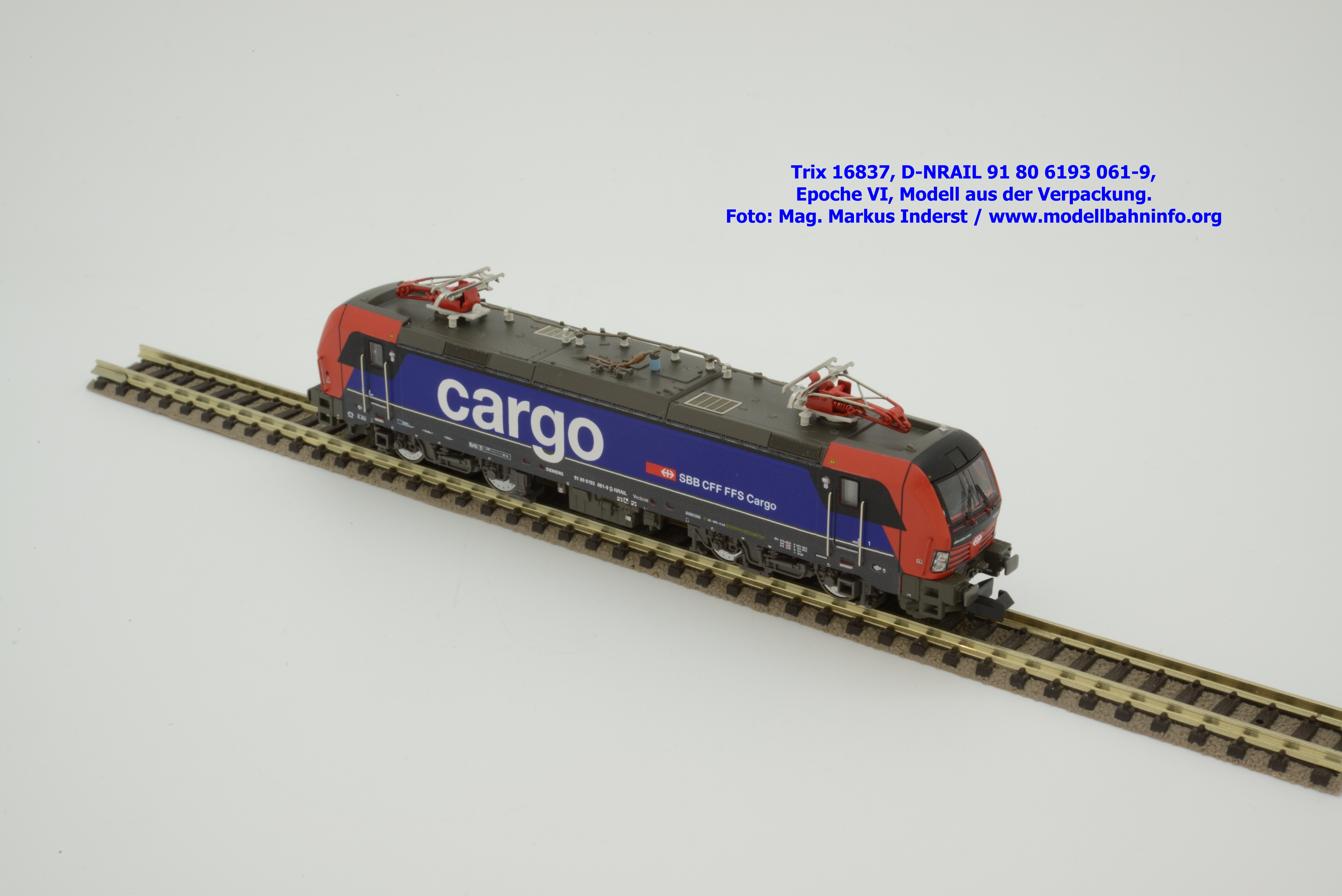Das große Interesse an den abwechslungsreich gestalteten Loks ist groß, sowohl beim Vorbild wie beim Modell. Neben der DB-Lok hat Minitrix gleichzeitig eine Ausführung von SBB Cargo International angekündigt. Die Vorbildlok gab es ebenfalls schon zuvor als H0-Modell. Das Minitrix-Modell ist entsprechend dem Vorbild als D-SIEAG 91 80 6193 524-6 beschriftet. Die Seitenwandgestaltung weist überwiegend blaue Farbflächen mit entsprechenden Gebirgsmotive auf. Die Lok ist auf den Namen LIMMAT getauft. Im Revisionsraster steht das Abnahmedatum REV MMAL 16.12.19. Der UVP für diese Modellausführung beträgt € 329,–.