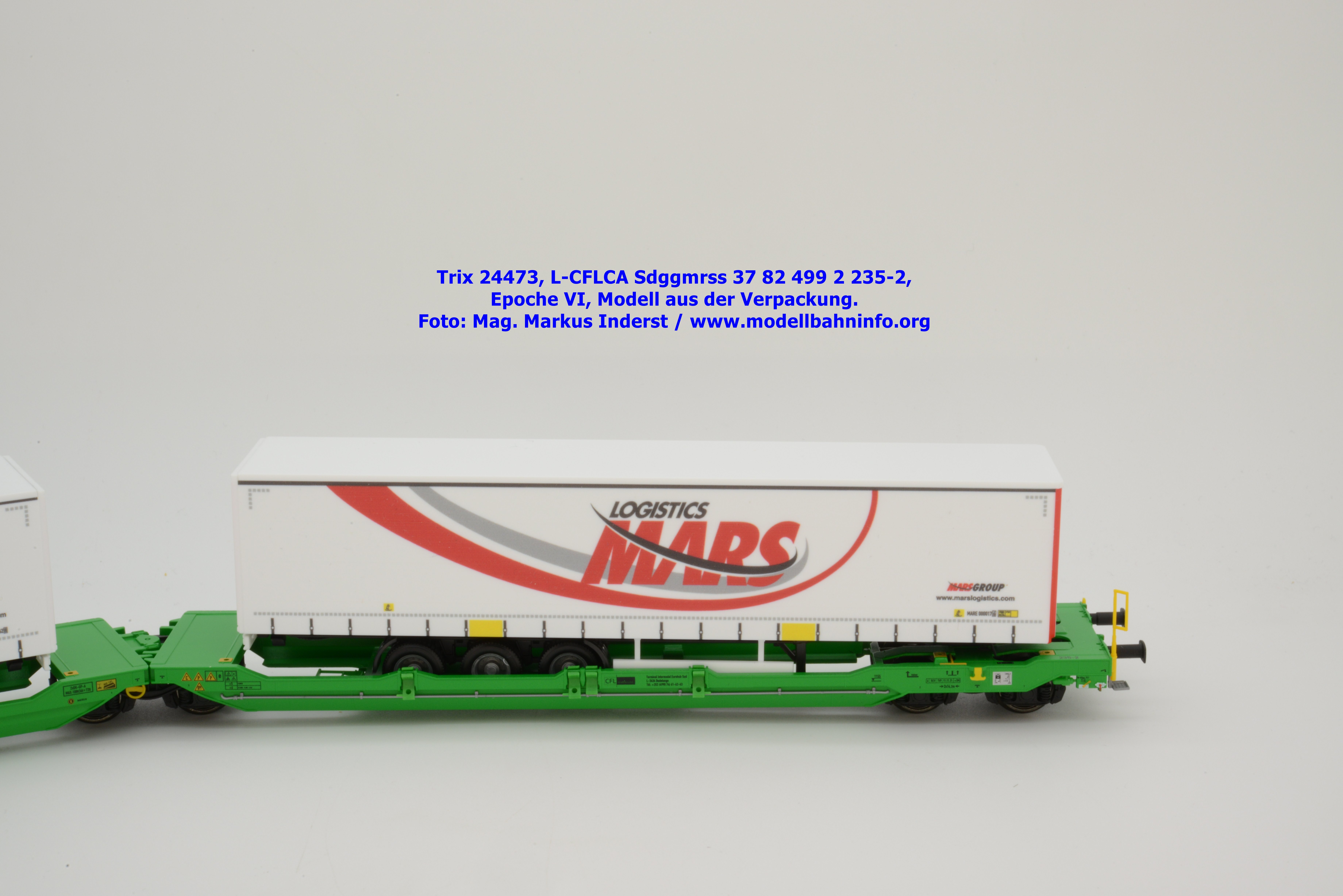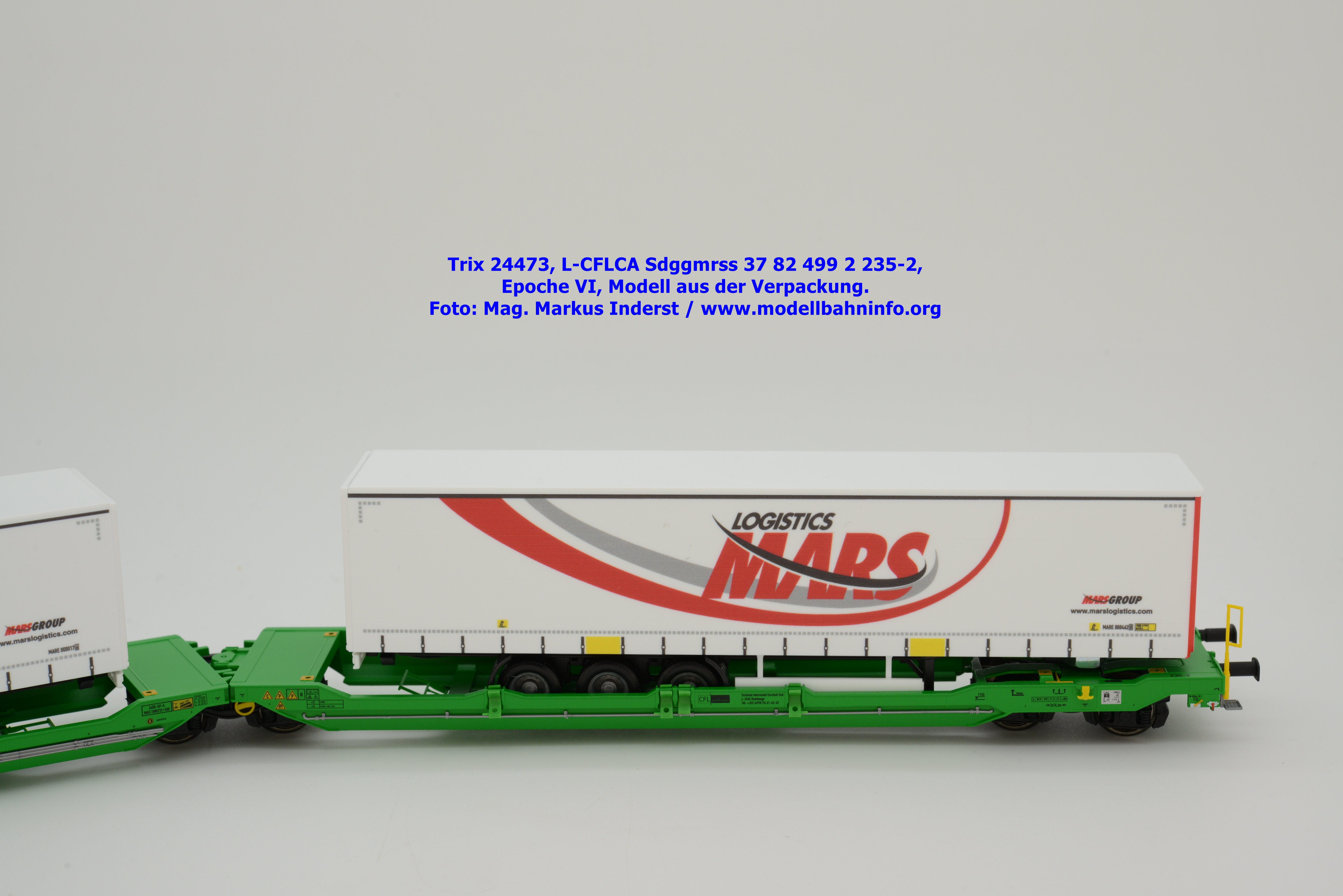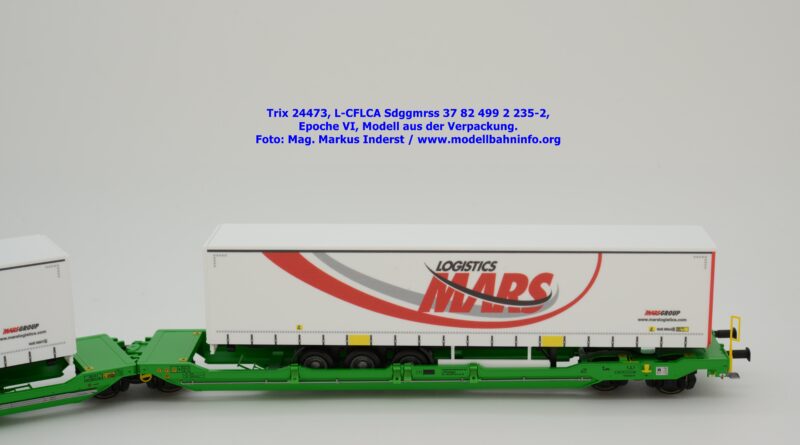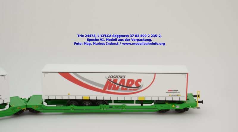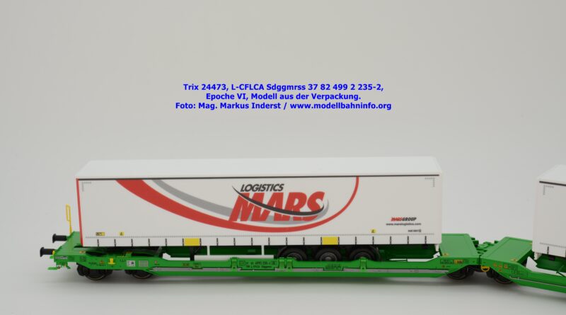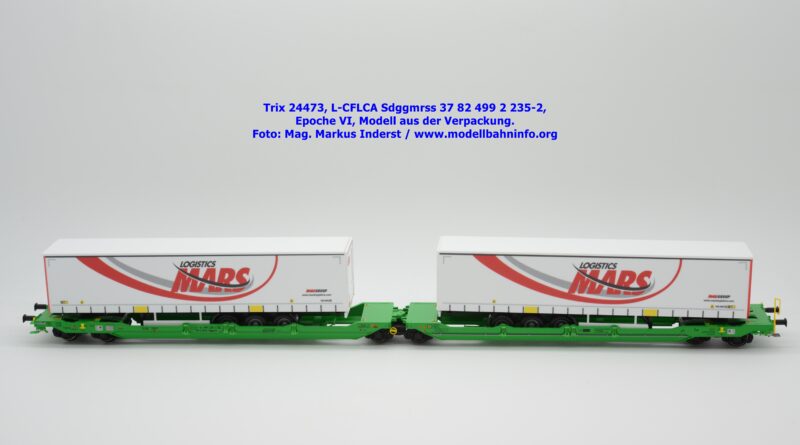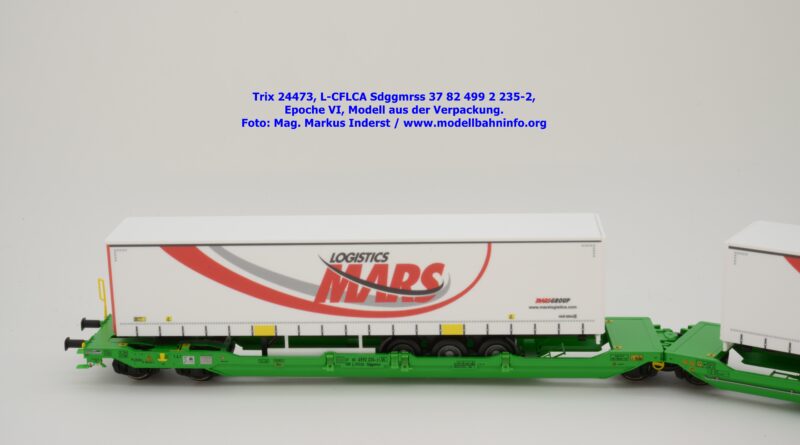 Vom CFL-Wagen mit MARS-Auflieger wurde auch ein Modell von Trix aufgelegt. Das serienmäßig für Gleichstrom-Anlagen ausgelegte Güterwagenmodell unterscheidet sich nur in den Fahrzeuganschriften. Dieser Containertragwagen T3000e wurde mit den Fahrzeuganschriften L-CFLCA Sdggmrss 37 82 499 2 235-2 bedruckt. Im Revisionsraster stehen die Abnahmedaten 6 REV TVP 11.11.21 + 3M.