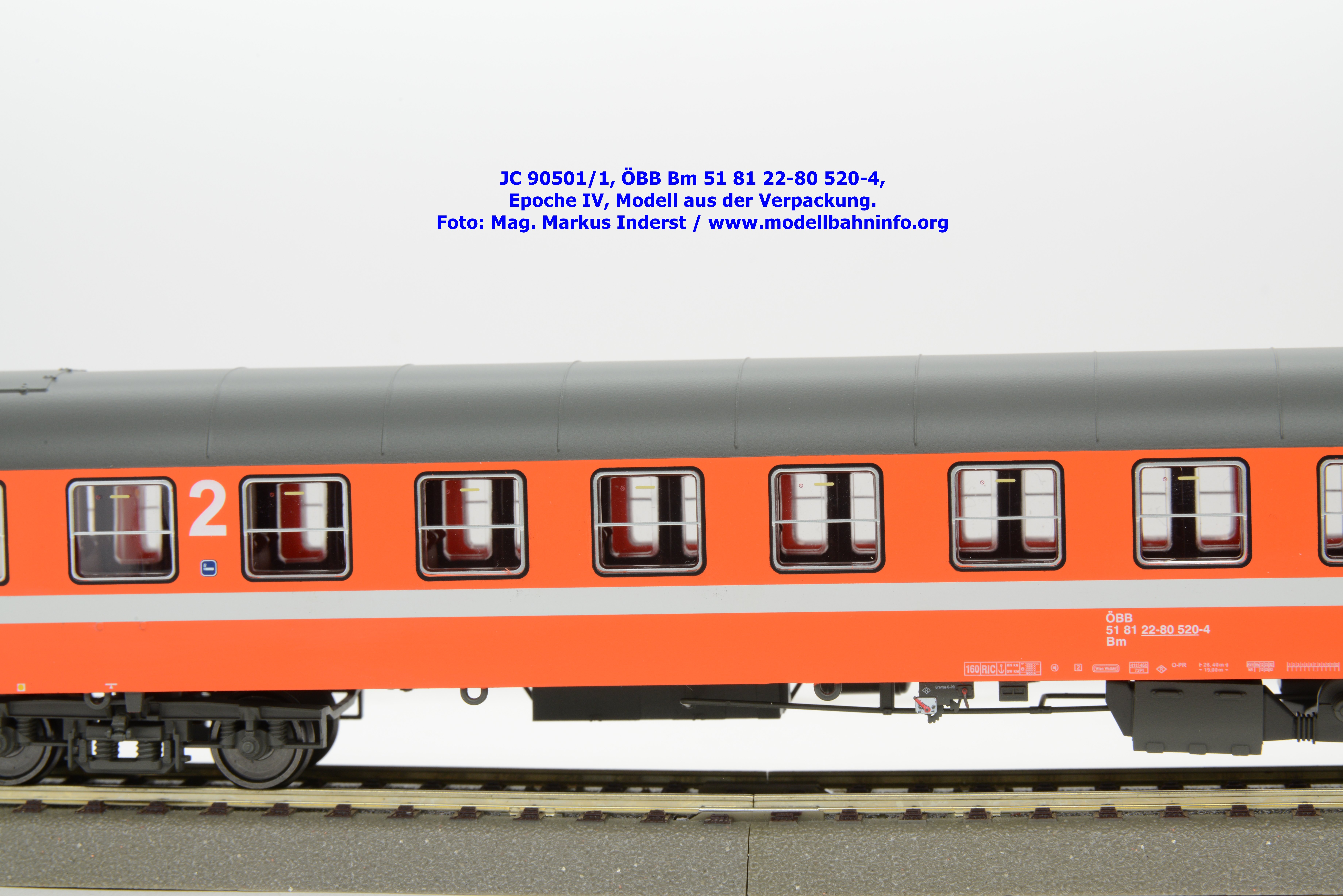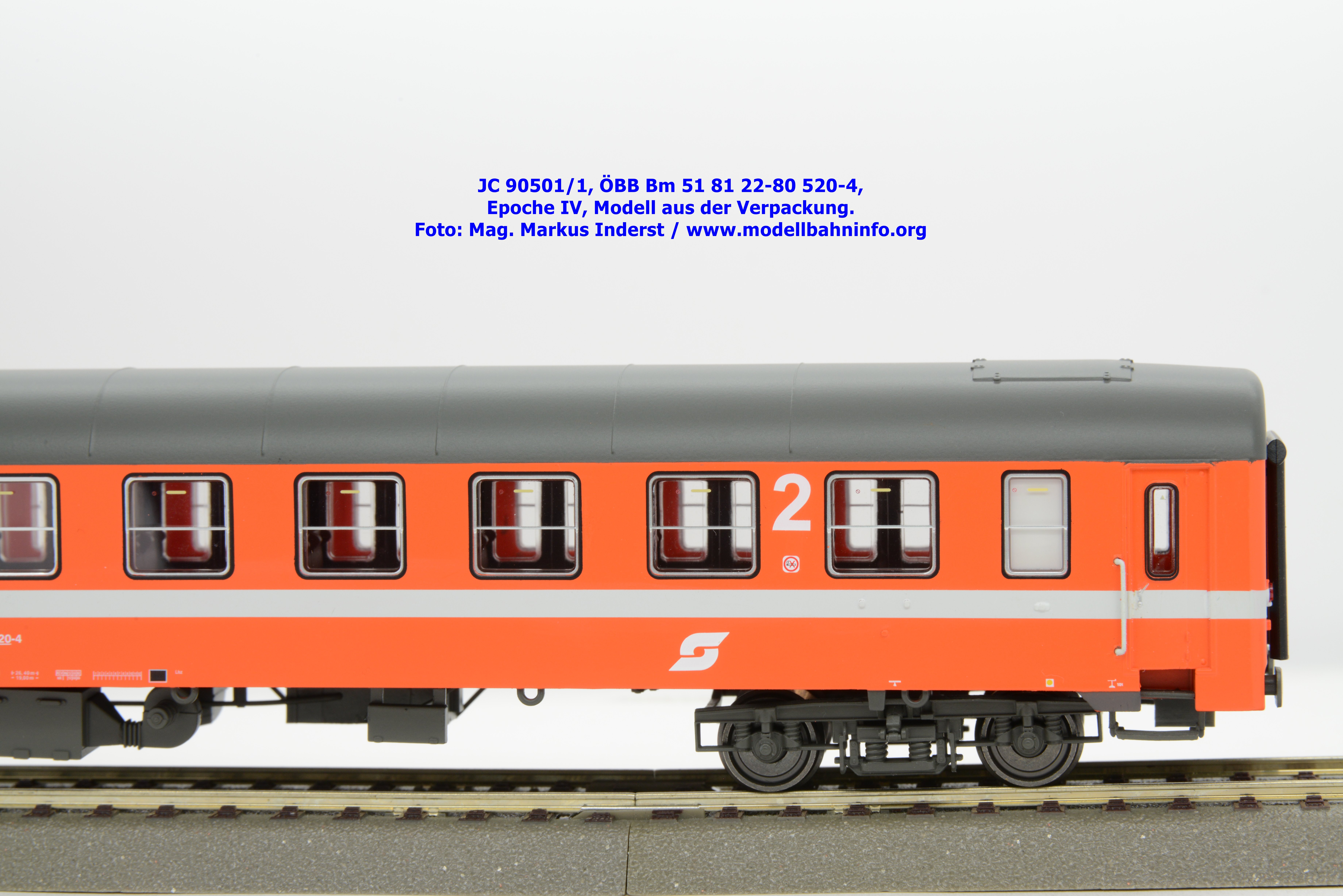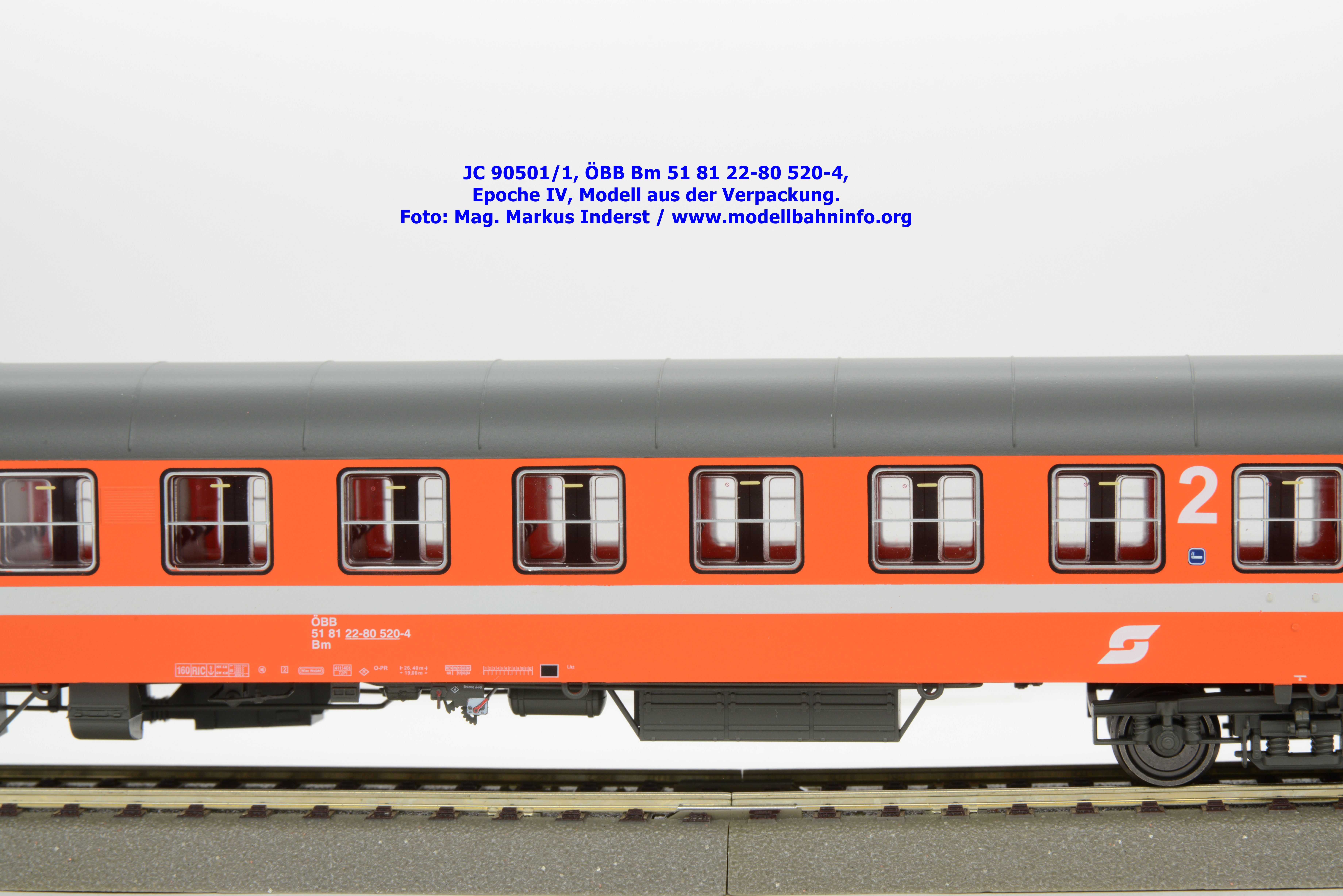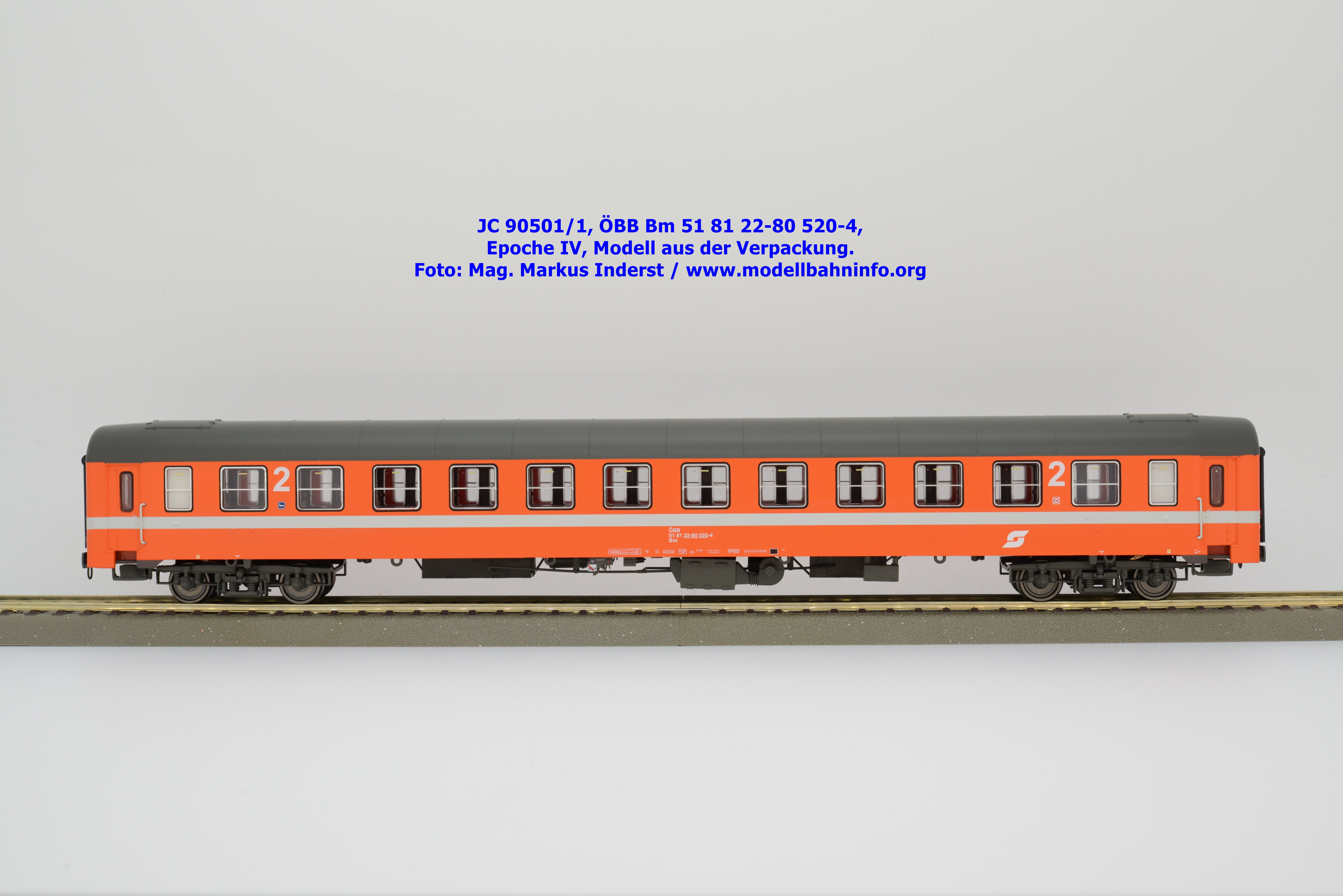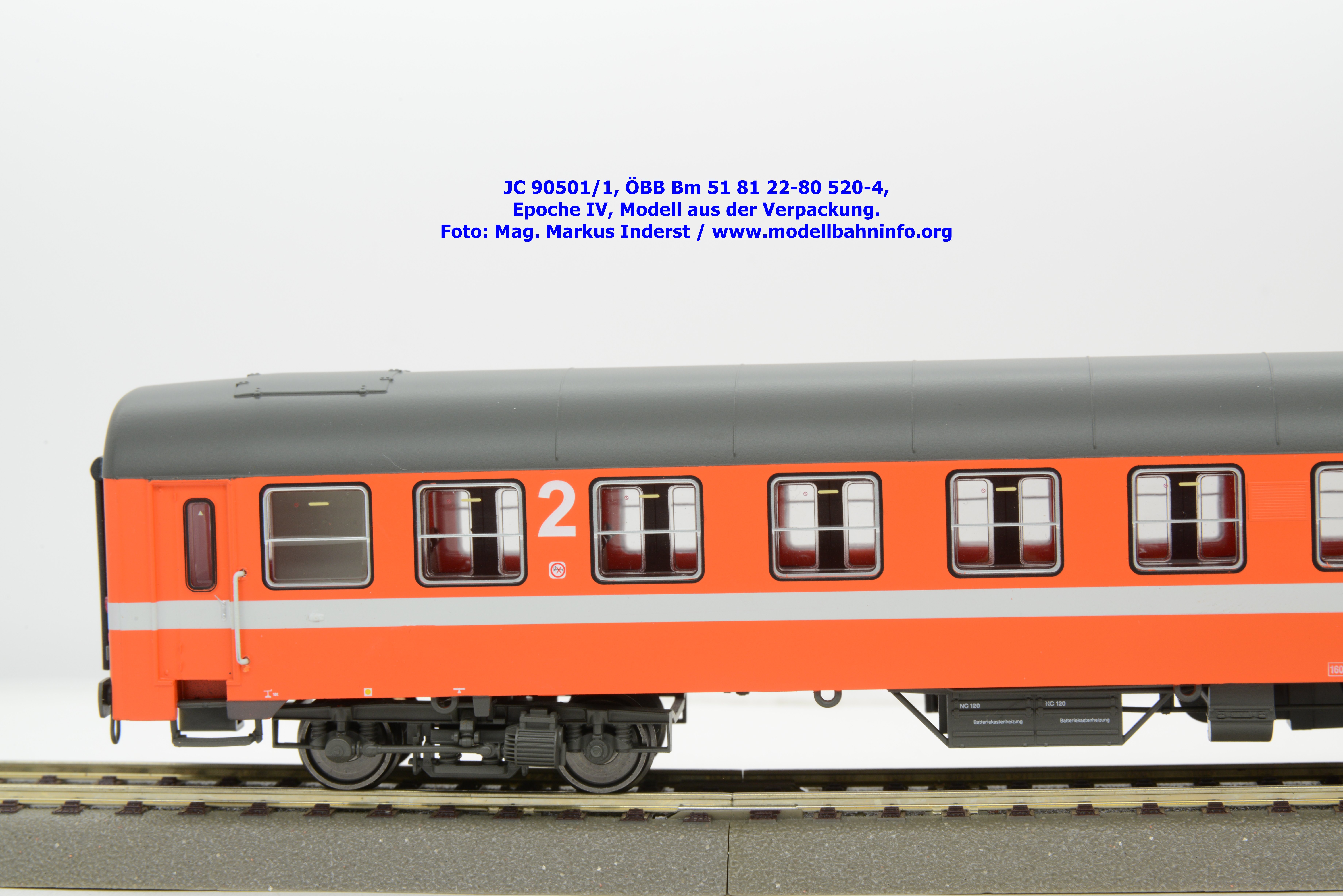 Dieser Schnellzugwagen der 2. Klasse gehört der 2. Serie der UIC-X-Vorserienwagen an. Das Modell ist mit der Gattungsbezeichnung Bm und der Wagennummer 51 81 22-80 520-4 bedruckt, als Heimatbahnhof ist „Wien-Wstbf.“ angeschrieben. Es ist bedauerlich, daß der bekannte Beschriftungsfehler vor der Produktion dieser Modelle nicht korrigiert wurde. Im Revisionsraster stehen die Untersuchungsdaten mit der Angabe REV Ws 12.03.82. Das Modell ist mit Drehgestellen der Bauart MD 36/IA versehen.