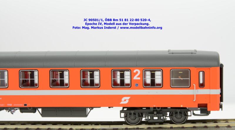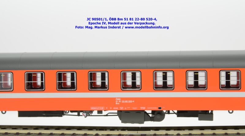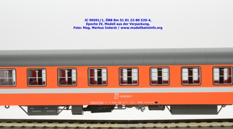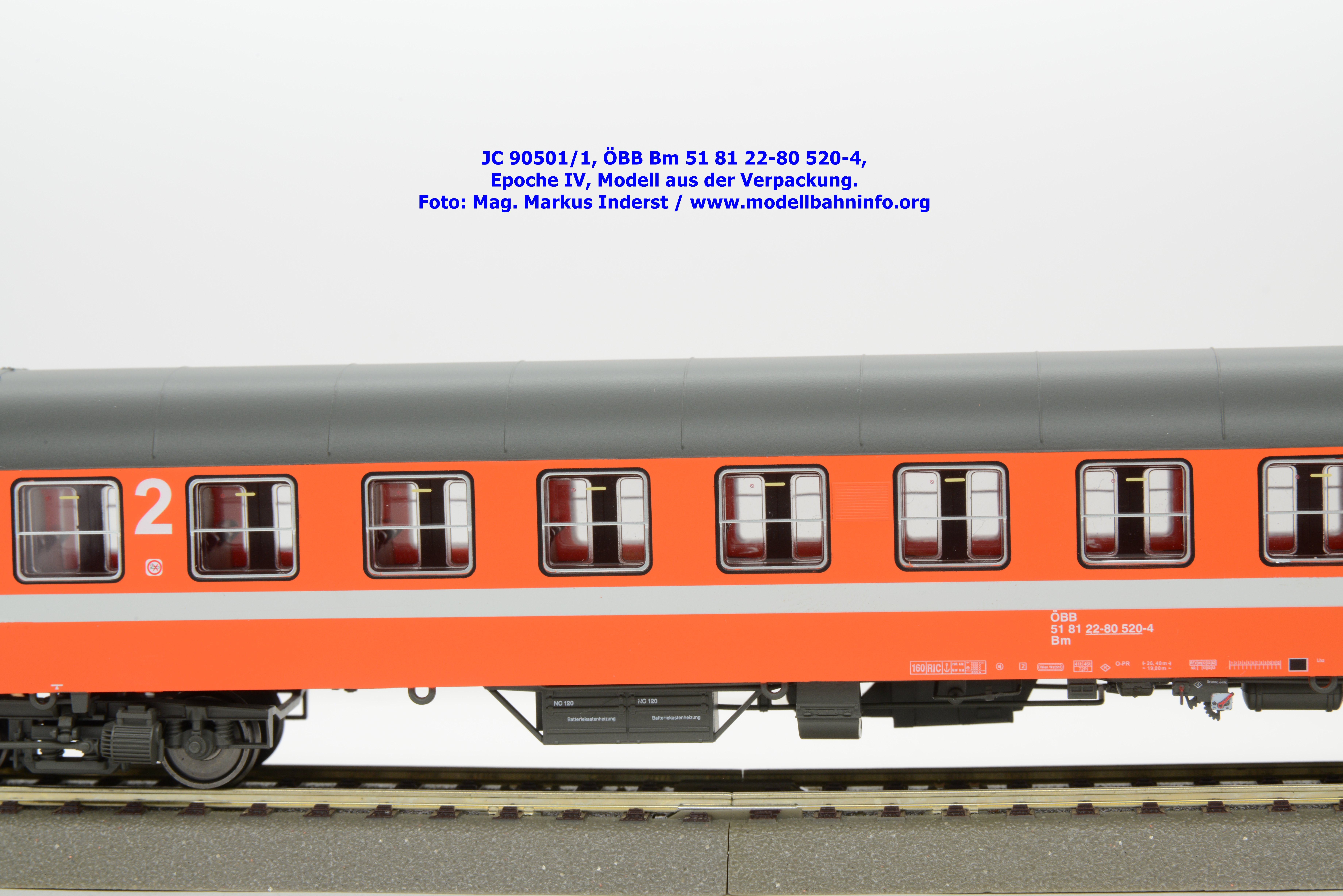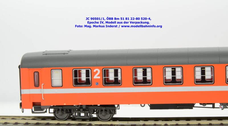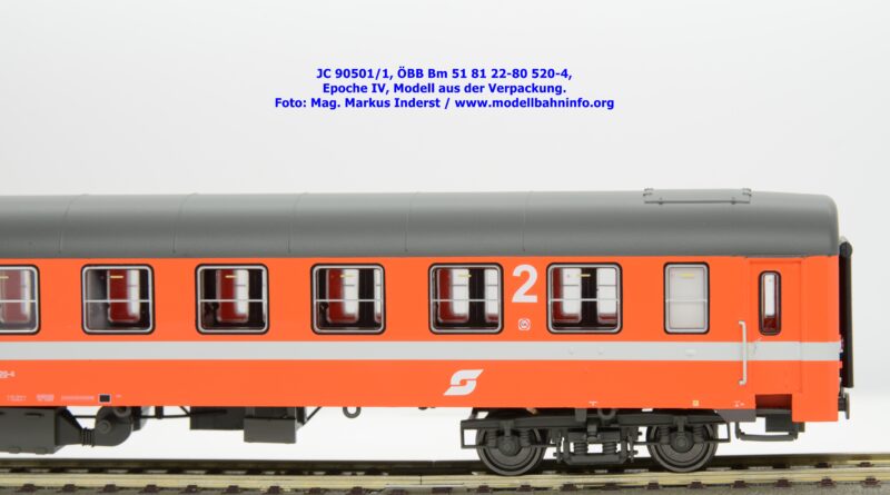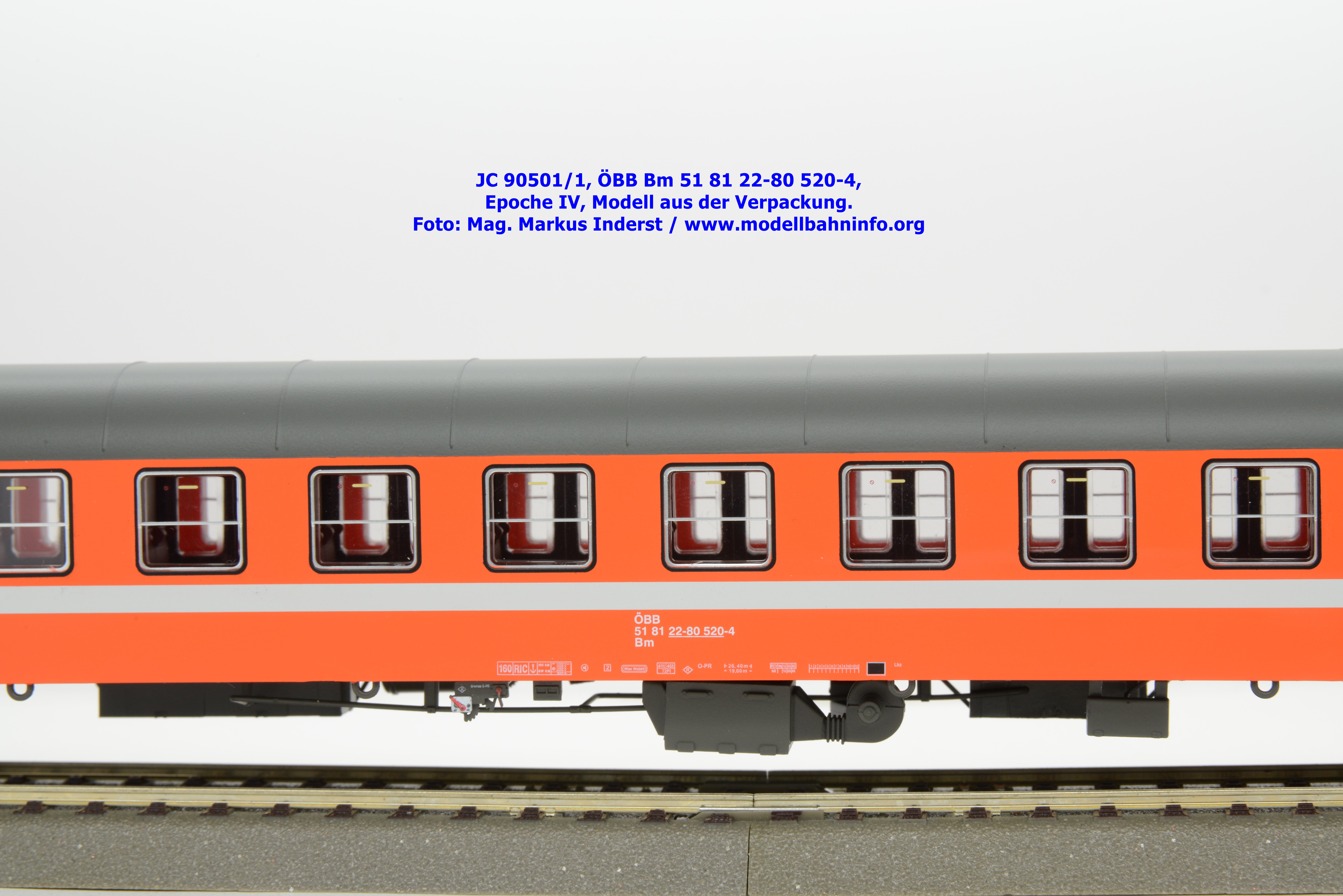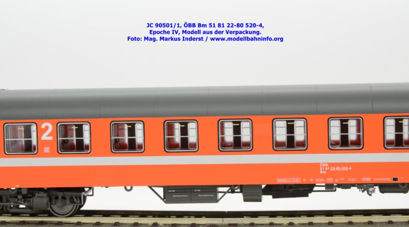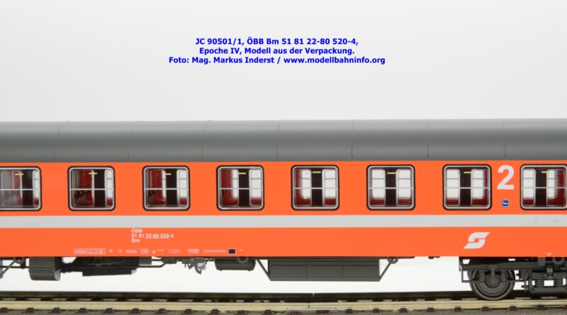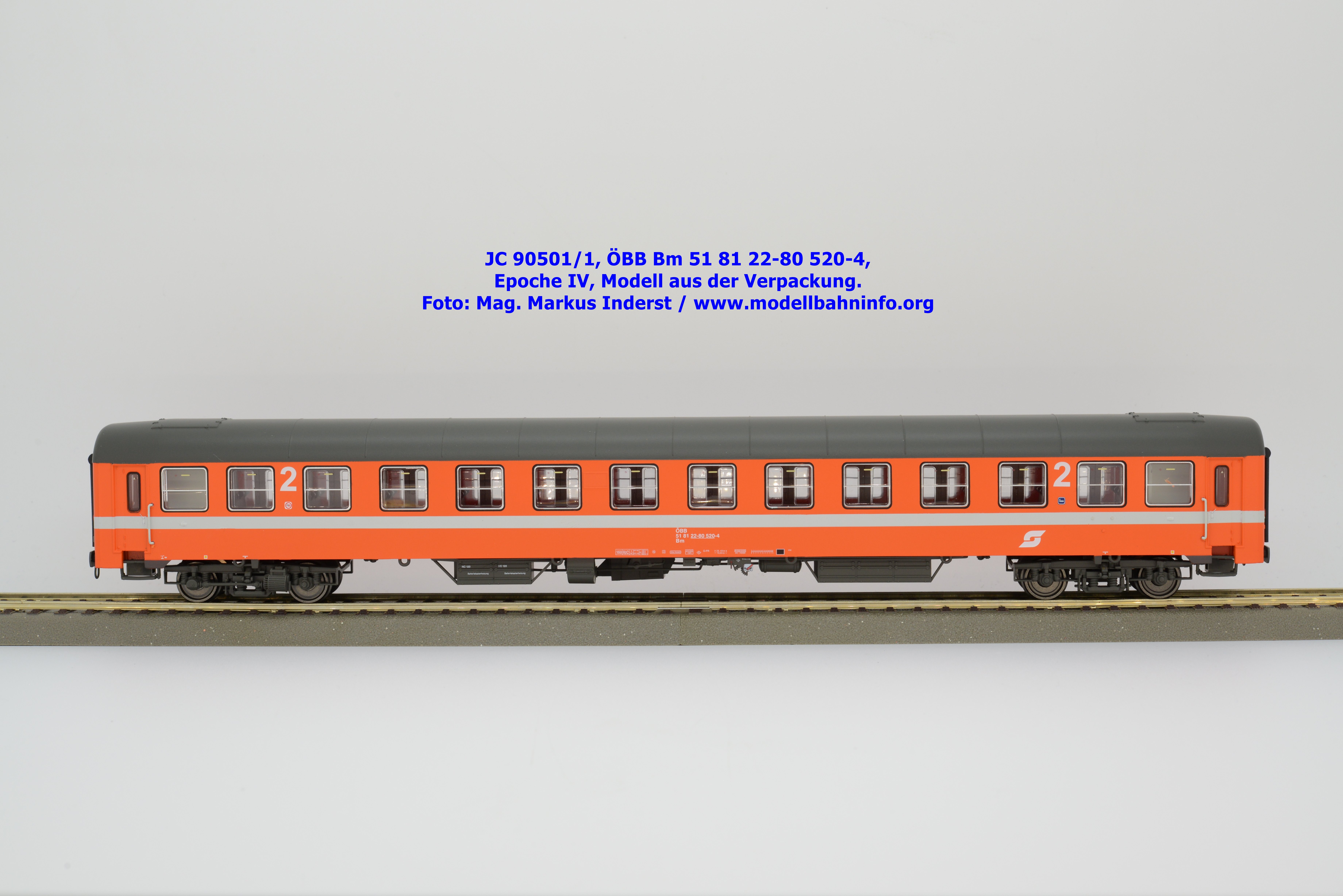 Dieser Schnellzugwagen der 2. Klasse gehört der 2. Serie der UIC-X-Vorserienwagen an. Das Modell ist mit der Gattungsbezeichnung Bm und der Wagennummer 51 81 22-80 520-4 bedruckt, als Heimatbahnhof ist „Wien-Wstbf.“ angeschrieben. Es ist bedauerlich, daß der bekannte Beschriftungsfehler vor der Produktion dieser Modelle nicht korrigiert wurde. Im Revisionsraster stehen die Untersuchungsdaten mit der Angabe REV Ws 12.03.82. Das Modell ist mit Drehgestellen der Bauart MD 36/IA versehen.