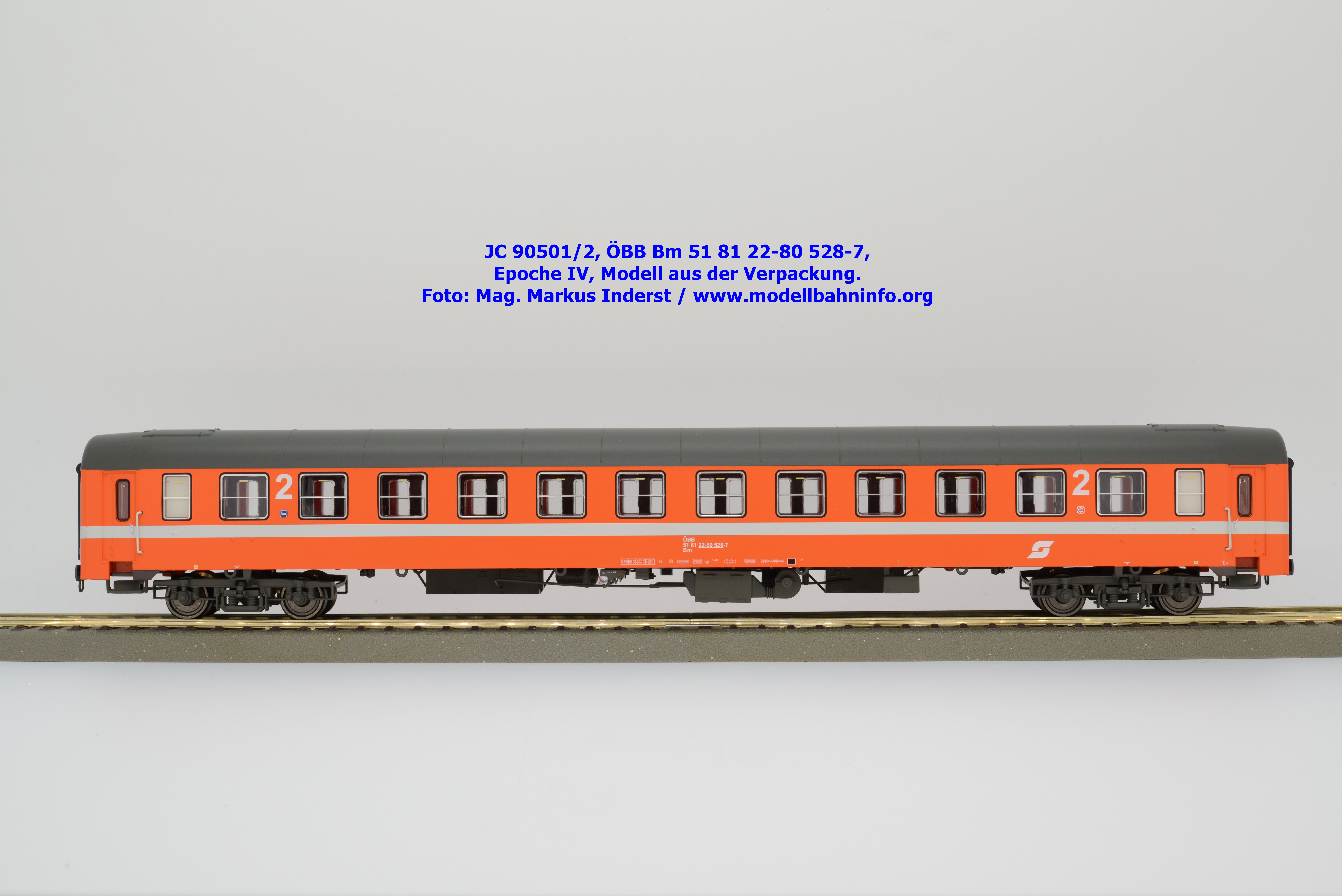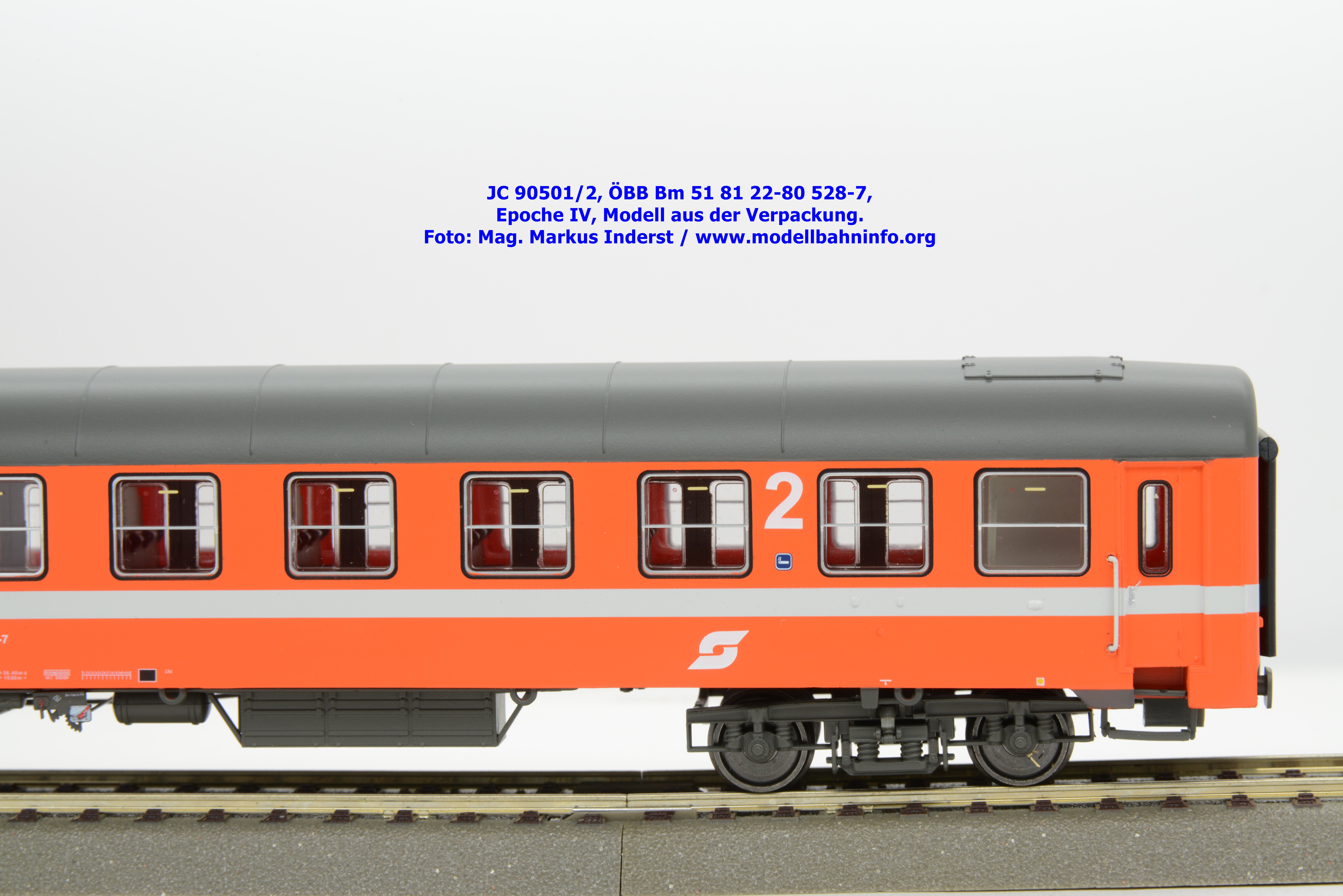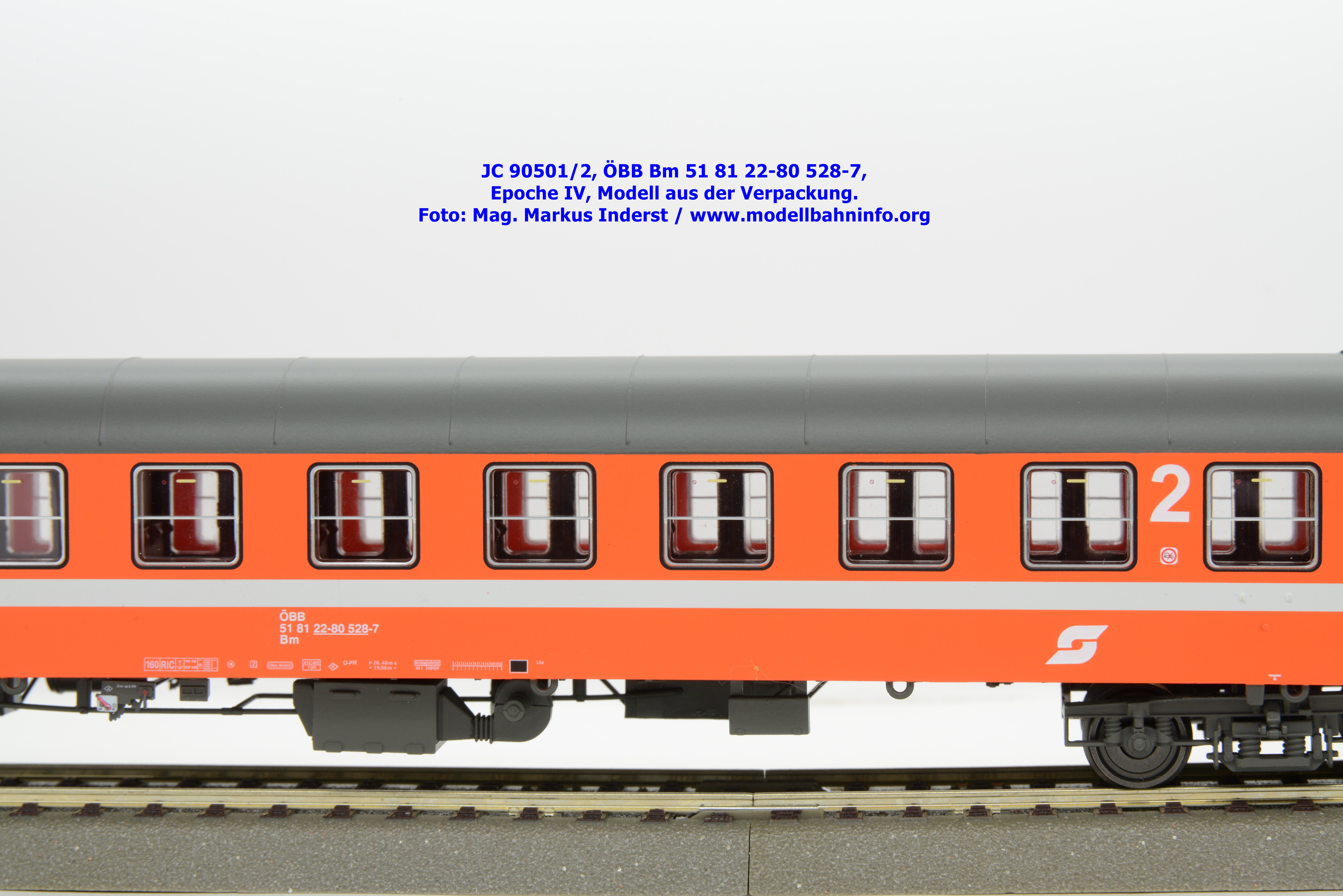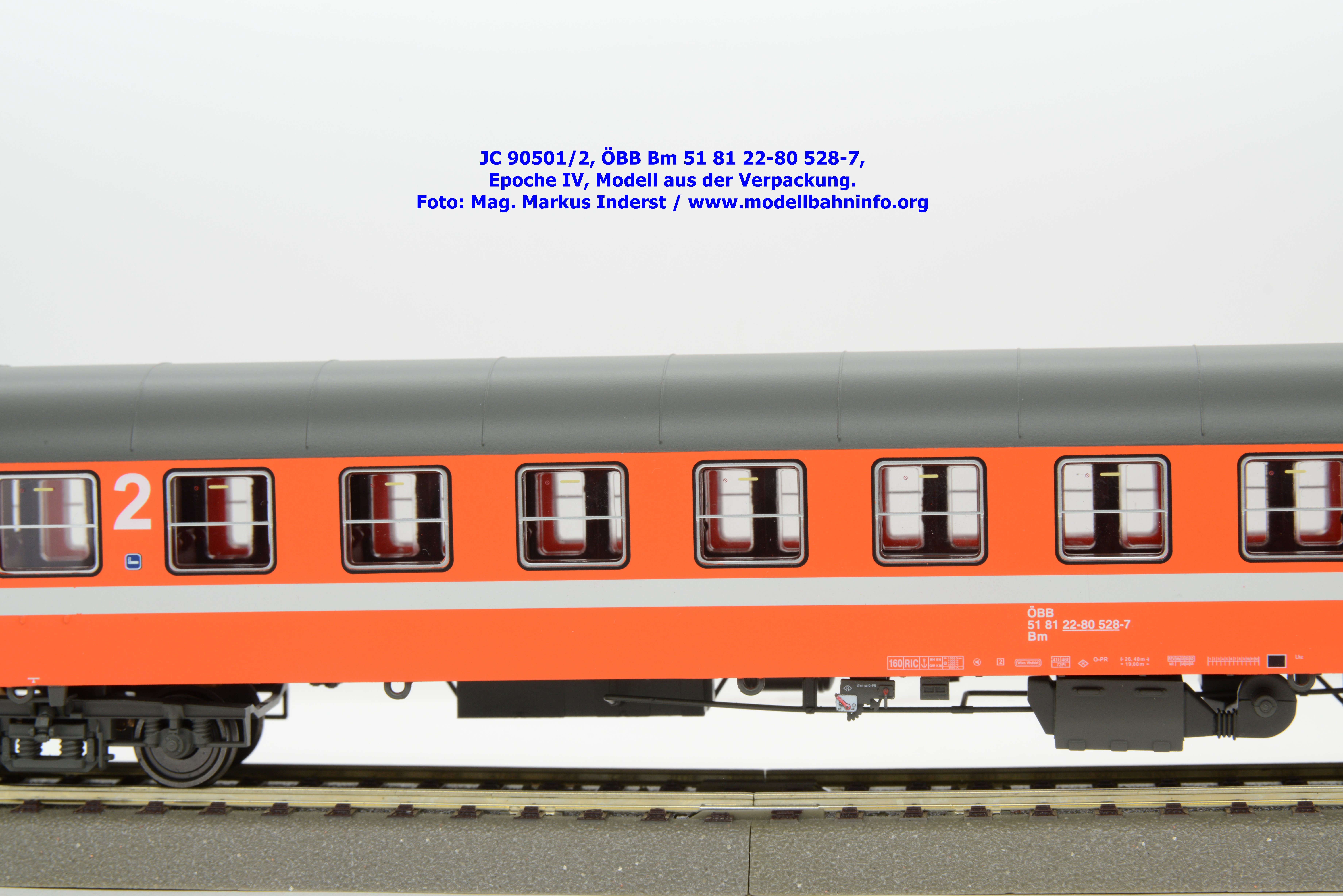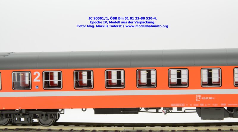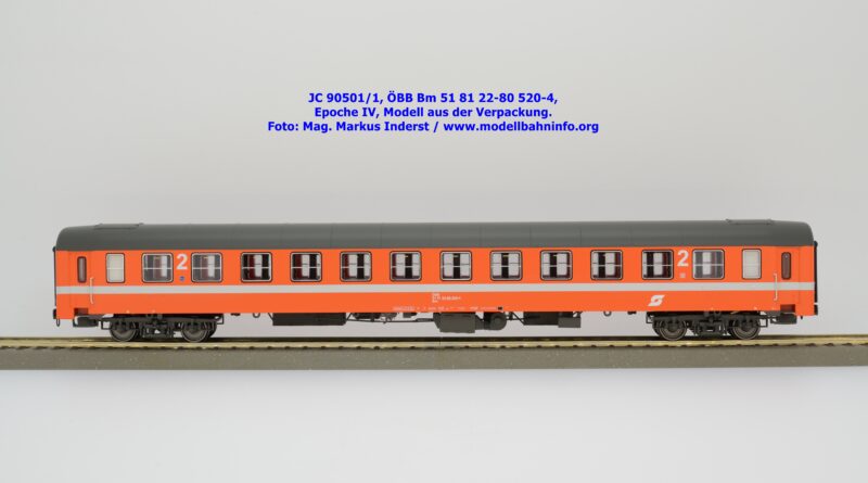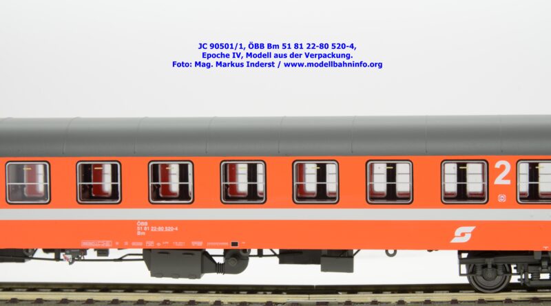 Dieser Schnellzugwagen der 2. Klasse gehört der 2. Serie der UIC-X-Vorserienwagen an. Das Modell ist mit der Gattungsbezeichnung Bm und der Wagennummer 51 81 22-80 520-4 bedruckt, als Heimatbahnhof ist „Wien-Wstbf.“ angeschrieben. Es ist bedauerlich, daß der bekannte Beschriftungsfehler vor der Produktion dieser Modelle nicht korrigiert wurde. Im Revisionsraster stehen die Untersuchungsdaten mit der Angabe REV Ws 12.03.82. Das Modell ist mit Drehgestellen der Bauart MD 36/IA versehen.