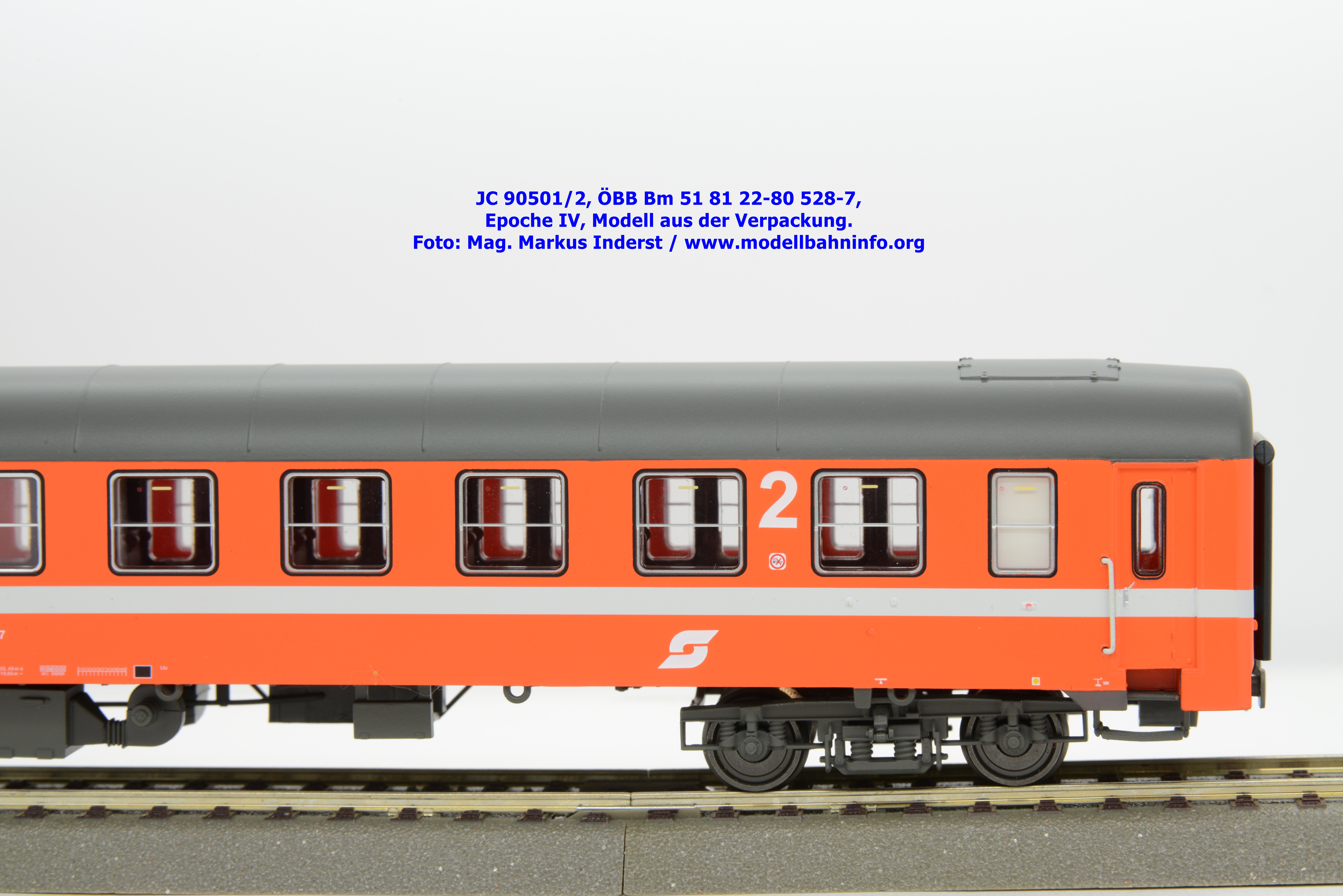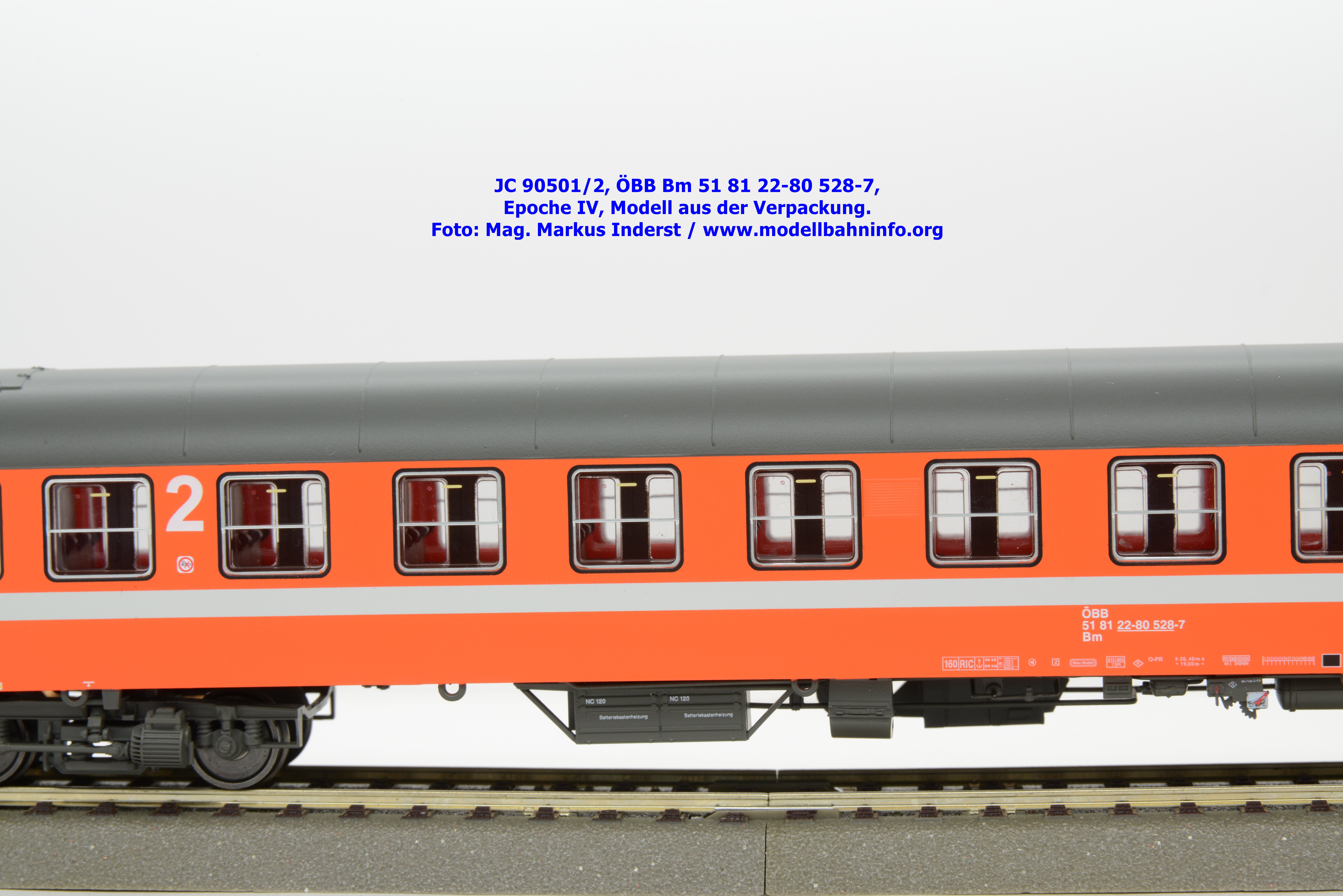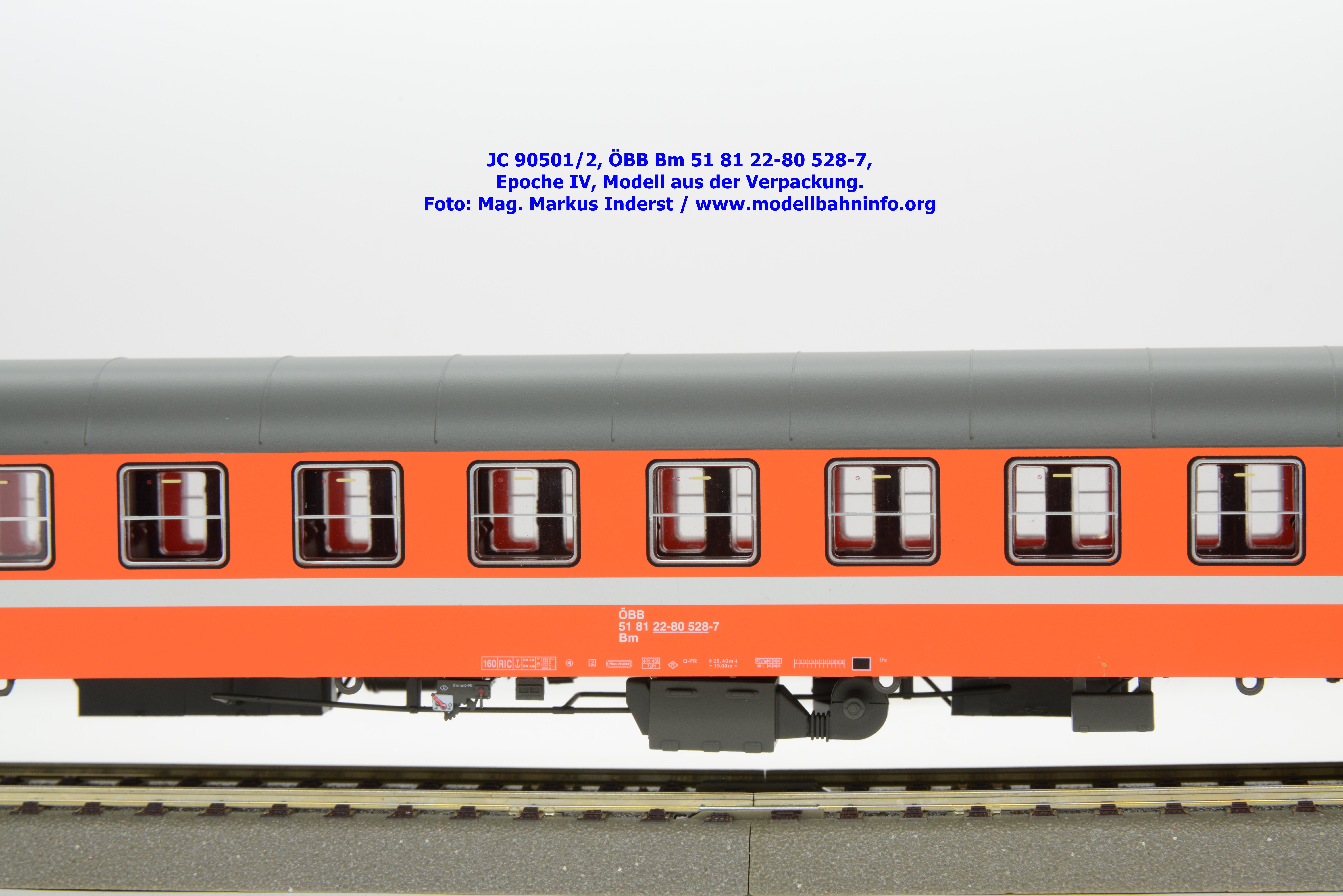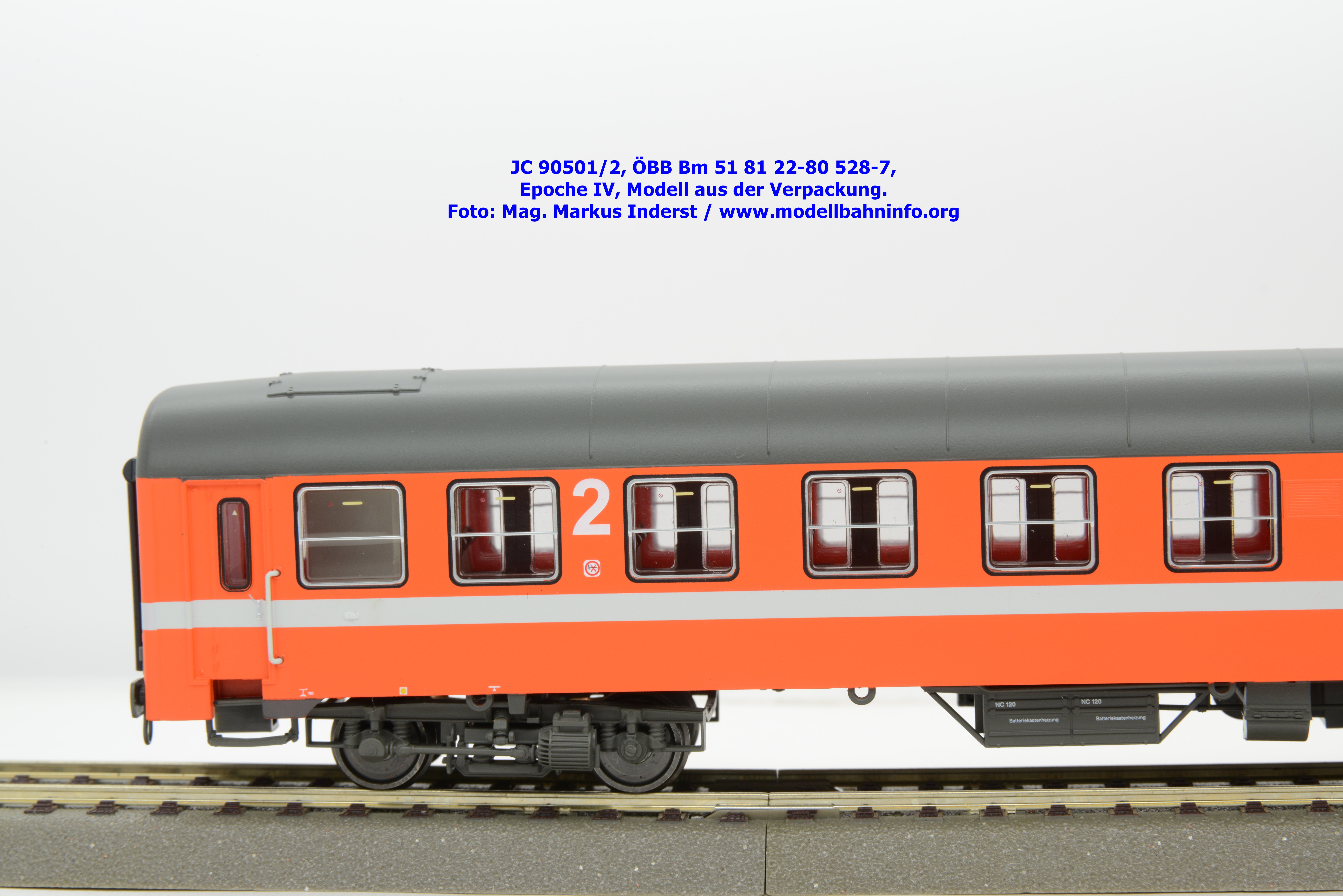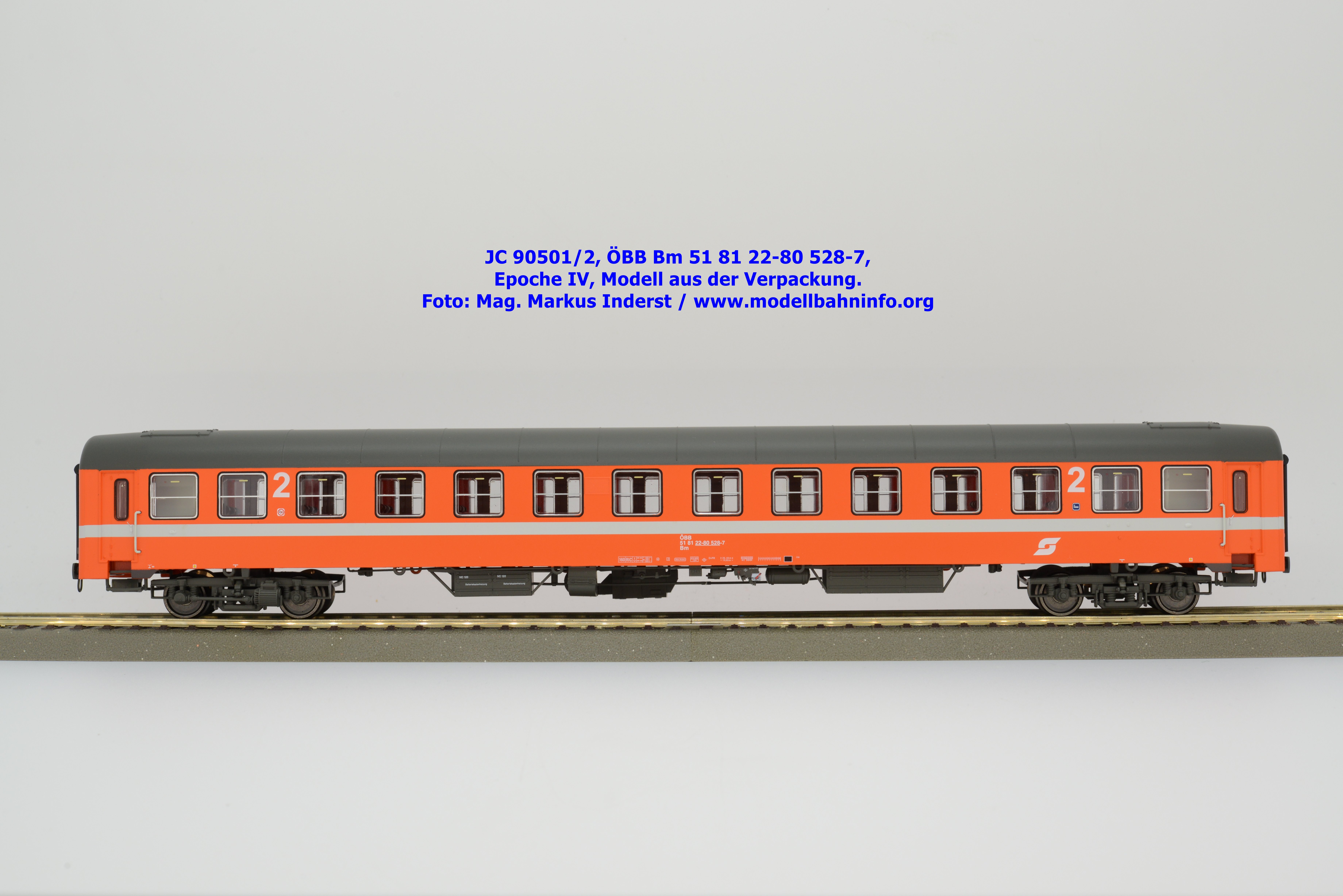 Dieser Schnellzugwagen der 2. Klasse gehört der 2. Serie der UIC-X-Vorserienwagen an. Das Modell ist mit der Gattungsbezeichnung Bm und der Wagennummer 51 81 22-80 520-4 bedruckt, als Heimatbahnhof ist „Wien-Wstbf.“ angeschrieben. Es ist bedauerlich, daß der bekannte Beschriftungsfehler vor der Produktion dieser Modelle nicht korrigiert wurde. Im Revisionsraster stehen die Untersuchungsdaten mit der Angabe REV Ws 12.03.82. Das Modell ist mit Drehgestellen der Bauart MD 36/IA versehen.