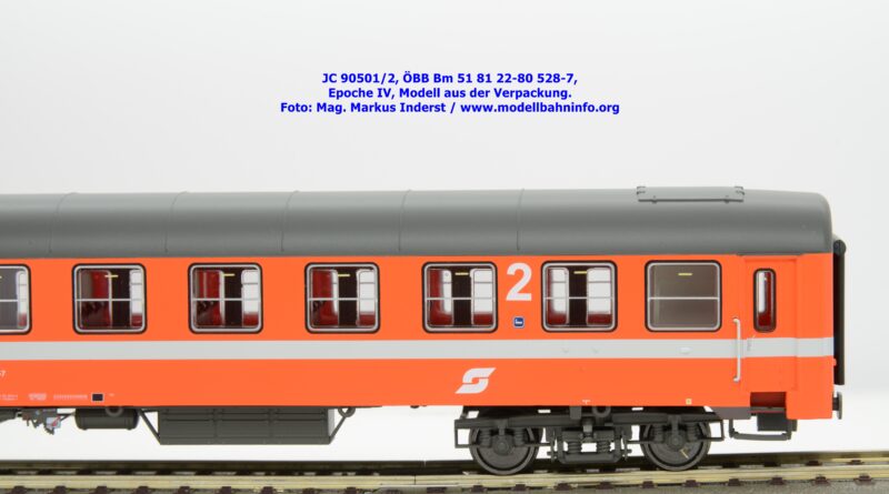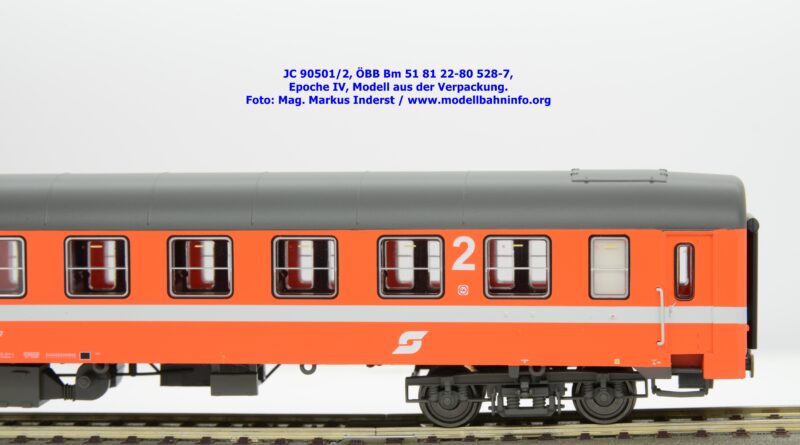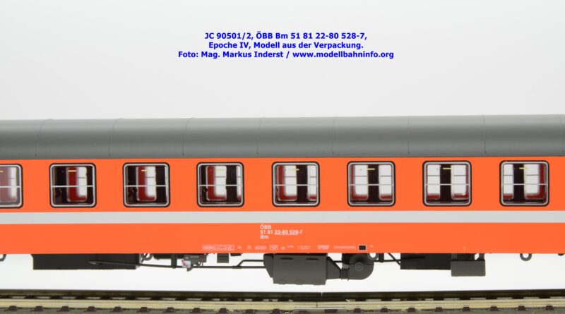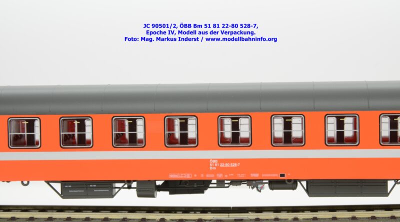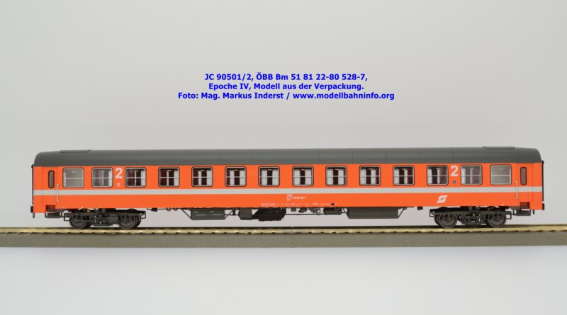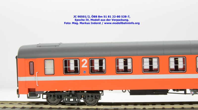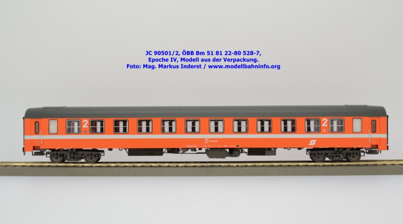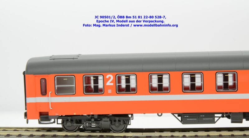 Die Firma Jägerndorfer hat nach der Umsetzung der UIC-X-Wagen der ÖBB beschlossen, auch die entsprechenden Vorserien-Wagen hierzu ins Sortiment zu nehmen. Die Ankündigung für diese Neukonstruktion ist im Katalog des Jahres 2023 zu finden. Darin sind Einzelmodelle als auch Wagensets zu finden, wobei der Hersteller drei verschiedene Farbvarianten angekündigt hat, und zwar Wagen in tannengrüner Farbgebung für die Epochen III und IV, in reinoranger Farbgebung für die Epoche IV und in der Ausführung im Sparlack für die Epoche V (nicht wie im Katalog angegeben IV). Bei der Modellumsetzung wurden verschiedene Wagenzusammenstellungen in den Sets berücksichtigt, wiewohl auch die Ausführung der 1. und 2. Serie zusammengemischt werden. Folgende Modelle sind bislang angekündigt worden: