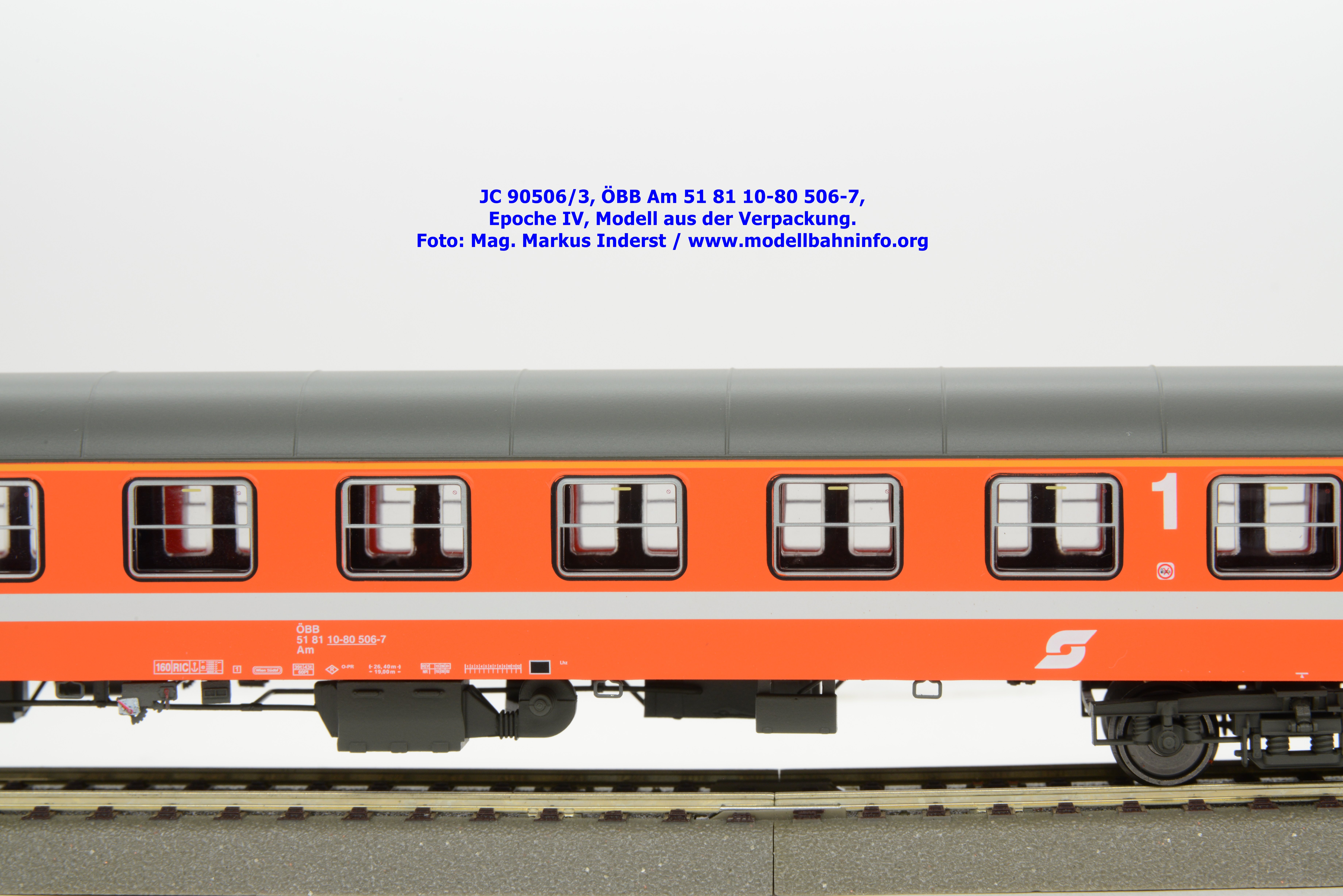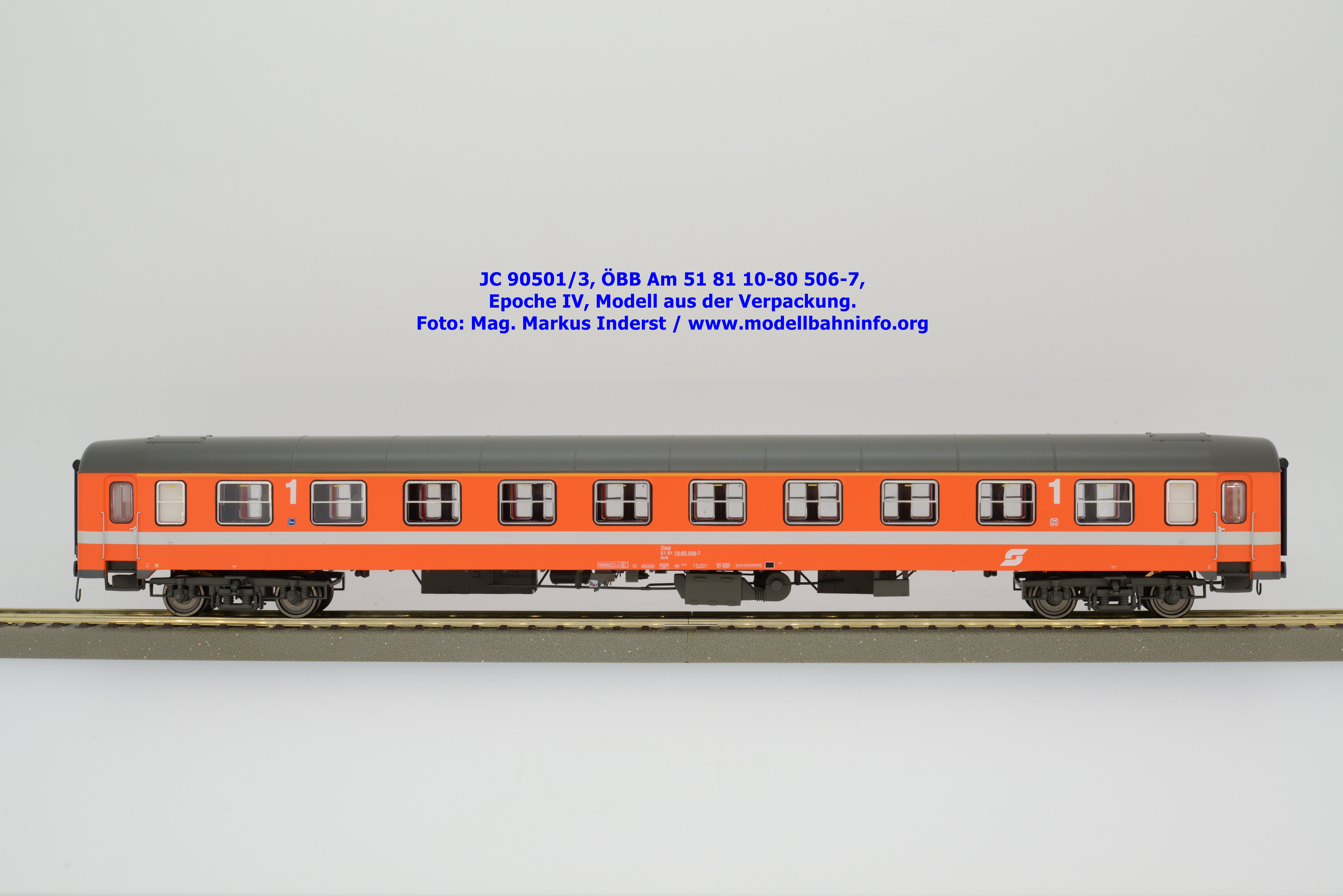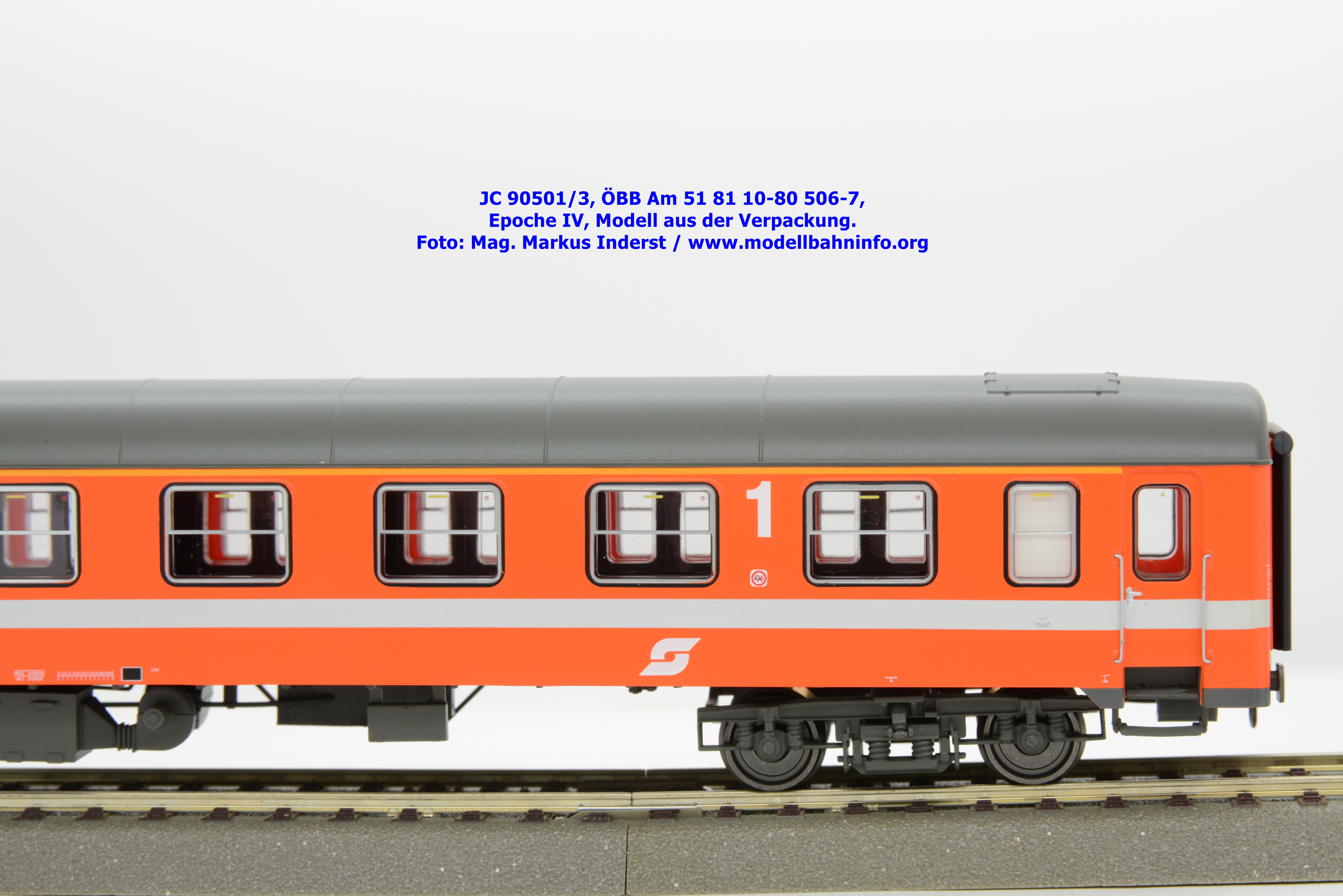 Das Modell des 1. Klasse-Wagens ist als Am 51 81 10-80 506-7 beschriftet, dessen Heimatbahnhof „Wien Südbf.“ ist. Im Revisionsraster finden sich die Daten REV 15.09.81. Auch dieses Modell ist mit Drehgestellen der Bauart MD 36/IA ausgestattet. Dasselbe Modell ist schon im Wagenset mit der Artikelnummer 90501 enthalten.