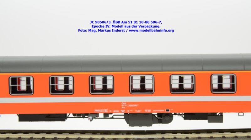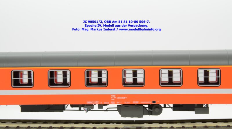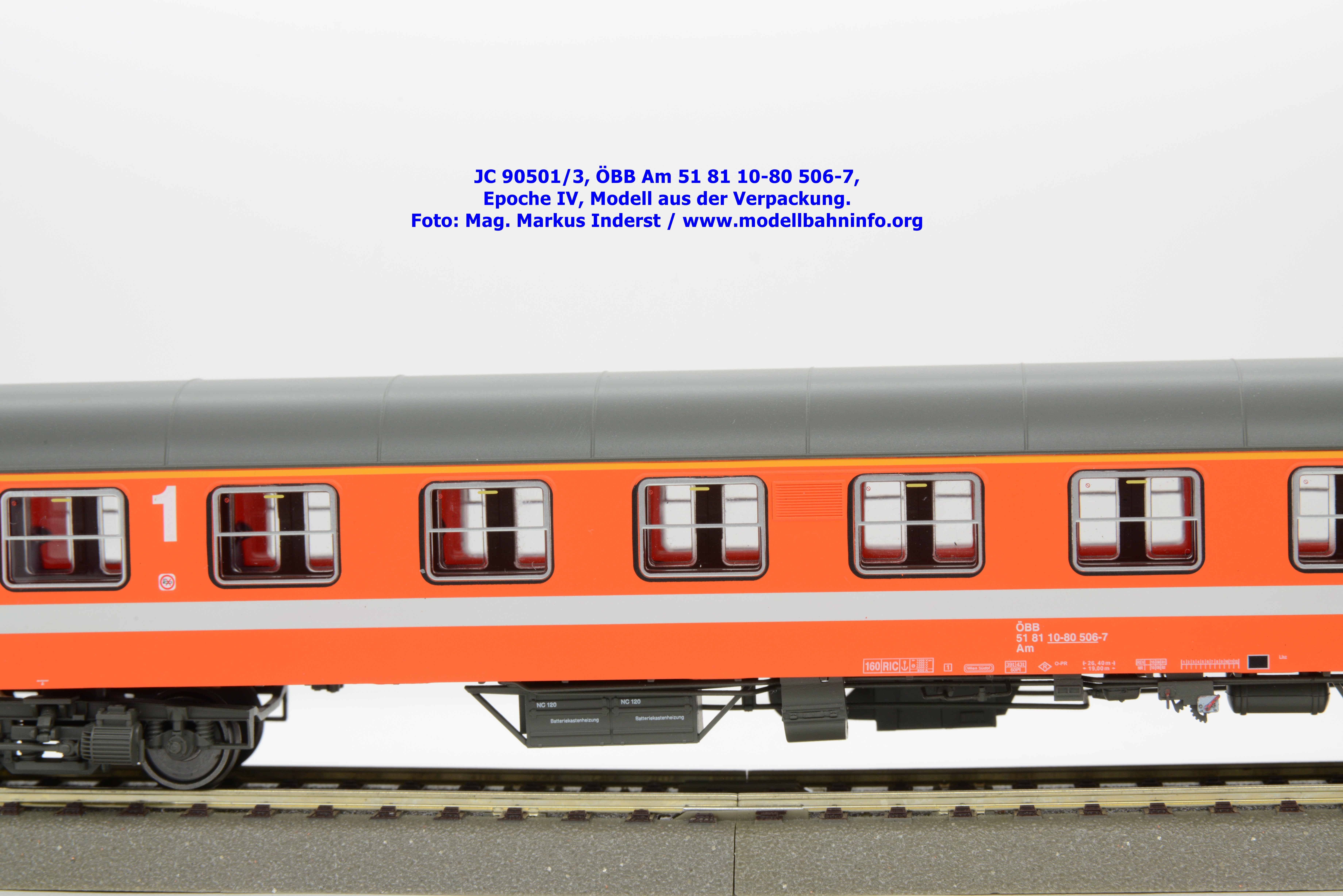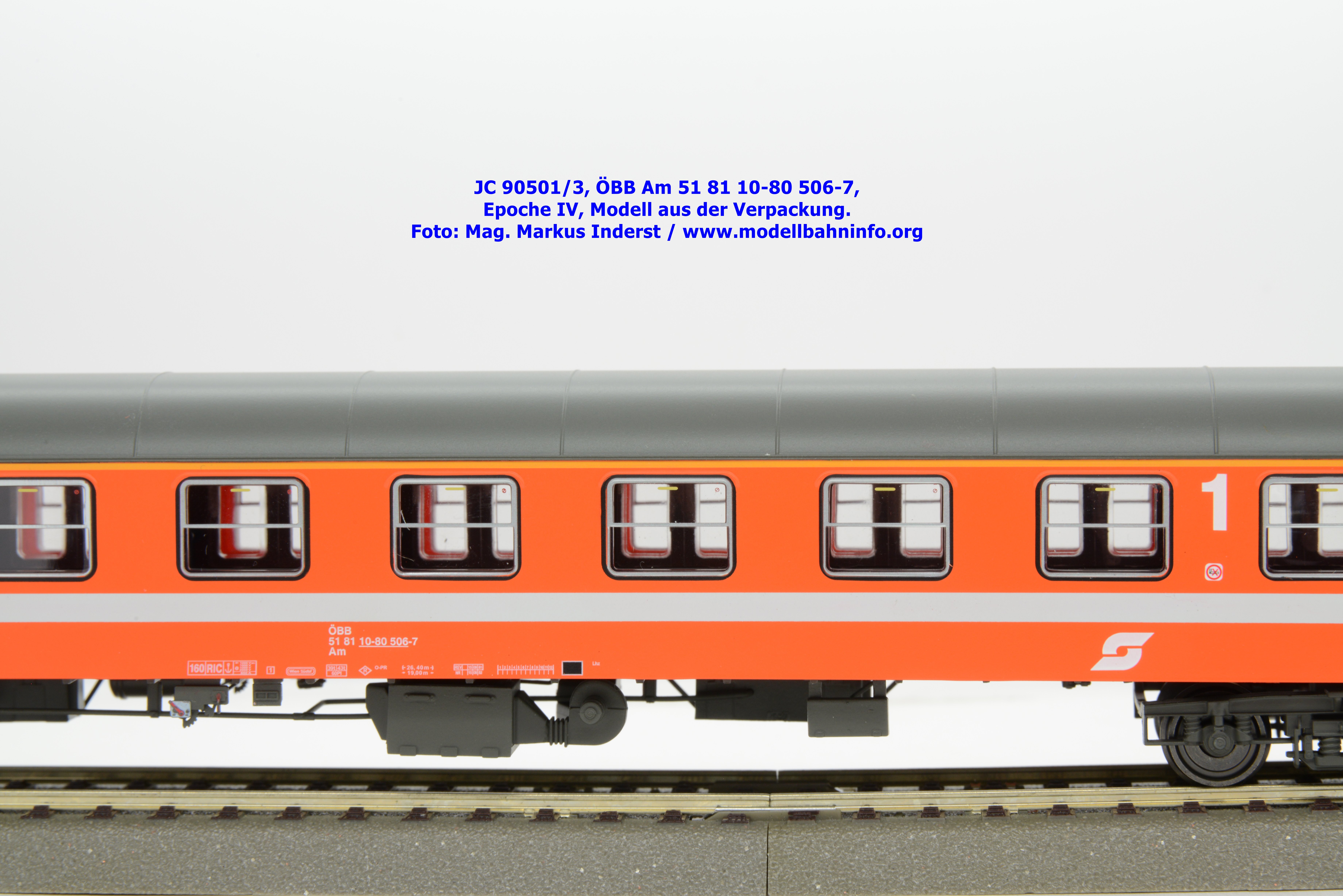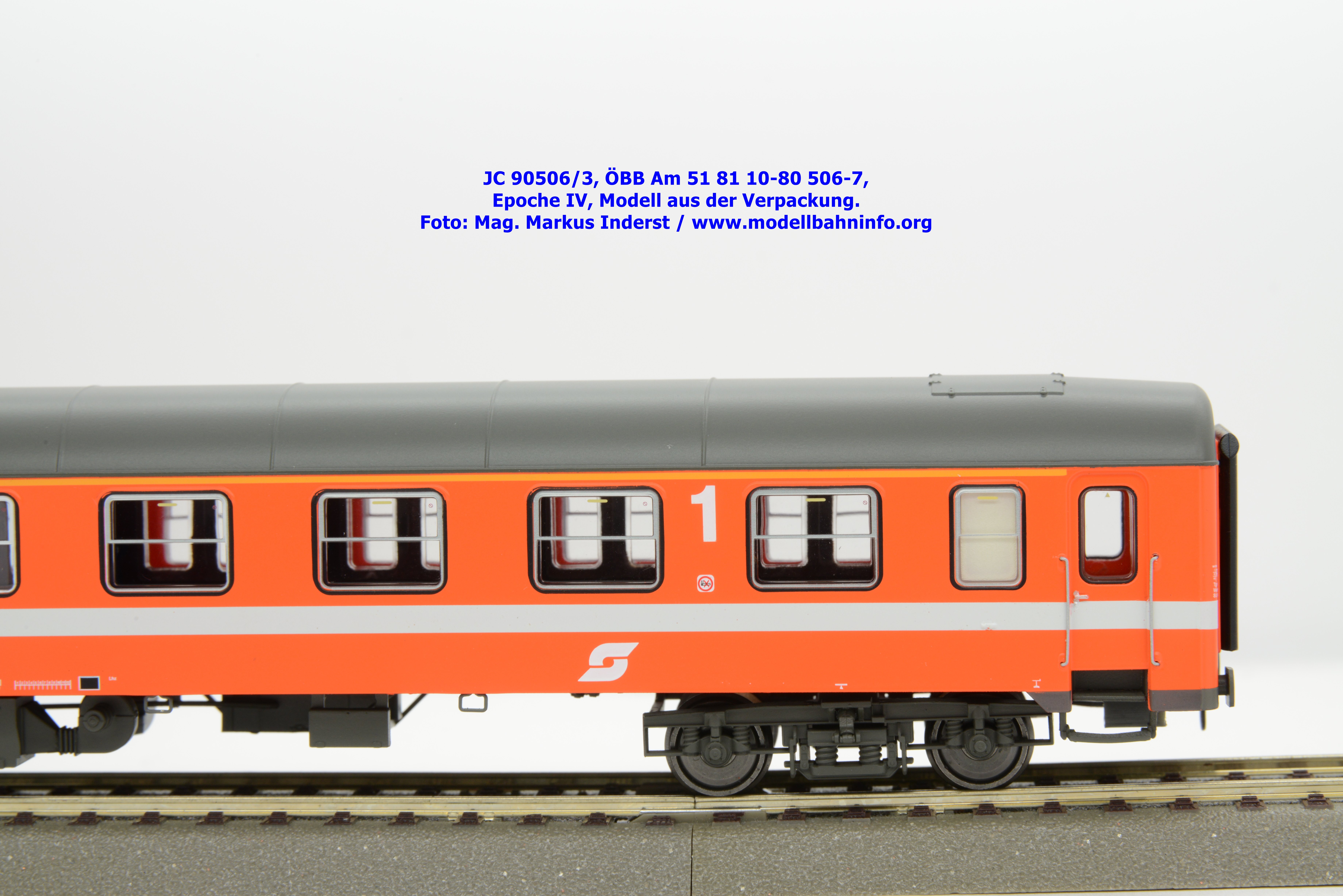 Das Modell des 1. Klasse-Wagens ist als Am 51 81 10-80 506-7 beschriftet, dessen Heimatbahnhof „Wien Südbf.“ ist. Im Revisionsraster finden sich die Daten REV 15.09.81. Auch dieses Modell ist mit Drehgestellen der Bauart MD 36/IA ausgestattet. Dasselbe Modell ist schon im Wagenset mit der Artikelnummer 90501 enthalten.
