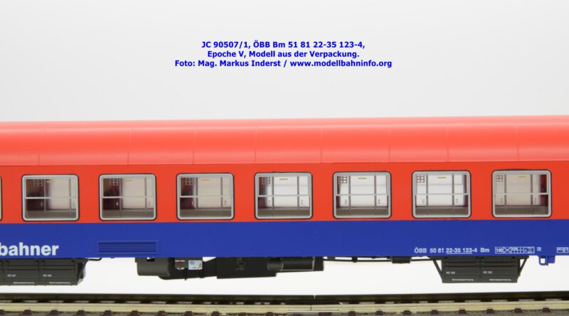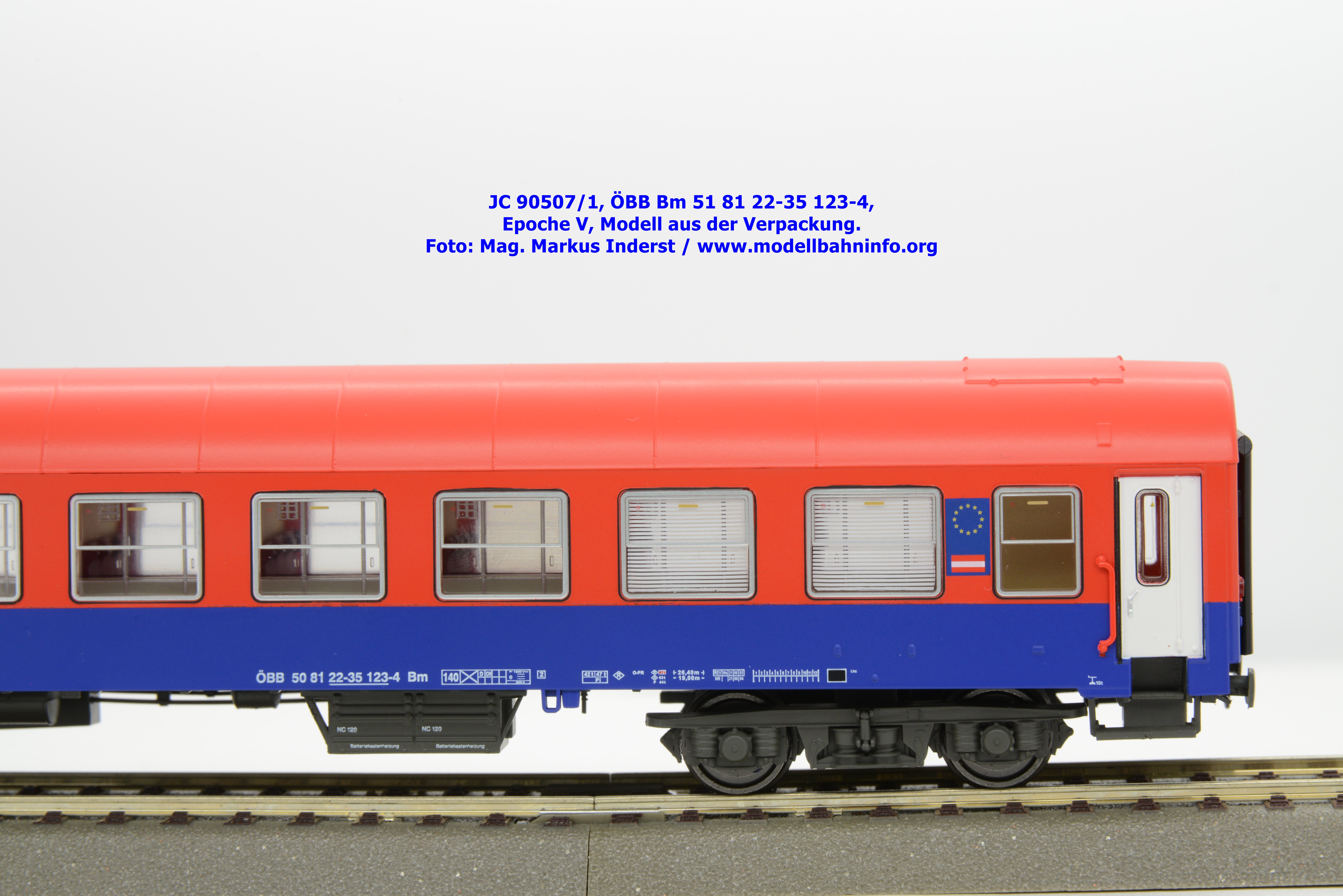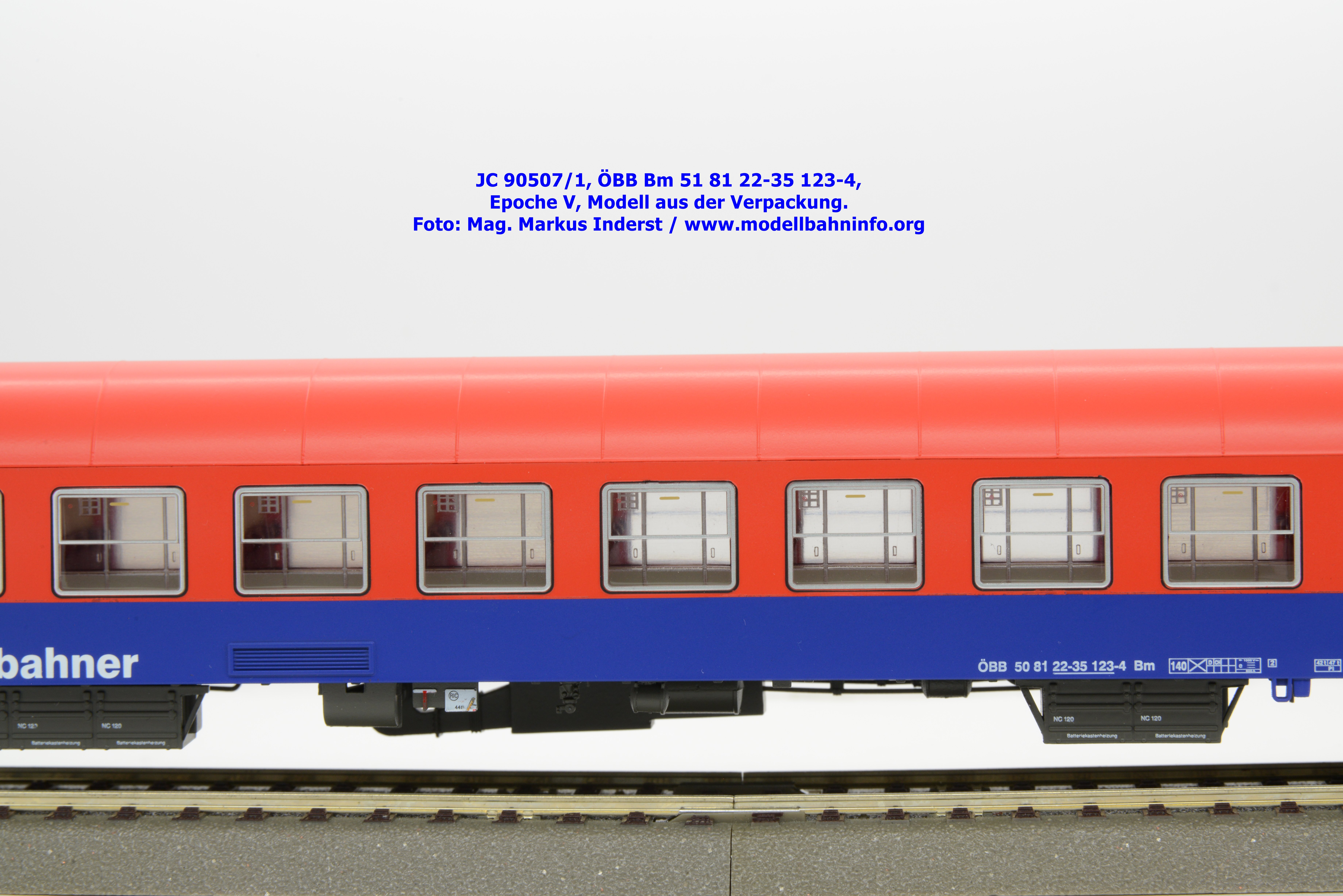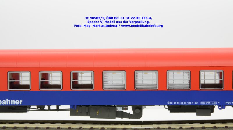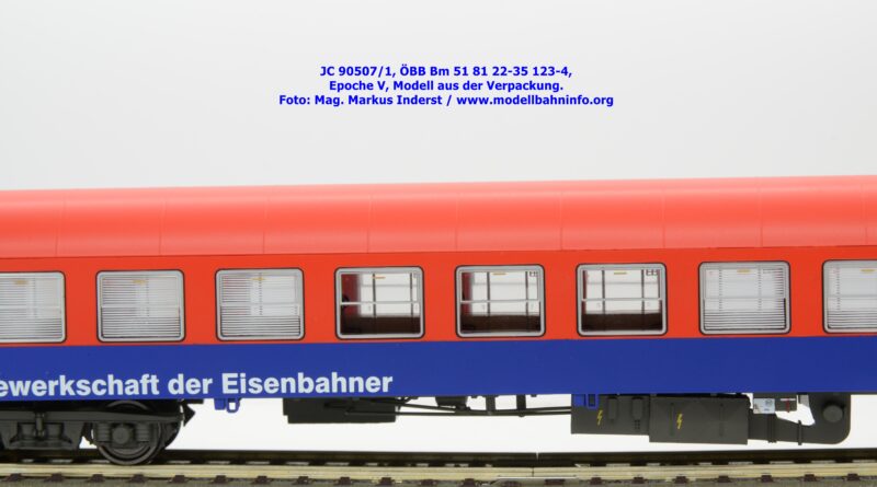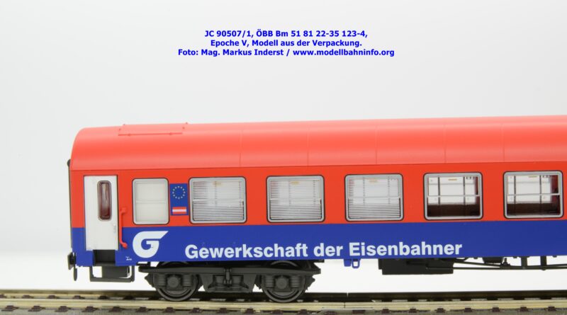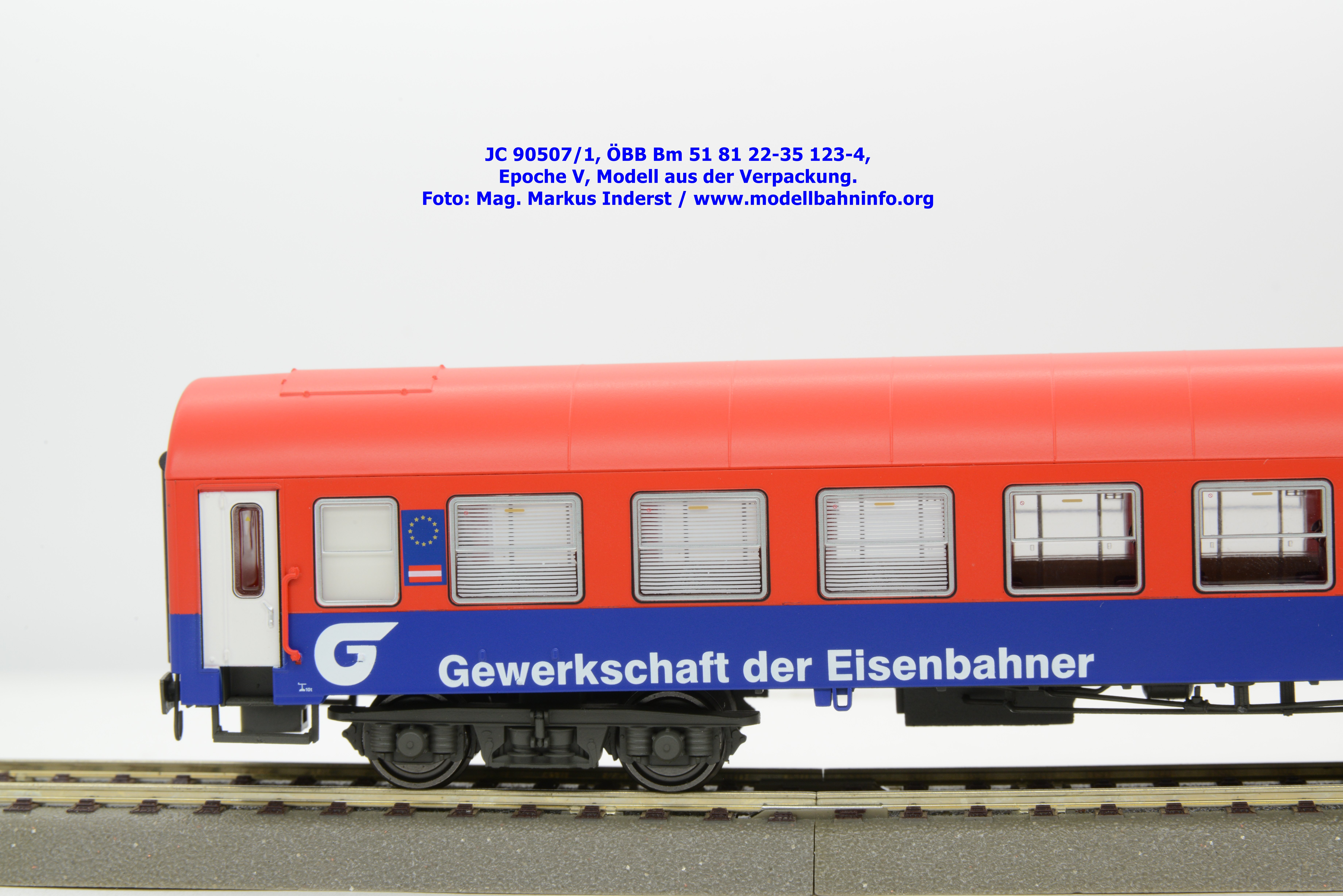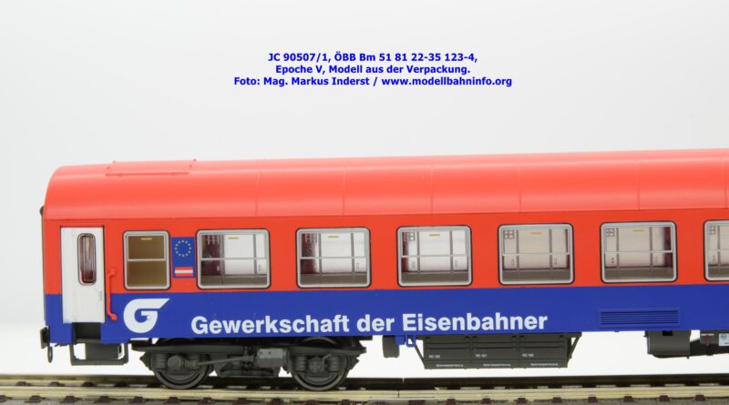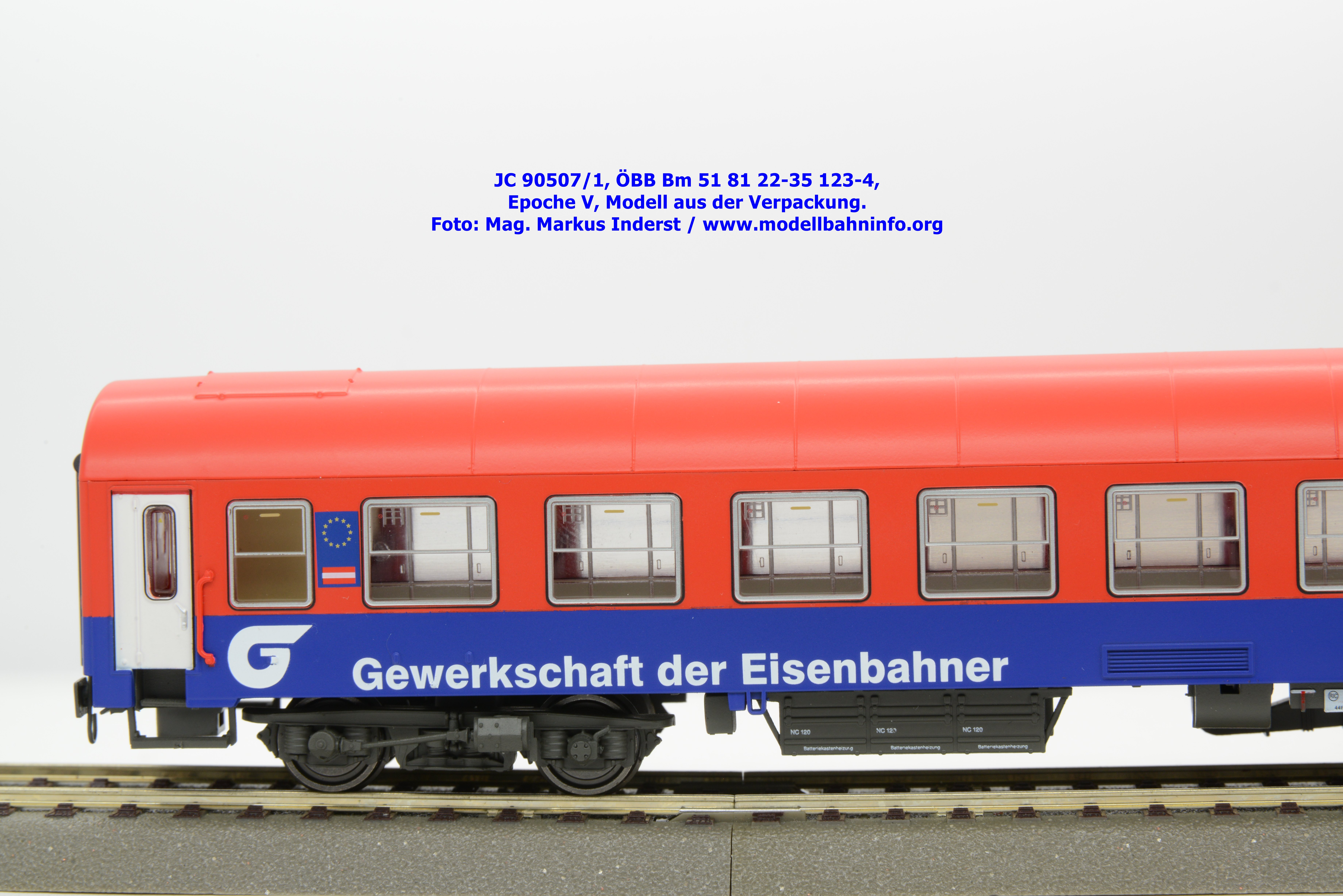 Der blau-rot-lackierte Personenwagen war lange Zeit im Areal der Zfl. Linz abgestellt und diente wohl als Konferenzwagen für die Gewerkschaft der Eisenbahner. Diese ließ den Wagen in den Farben rot und dunkelblau lackierten und wurde mit den Wagenanschriften Bm 50 81 22-35 123-4 im Bestand der ÖBB geführt. Das Modell ist mit den Untersuchungsdaten REV Ws 21.06.93 beschriftet und reiht sich ebenfalls in die Epoche V ein. Auffallend sind die verbauten Drehgestelle, die in diesem Falle der Bauart SGP IV C entsprechen.