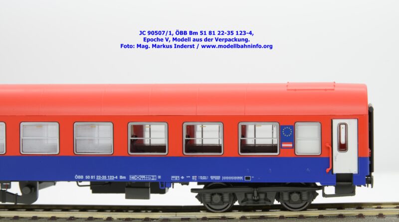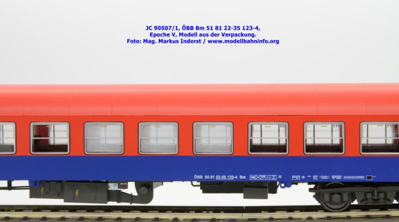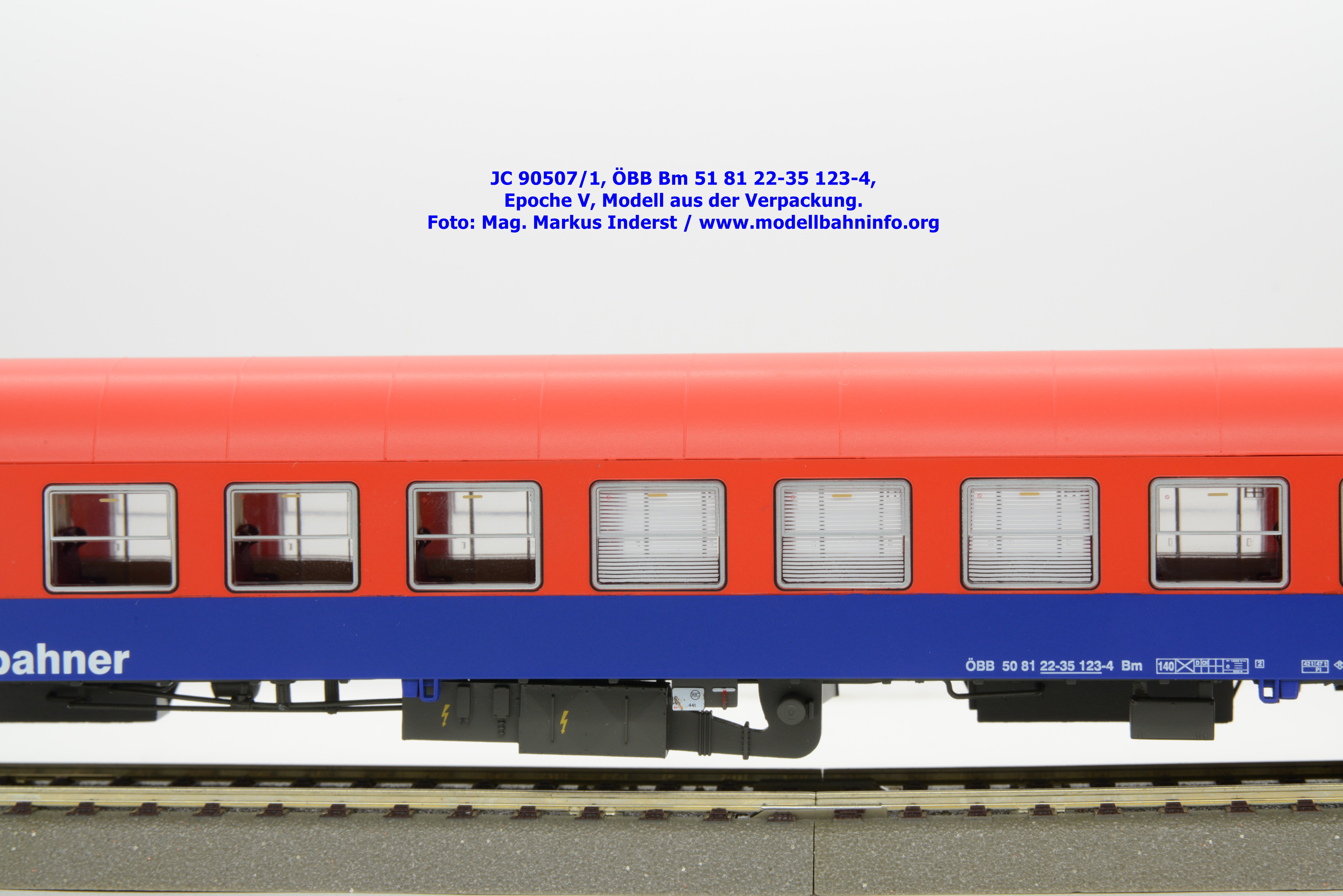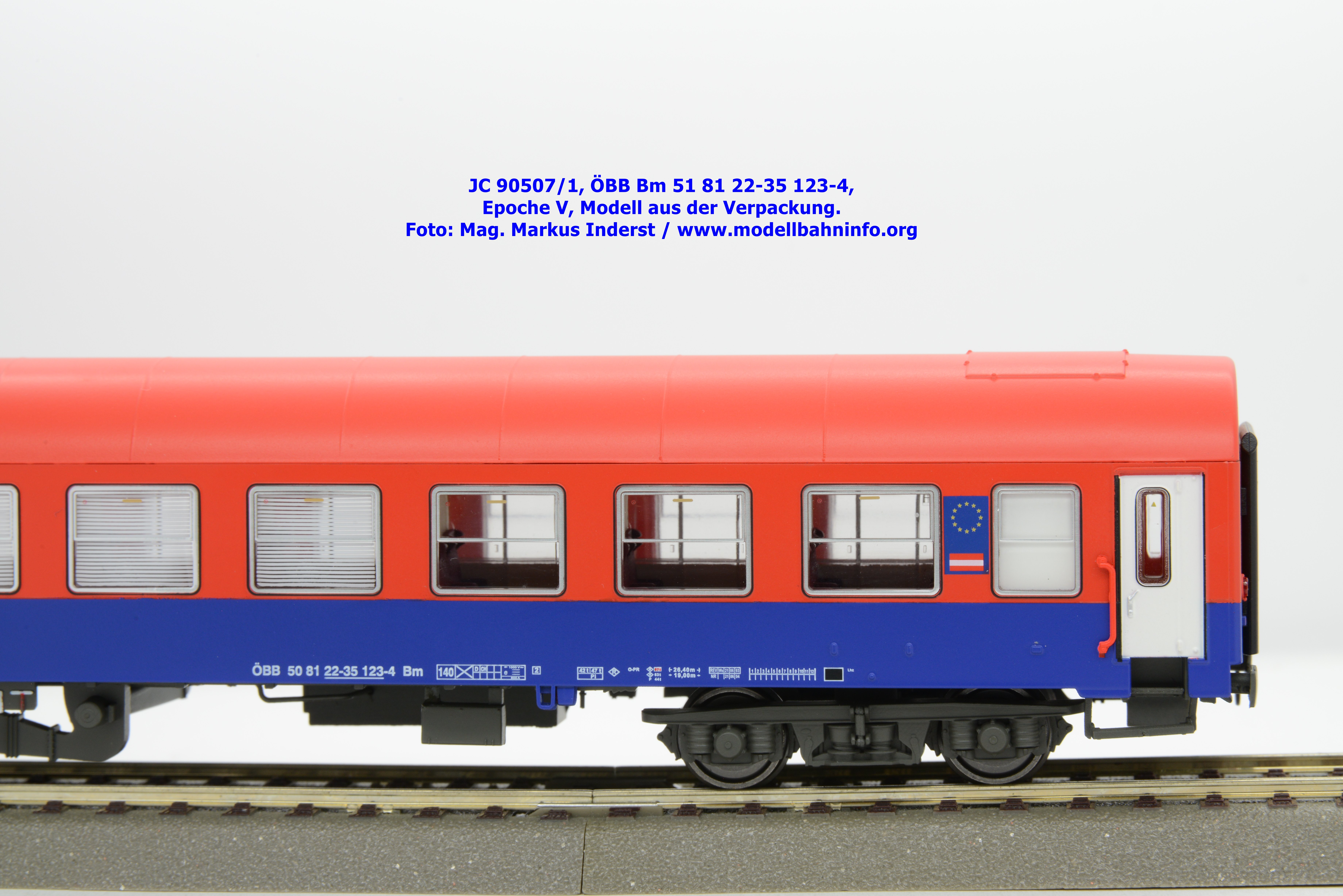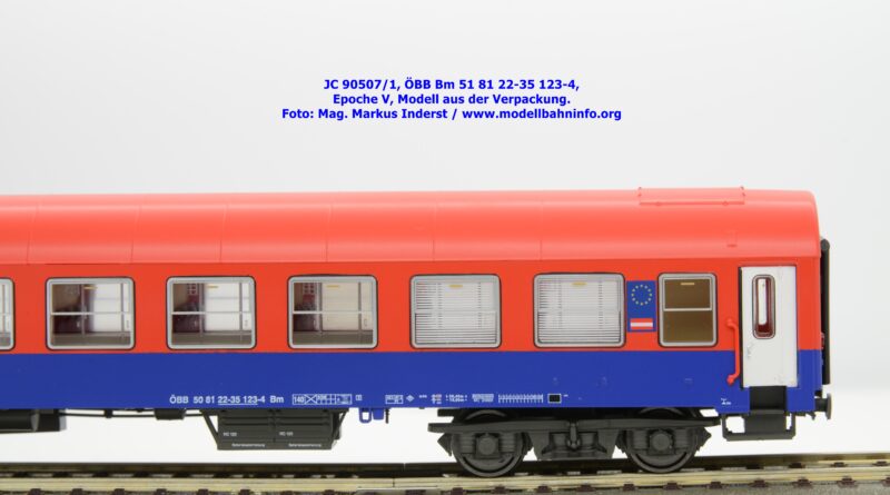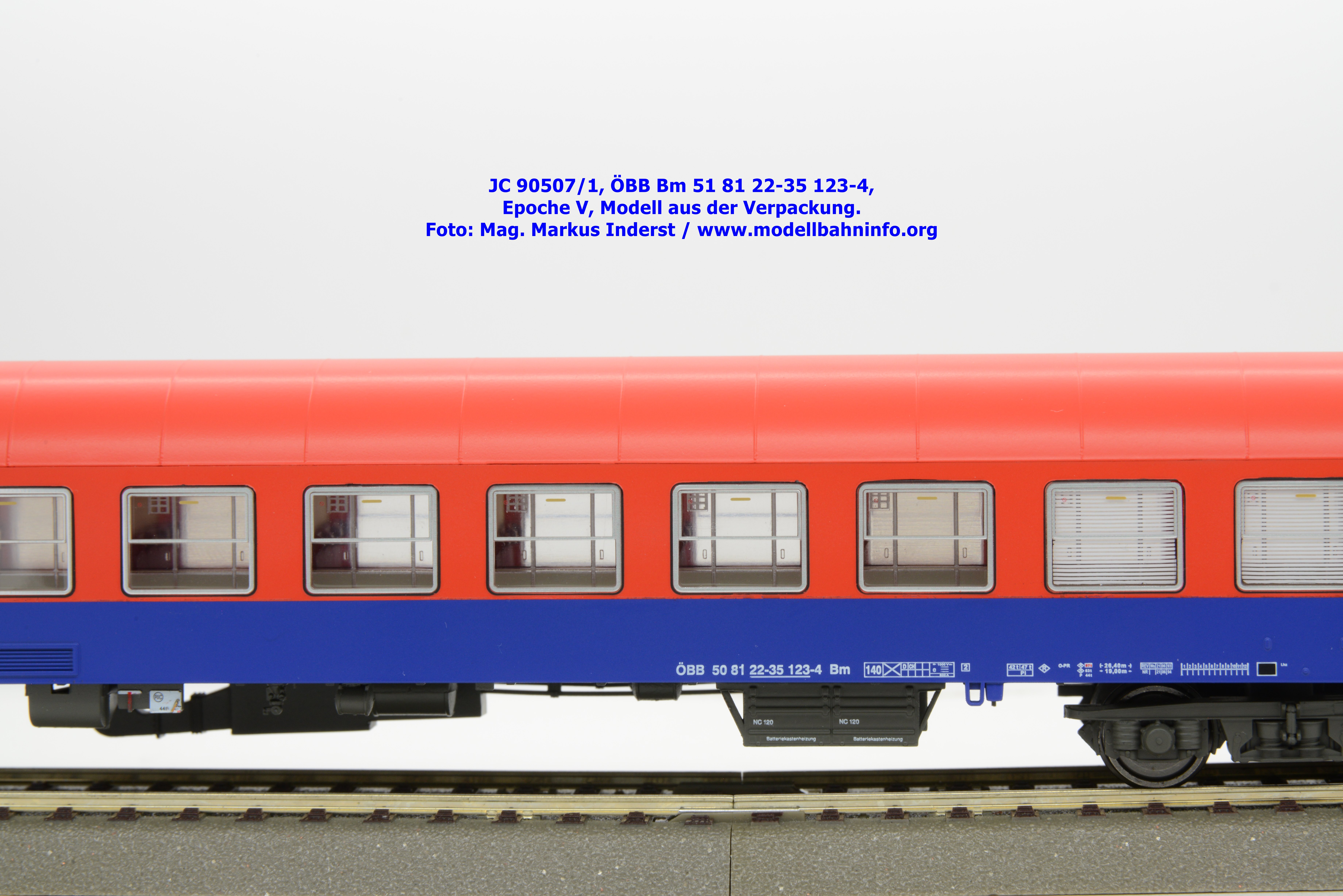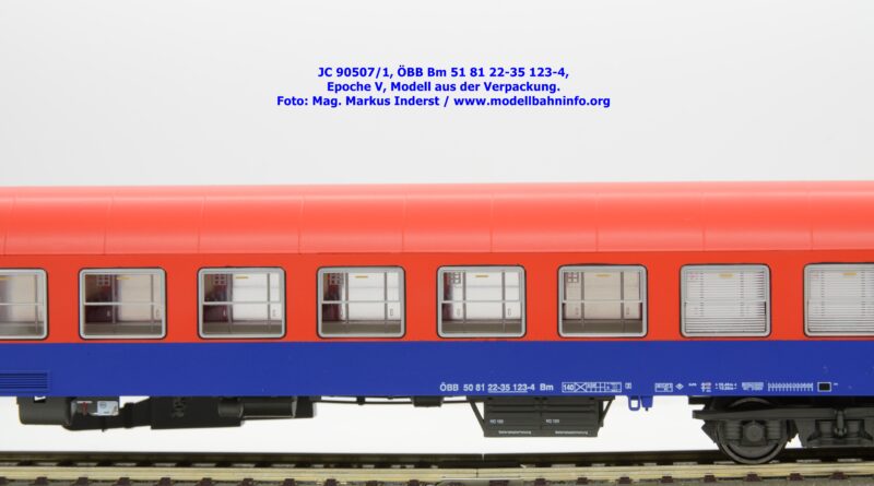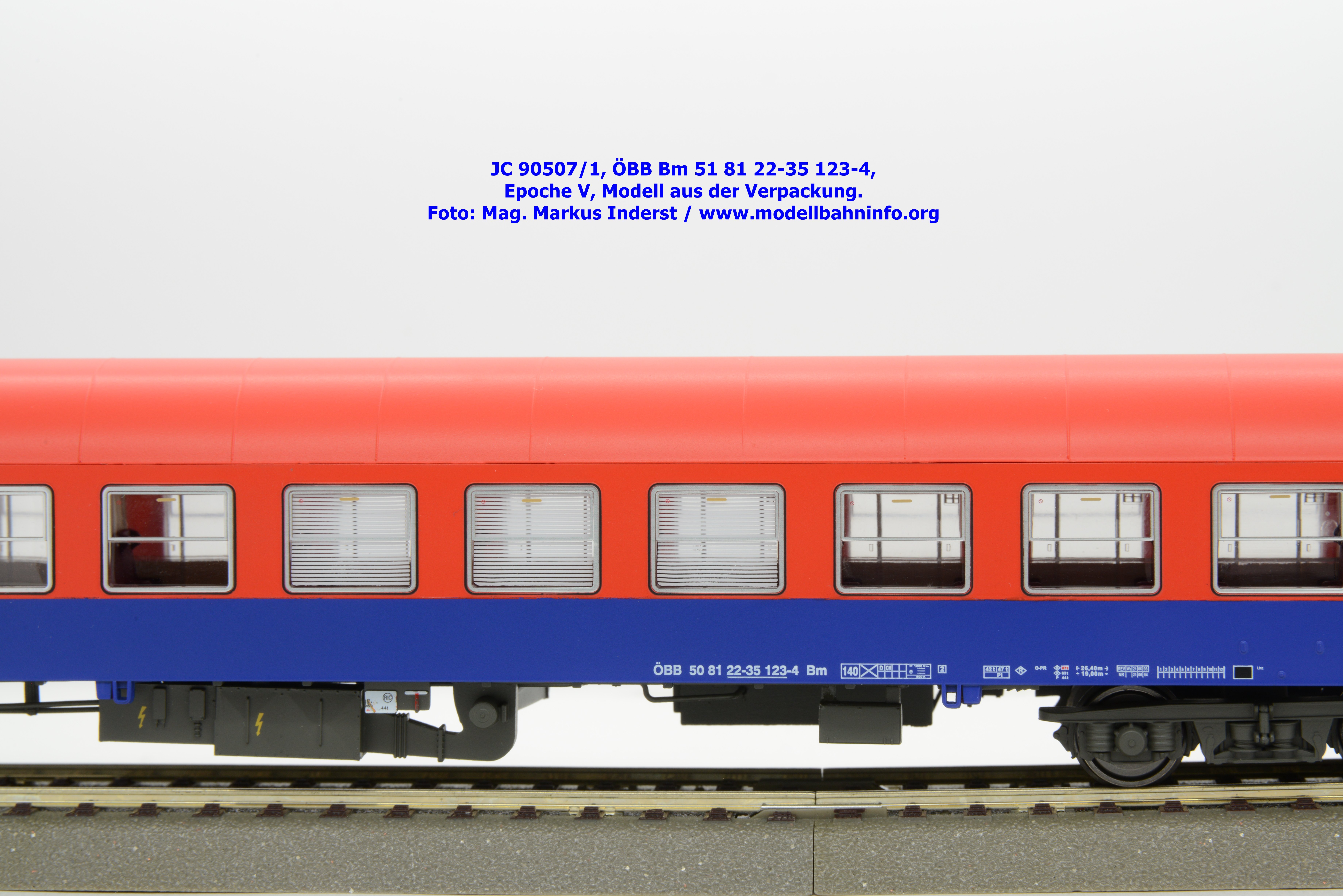 Der blau-rot-lackierte Personenwagen war lange Zeit im Areal der Zfl. Linz abgestellt und diente wohl als Konferenzwagen für die Gewerkschaft der Eisenbahner. Diese ließ den Wagen in den Farben rot und dunkelblau lackierten und wurde mit den Wagenanschriften Bm 50 81 22-35 123-4 im Bestand der ÖBB geführt. Das Modell ist mit den Untersuchungsdaten REV Ws 21.06.93 beschriftet und reiht sich ebenfalls in die Epoche V ein. Auffallend sind die verbauten Drehgestelle, die in diesem Falle der Bauart SGP IV C entsprechen.