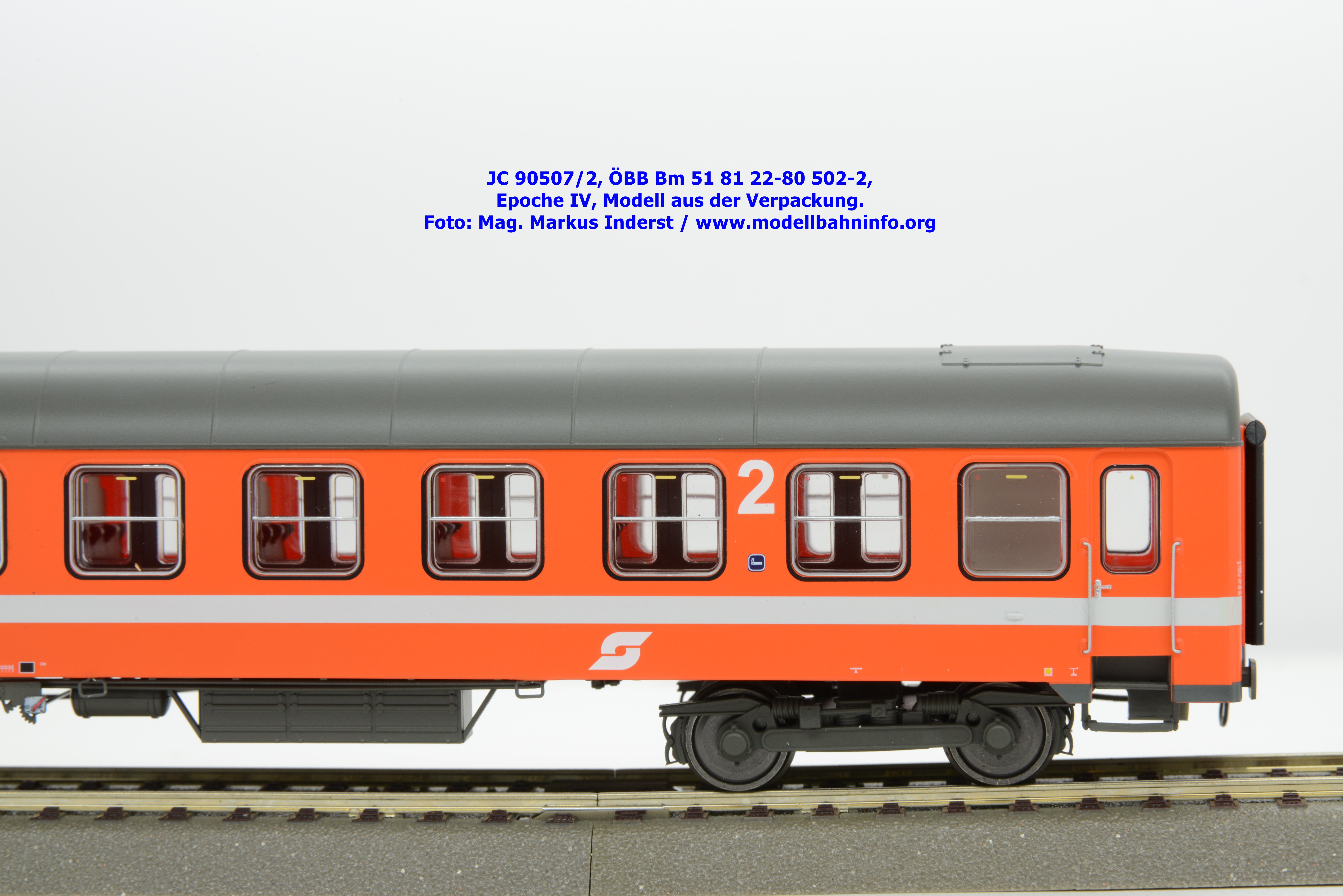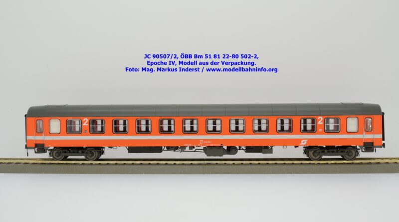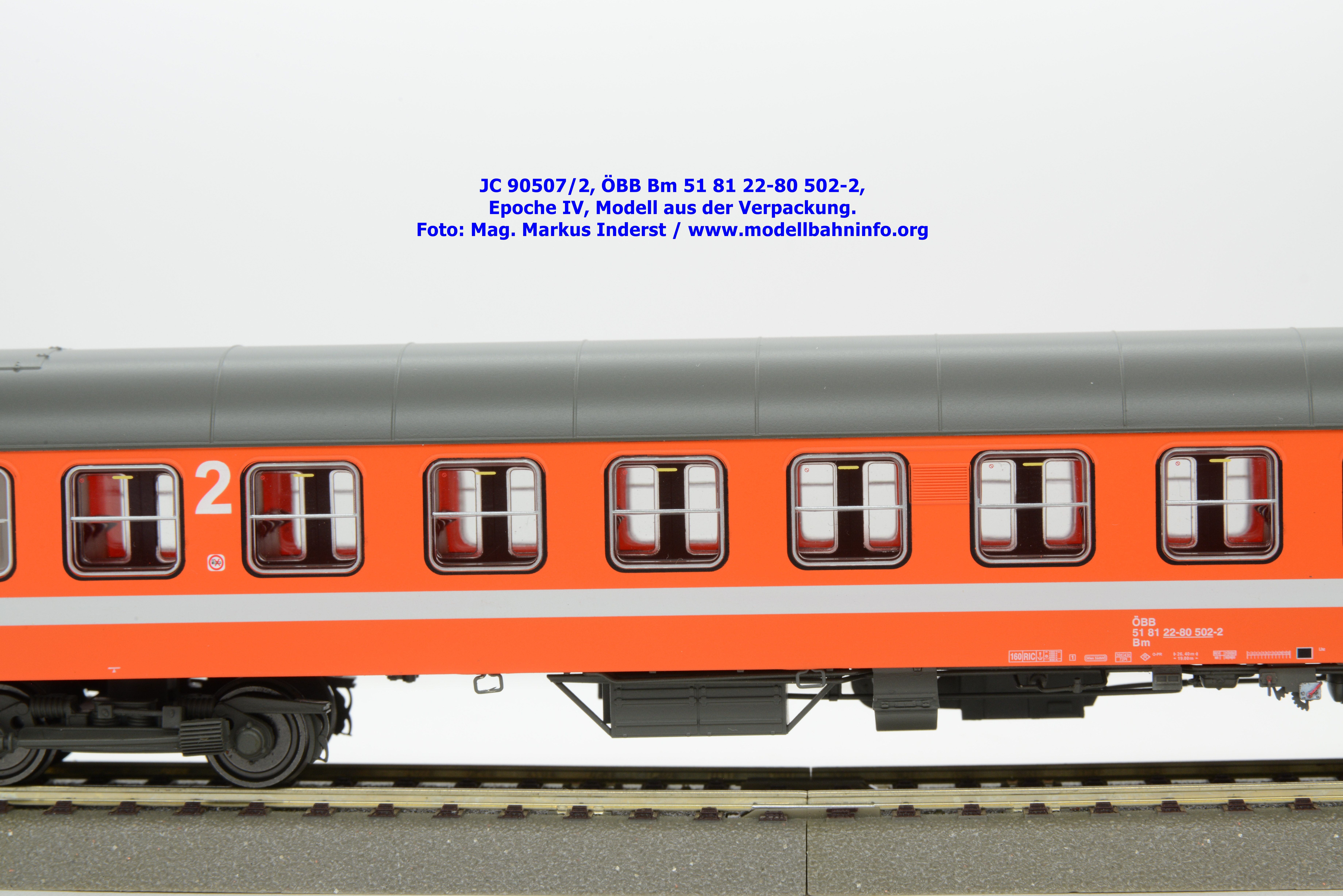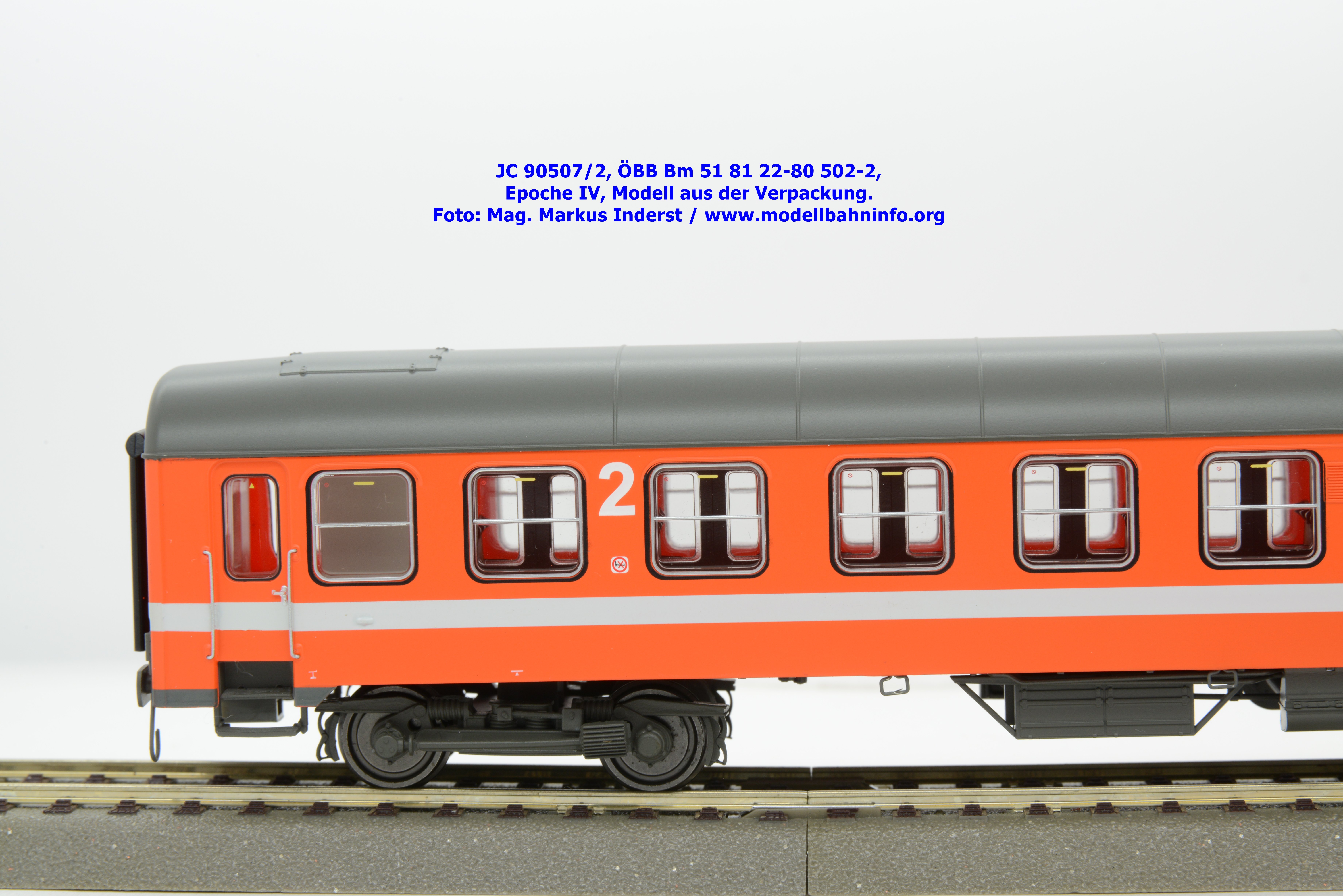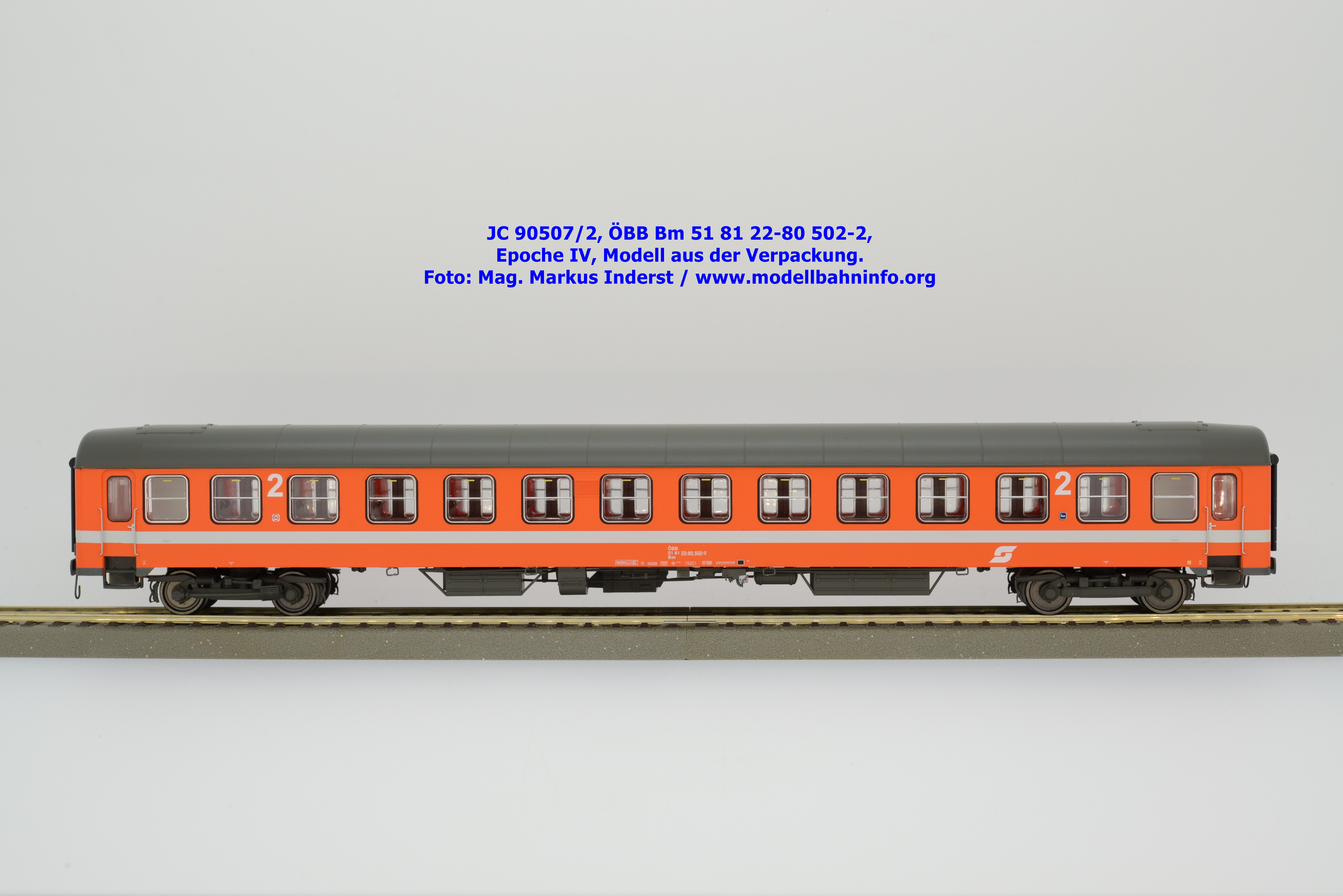 Dieser Schnellzugwagen der 2. Klasse gehört der 2. Serie der UIC-X-Vorserienwagen an. Das Modell ist mit der Gattungsbezeichnung Bm und der Wagennummer 51 81 22-80 502-2 bedruckt, als Heimatbahnhof ist „Wien-Südbhf“ angeschrieben. Das Untersuchungsdatum wird mit der Angabe REV 21.02.82 im Revisionsraster angegeben. Das Modell ist mit Drehgestellen der Bauart Wegmann 9 ausgestattet, es sollte die Bauart MD 36/IA sein.