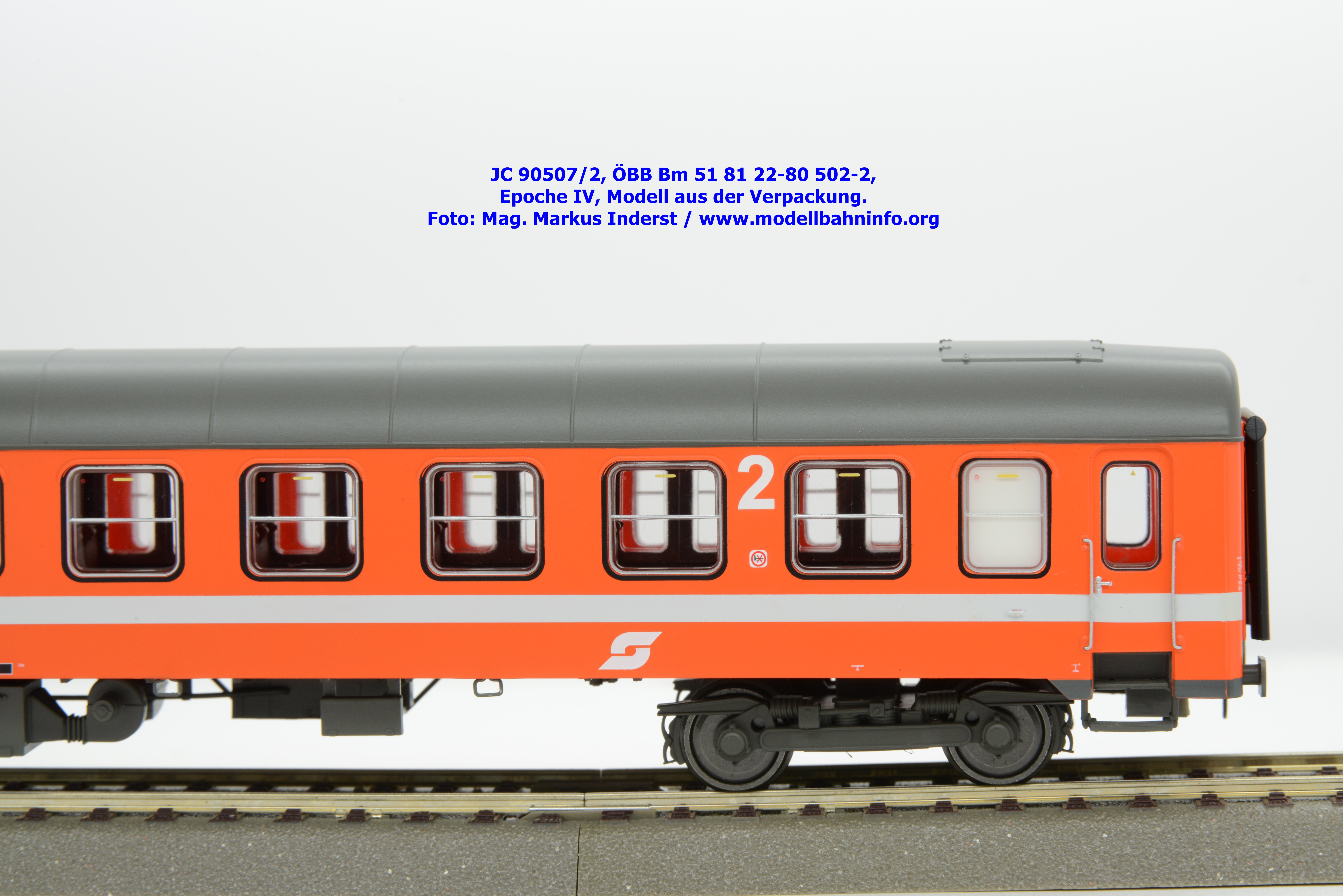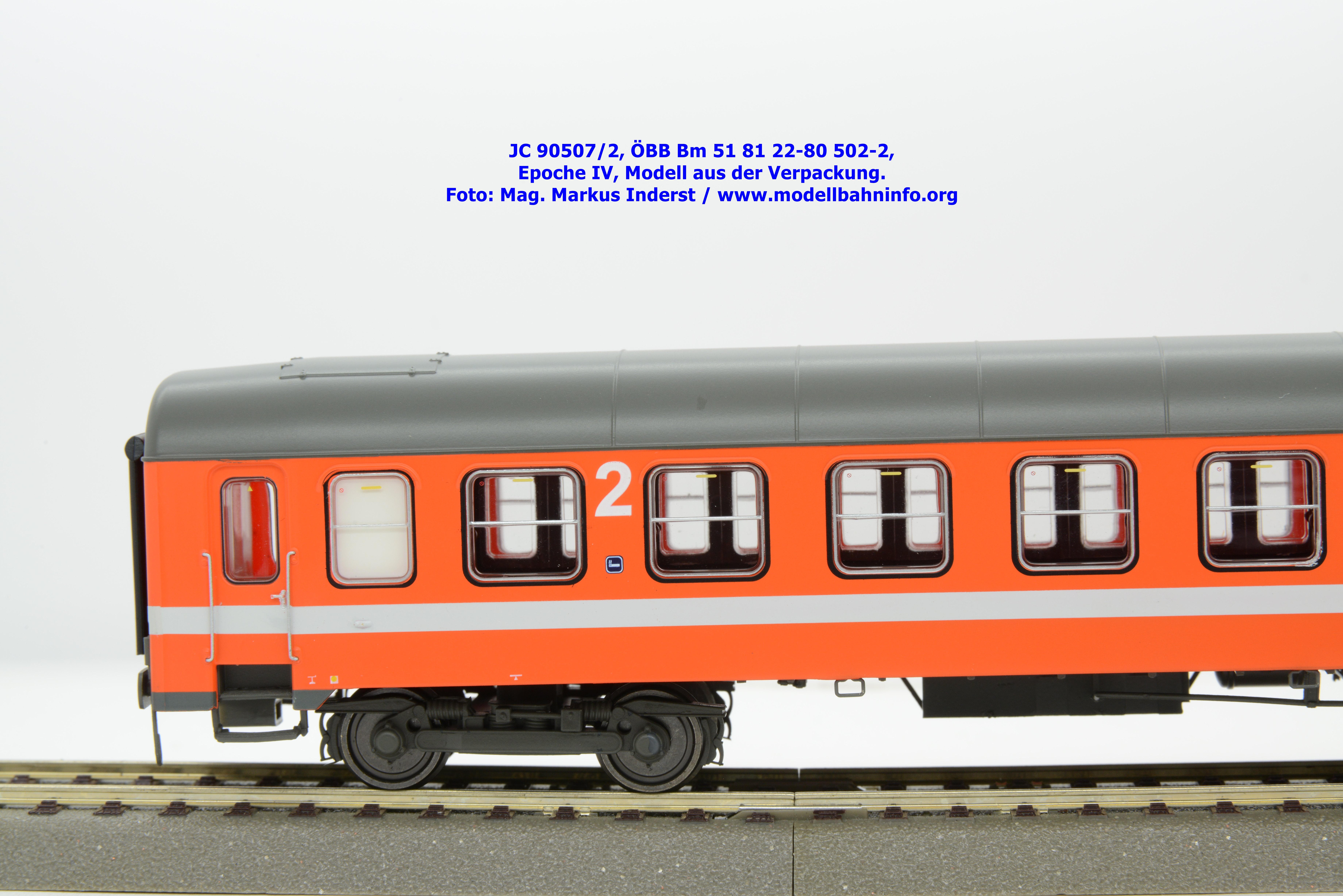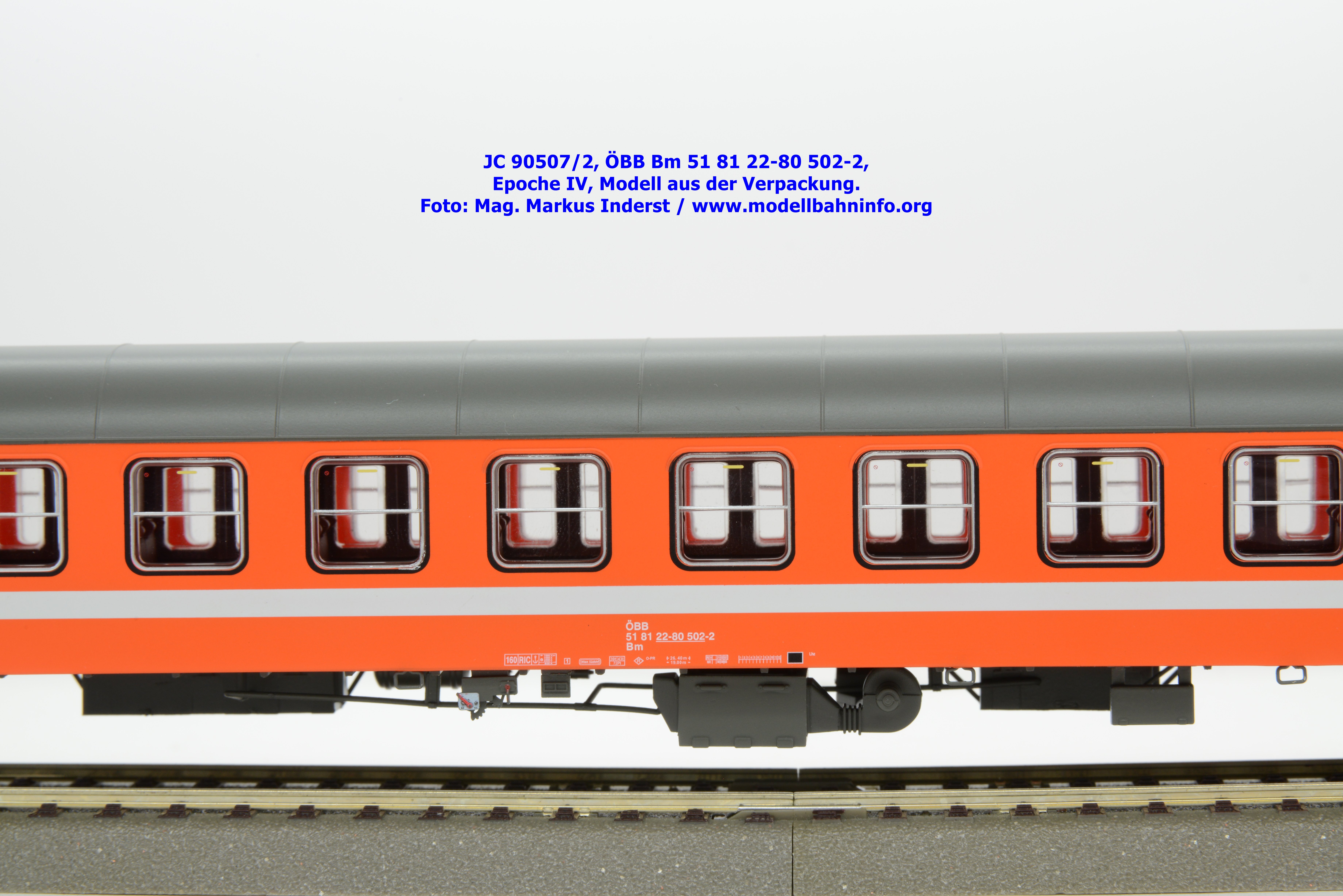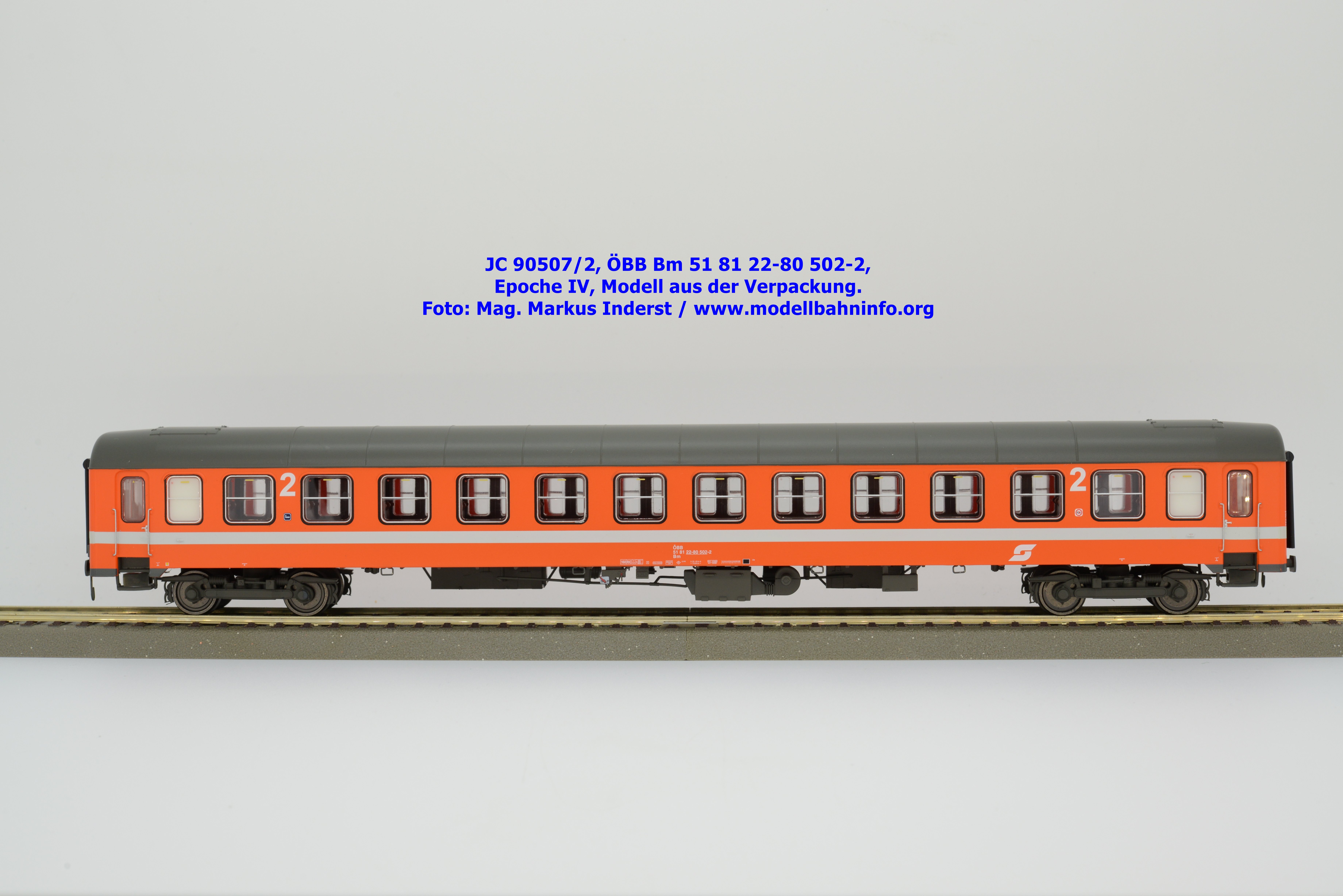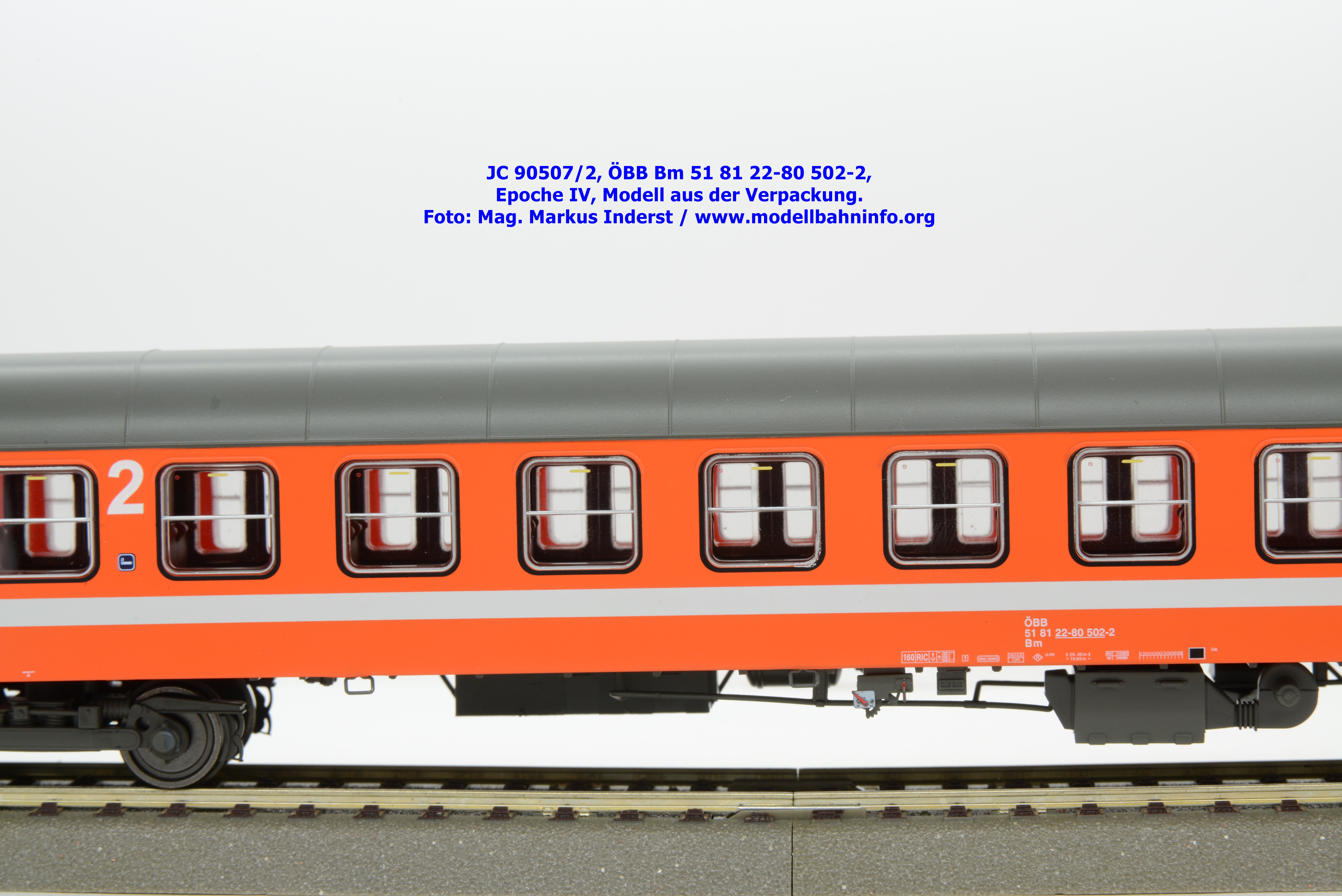 Dieser Schnellzugwagen der 2. Klasse gehört der 2. Serie der UIC-X-Vorserienwagen an. Das Modell ist mit der Gattungsbezeichnung Bm und der Wagennummer 51 81 22-80 502-2 bedruckt, als Heimatbahnhof ist „Wien-Südbhf“ angeschrieben. Das Untersuchungsdatum wird mit der Angabe REV 21.02.82 im Revisionsraster angegeben. Das Modell ist mit Drehgestellen der Bauart Wegmann 9 ausgestattet, es sollte die Bauart MD 36/IA sein.