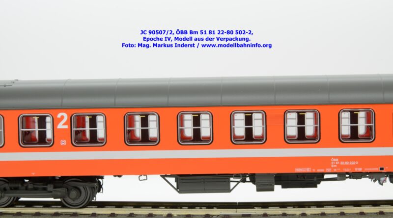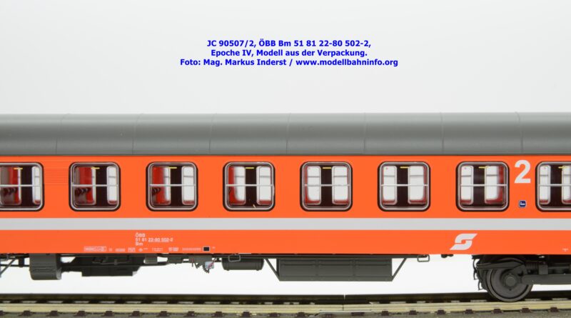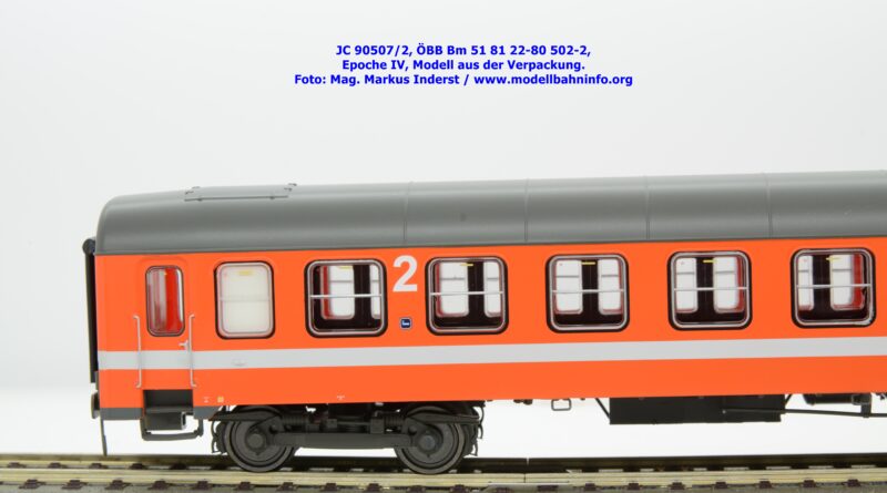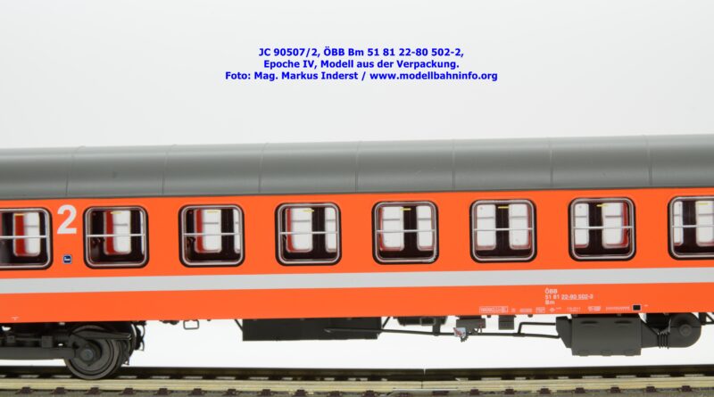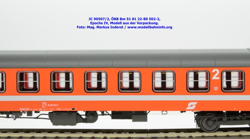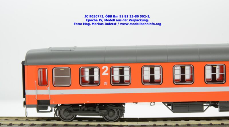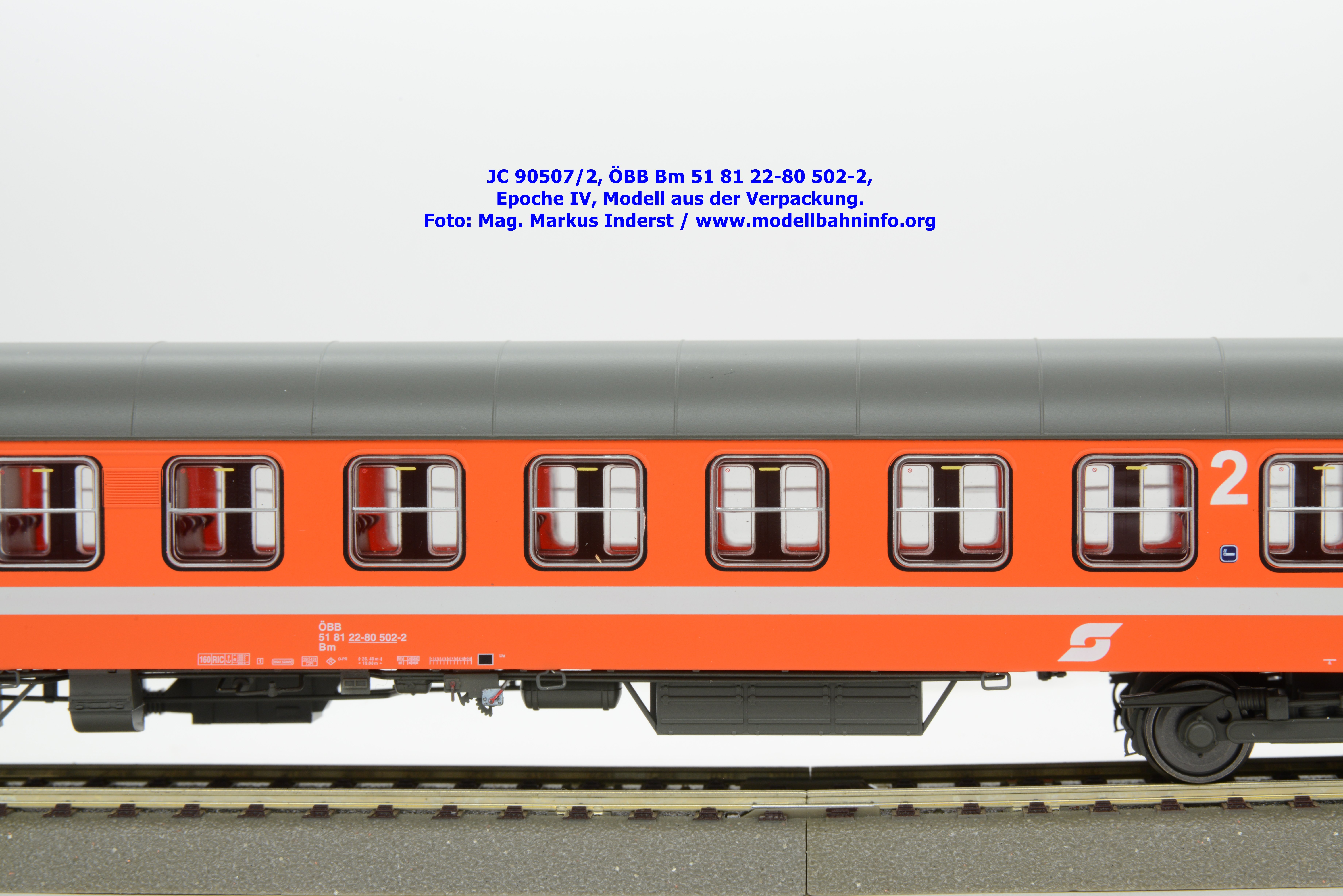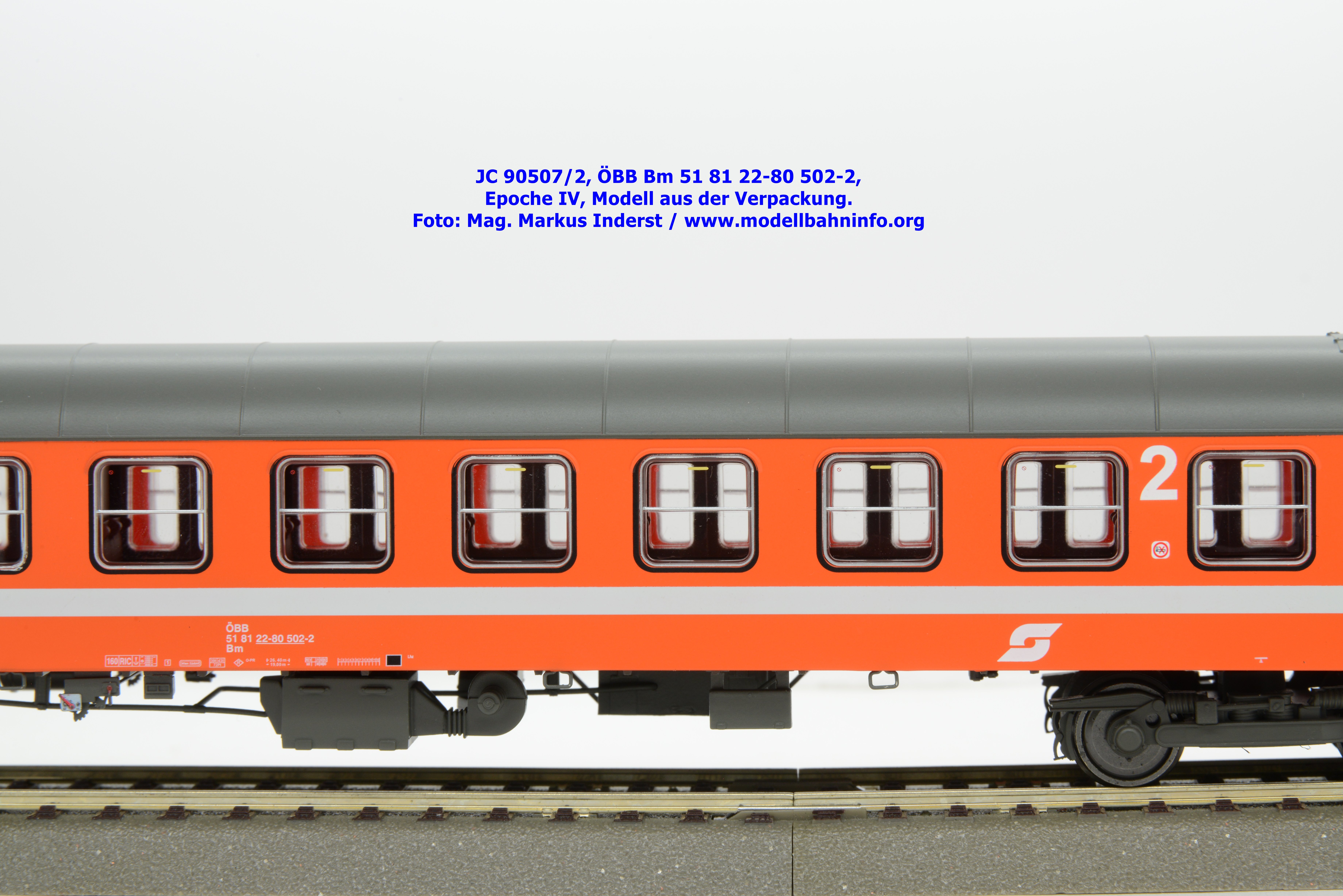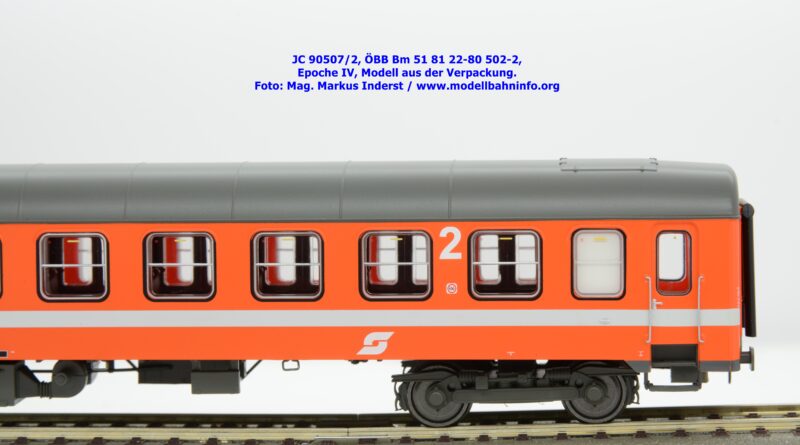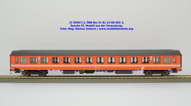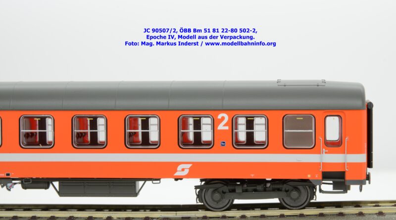 Dieser Schnellzugwagen der 2. Klasse gehört der 2. Serie der UIC-X-Vorserienwagen an. Das Modell ist mit der Gattungsbezeichnung Bm und der Wagennummer 51 81 22-80 502-2 bedruckt, als Heimatbahnhof ist „Wien-Südbhf“ angeschrieben. Das Untersuchungsdatum wird mit der Angabe REV 21.02.82 im Revisionsraster angegeben. Das Modell ist mit Drehgestellen der Bauart Wegmann 9 ausgestattet, es sollte die Bauart MD 36/IA sein.