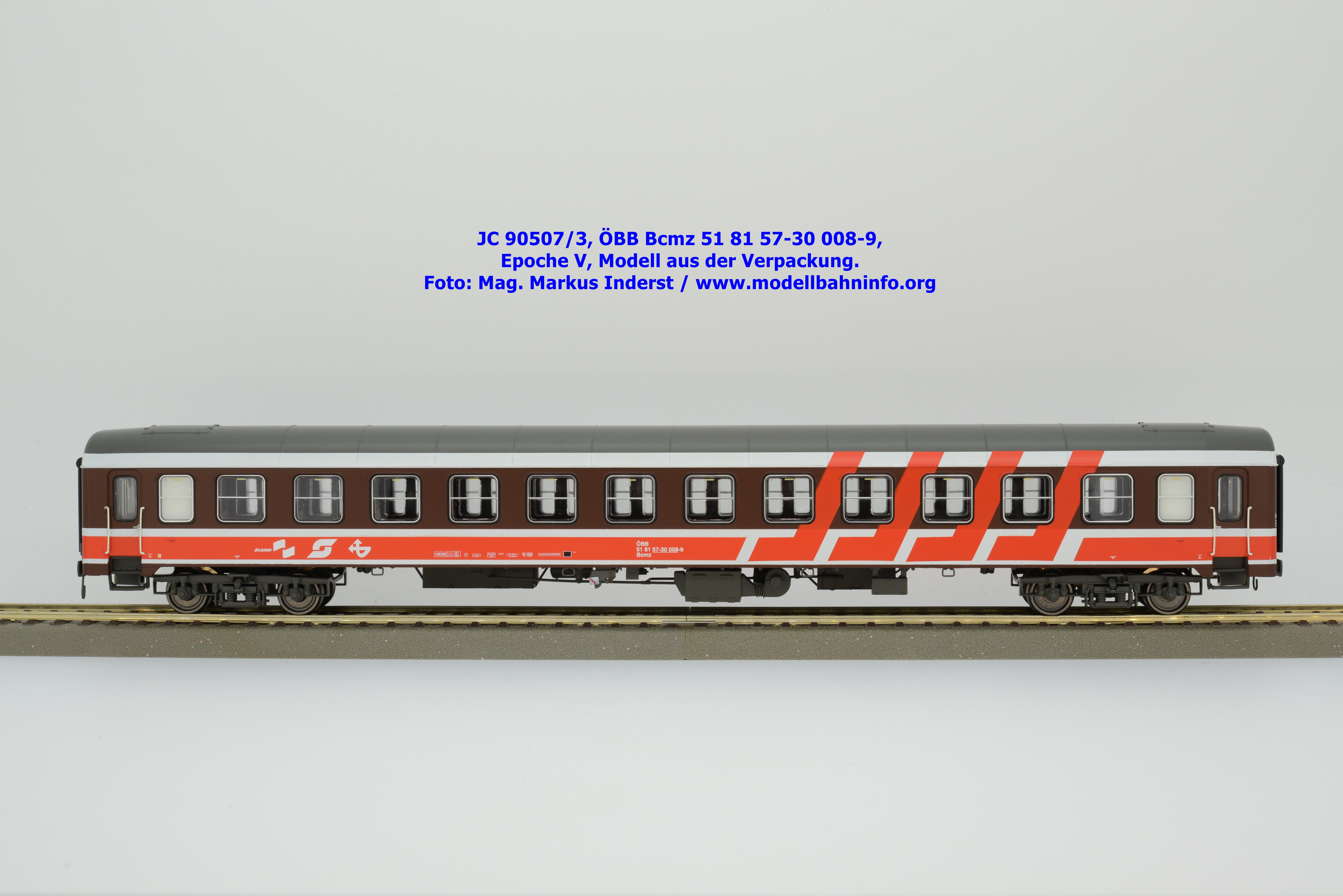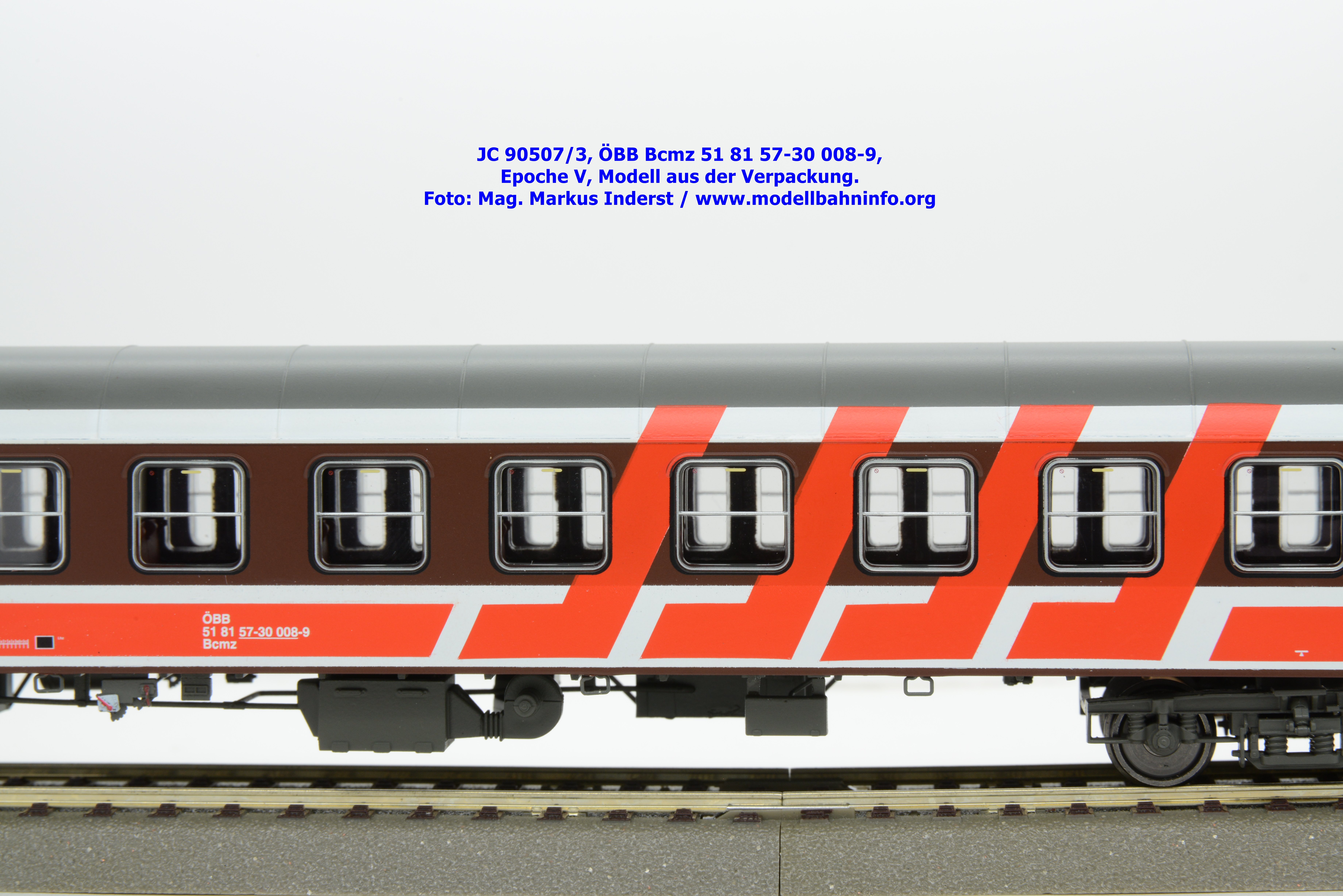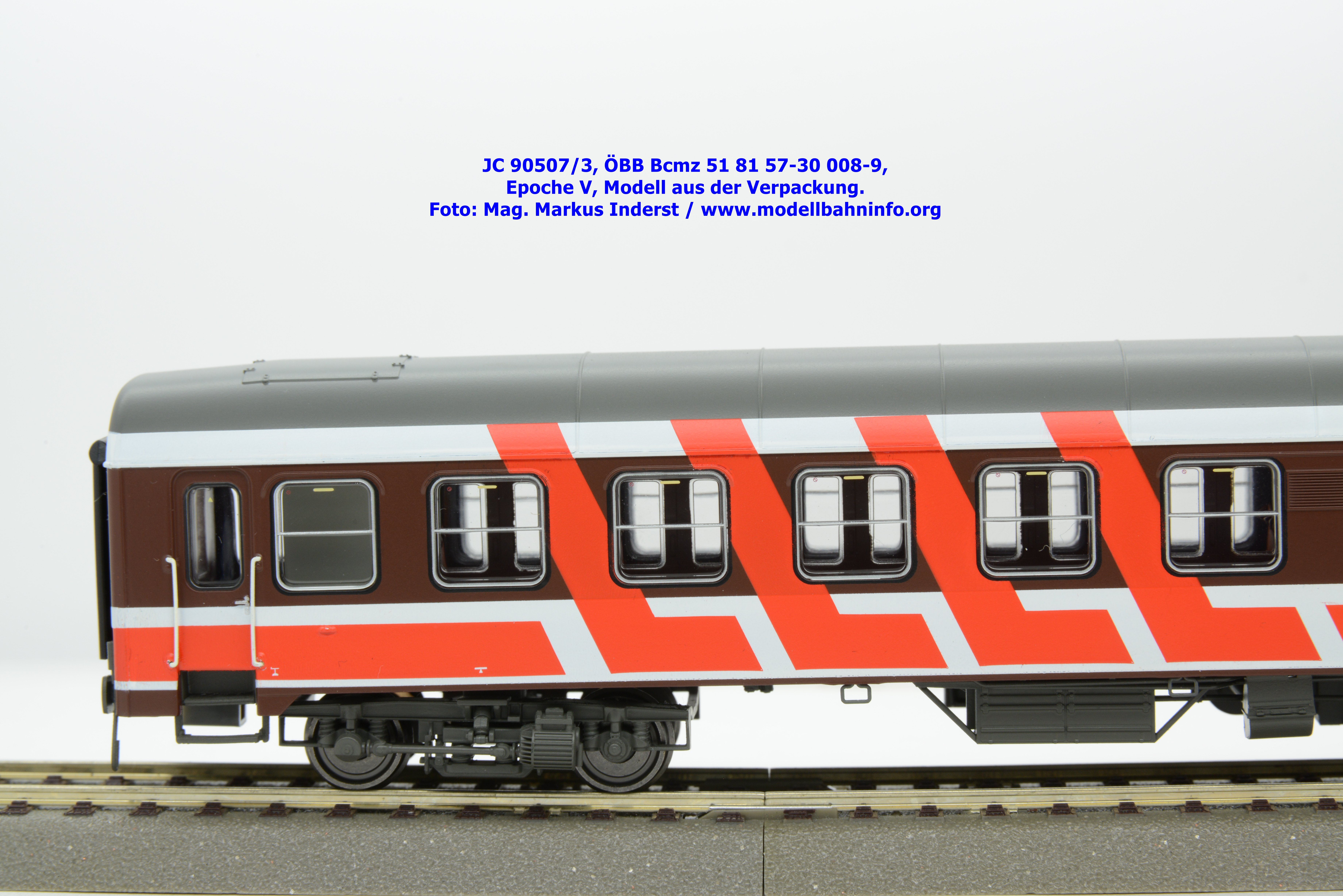 Das dritte Modell ist ein aus dieser Wagenserie umgestalteter Begleitwagen für die Verkehre der Rollenden Landstraße (RoLa). Die Wagen erhielten für diesen Einsatz eine besondere Lackierung. Der Hersteller hat sein Erstmodell mit der den Wagenanschriften Bcmz 51 81 57-30 008-9 bedrucken lassen. Als Heimatbahnhof ist Wels angeschrieben, im Revisionsraster steht das Datum REV 21.02.92. Jägerndorfer orientiert sich bei der Modellumsetzung an der Bauform des ultramarinblau lackierten 51-50. Als Liegewagen für die Rola wurden jedoch bauliche Änderungen im Türbereich und in der Aufteilung der Seitenfenster vorgenommen. Außerdem sind diese Liegewagen mit Wegmann-Drehgestellen versehen gewesen.