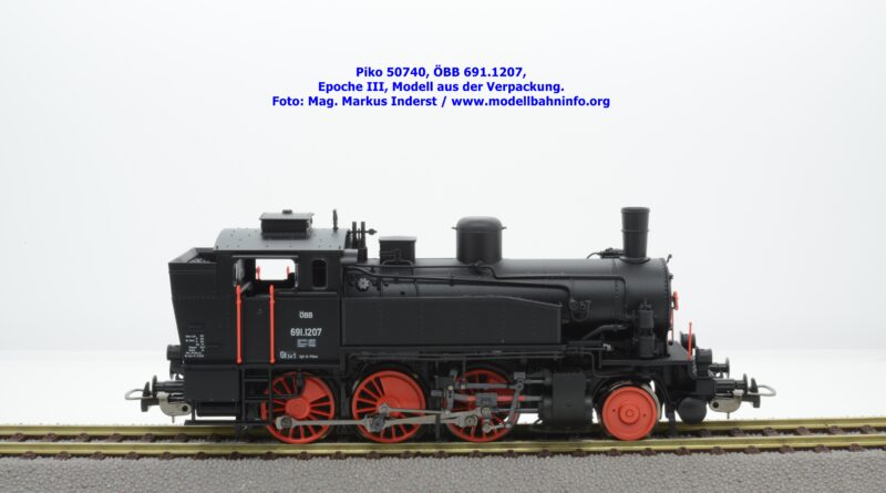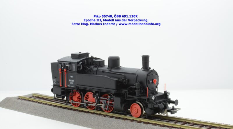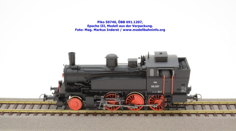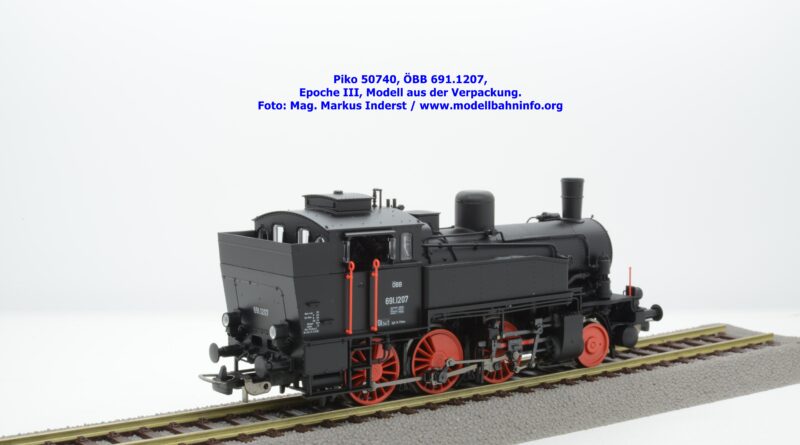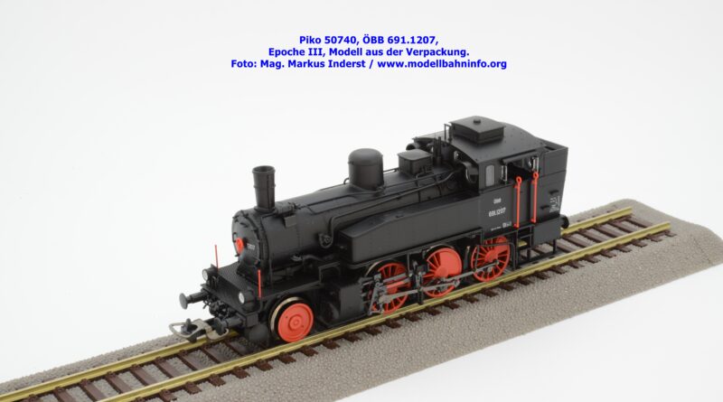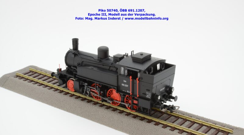 Es war also nur eine Frage der Zeit, bis wann Piko von seiner neukonstruierten 91.3-18 (preuß. T 9.3) ein ÖBB-Modell ankündigen wird. Von dieser Konstruktion sind nach 1945 sechs Lokomotiven in Österreich verblieben und wurden unter der alten Loknummer einige Zeit betrieben. Lediglich die 91 1207 und die 91 1347 haben die Umzeichnung im Frühjahr 1953 erlebt und erhielten daraufhin die neuen Loknummern 691.1207 bzw. 691.1347. Beide Loks waren zu diesem Zeitpunkt in St. Pölten stationiert; beide Loks schieden mit 27. November 1957 aus dem ÖBB-Bestand. Piko hat die 691.1207 als sog. Neukonstruktion in die Herbstneuheiten 2025 für Österreich ins Sortiment genommen. Das neue Modell erfuhr auch im Vergleich zu den Schwestermaschinen entsprechende Formänderungen, welche sich primär am Langkessel, am Führerhausdach und dem Kohletender finden. Die Heimatdienststelle wird mit Zgfl. St. Pölten angegeben, die letzte Untersuchung fand mit der Anschrift „Br. Unt. Fl. 11.10.56“ statt. Piko fertigt die 691.1207 in drei technisch unterschiedlichen Ausführungen. Unter der oben angegebenen Artikelnummer verbirgt sich die analoge Zweileiter-Gleichstrom-Ausführung mit dem UVP von € 249,–. Die digitale Zweileiter-Gleichstrom-Ausführung mit dem PIKO-TrainSound onboard ist unter der Artikelnummer 50741 und zum UVP von € 359,– erhältlich, währenddessen die digitale Dreileiter-Wechselstrom-Ausführung die Artikelnummer 50742 aufweist.