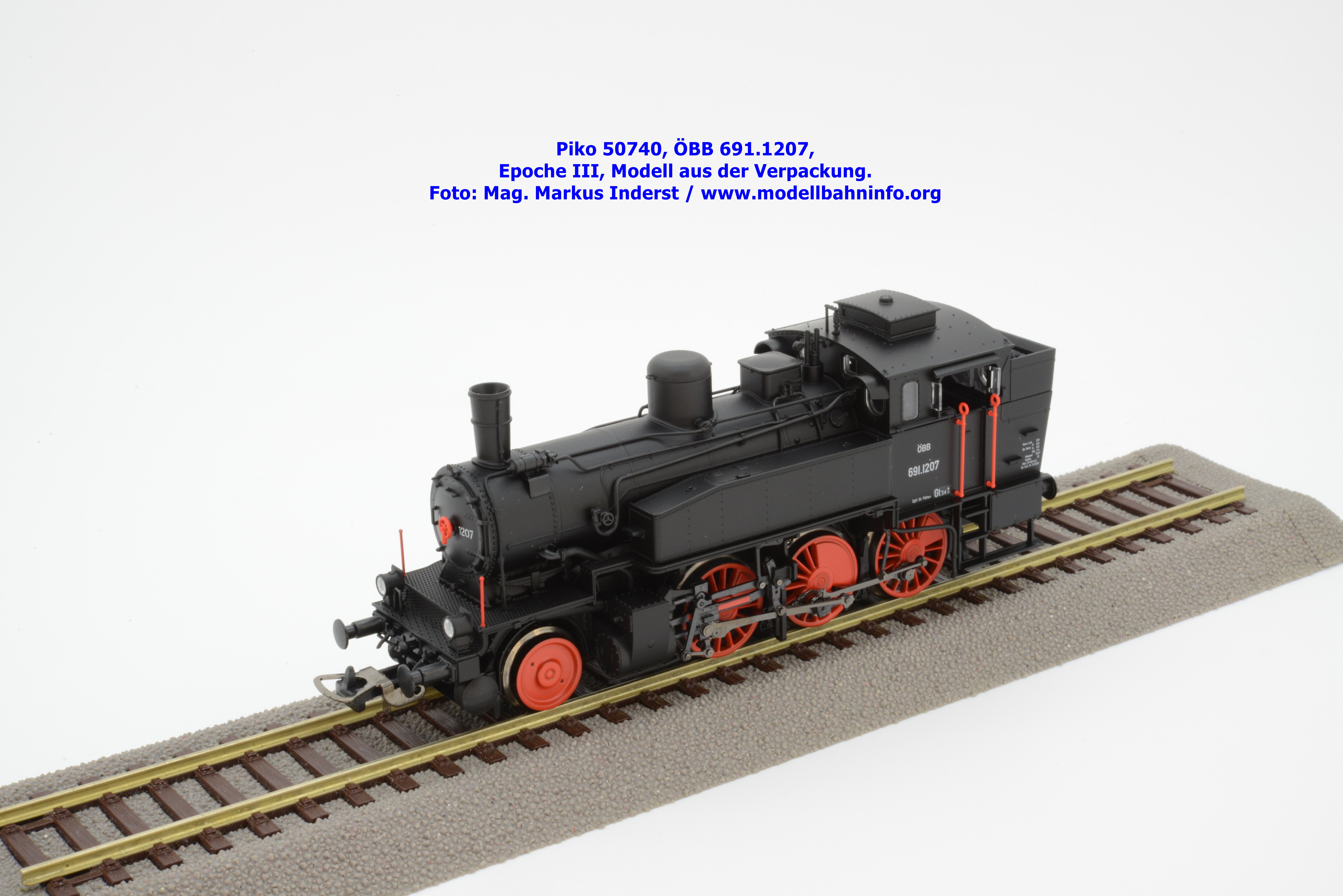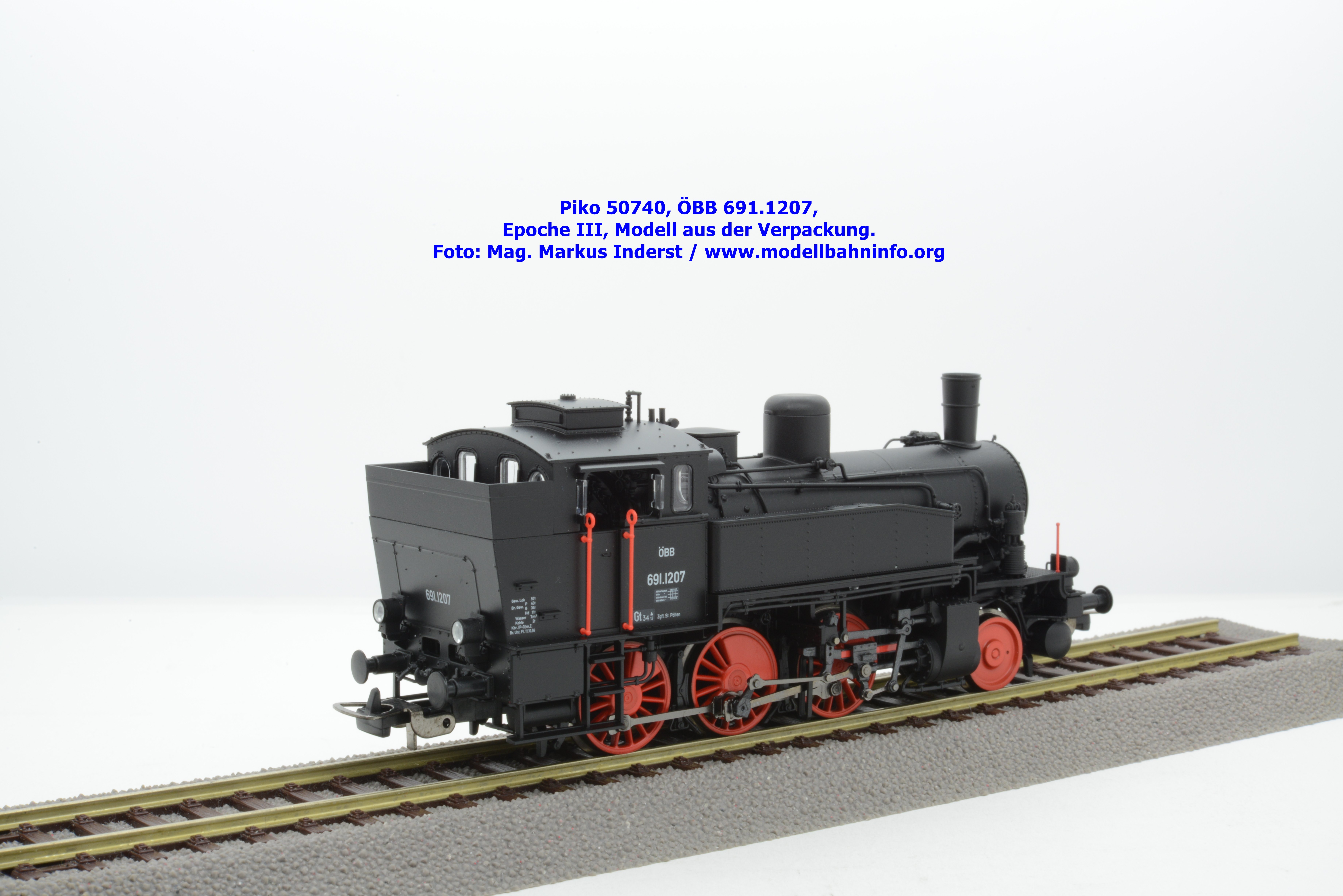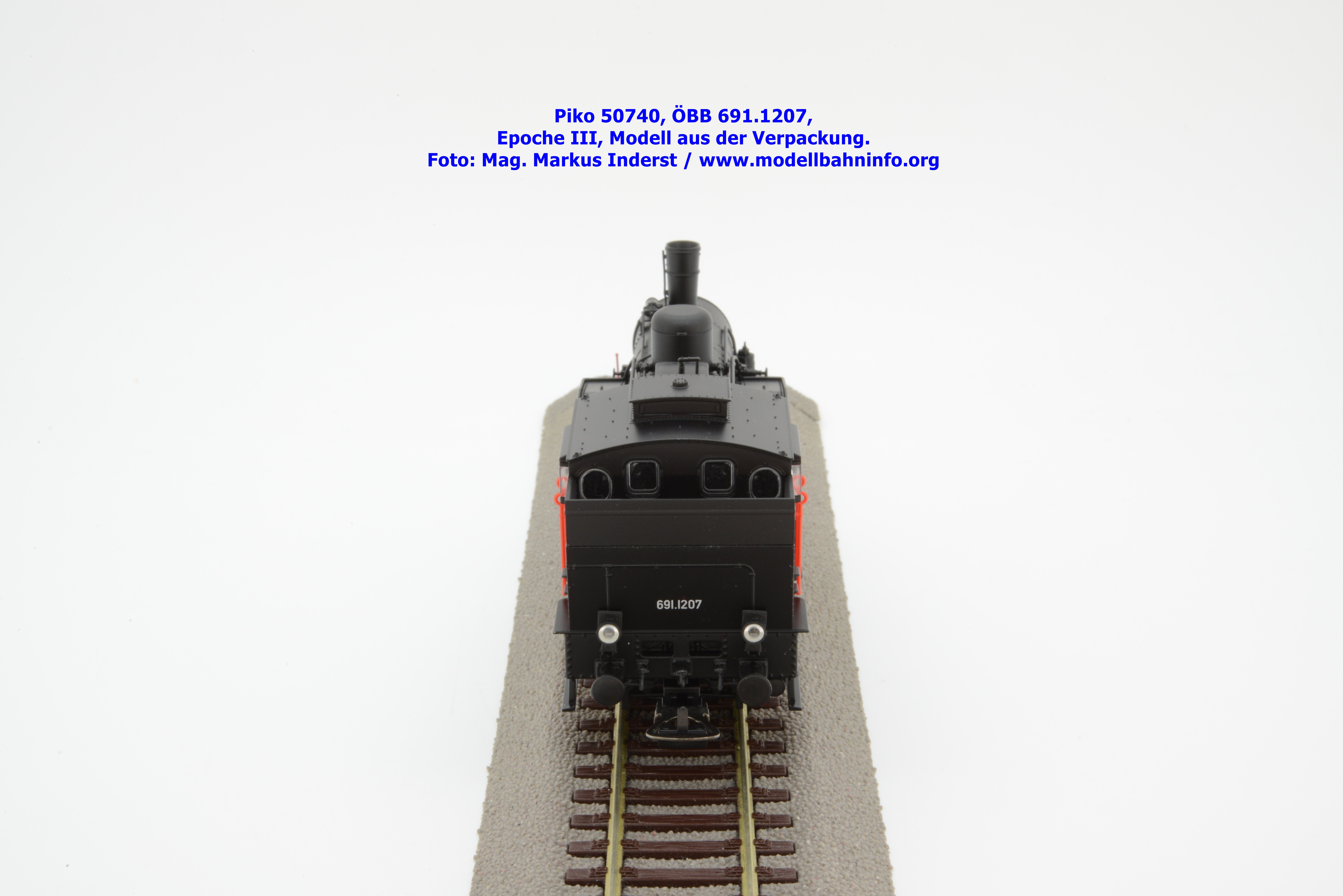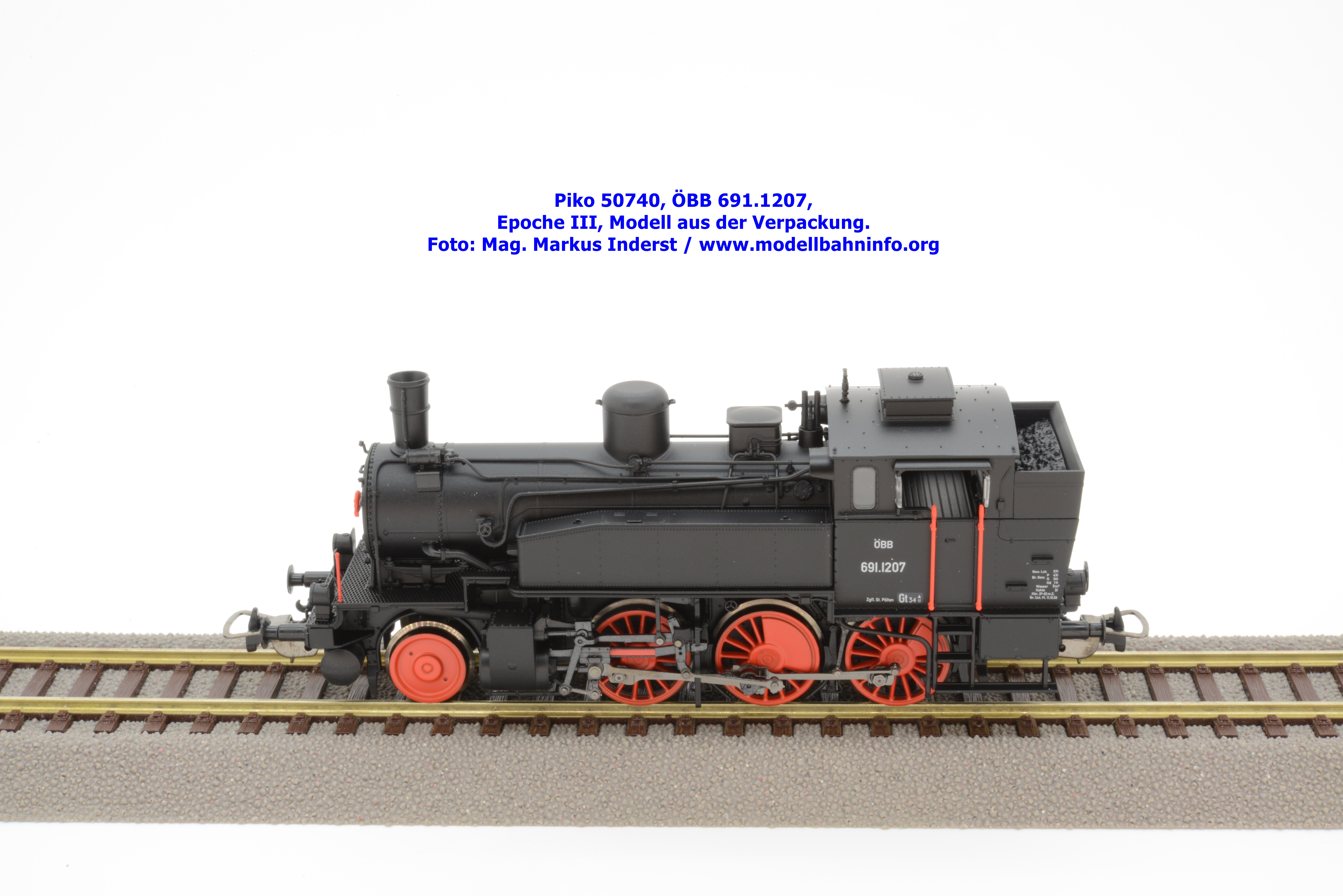 Es war also nur eine Frage der Zeit, bis wann Piko von seiner neukonstruierten 91.3-18 (preuß. T 9.3) ein ÖBB-Modell ankündigen wird. Von dieser Konstruktion sind nach 1945 sechs Lokomotiven in Österreich verblieben und wurden unter der alten Loknummer einige Zeit betrieben. Lediglich die 91 1207 und die 91 1347 haben die Umzeichnung im Frühjahr 1953 erlebt und erhielten daraufhin die neuen Loknummern 691.1207 bzw. 691.1347. Beide Loks waren zu diesem Zeitpunkt in St. Pölten stationiert; beide Loks schieden mit 27. November 1957 aus dem ÖBB-Bestand. Piko hat die 691.1207 als sog. Neukonstruktion in die Herbstneuheiten 2025 für Österreich ins Sortiment genommen. Das neue Modell erfuhr auch im Vergleich zu den Schwestermaschinen entsprechende Formänderungen, welche sich primär am Langkessel, am Führerhausdach und dem Kohletender finden. Die Heimatdienststelle wird mit Zgfl. St. Pölten angegeben, die letzte Untersuchung fand mit der Anschrift „Br. Unt. Fl. 11.10.56“ statt. Piko fertigt die 691.1207 in drei technisch unterschiedlichen Ausführungen. Unter der oben angegebenen Artikelnummer verbirgt sich die analoge Zweileiter-Gleichstrom-Ausführung mit dem UVP von € 249,–. Die digitale Zweileiter-Gleichstrom-Ausführung mit dem PIKO-TrainSound onboard ist unter der Artikelnummer 50741 und zum UVP von € 359,– erhältlich, währenddessen die digitale Dreileiter-Wechselstrom-Ausführung die Artikelnummer 50742 aufweist.