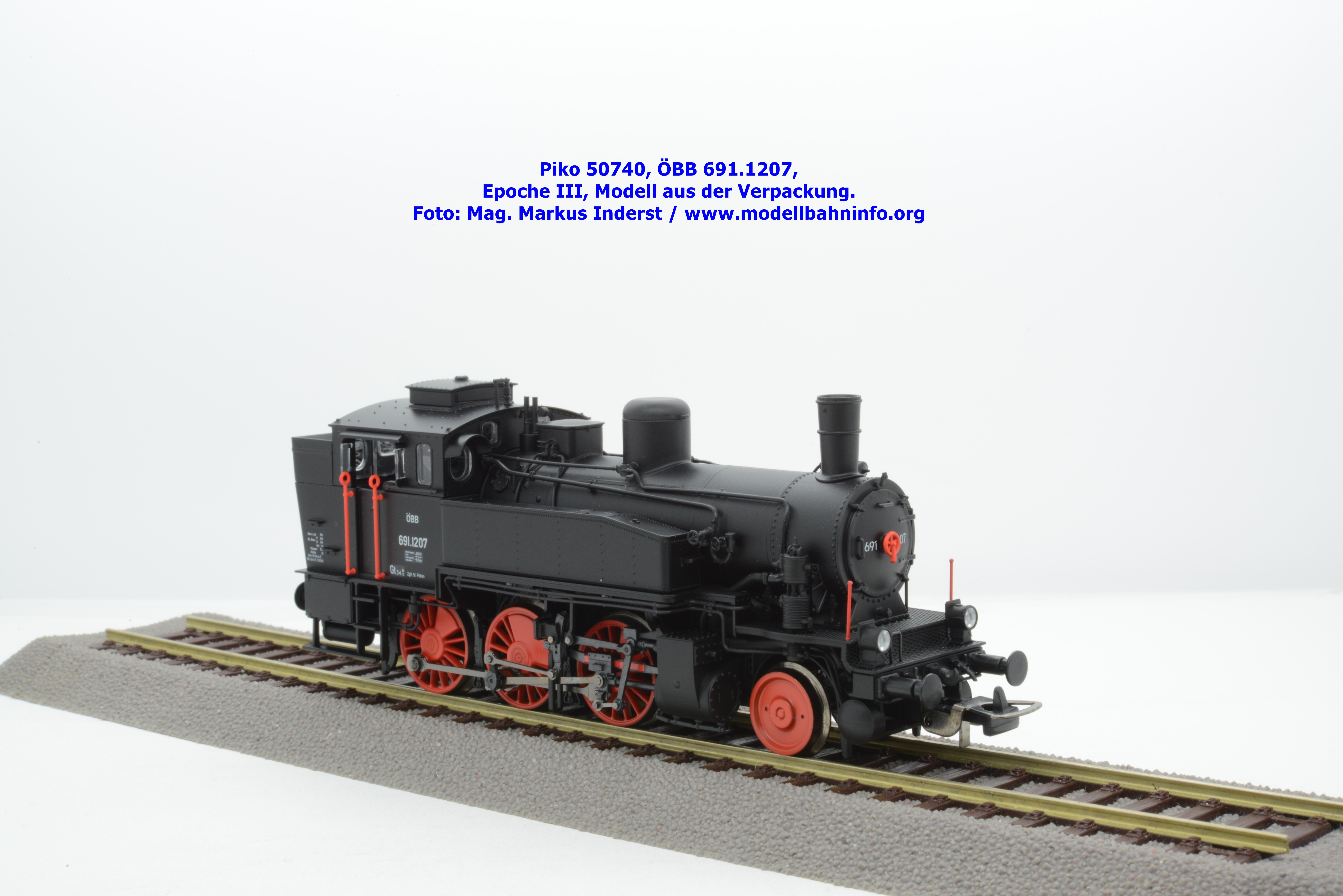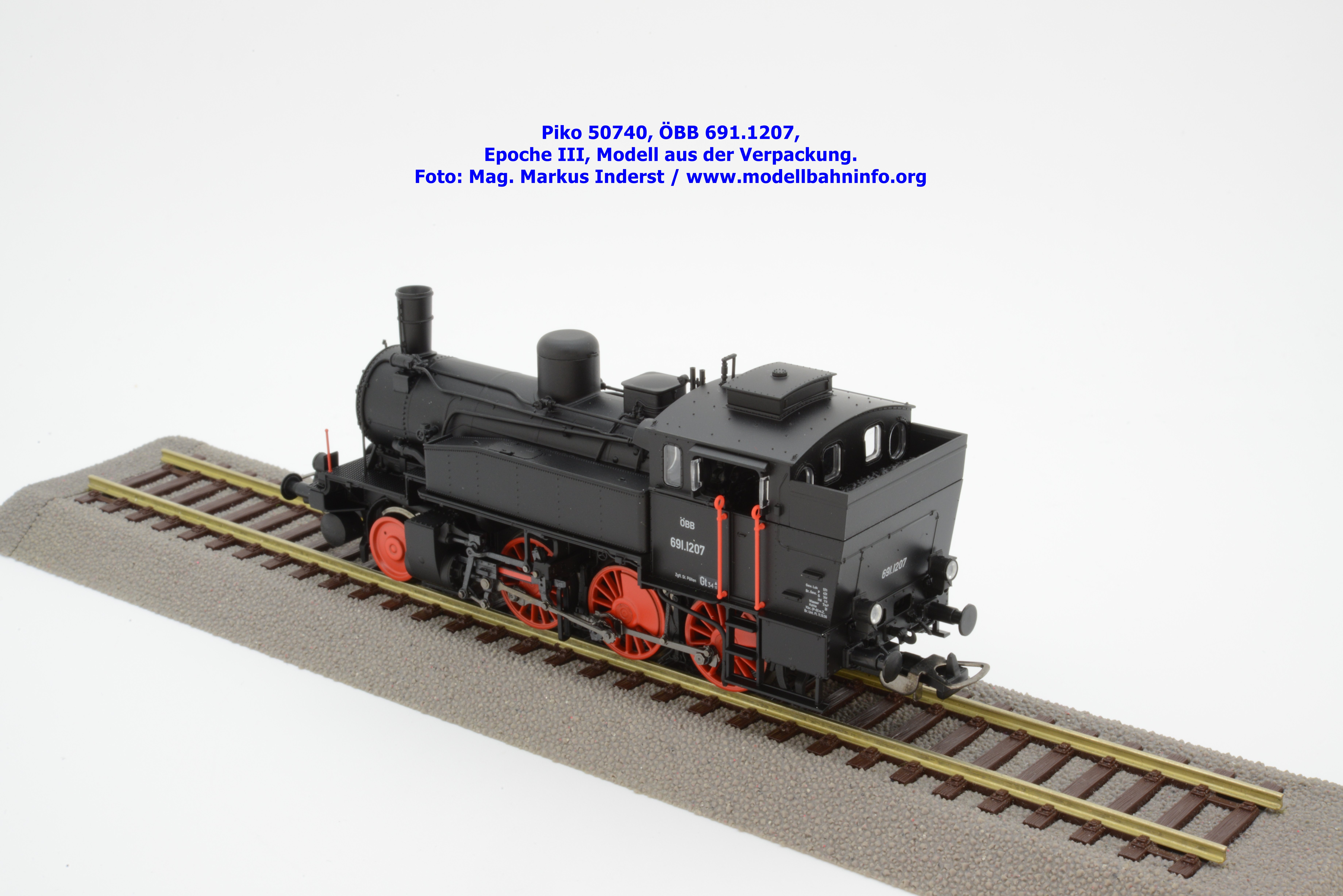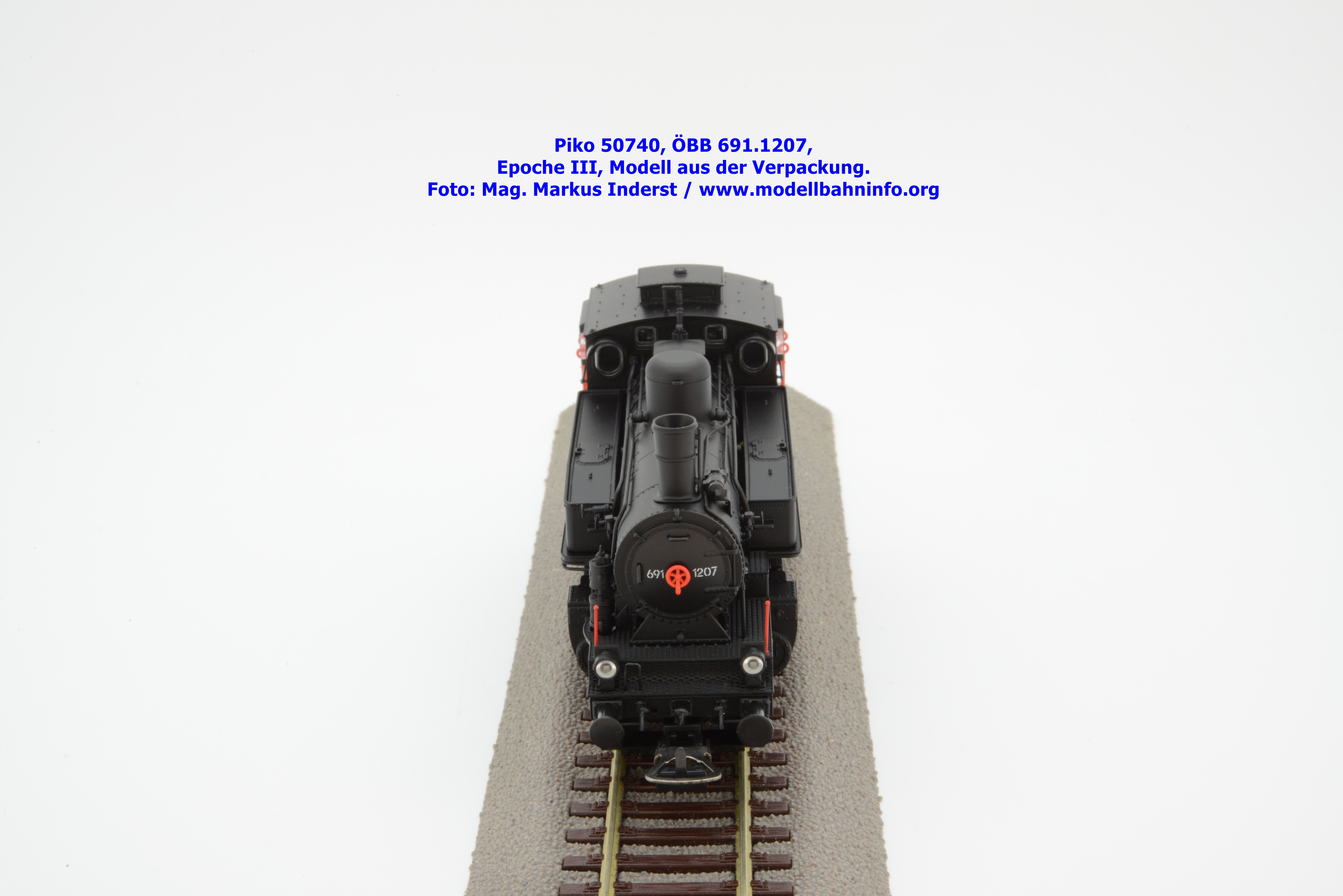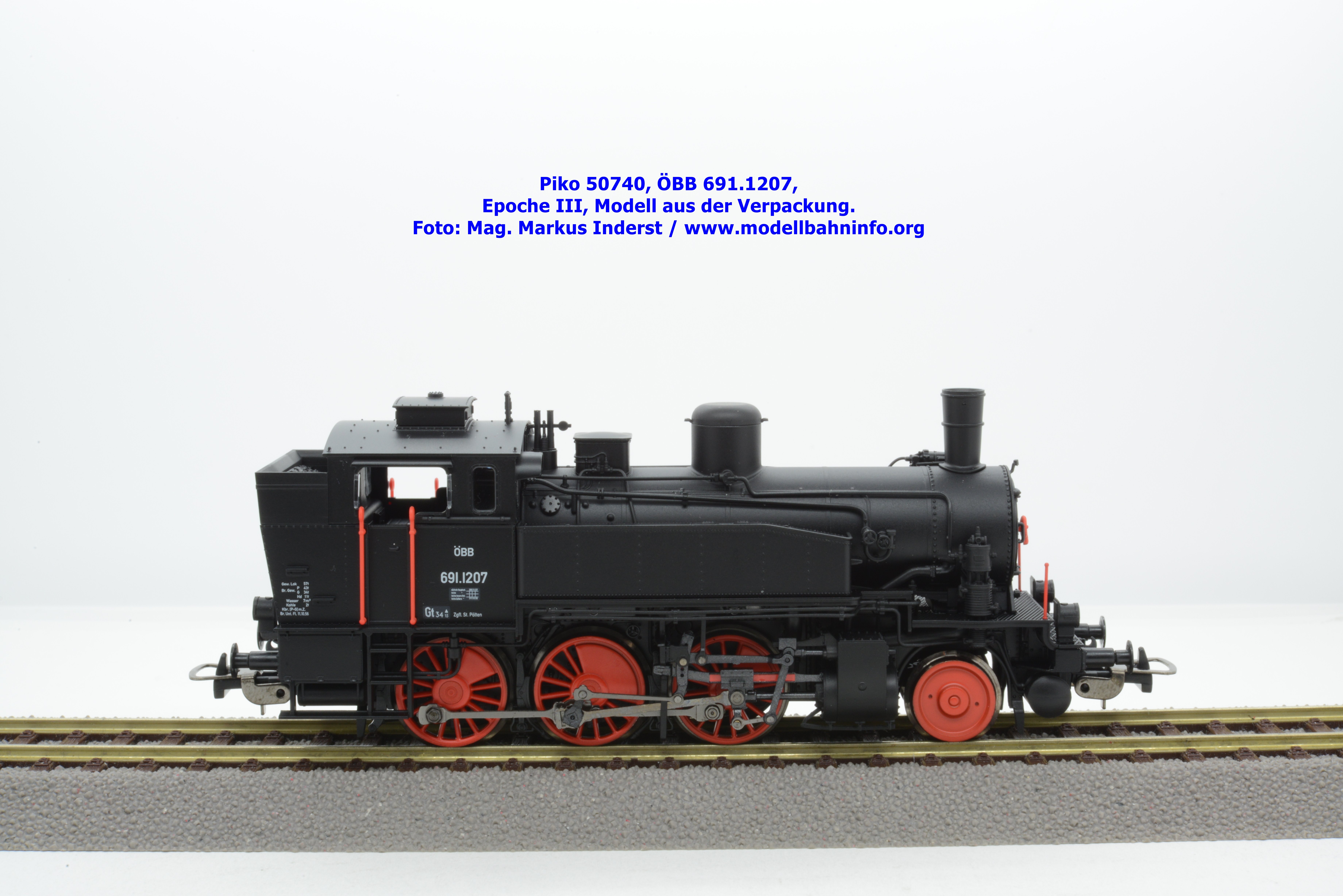 Es war also nur eine Frage der Zeit, bis wann Piko von seiner neukonstruierten 91.3-18 (preuß. T 9.3) ein ÖBB-Modell ankündigen wird. Von dieser Konstruktion sind nach 1945 sechs Lokomotiven in Österreich verblieben und wurden unter der alten Loknummer einige Zeit betrieben. Lediglich die 91 1207 und die 91 1347 haben die Umzeichnung im Frühjahr 1953 erlebt und erhielten daraufhin die neuen Loknummern 691.1207 bzw. 691.1347. Beide Loks waren zu diesem Zeitpunkt in St. Pölten stationiert; beide Loks schieden mit 27. November 1957 aus dem ÖBB-Bestand. Piko hat die 691.1207 als sog. Neukonstruktion in die Herbstneuheiten 2025 für Österreich ins Sortiment genommen. Das neue Modell erfuhr auch im Vergleich zu den Schwestermaschinen entsprechende Formänderungen, welche sich primär am Langkessel, am Führerhausdach und dem Kohletender finden. Die Heimatdienststelle wird mit Zgfl. St. Pölten angegeben, die letzte Untersuchung fand mit der Anschrift „Br. Unt. Fl. 11.10.56“ statt. Piko fertigt die 691.1207 in drei technisch unterschiedlichen Ausführungen. Unter der oben angegebenen Artikelnummer verbirgt sich die analoge Zweileiter-Gleichstrom-Ausführung mit dem UVP von € 249,–. Die digitale Zweileiter-Gleichstrom-Ausführung mit dem PIKO-TrainSound onboard ist unter der Artikelnummer 50741 und zum UVP von € 359,– erhältlich, währenddessen die digitale Dreileiter-Wechselstrom-Ausführung die Artikelnummer 50742 aufweist.