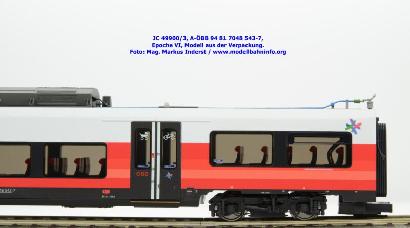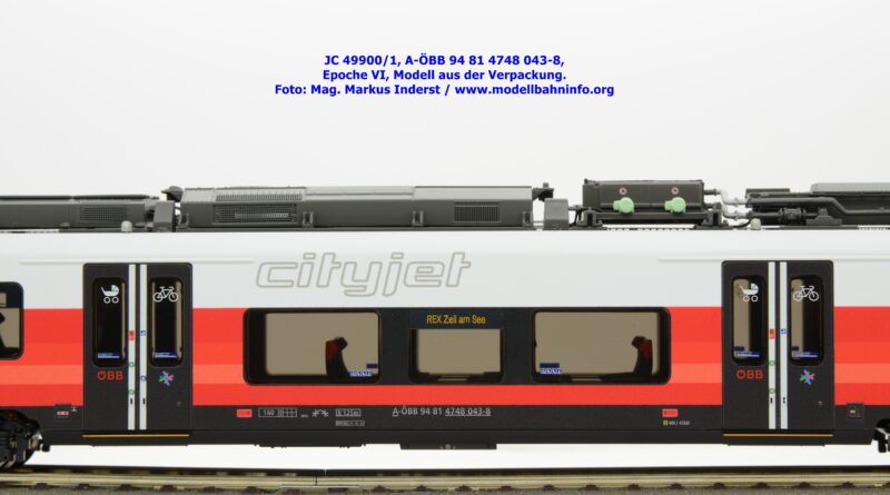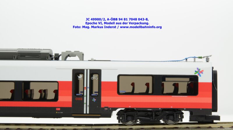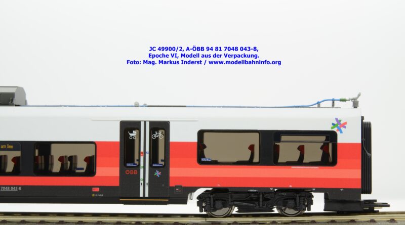 Der VMOBIL-Triebwagen ist mit den Fahrzeugnummern A-ÖBB 94 81 4748 004-0, 94 81 7048 004-0, 94 81 7048 504-9 und 94 81 4748 504-9 bedruckt. Am Fahrzeug stehen die Revisionsanschriften REV Fj 20.12.22 und REV Fj 21.12.22. Korrekt ist einheitlich die Angabe mit REV Fj 20.12.22. Obwohl die Bedruckung tadellos umgesetzt wurde, ist die Position der VMOBIL-Anschrift über dem Fensterband zu weit nach rechts gerückt. Außerdem fehlt bei einem Triebkopf die seitliche Aufschrift „S-Bahn“. Das Modelle sollte noch den Taufnamen „Nüziders“ tragen.