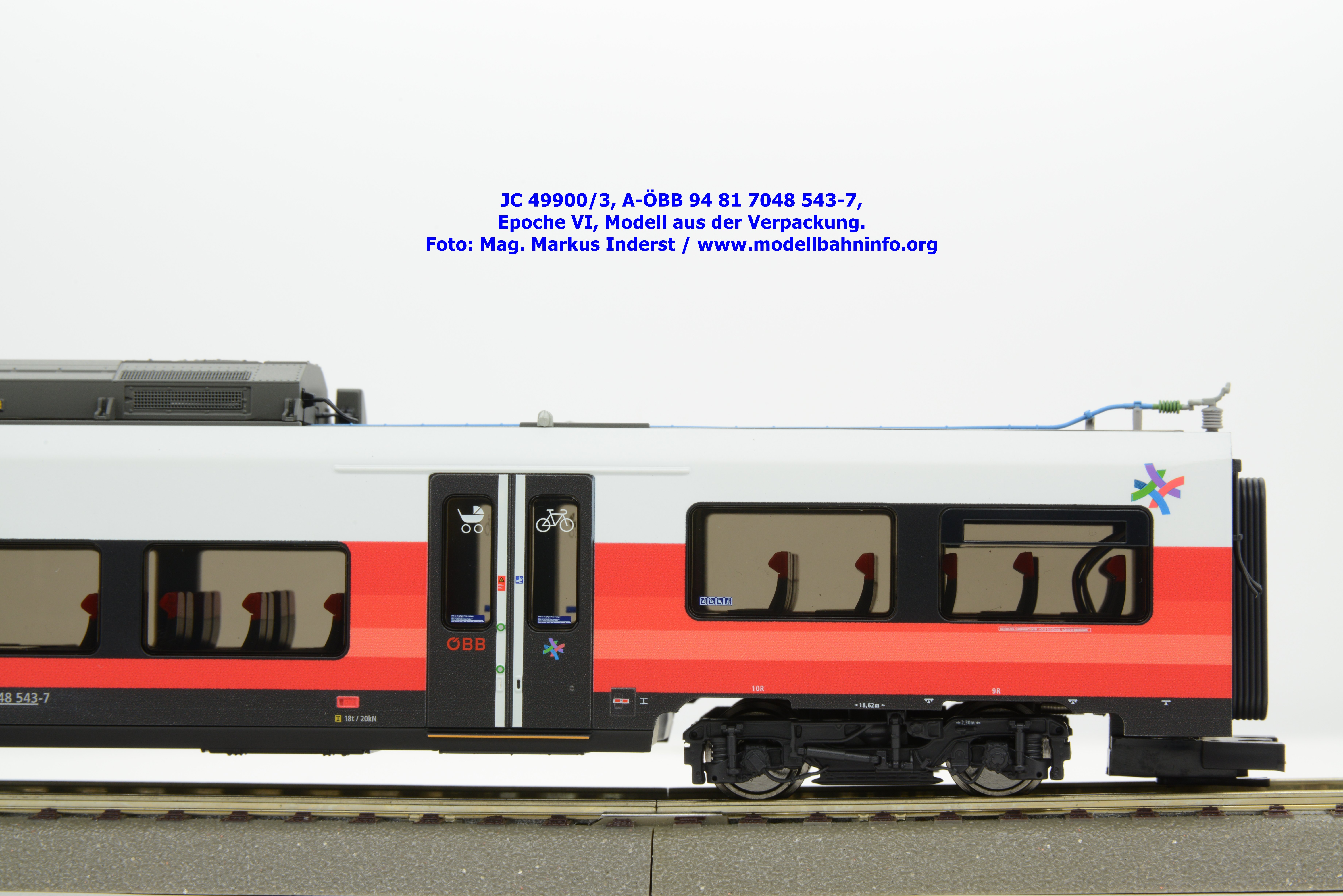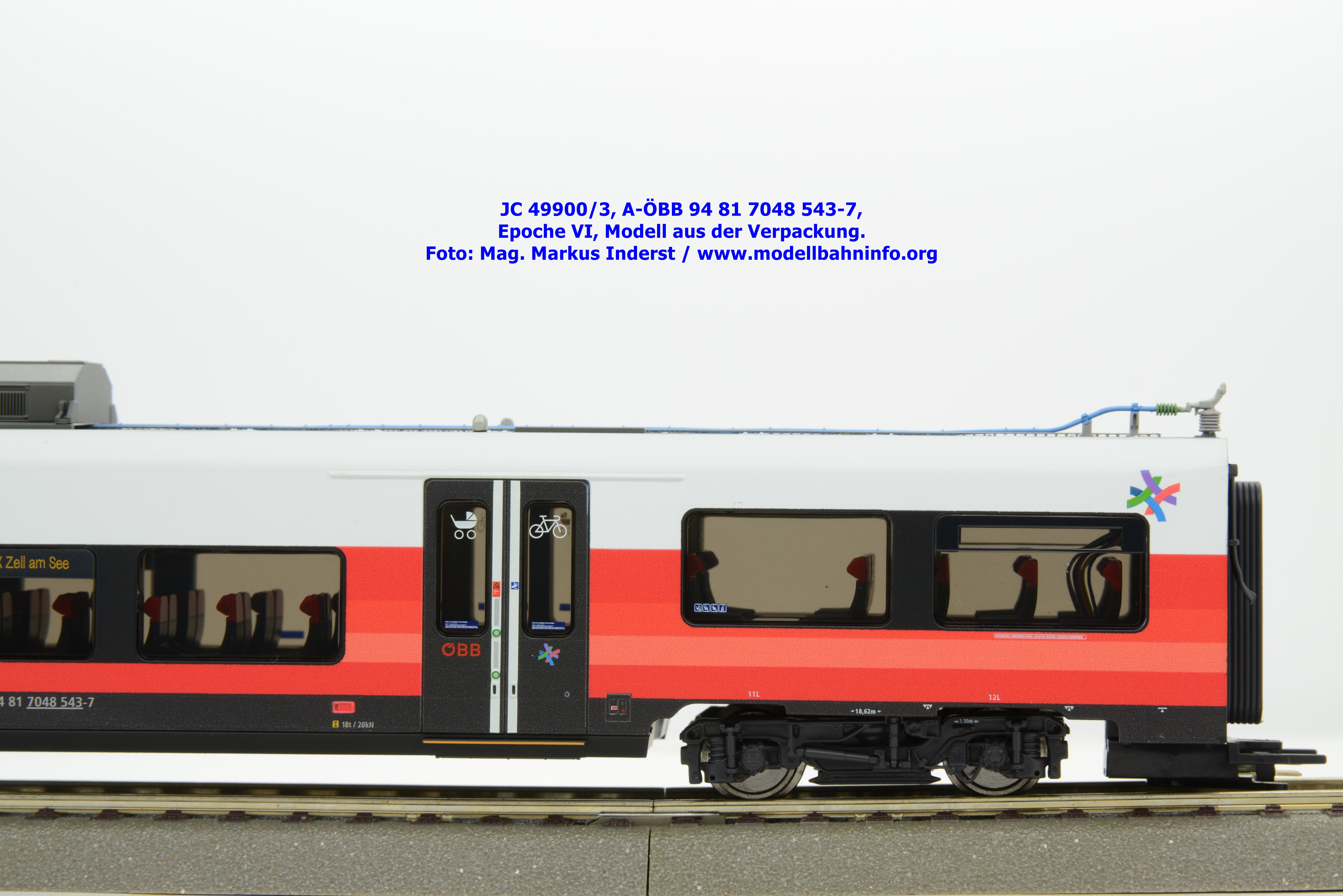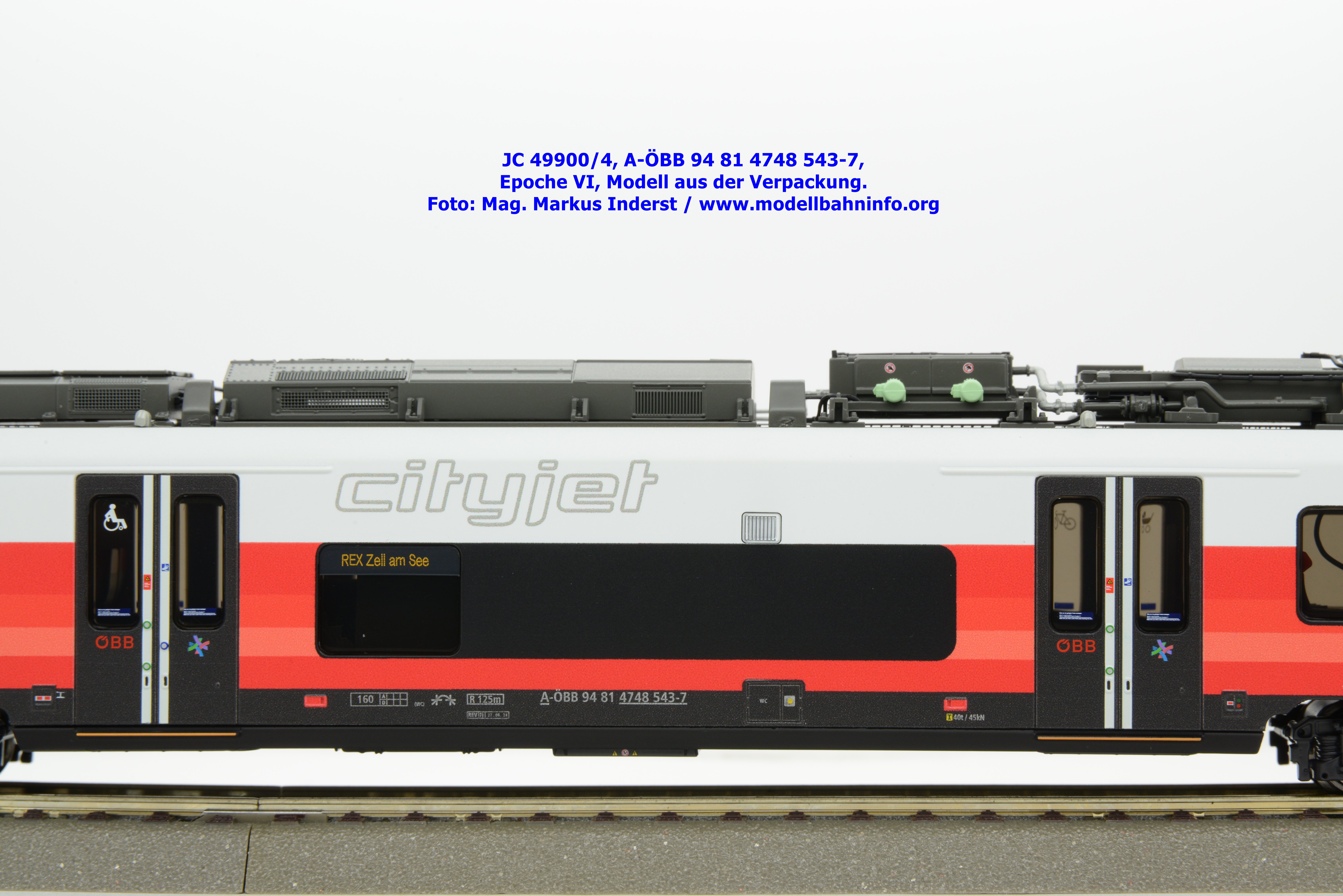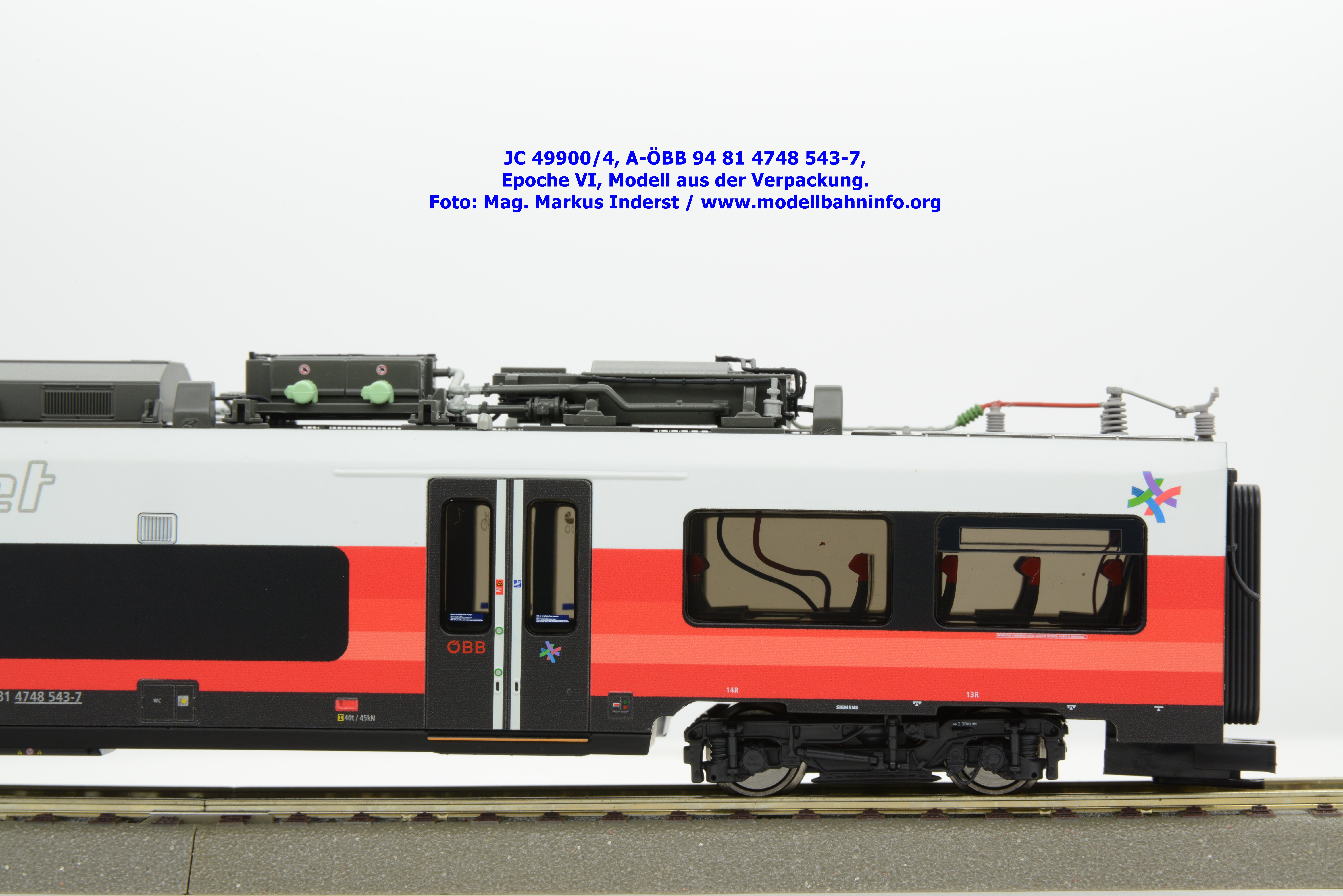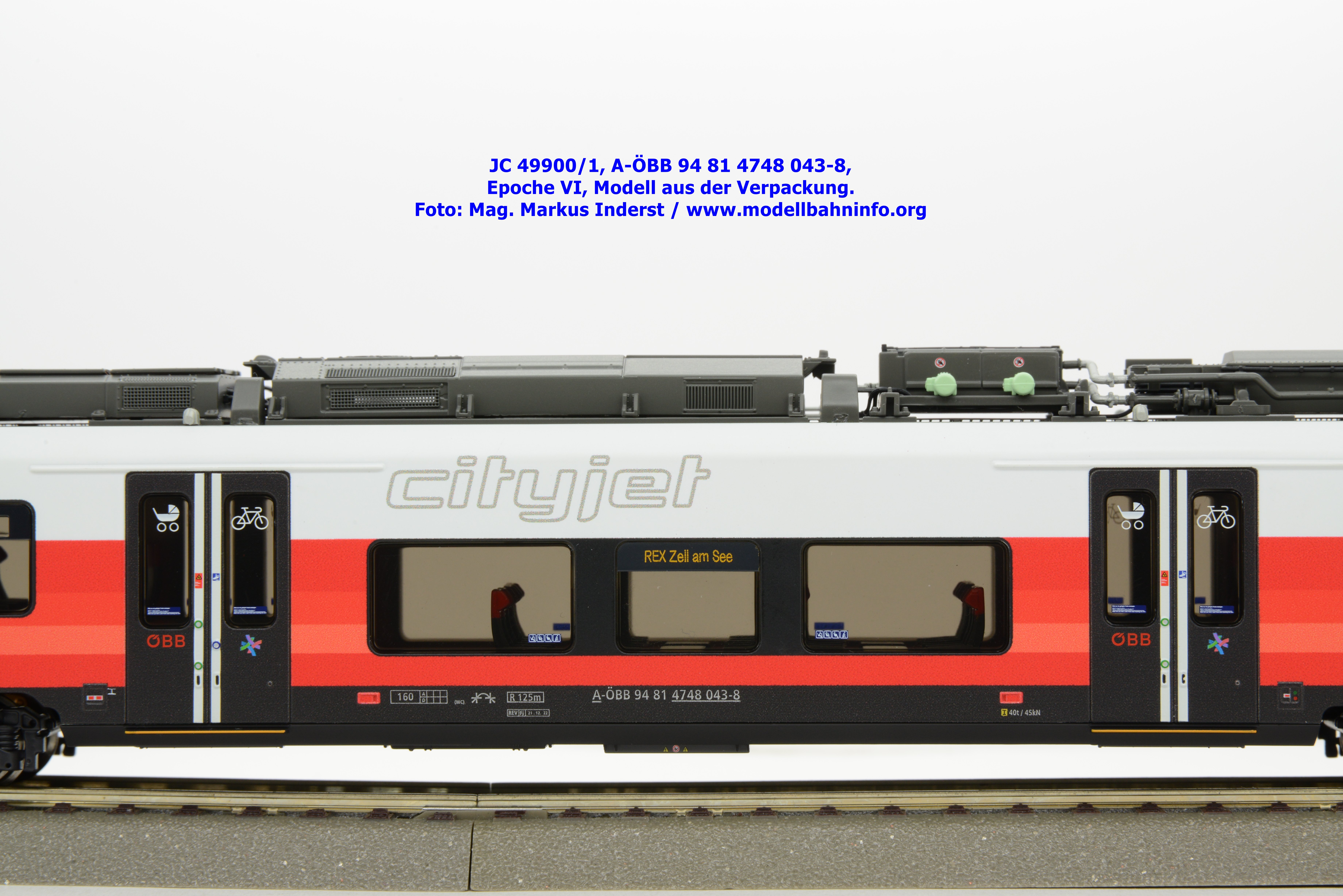 Der VMOBIL-Triebwagen ist mit den Fahrzeugnummern A-ÖBB 94 81 4748 004-0, 94 81 7048 004-0, 94 81 7048 504-9 und 94 81 4748 504-9 bedruckt. Am Fahrzeug stehen die Revisionsanschriften REV Fj 20.12.22 und REV Fj 21.12.22. Korrekt ist einheitlich die Angabe mit REV Fj 20.12.22. Obwohl die Bedruckung tadellos umgesetzt wurde, ist die Position der VMOBIL-Anschrift über dem Fensterband zu weit nach rechts gerückt. Außerdem fehlt bei einem Triebkopf die seitliche Aufschrift „S-Bahn“. Das Modelle sollte noch den Taufnamen „Nüziders“ tragen.