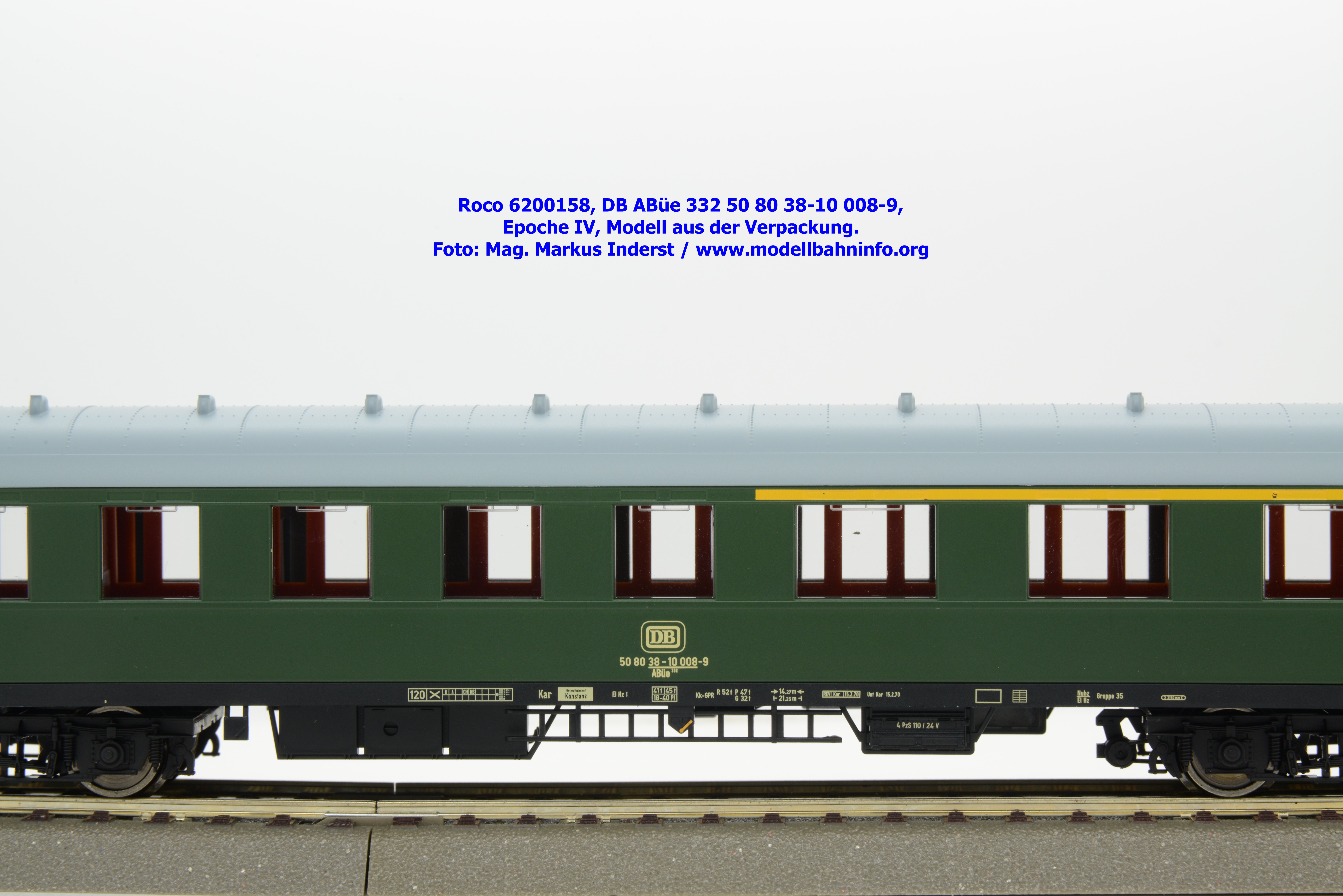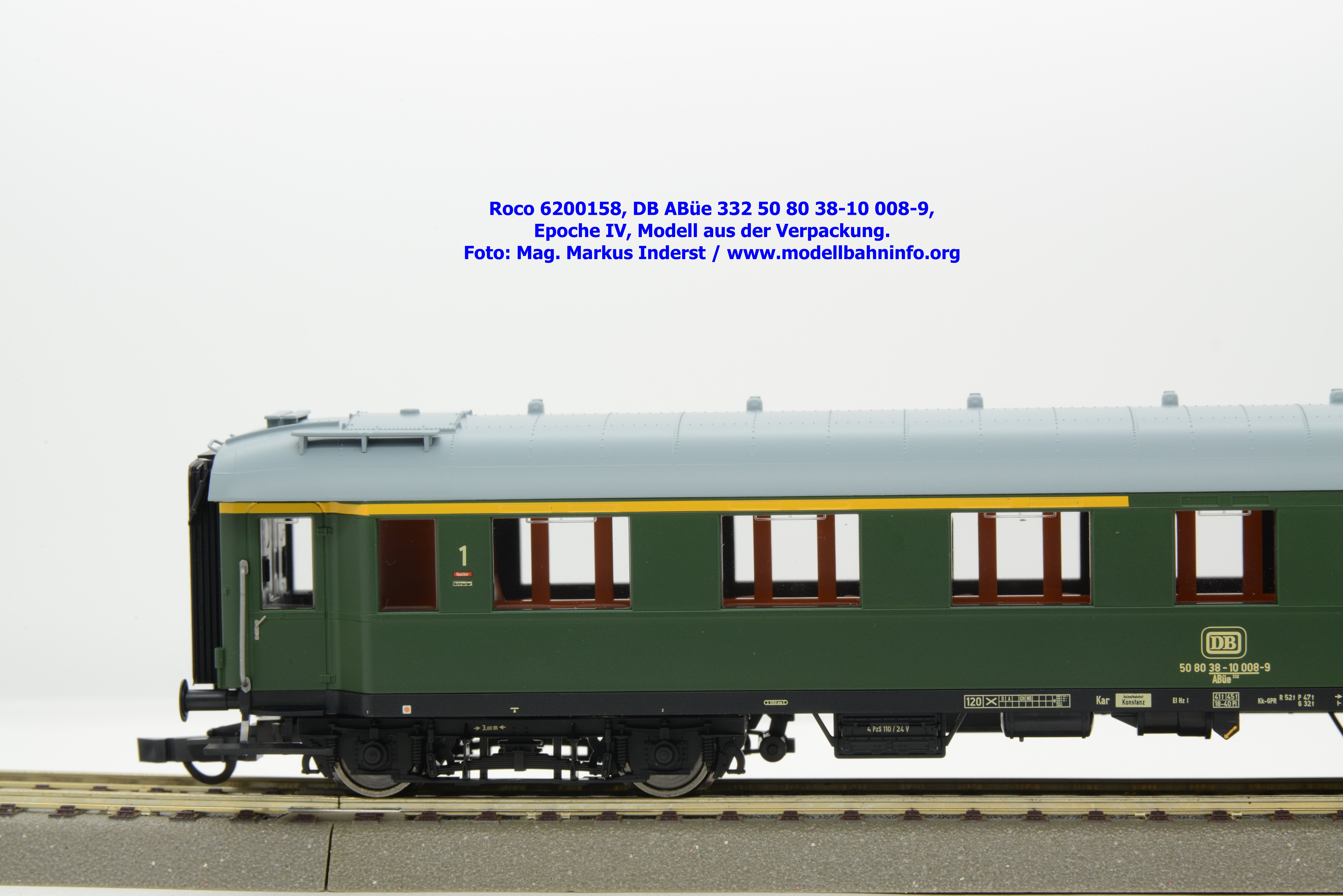 Unter dieser Artikelnummer hat Roco einen Wagen der 1./2. Wagenklasse realisiert, der bei der DB die Gattungsbezeichnung ABüe 332 aufweist. Der Schnellzugwagen ist mit der Wagennummer 50 80 38-10 008-9 bedruckt und gilt als Inlandswagen. Der Heimatbahnhof wird mit Konstanz angegeben. Im Revisionsraster stehen die Angaben REV Kar 15. 2.70.