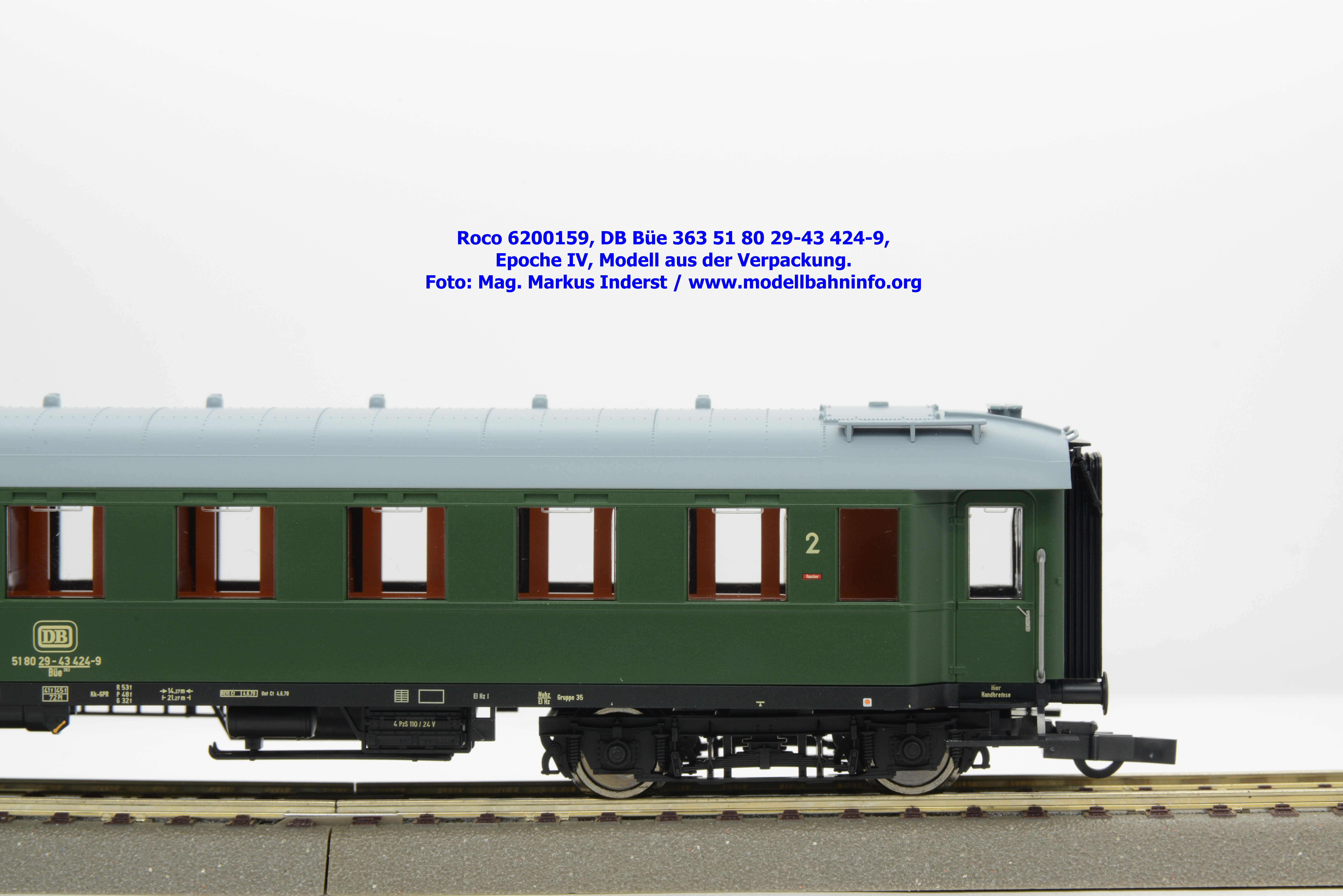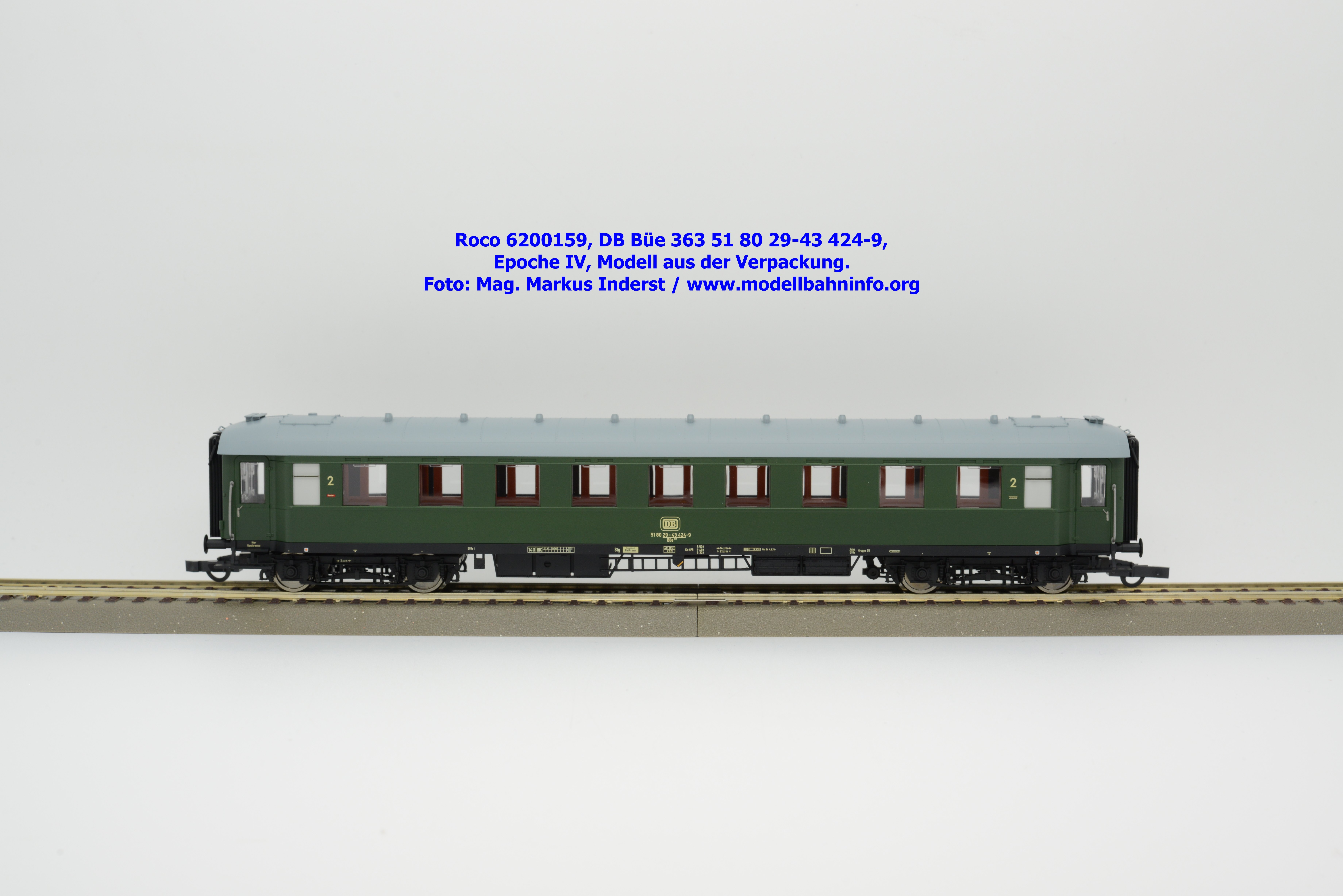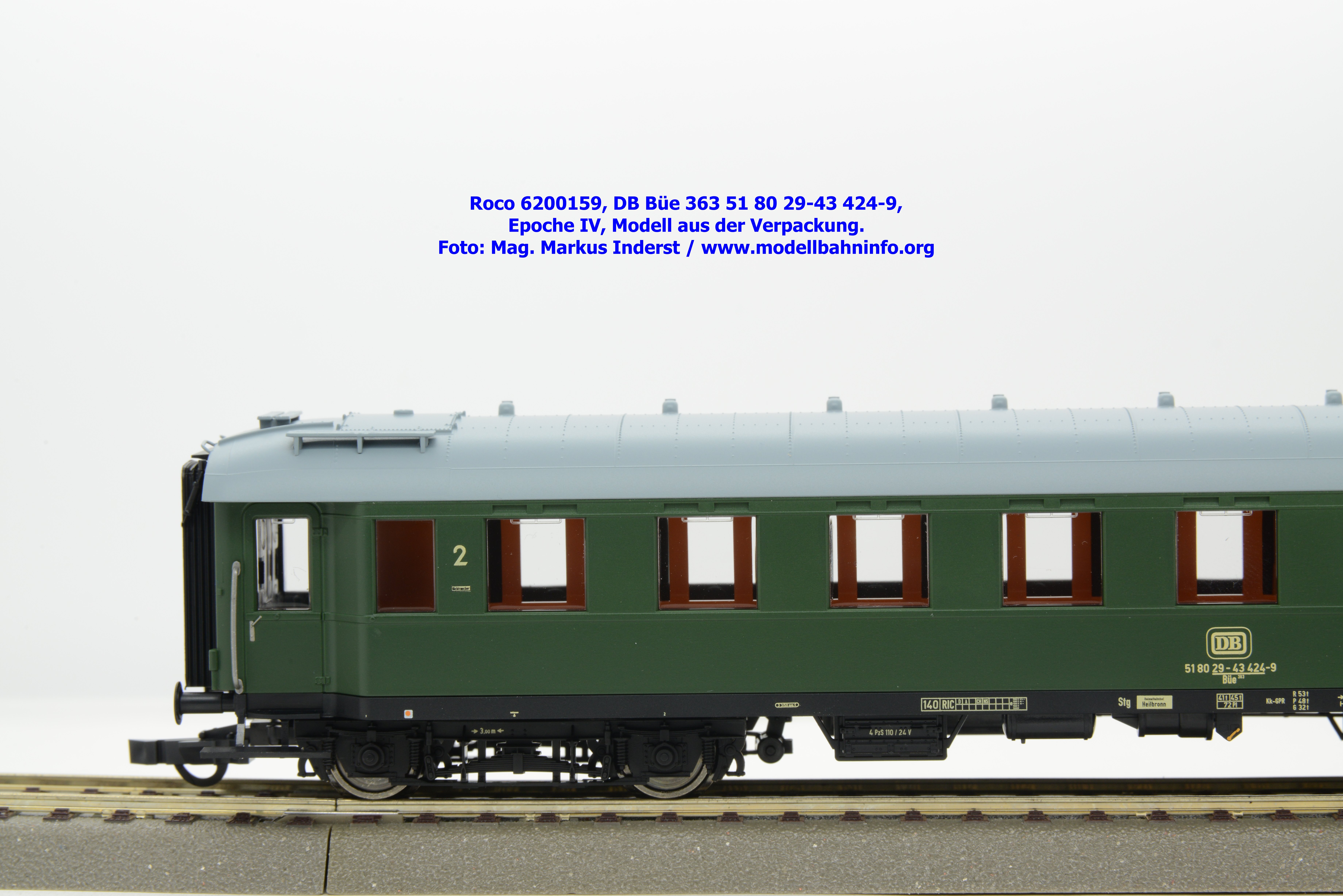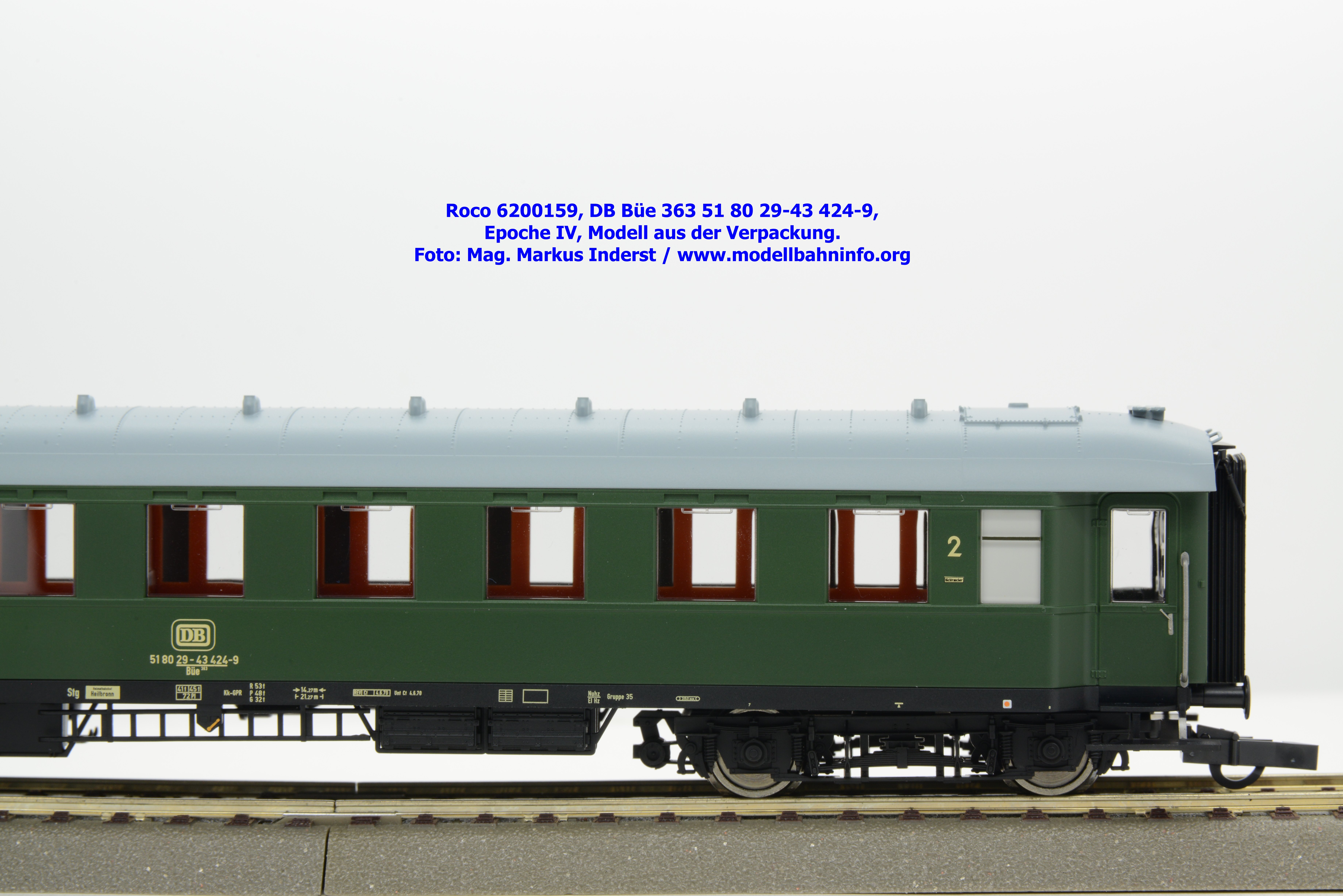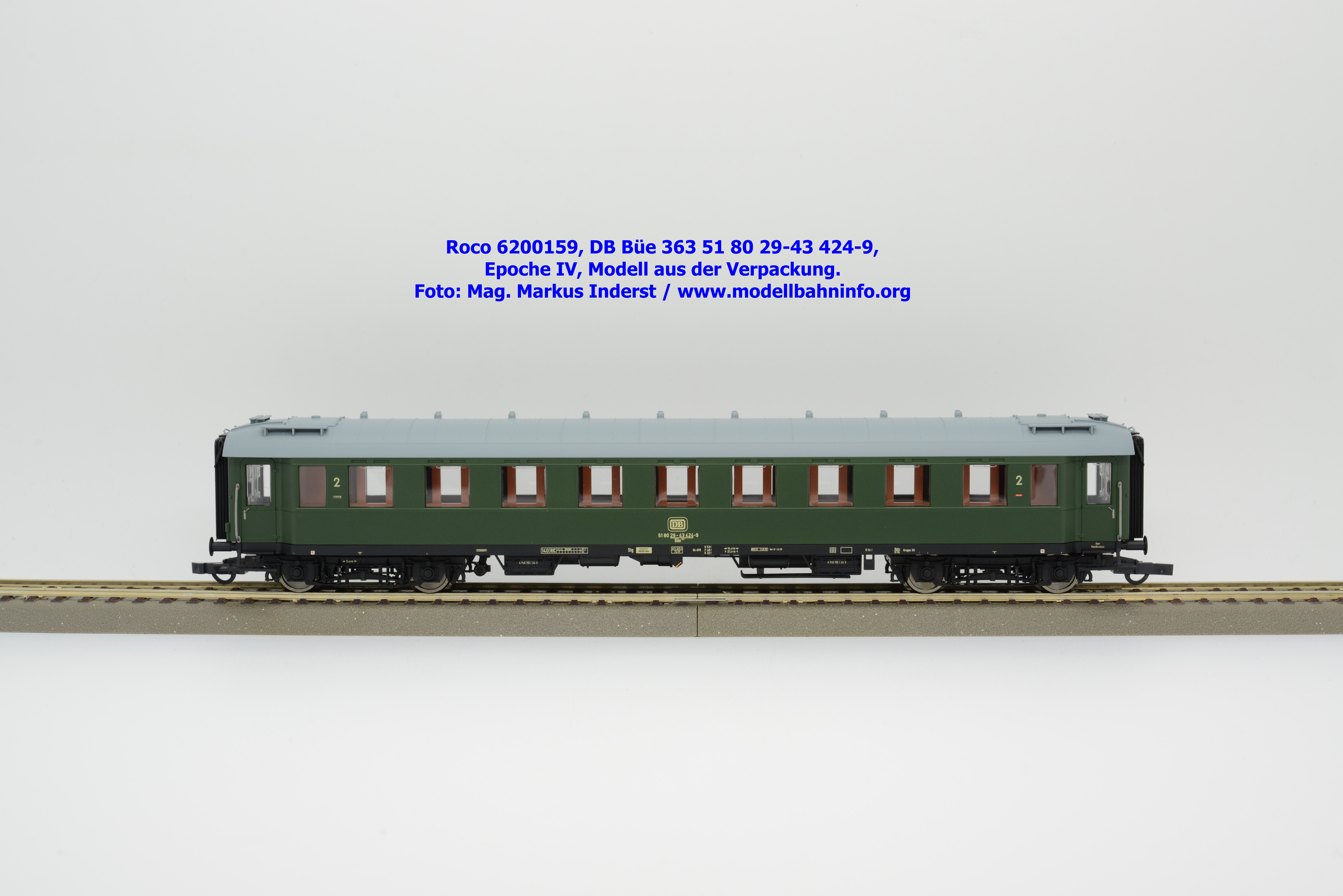 Roco hat von den Wagen der 2. Klasse zwei verschiedene Modell angekündigt. Der Schnellzugwagen ist mit der Wagennummer 51 80 29-43 424-9 bedruckt und gehört zur Gattung Büe 363. Der Heimatbahnhof ist Heilbronn. Im Untersuchungsraster stehen die Angaben REV Ct 4. 6.70.