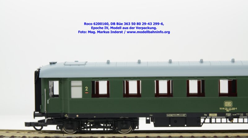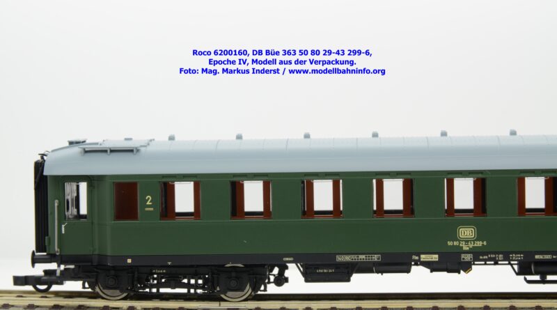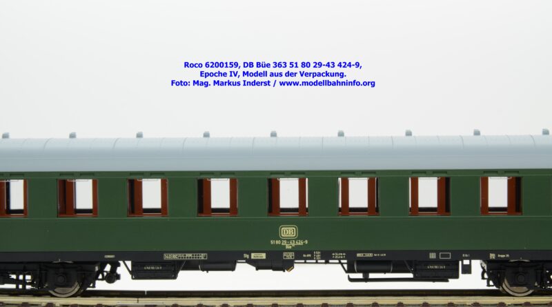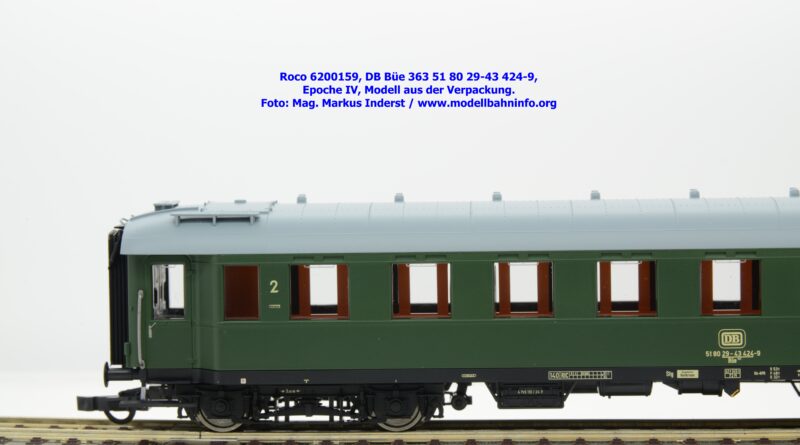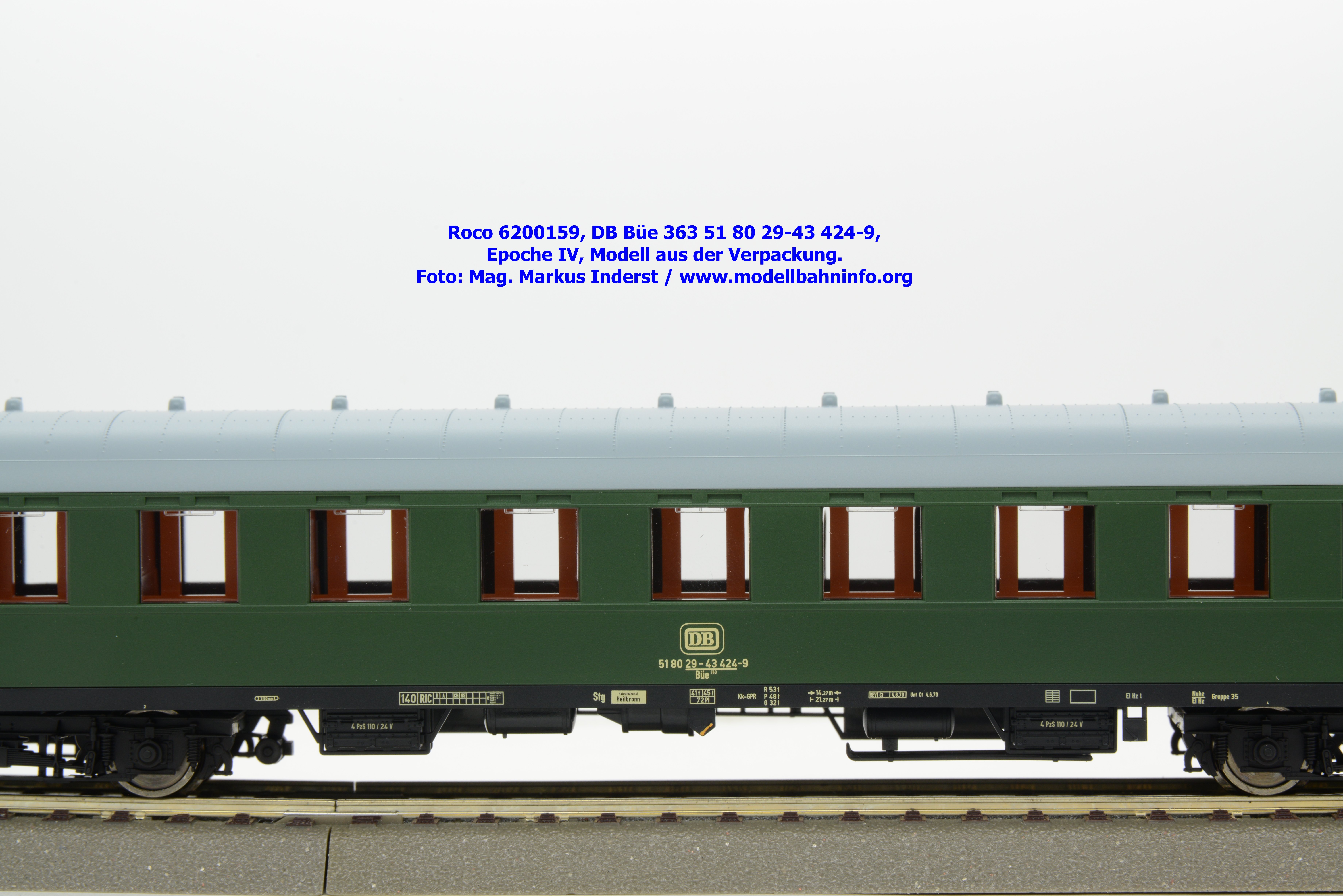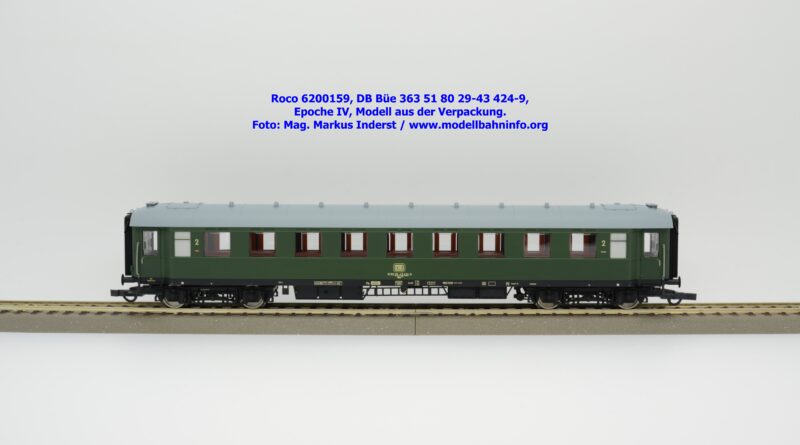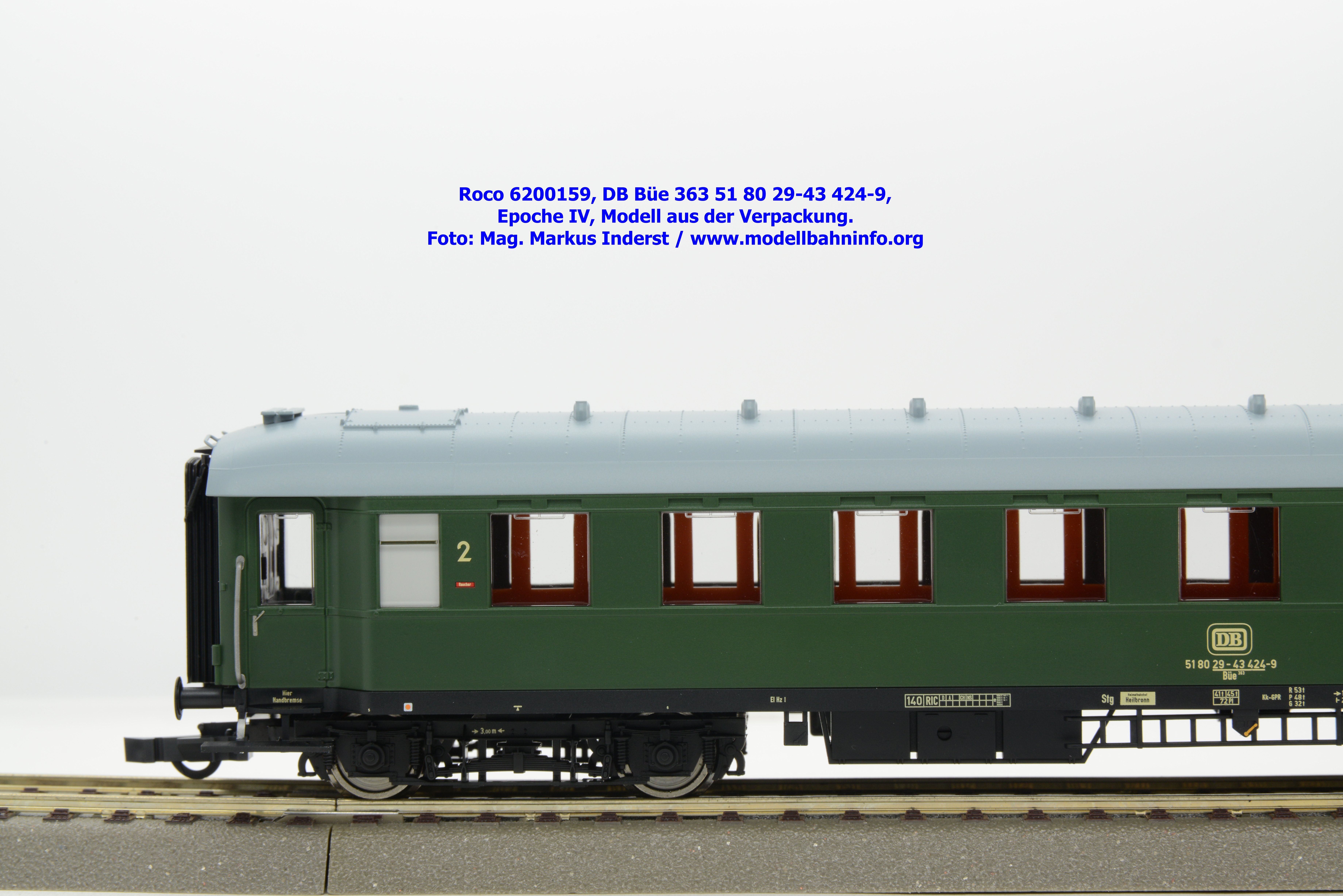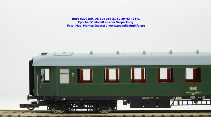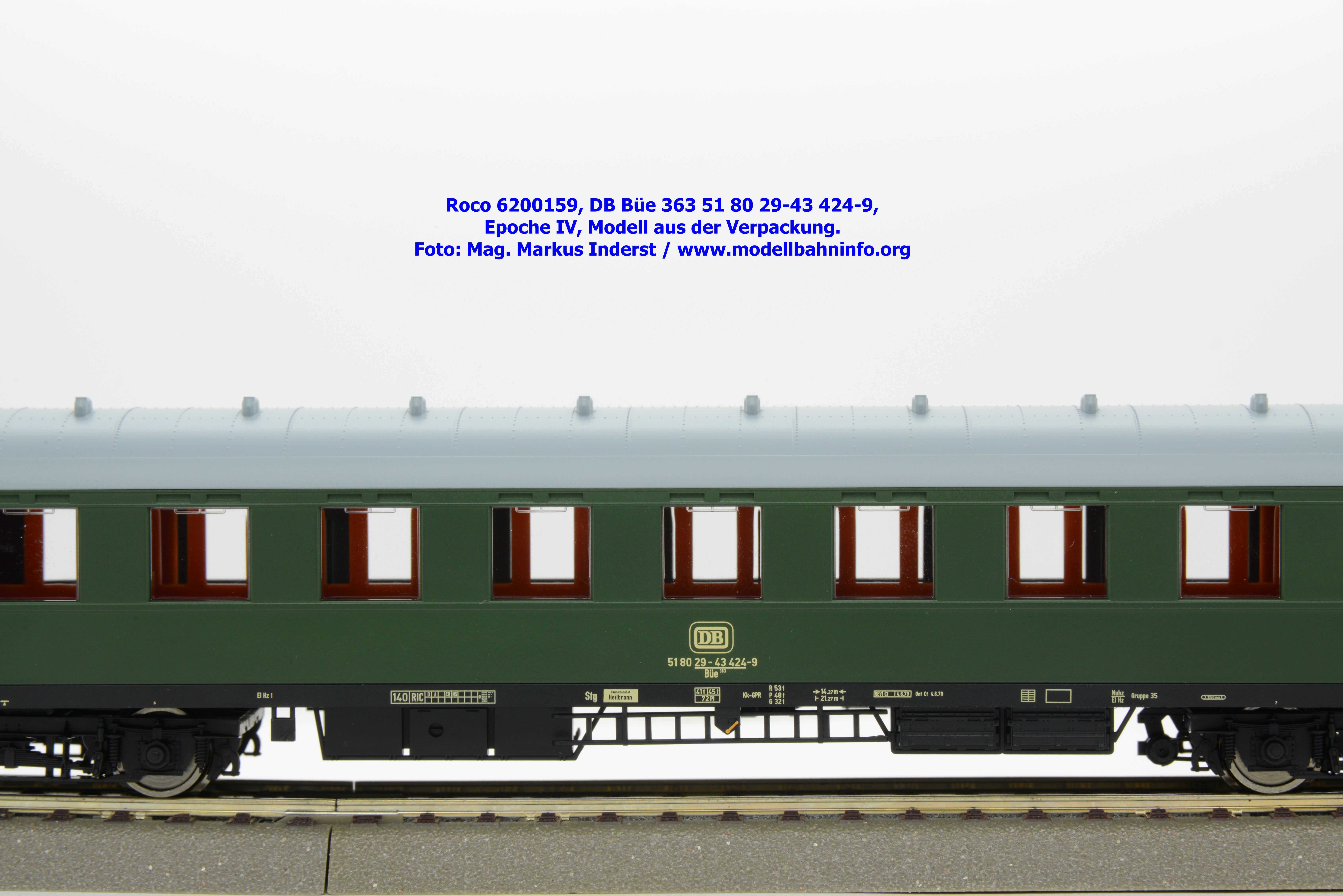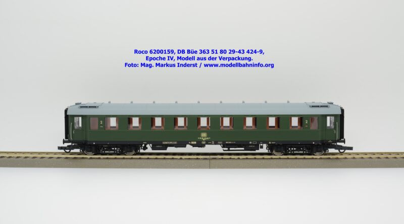 Roco hat von den Wagen der 2. Klasse zwei verschiedene Modell angekündigt. Der Schnellzugwagen ist mit der Wagennummer 51 80 29-43 424-9 bedruckt und gehört zur Gattung Büe 363. Der Heimatbahnhof ist Heilbronn. Im Untersuchungsraster stehen die Angaben REV Ct 4. 6.70.