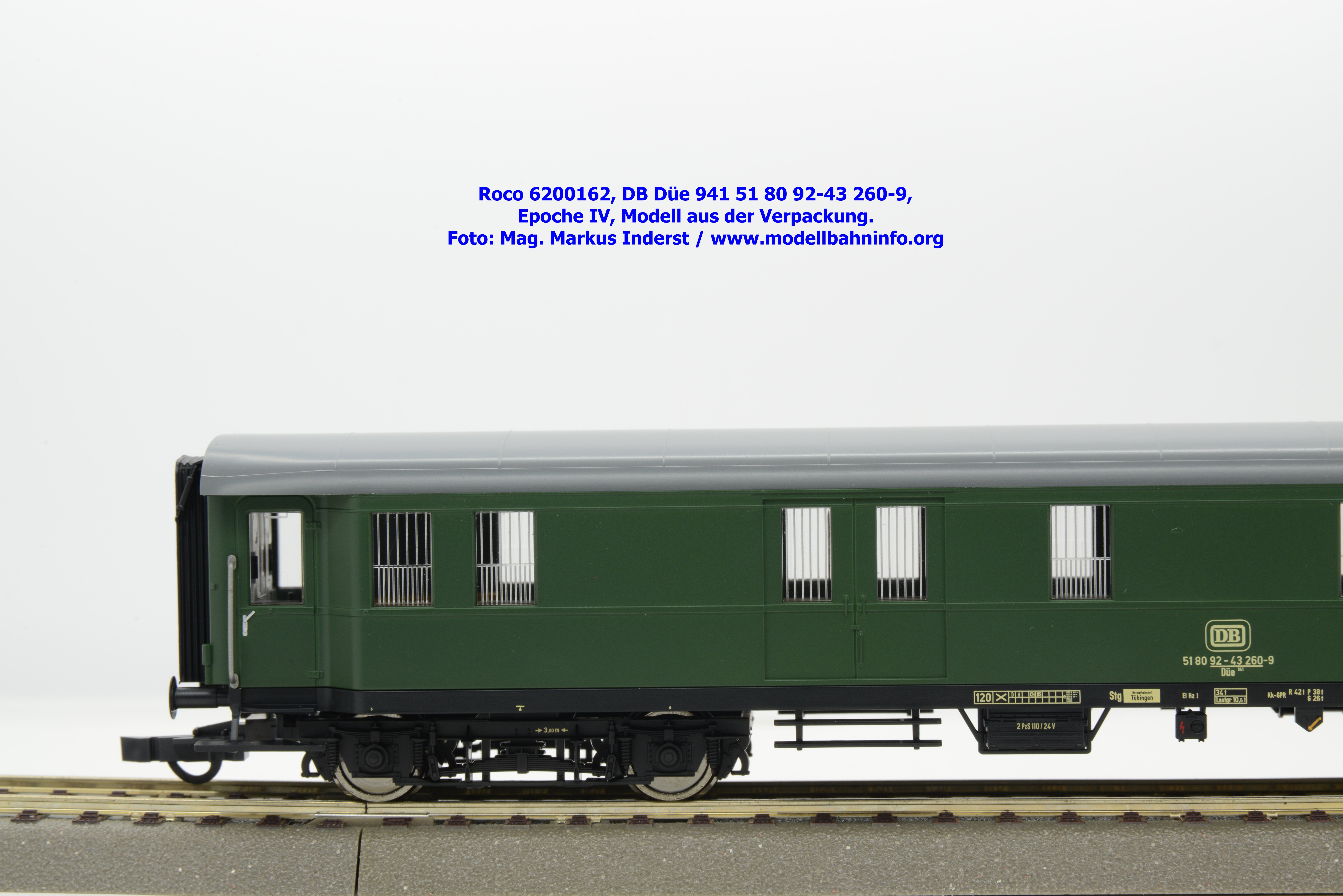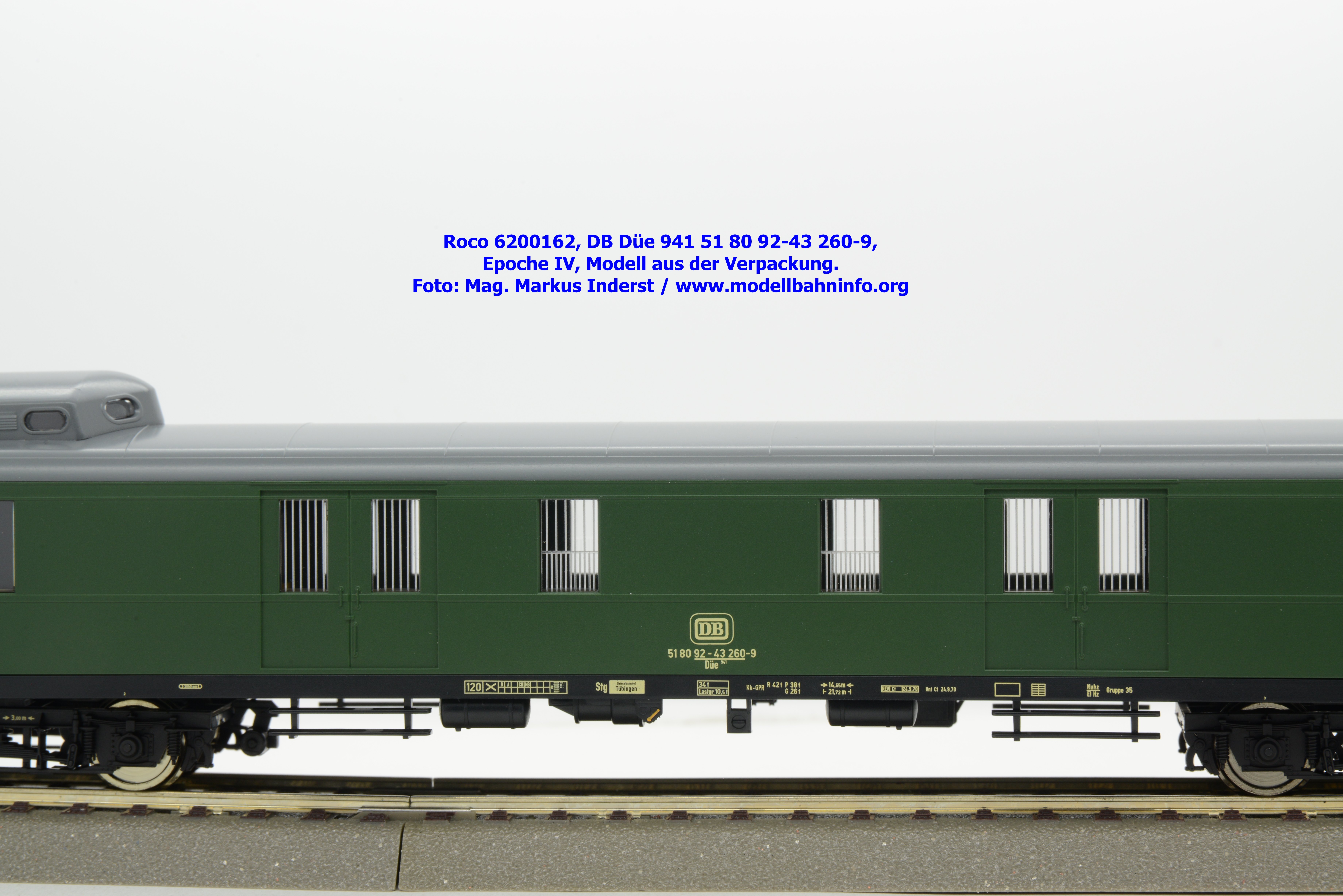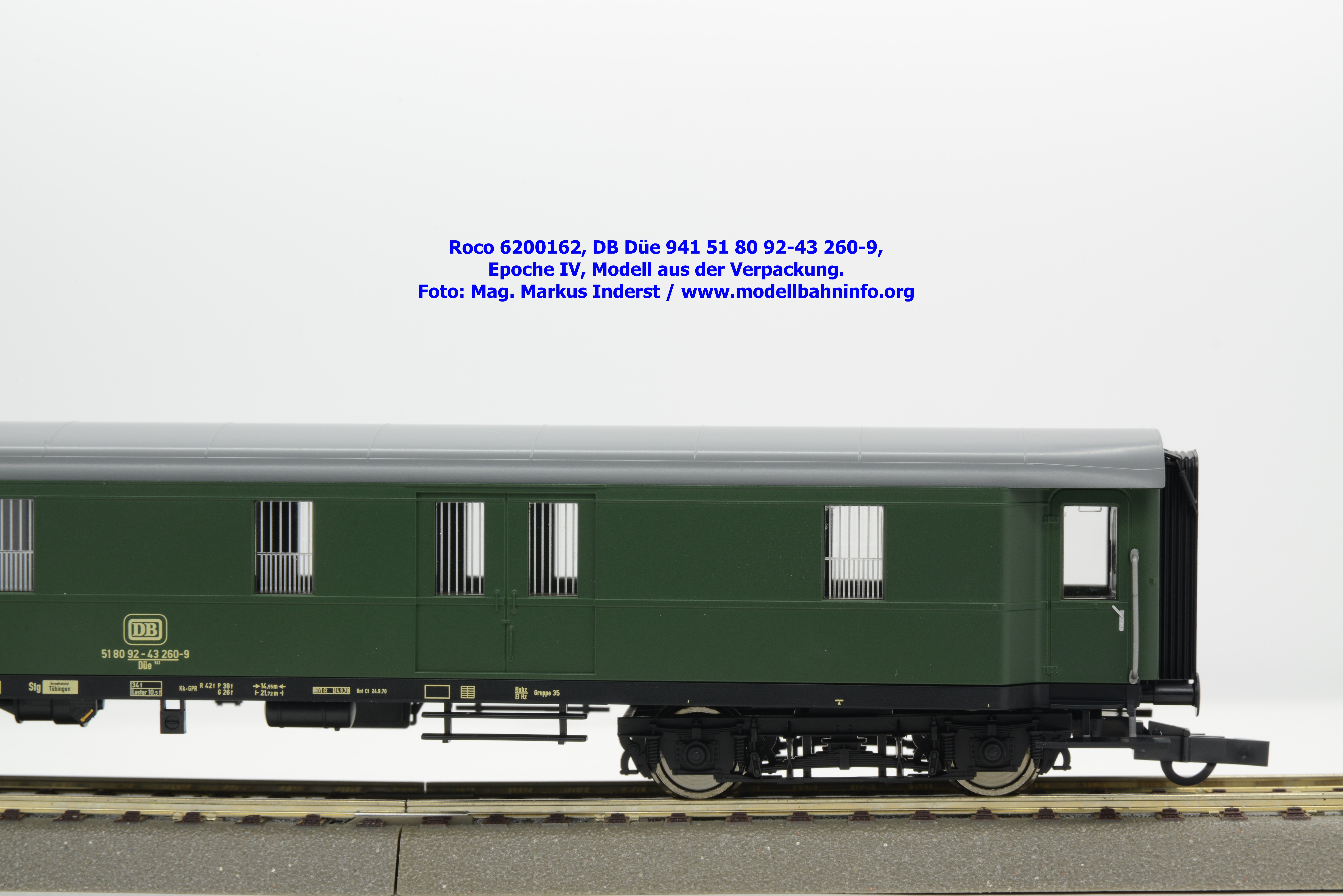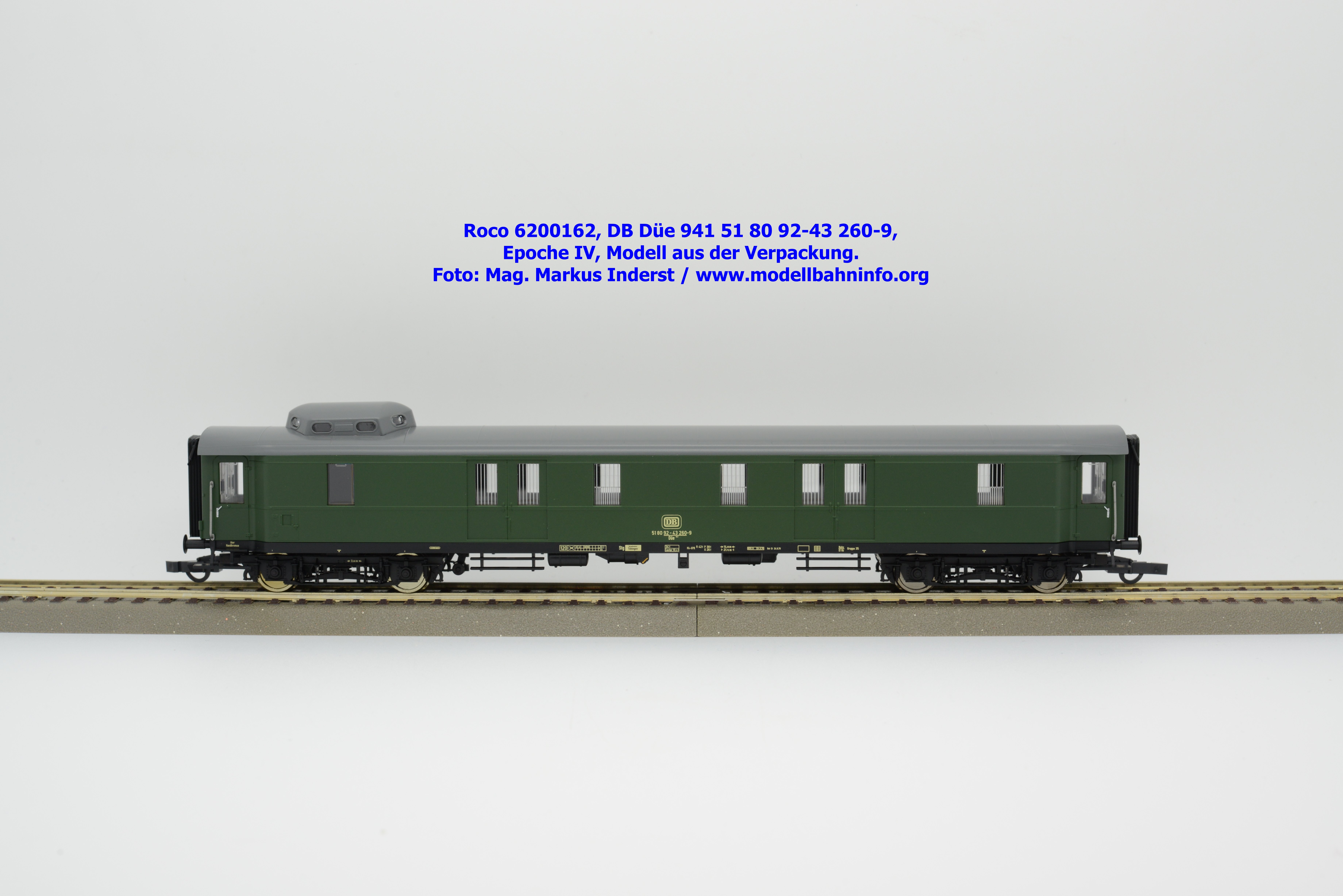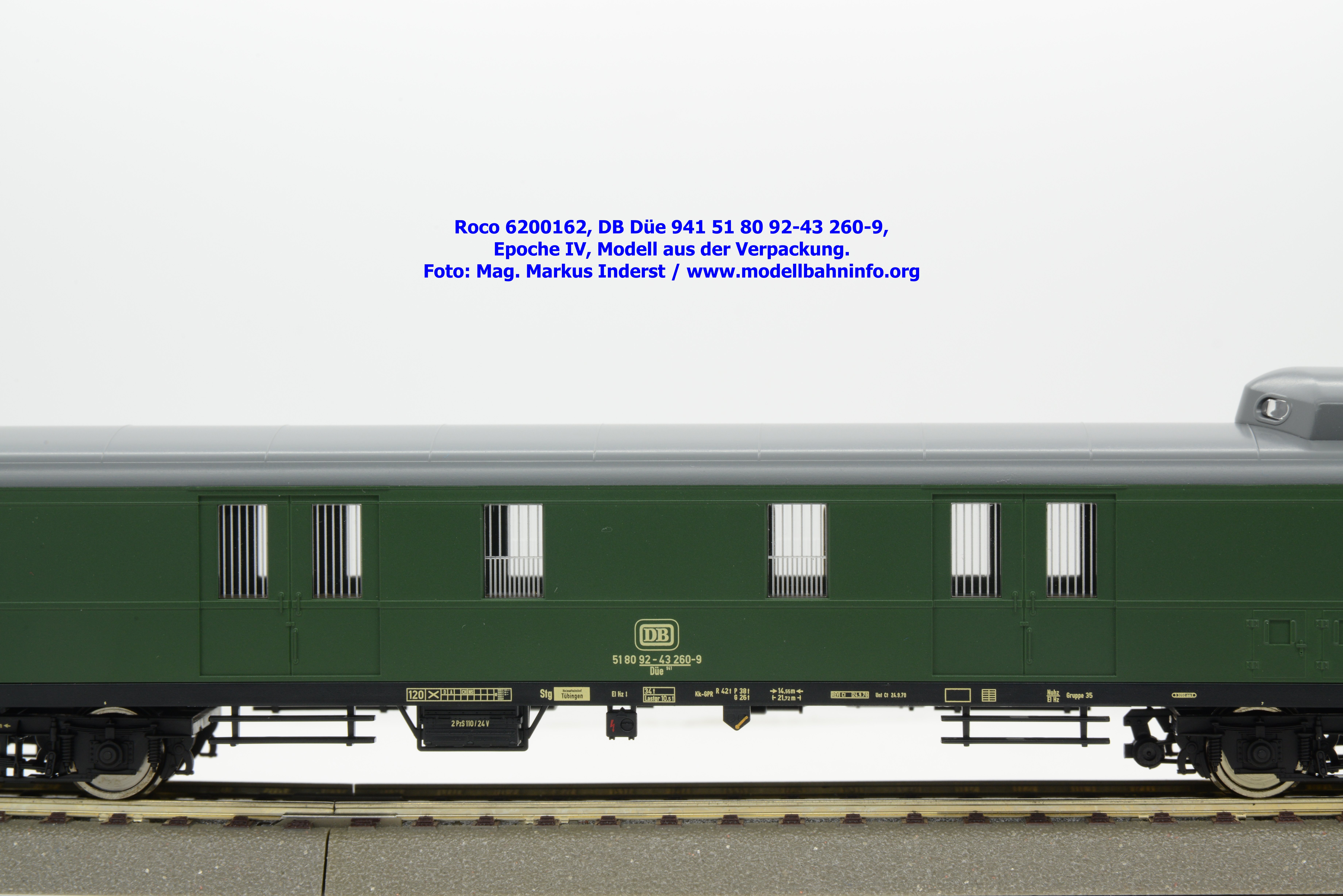 Der vierachsigen Gepäckwagen ist mit einer windschnittigen Dachkanzel bestückt. Der Wagen ist mit der Wagennummer 51 80 92-43 260-9 und der Gattungsbezeichnung Düe 941 versehen. Der Heimatbahnhof wird mit Tübingen angegeben, die Untersuchungsdaten lauten auf REV Ct 24. 9.70.