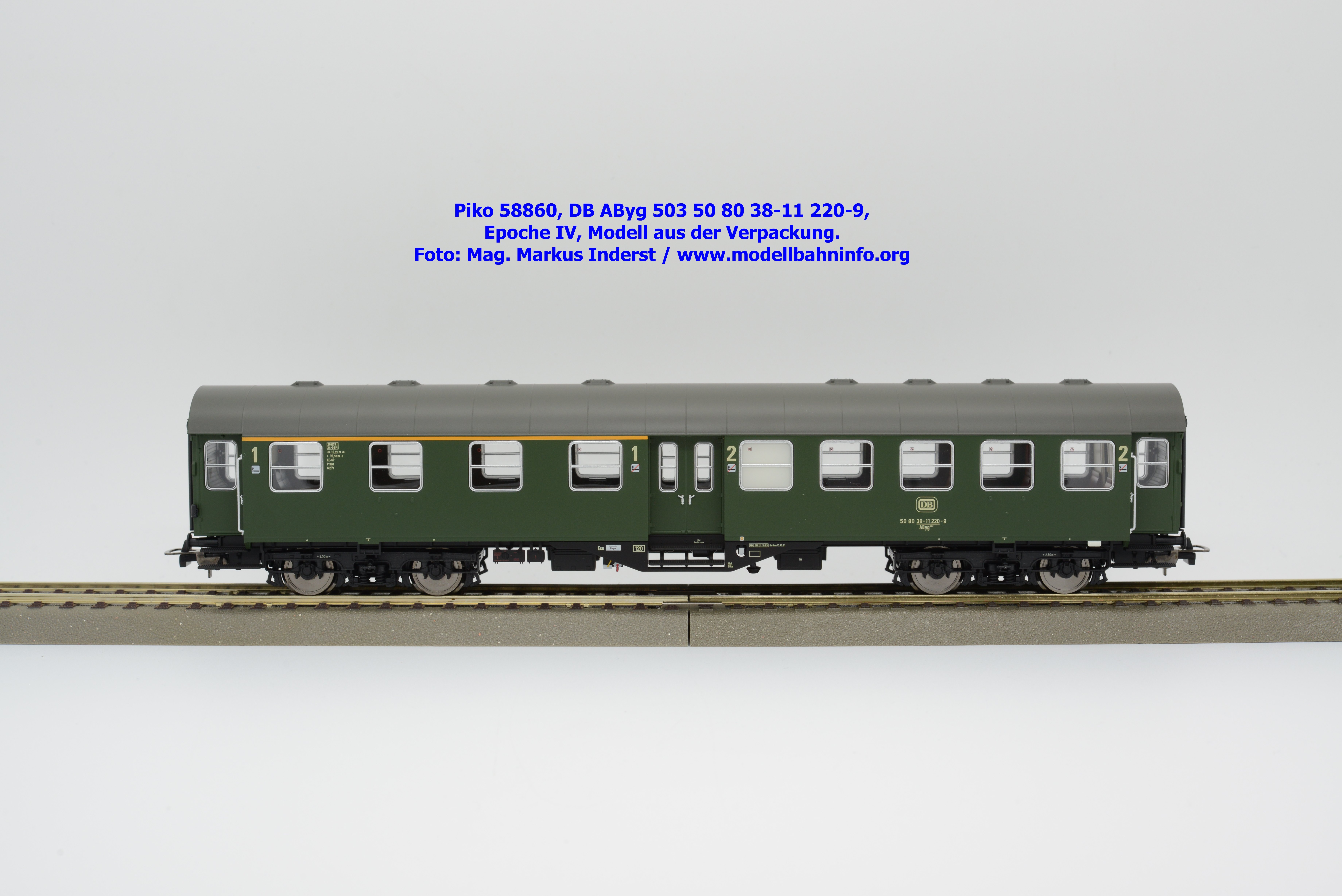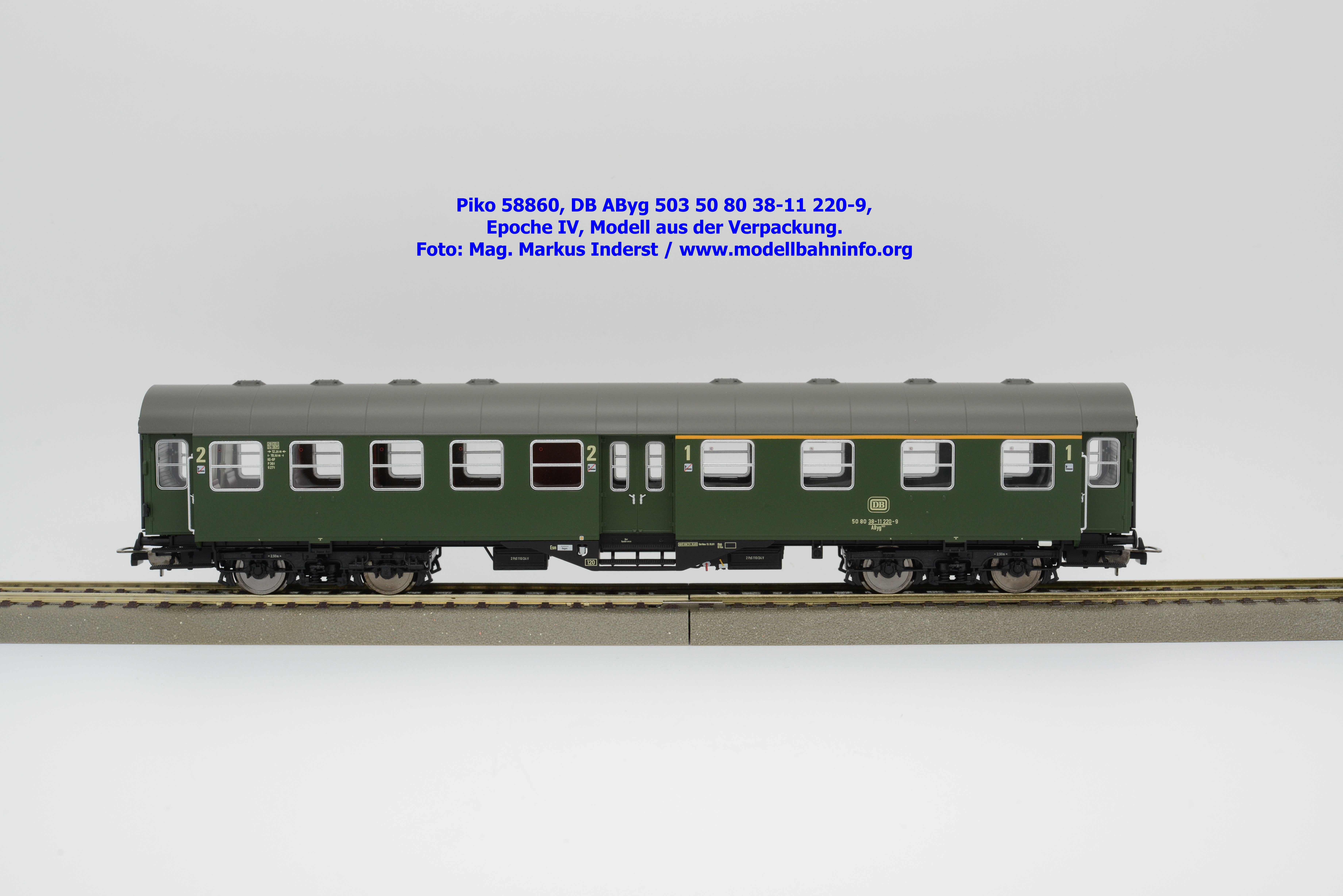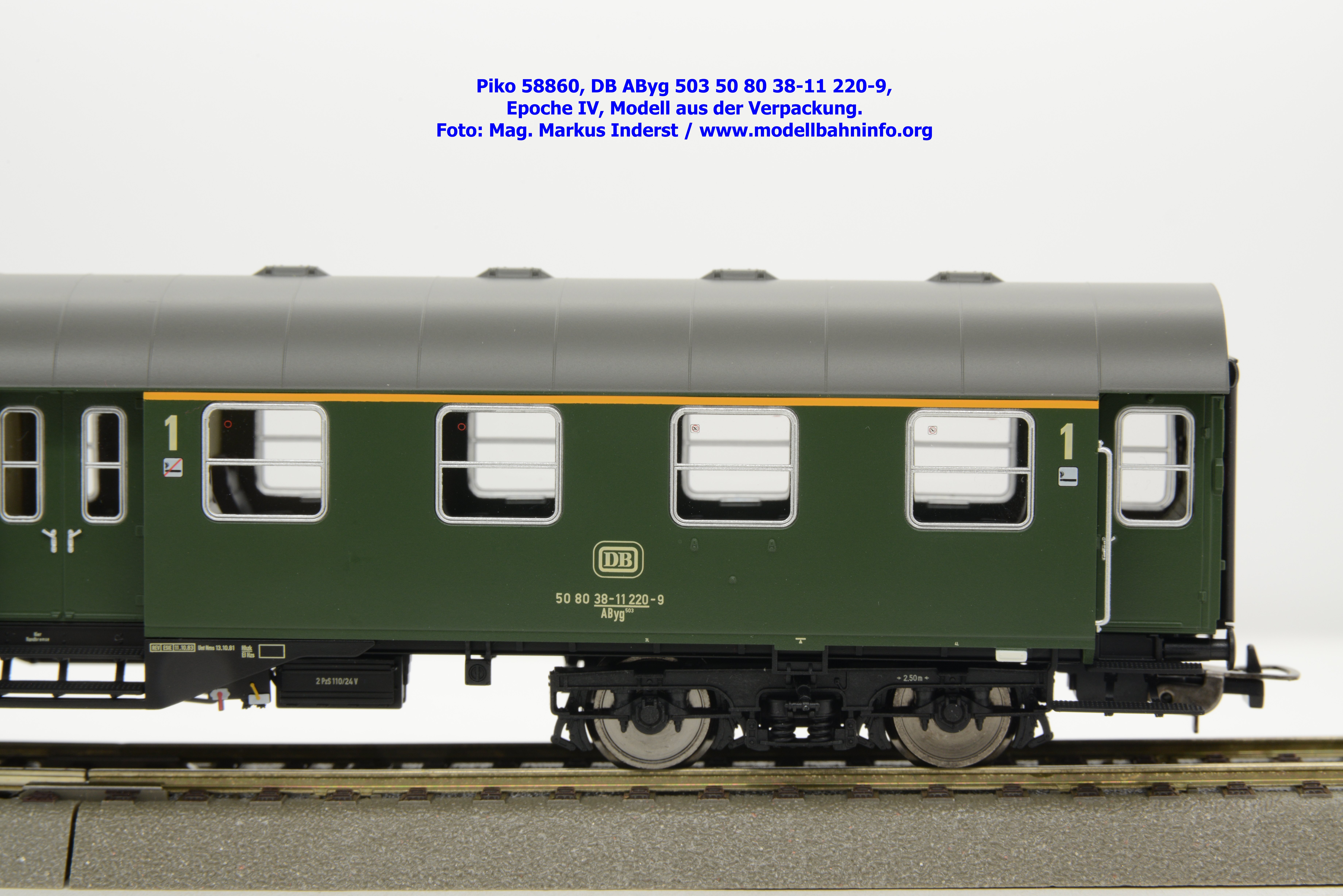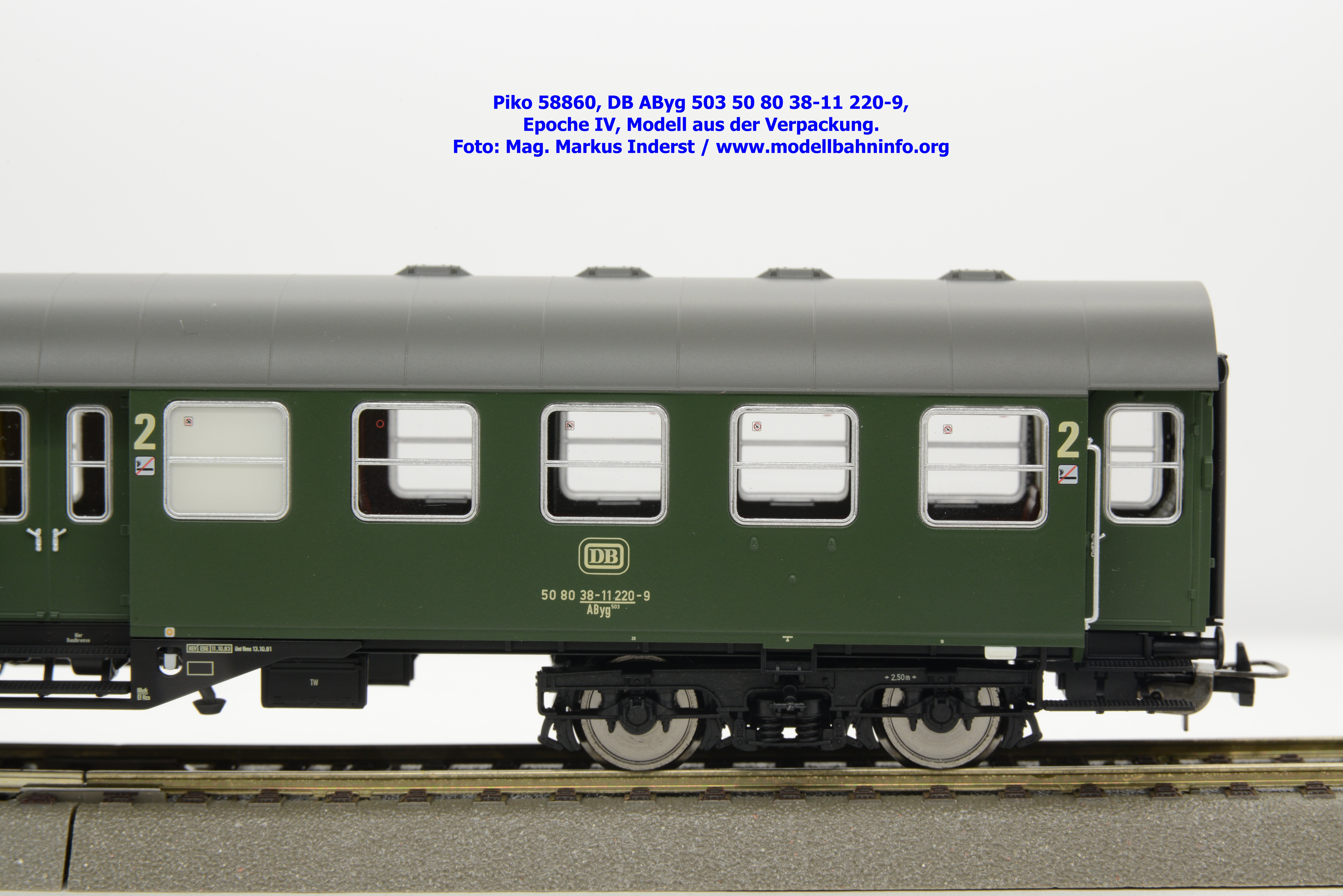 Das Modell des 1./2.-Klasse-Wagens gehört der Gattungsbezeichnung AByg 503 an und wurde mit der Wagennummer 50 80 38-11 220-9 bedruckt. Als Heimatbahnhof ist Hagen Hbf angegeben. Im Revisionsraster finden sich die Angaben REV ESIE 11.10.83 bzw. Unt Nms 13.10.81.