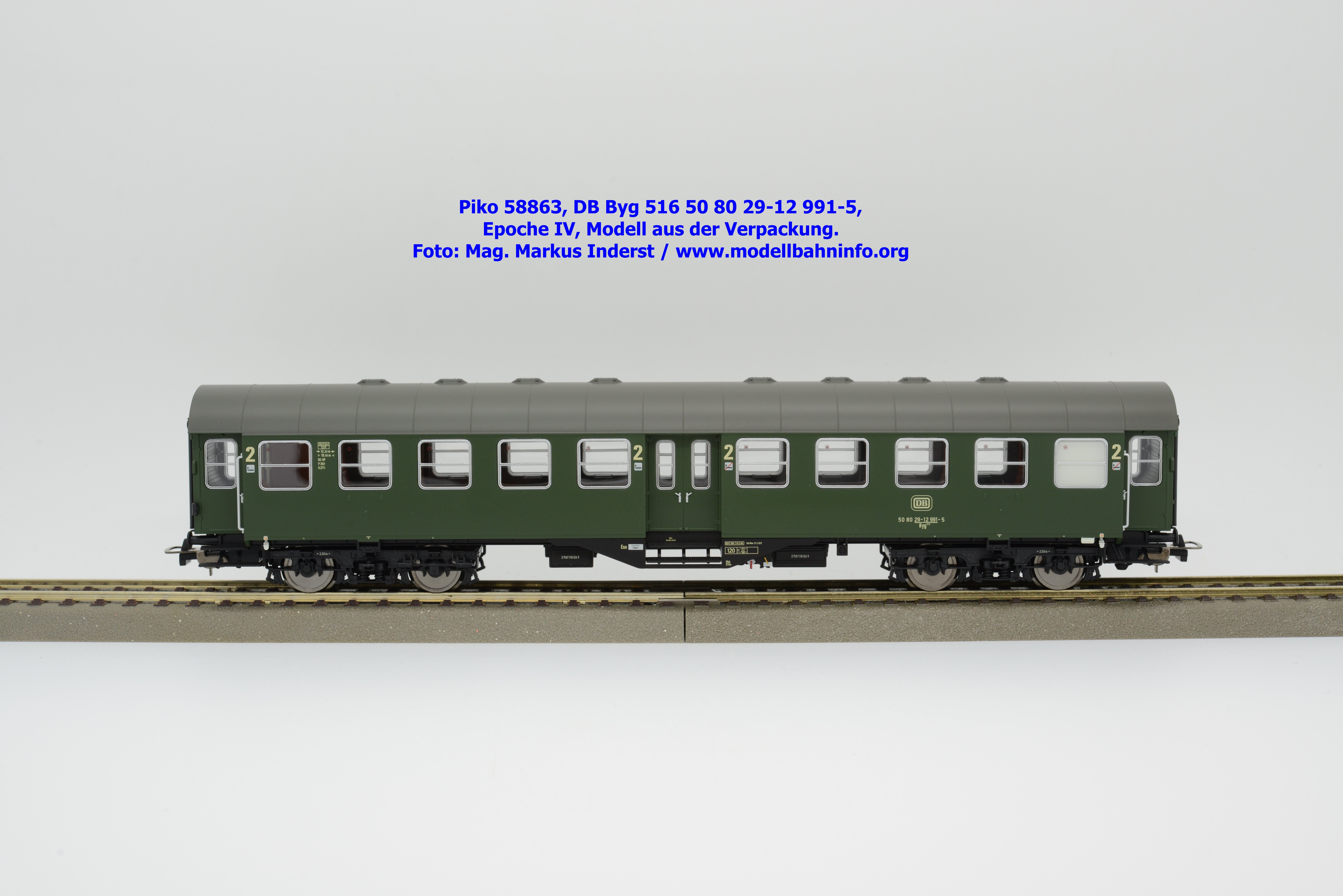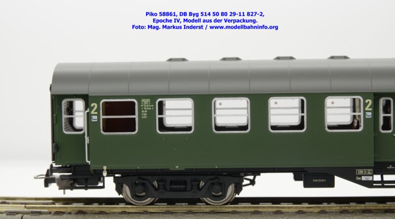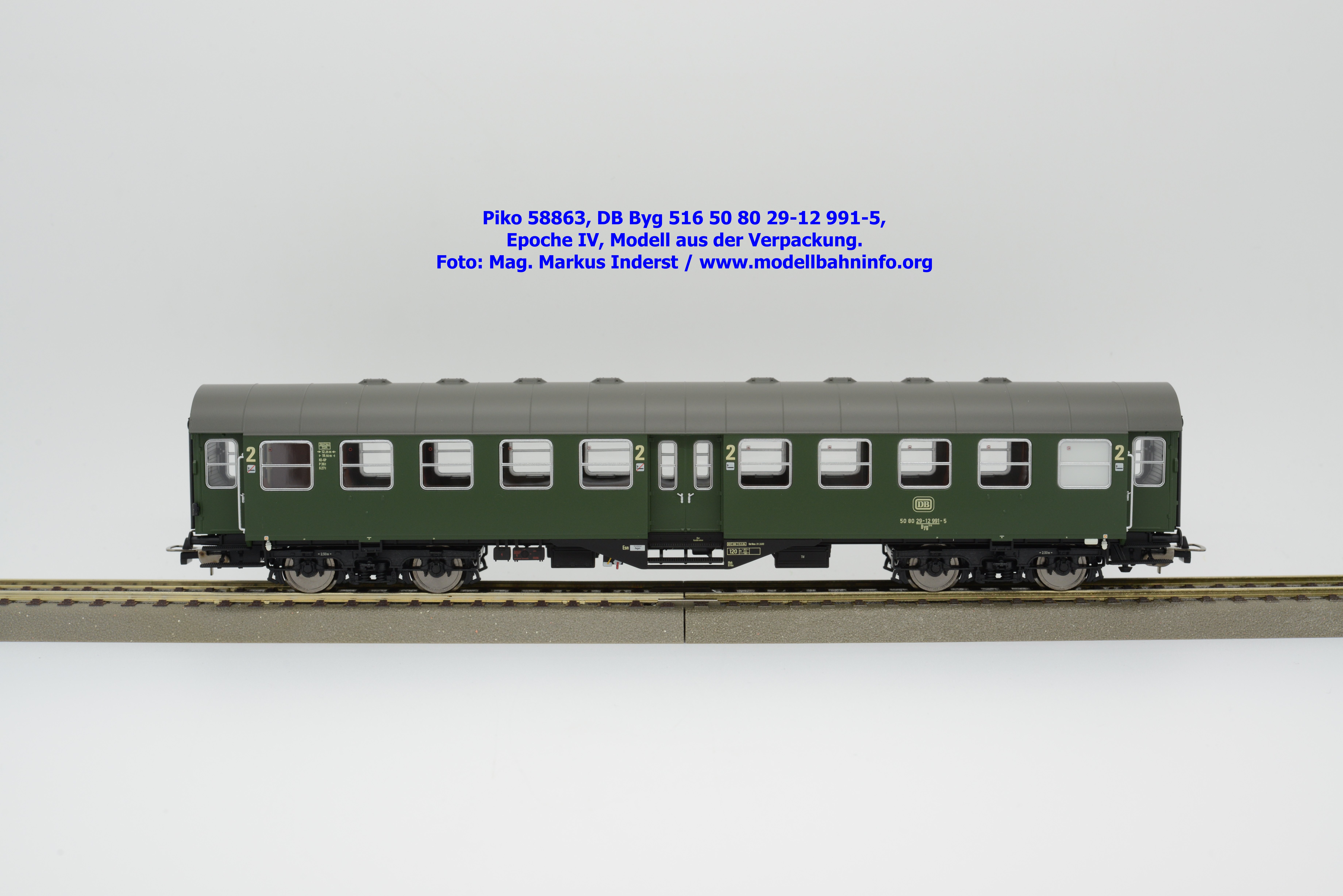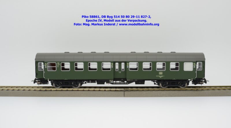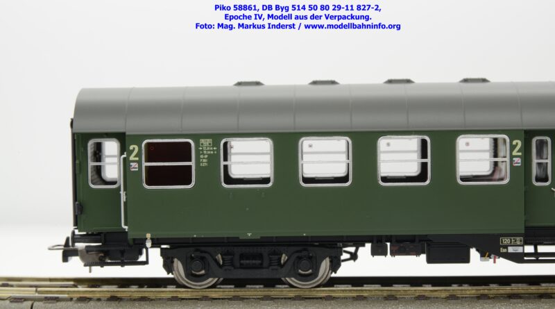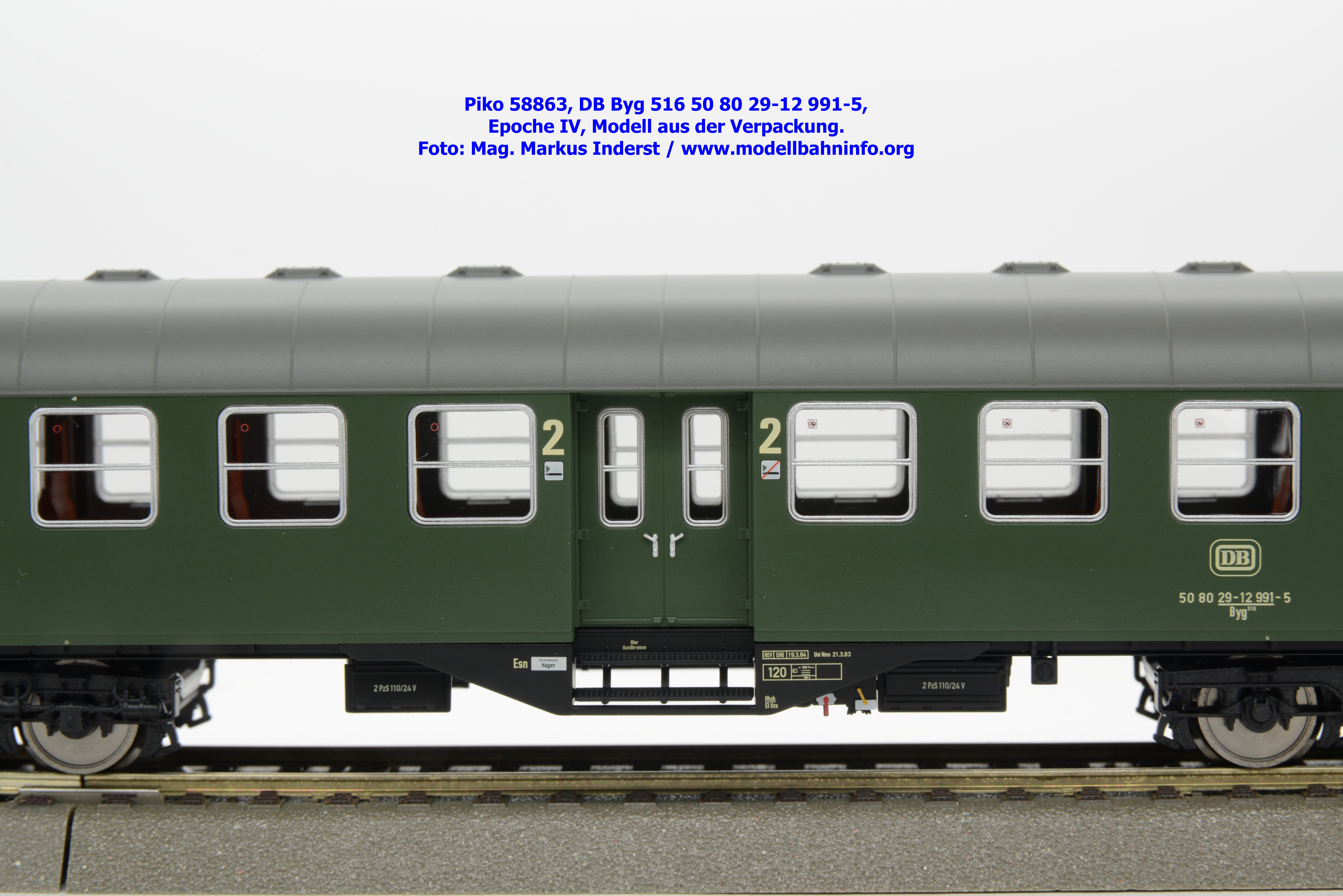 Dieser 2. Klasse Umbauwagen stellt nicht nur eine Formvariante bzw. Nummernvariante, sondern ergänzt das Sortiment der vierachsigen Umbauwagen durch eine weitere Modellkonstruktion. Im Unterschied zum 2. Klasse-Wagen mit der Artikelnummer 58861 wurde dieses Modell mit MD-Drehgestellen ausgestattet, wodurch dieser mit der Gattungsbezeichnung Byg 516 geführt wird. Das Modell trägt die Wagennummer 50 80 29-12 991-5 und die Untersuchungsdaten REV EHG 19. 3.84 bzw. Unt Nms 21. 3.83. Hagen gilt auch hier als Heimatbahnhof.