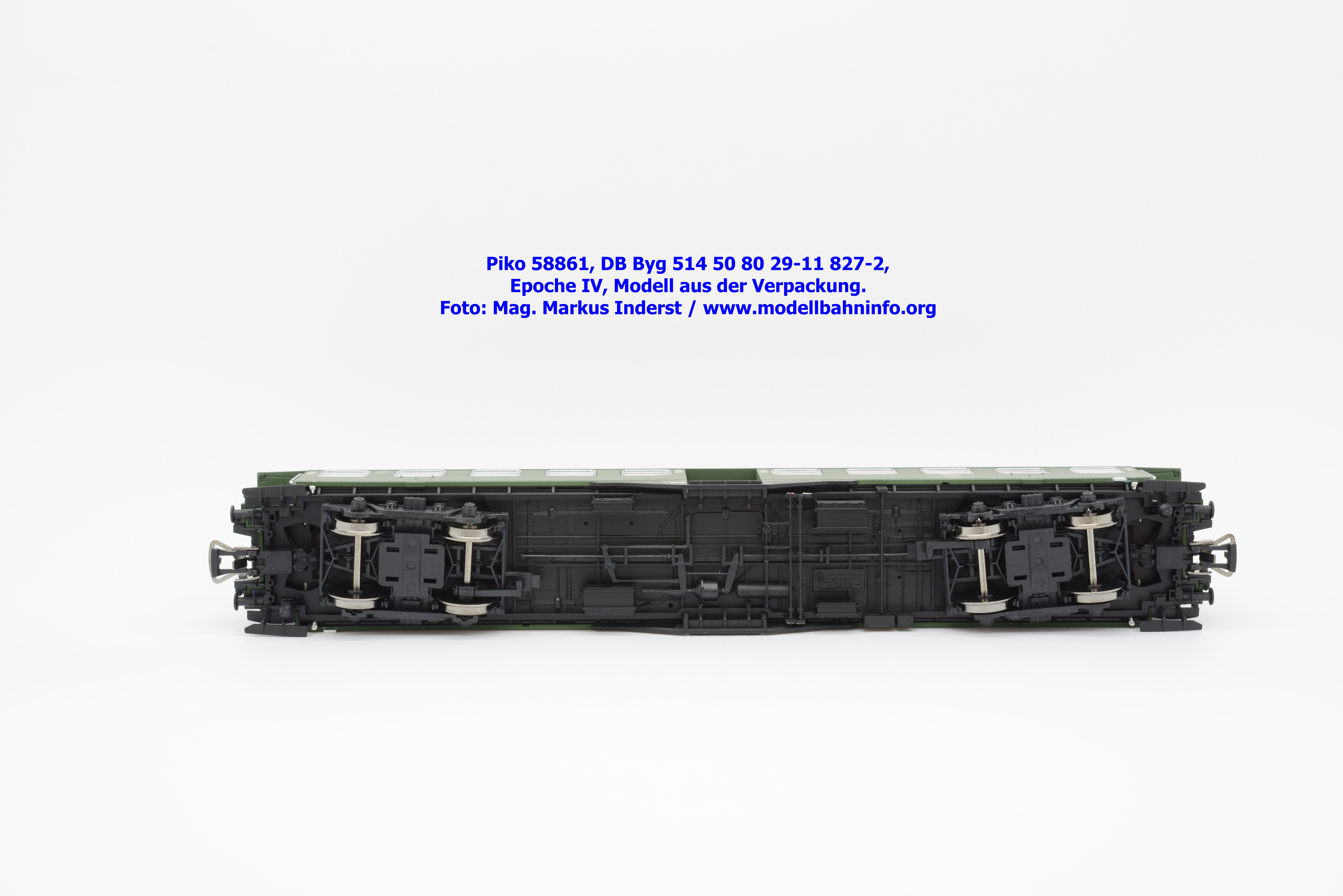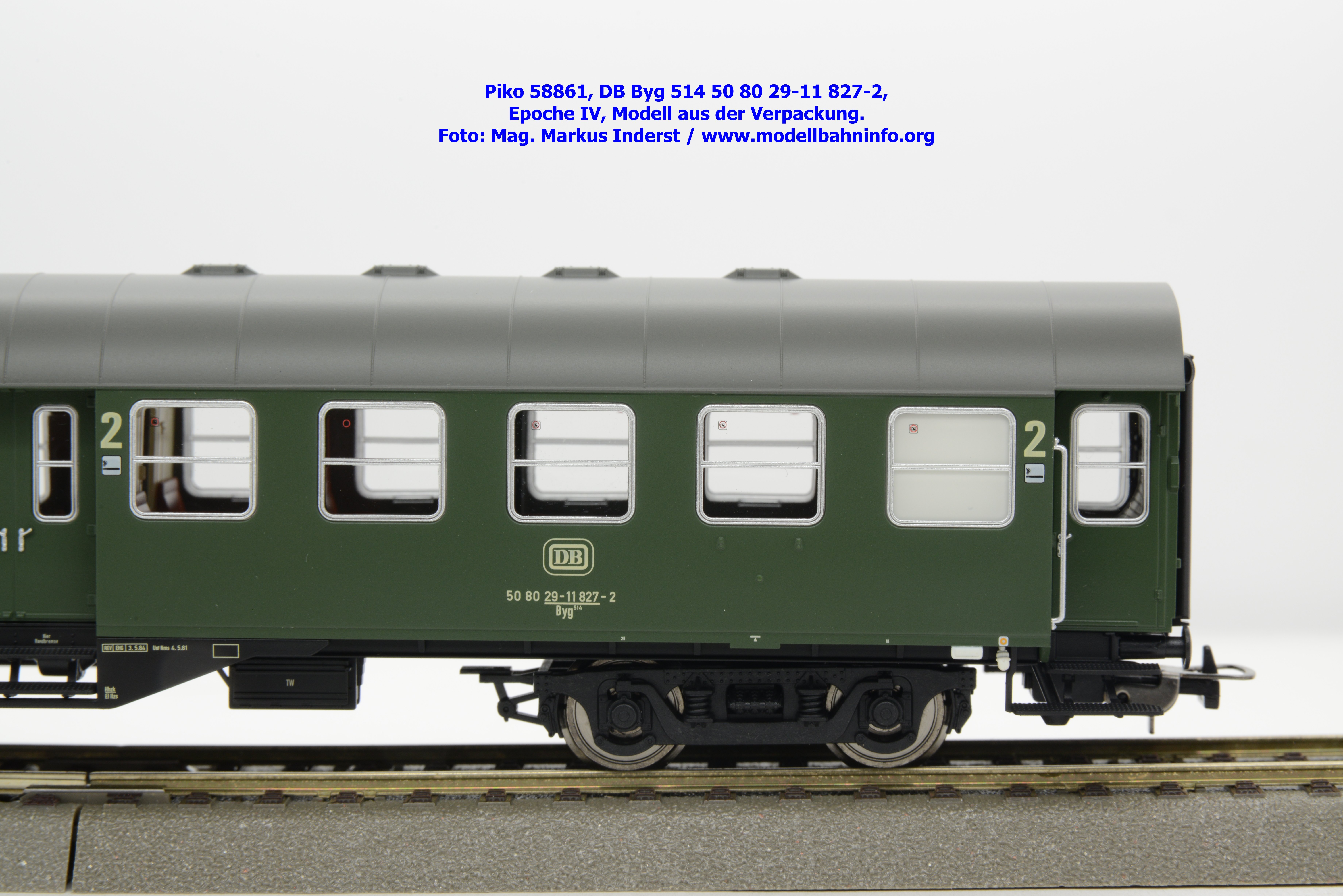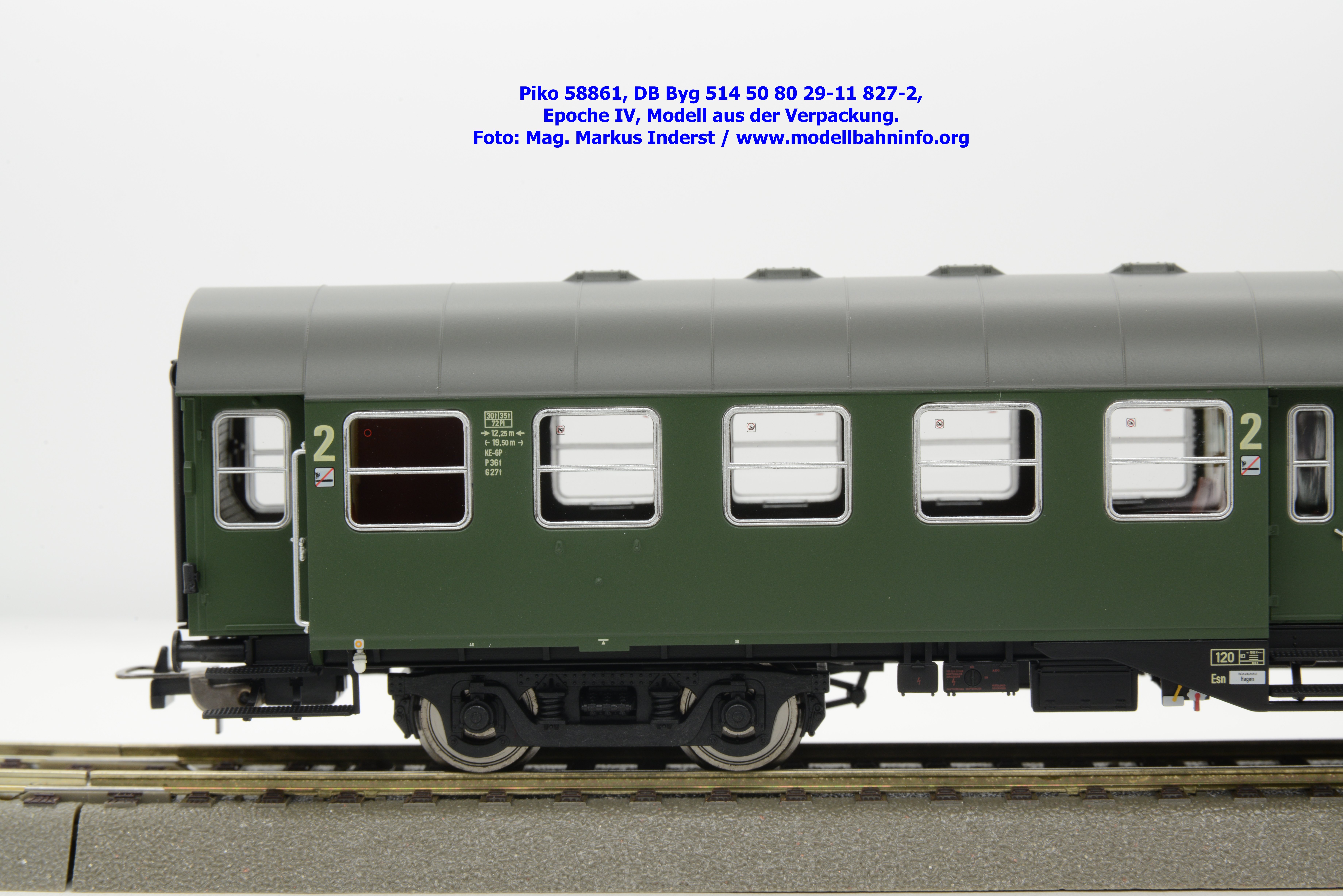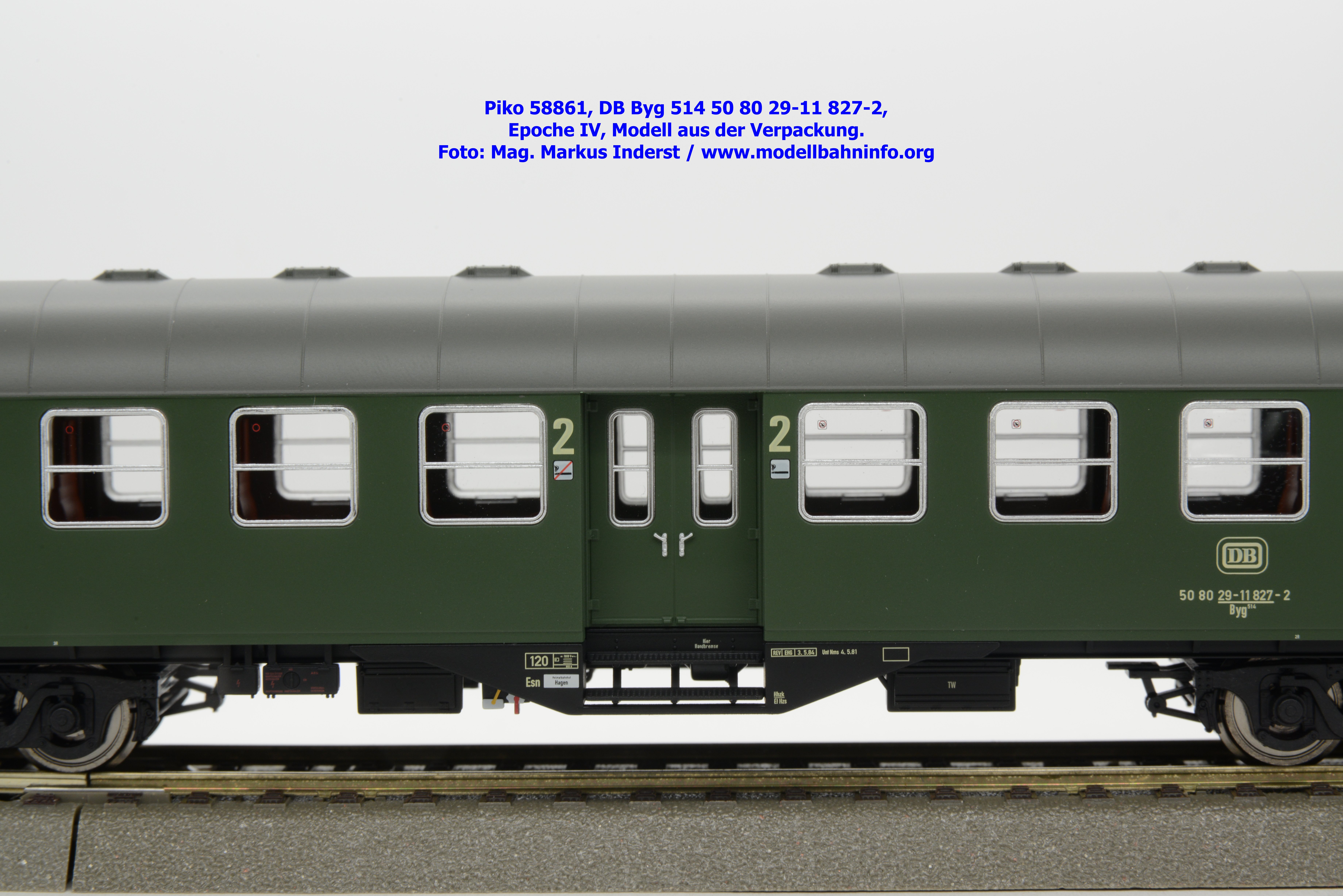 Dieses Modell ist mit Schwanenhals-Drehgestell ausgestattet und gehört somit der Bauartbezeichnung Byg 514 an. Das Modell ist mit der Wagennummer 50 80 29-11 827-2 bedruckt. Auch bei diesem Modell ist der Heimatbahnhof mit Hagen angegeben. Im Revisionsraster stehen die Angaben REV EHG 3. 5.84 bzw. Unt Nms 4. 5.81.