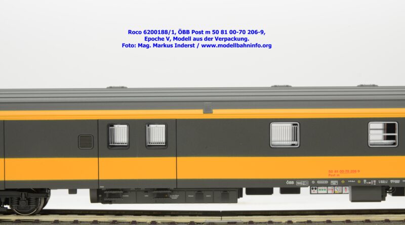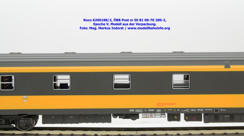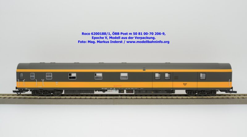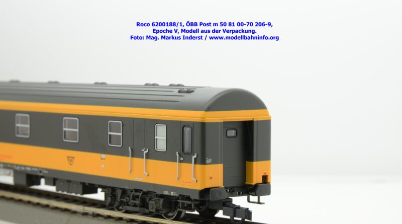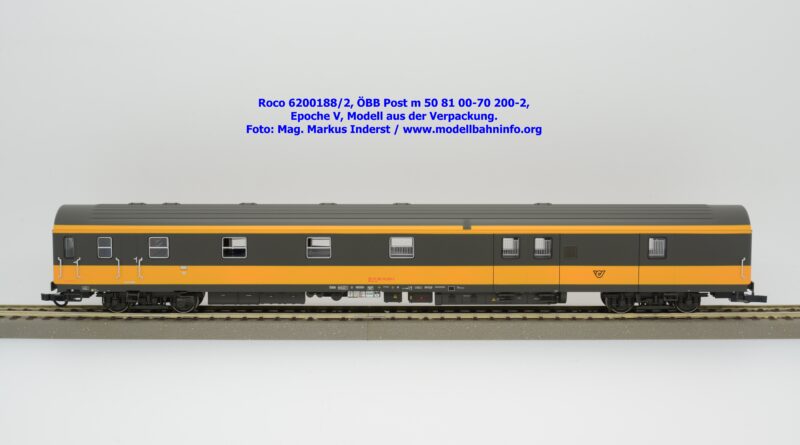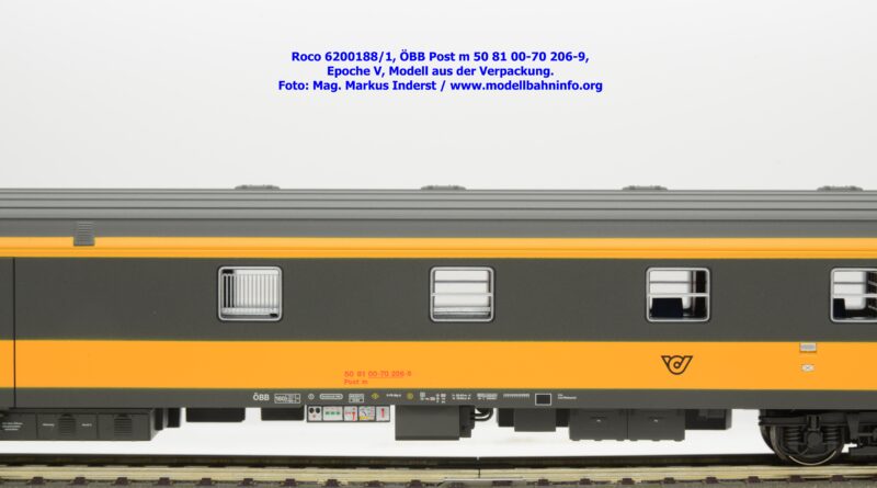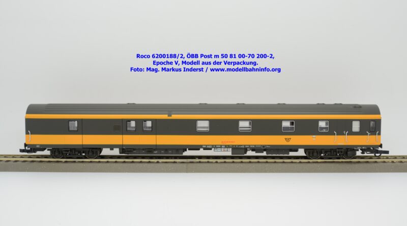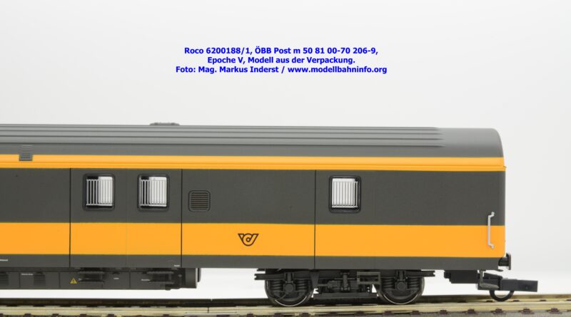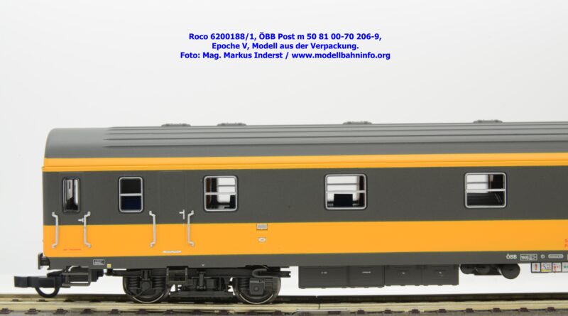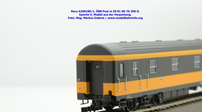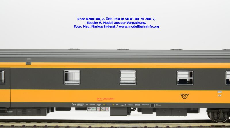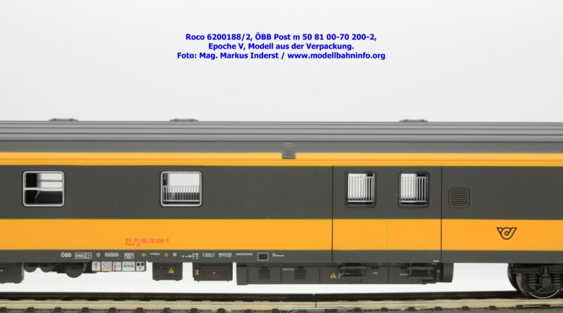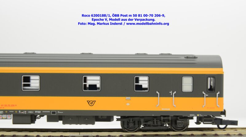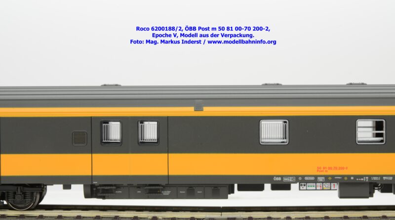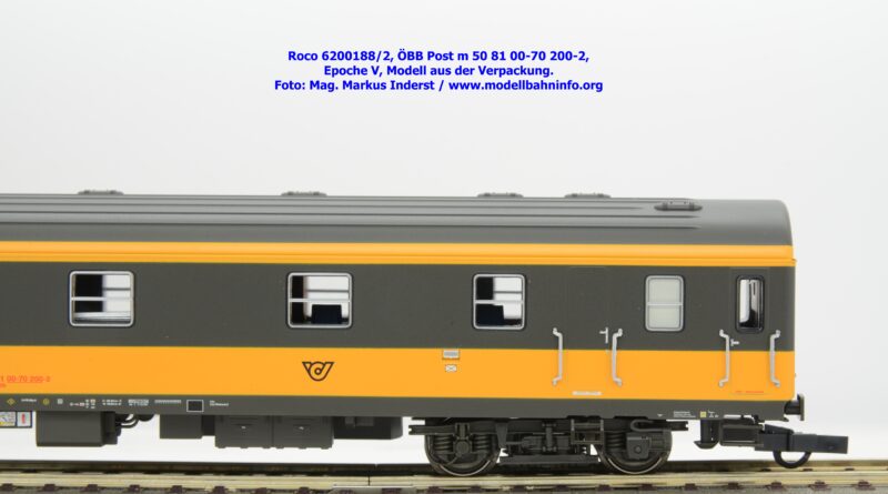 Der neue Postwagen der ÖBB wurde von Roco in zwei technisch unterschiedlichen Ausführungen angekündigt. Die Auslieferung der Neukonstruktion erfolgt als Zweierset, wobei die Modelle einzeln verpackt sind. Der Postwagen ist als rein „analoges“ Modell lieferbar und wird unter der Artikelnummer 6200188 zum UVP von € 159,90 geführt. Darüber hinaus werden die beiden Modelle noch mit einer digital-schaltbaren Innenbeleuchtung gefertigt und unter der Artikelnummer 6210188 angeboten, die einen UVP von € 239,90 aufweisen. Im Neuheitenkatalog 2026 wurde unter der Artikelnummern 6200180 bzw. 6210180 die Ausführung in der Jaffa-Lackierung angekündigt.