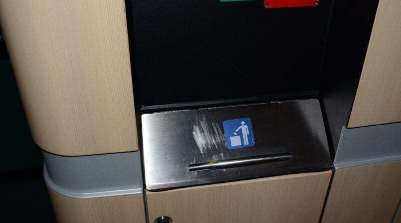 * Die Fußstütze in der 2. Klasse ist alles andere als bequem, denn auf einer Seite des Fusses ist immer der dort befindliche Abfallbehälter im Weg.