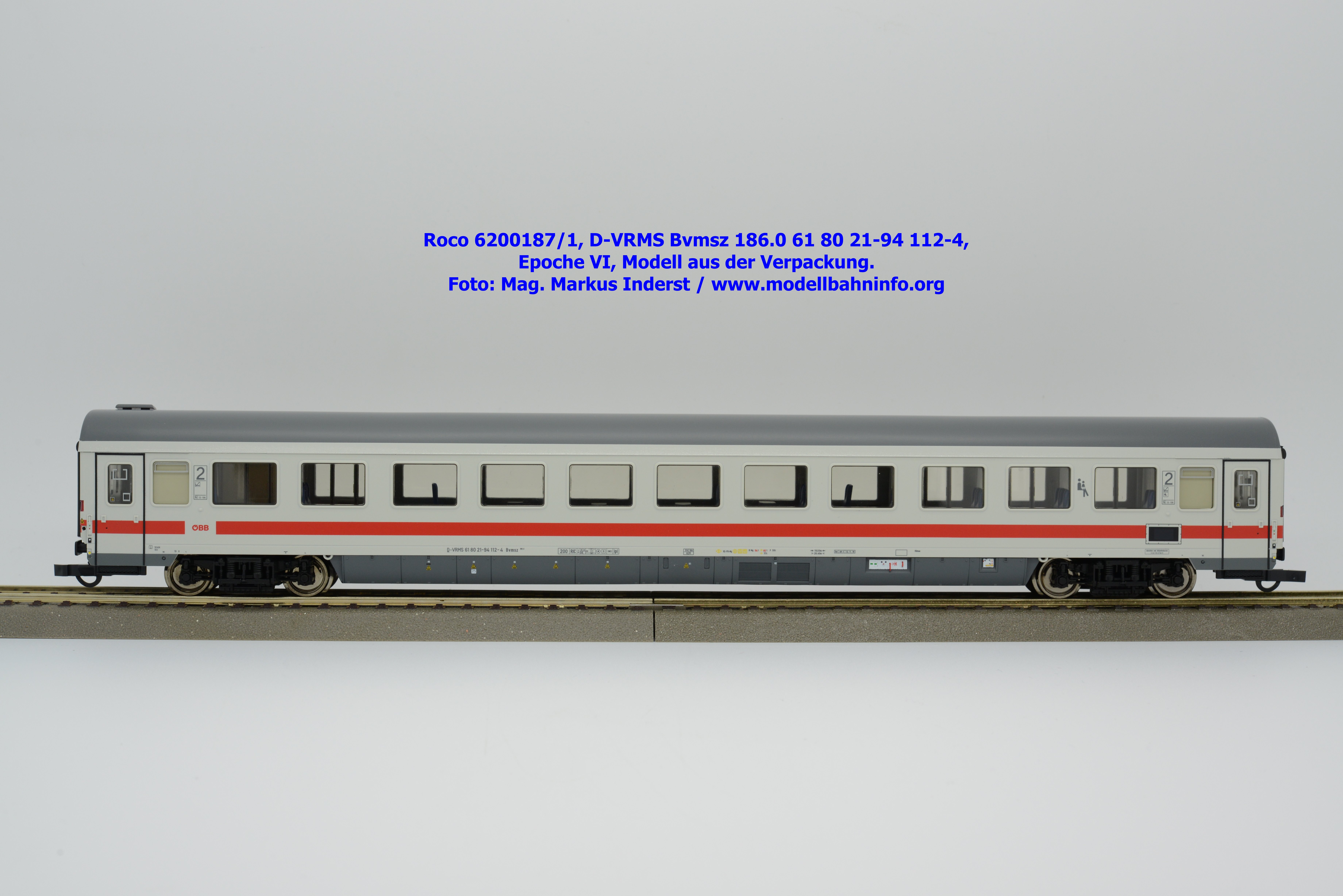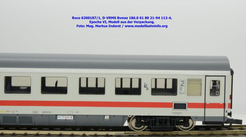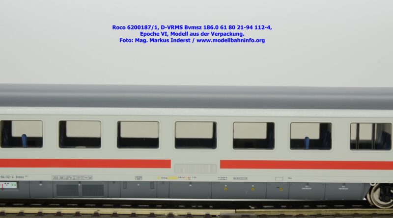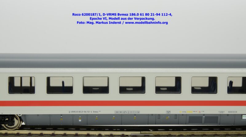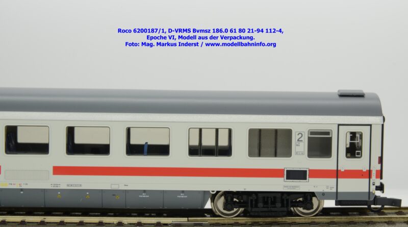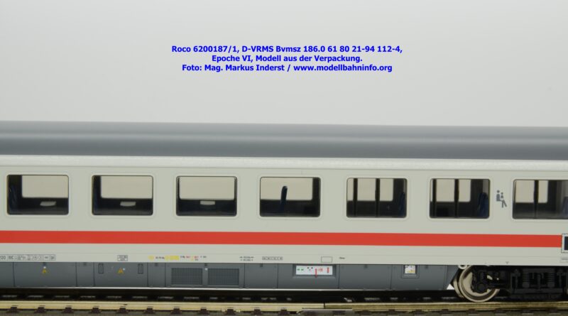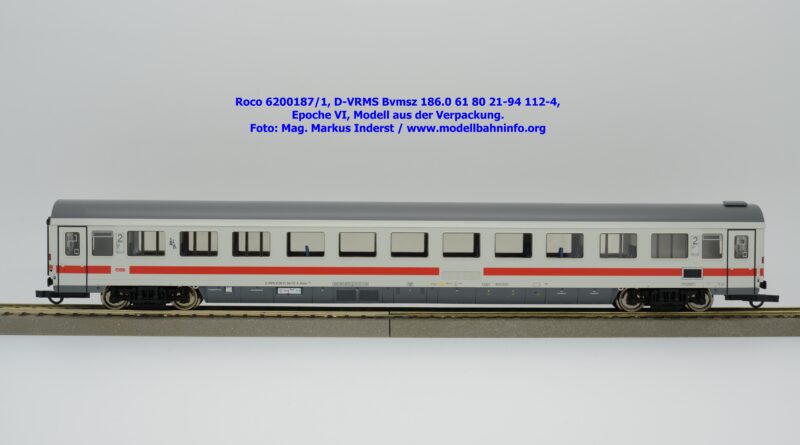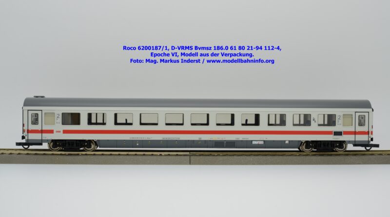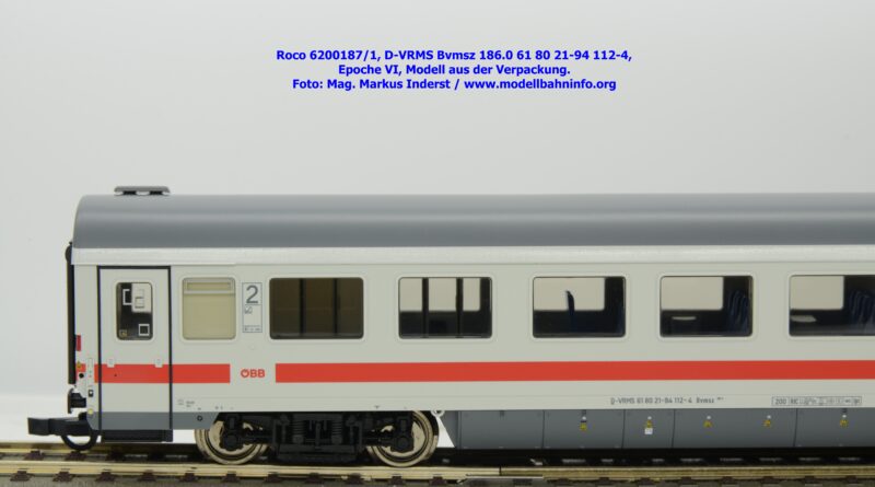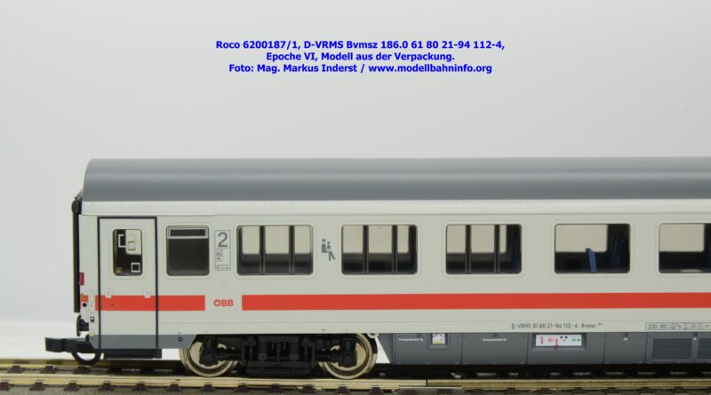 Der erste Schnellzugwagen in diesem Design gehört der Bauart Bvmsz 186.0 an, welcher auch der einzige ist. Das Modell ist mit der Halterkennung D-VRMS und der Wagennummer 61 80 21-94 112-4 bedruckt. Am Fahrzeug sind die Untersuchungsdaten Unt AN X 12.11.18 angeschrieben. Was die Angaben im Revisionsraster und dem Einsatzspektrum betrifft, so existieren entsprechende Zweifel, ob derartige Wagen überhaupt mit so alten Untersuchungsanschriften bei den ÖBB überhaupt im Einsatz waren?
