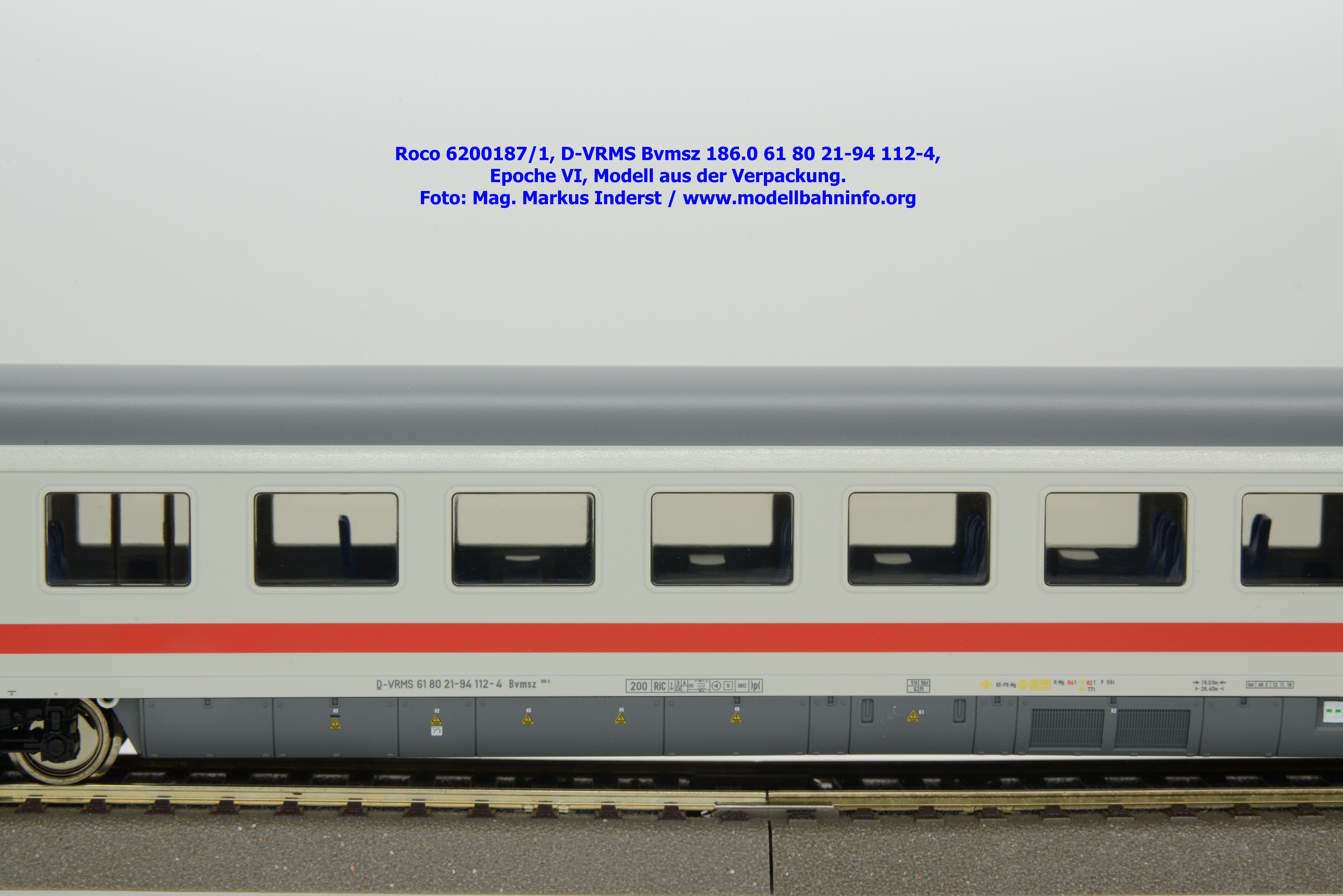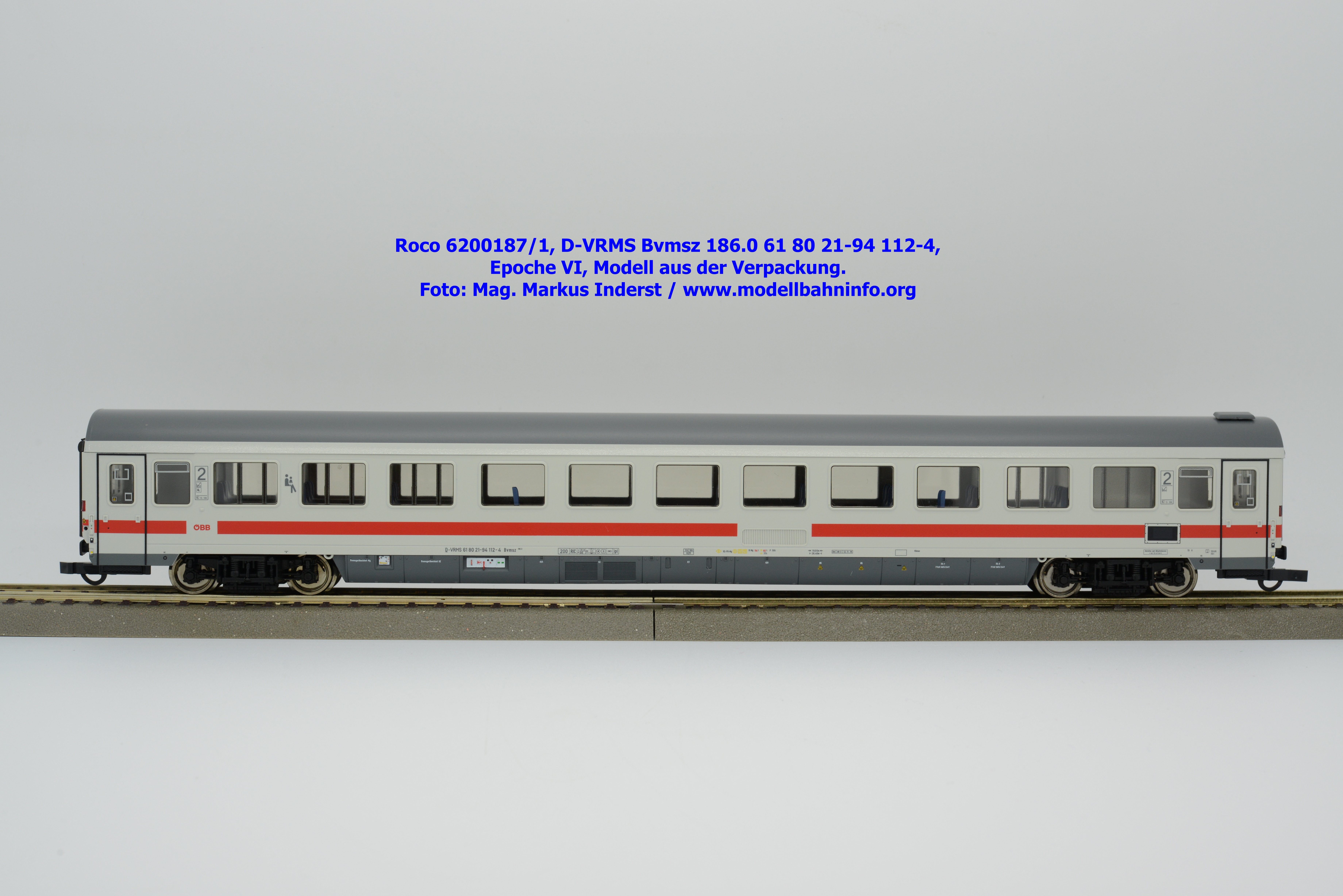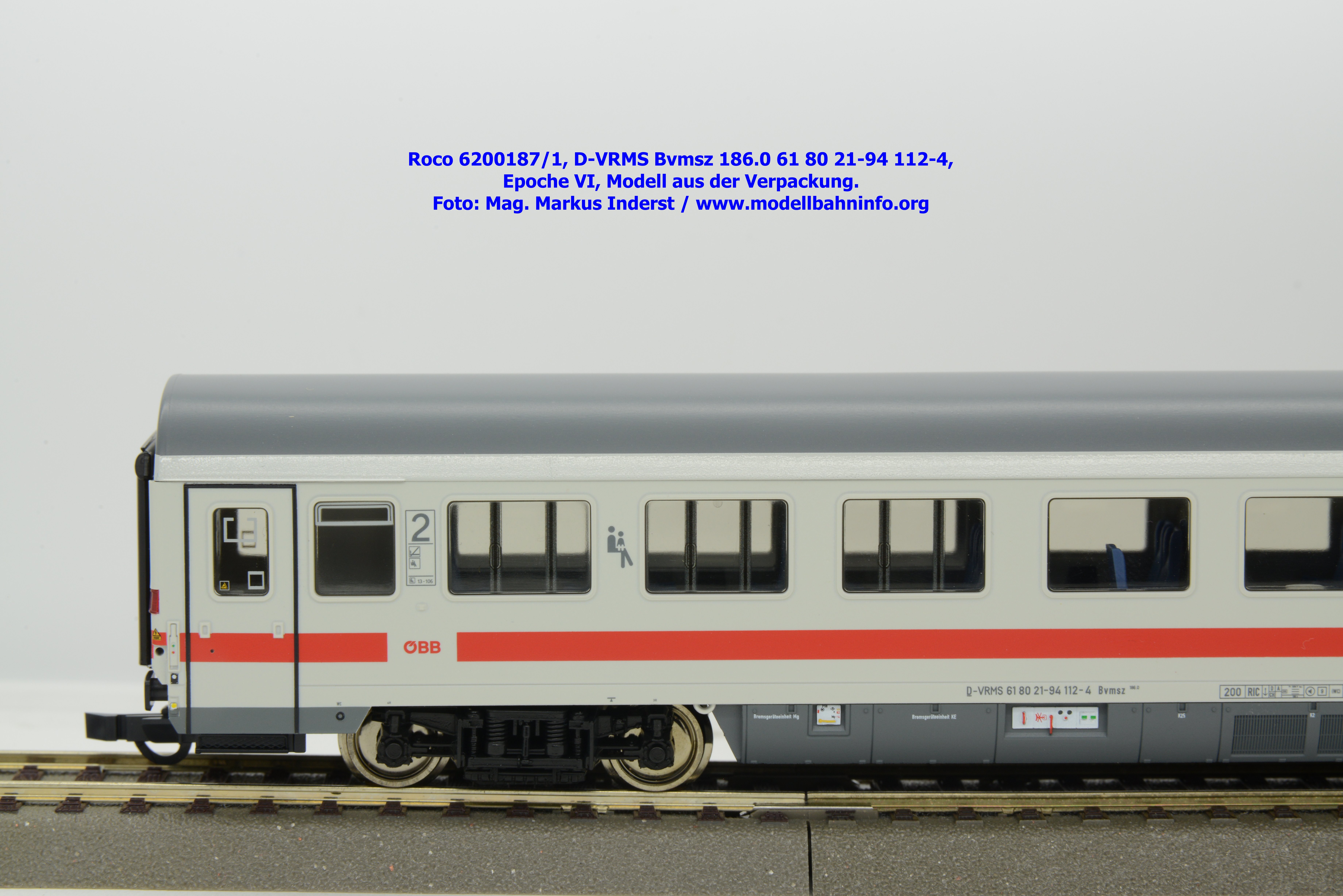Der erste Schnellzugwagen in diesem Design gehört der Bauart Bvmsz 186.0 an, welcher auch der einzige ist. Das Modell ist mit der Halterkennung D-VRMS und der Wagennummer 61 80 21-94 112-4 bedruckt. Am Fahrzeug sind die Untersuchungsdaten Unt AN X 12.11.18 angeschrieben. Was die Angaben im Revisionsraster und dem Einsatzspektrum betrifft, so existieren entsprechende Zweifel, ob derartige Wagen überhaupt mit so alten Untersuchungsanschriften bei den ÖBB überhaupt im Einsatz waren?